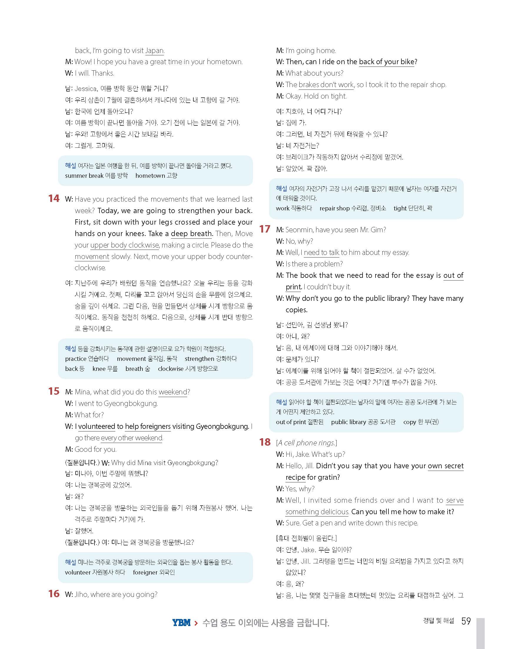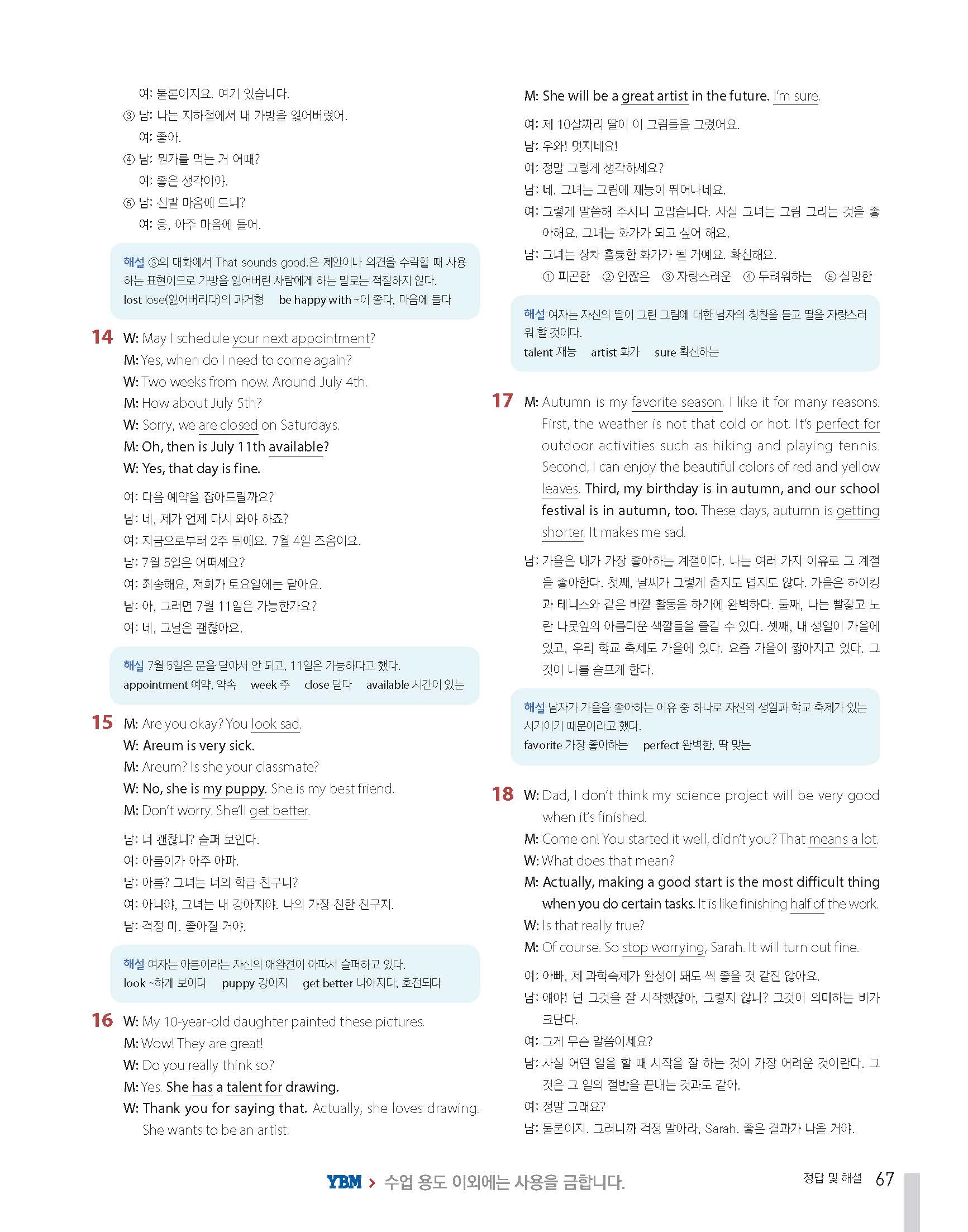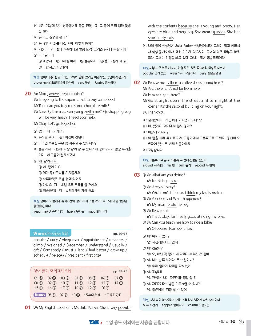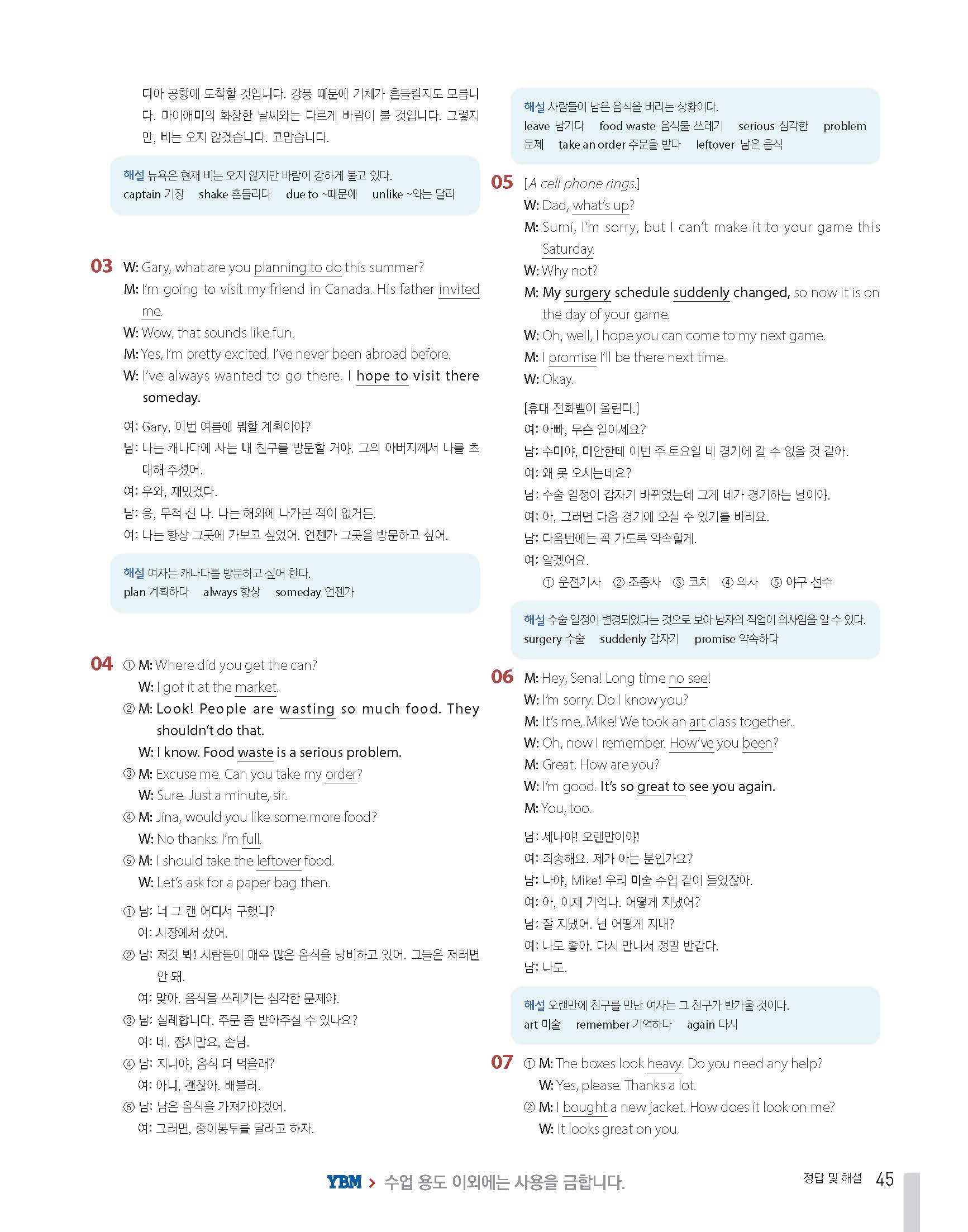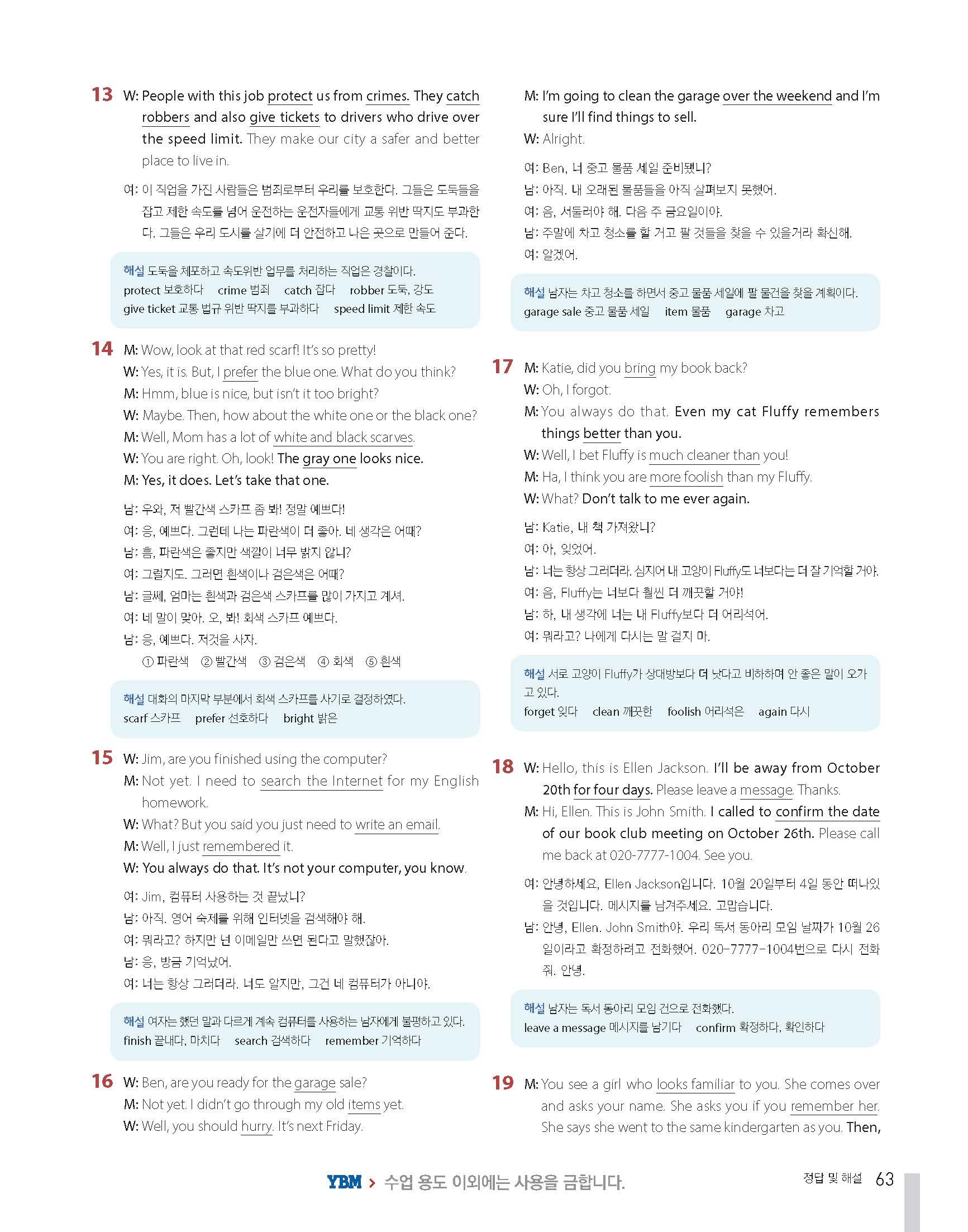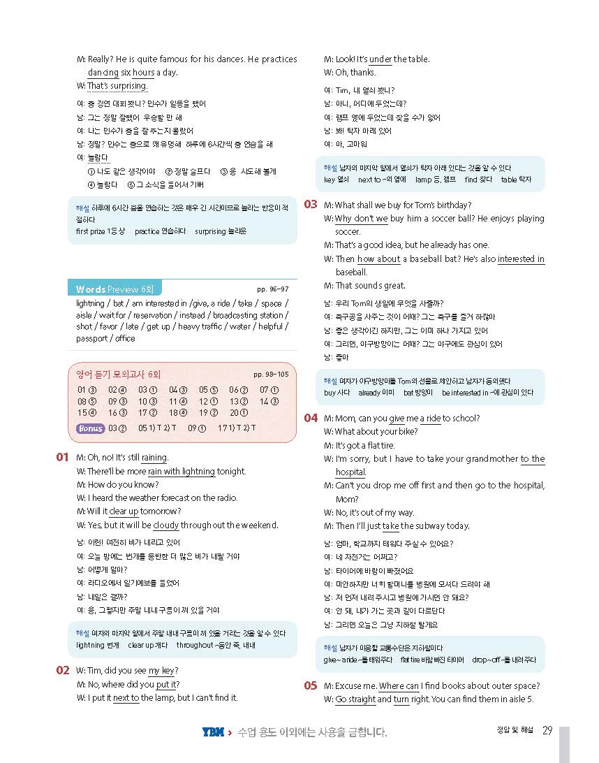 YBM시사 굿리스닝1 Good Listening 1 사진답지 빠른답지 모바일최적화