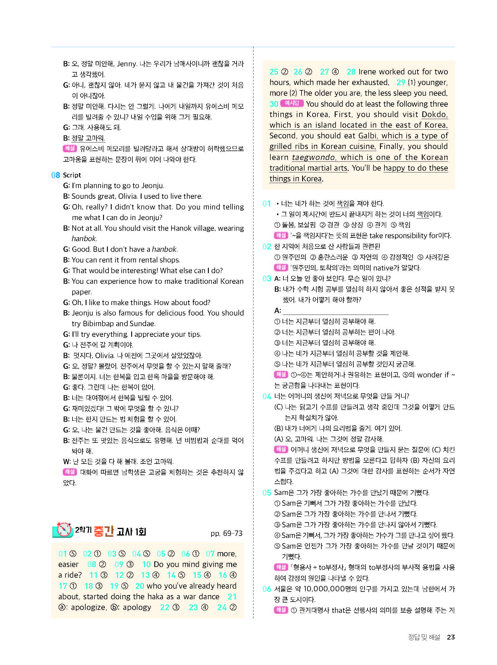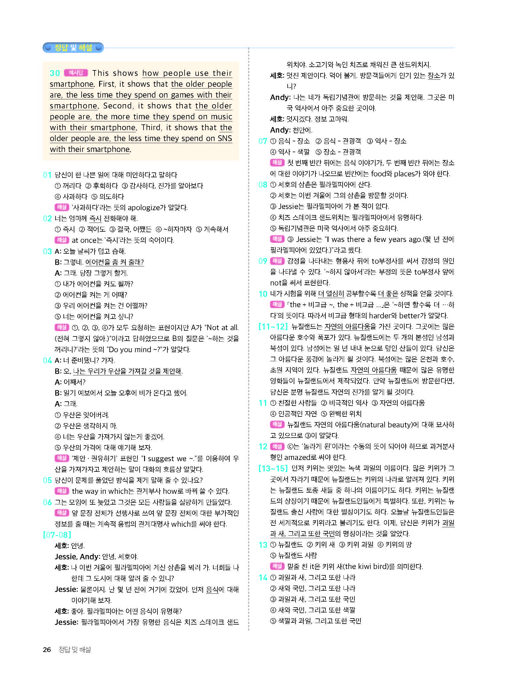 다운로드 받을필요 없이 바로 볼수 있는 모바일에 최적화된 답지 입니다