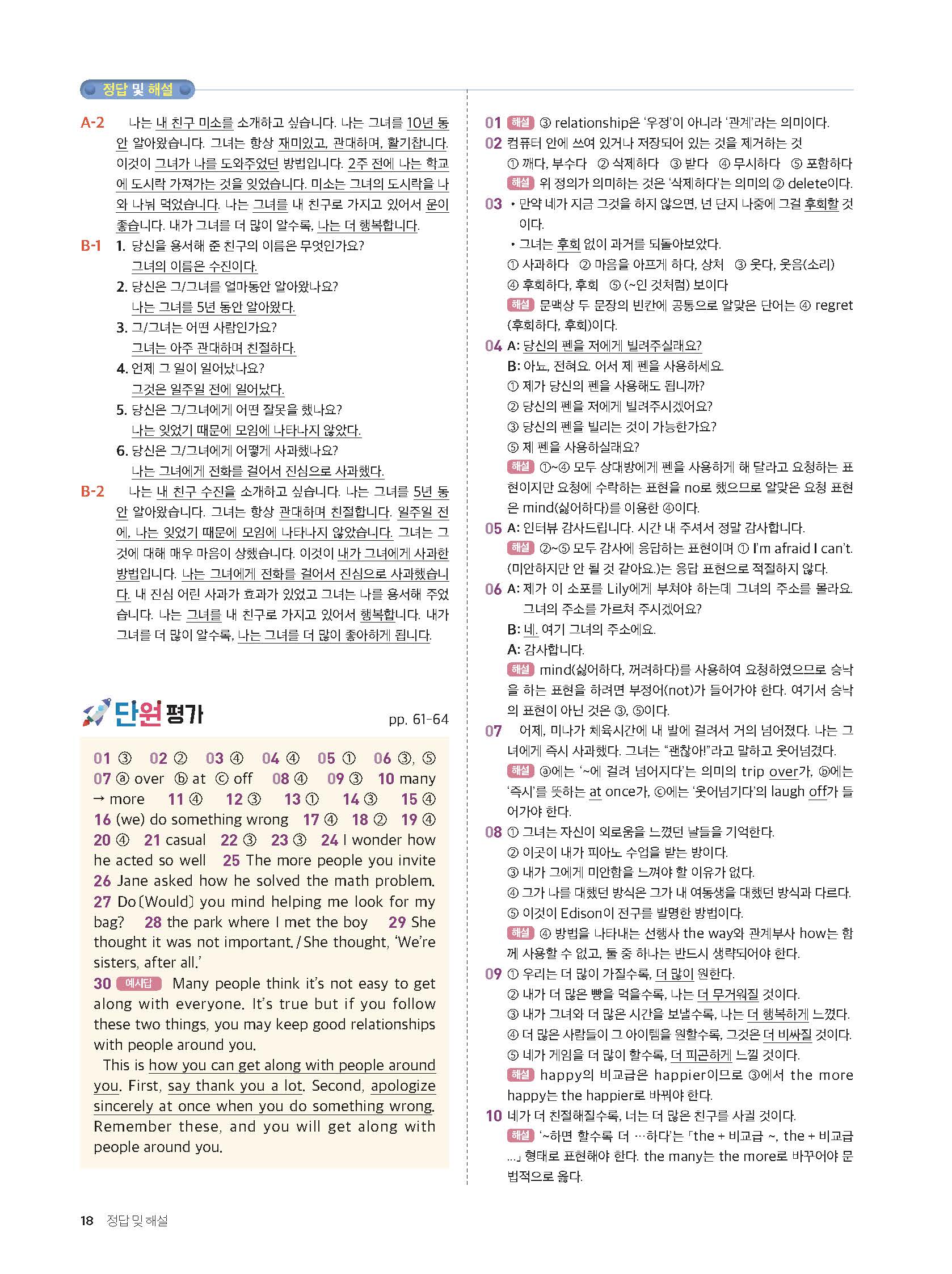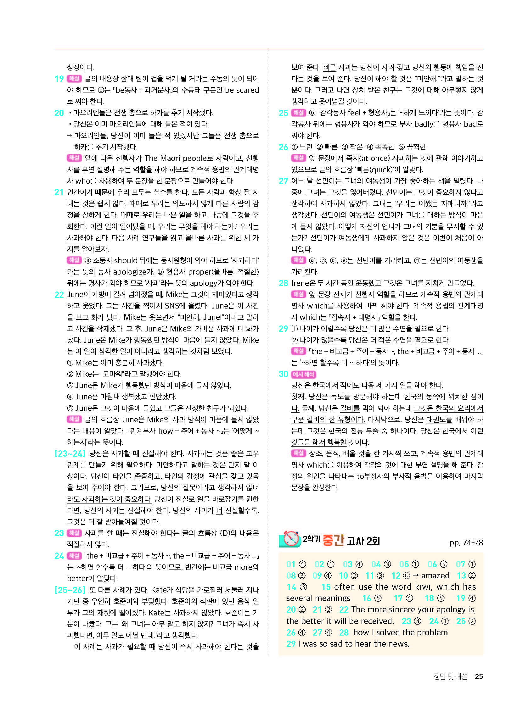 YBM시사 중등영어3-2 박준언 평가문제집 사진답지 빠른답지 모바일최적화