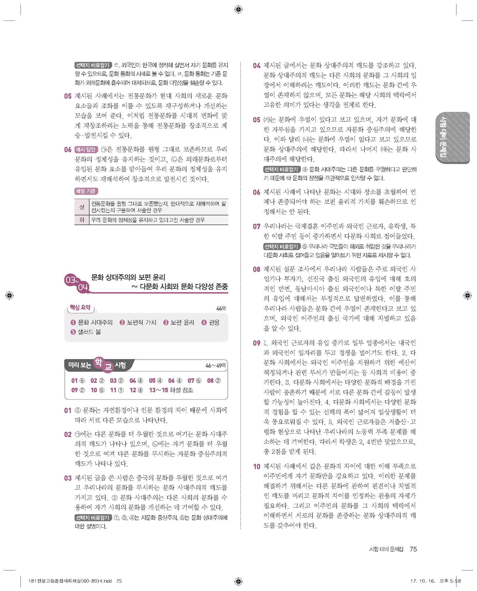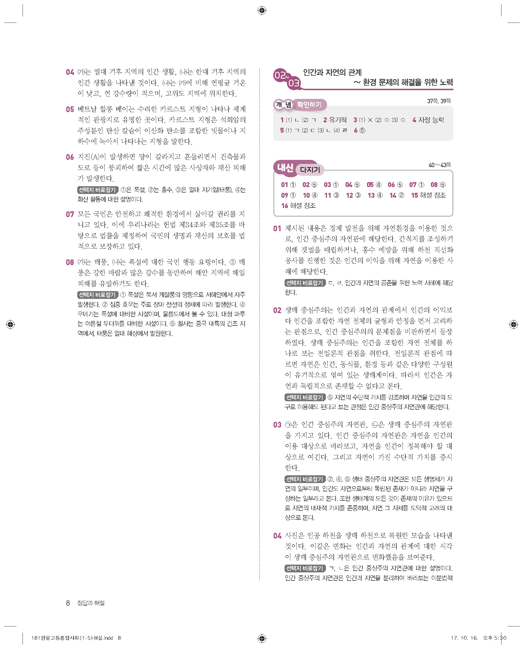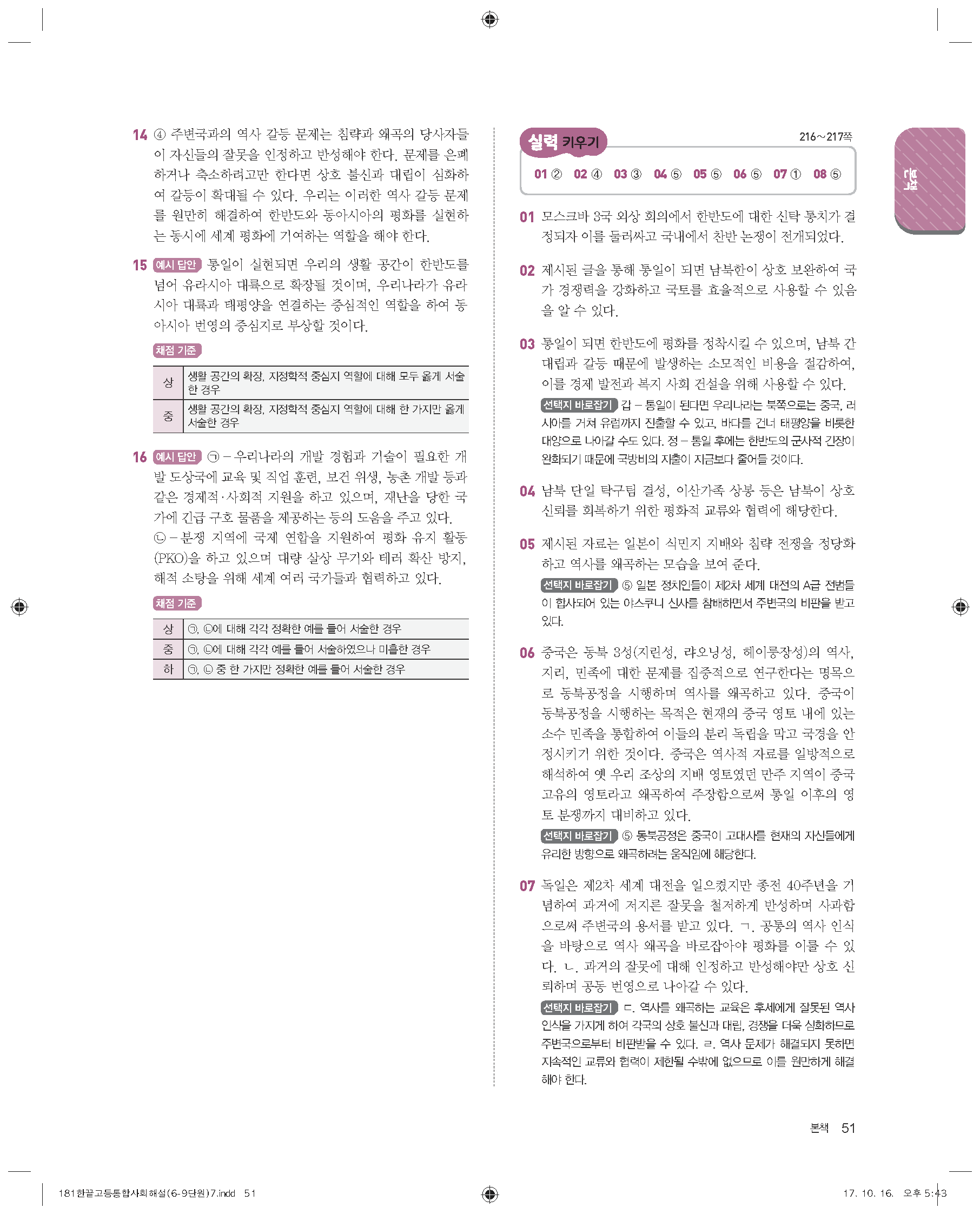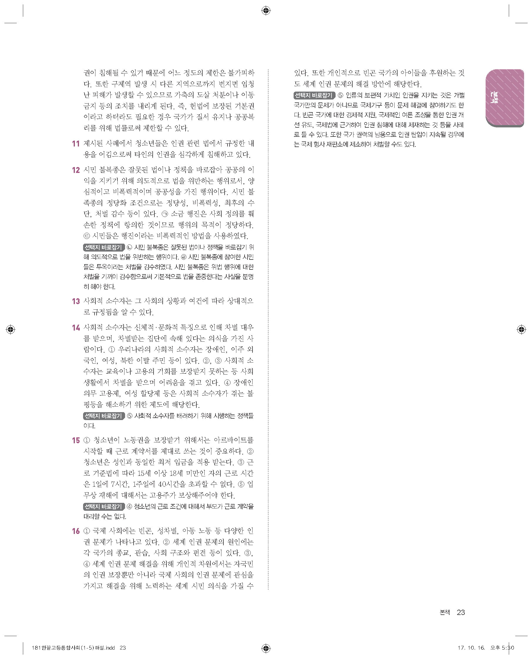 한끝 고등통합사회(15개정) 답지 해설 바로보는 사진답지 빠른답지 모바일최적화