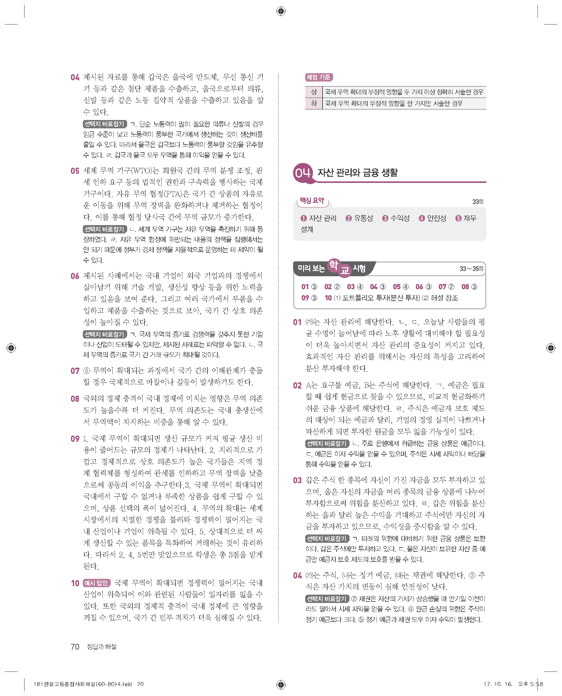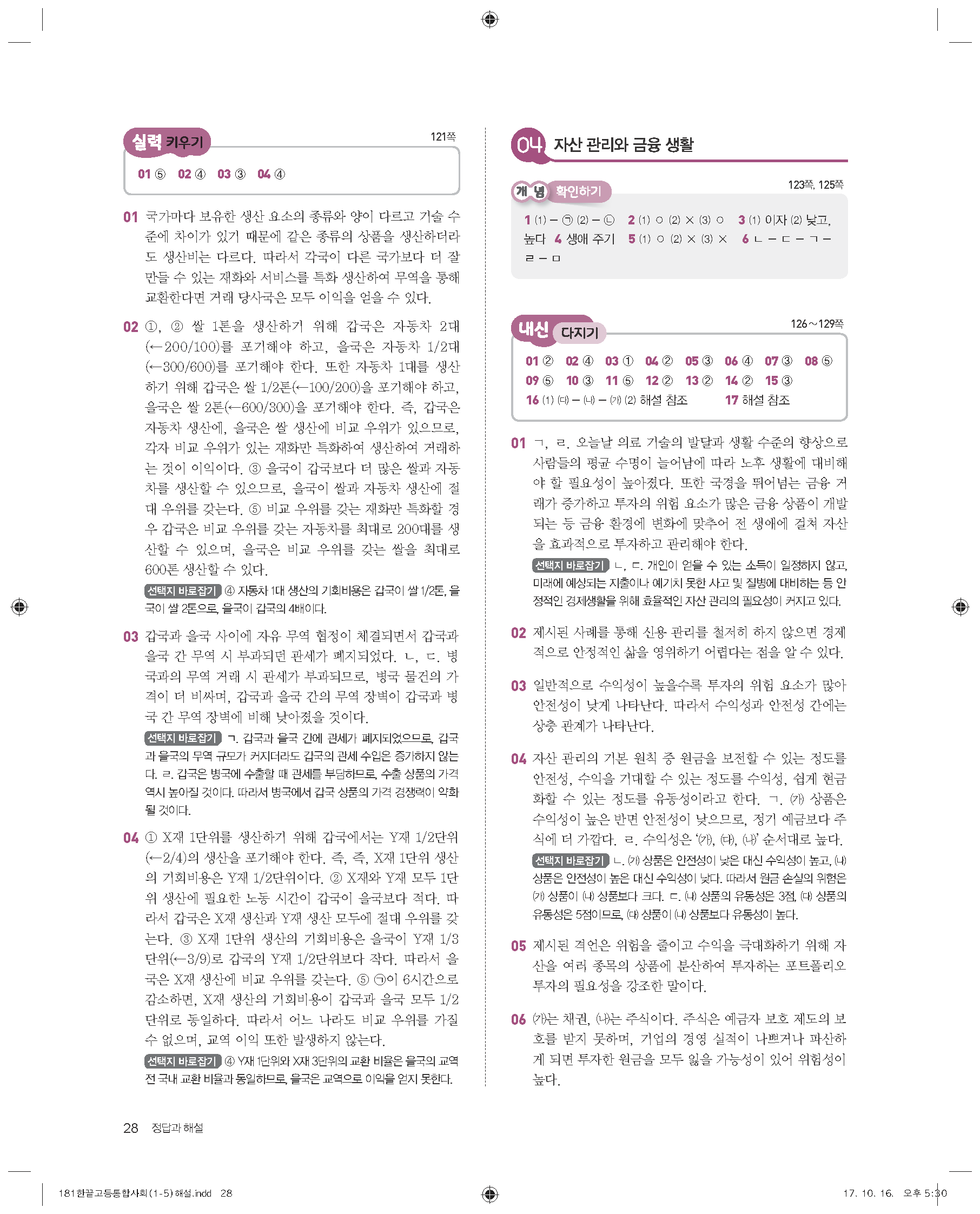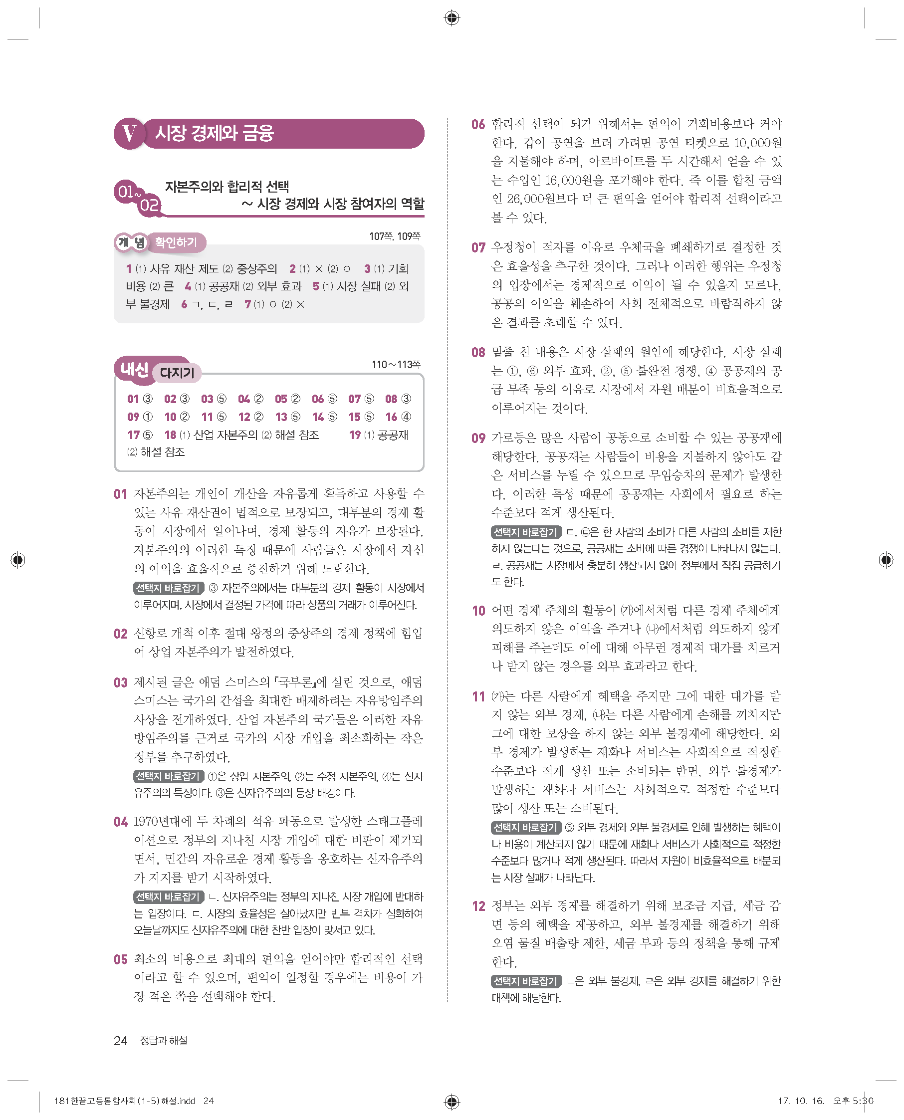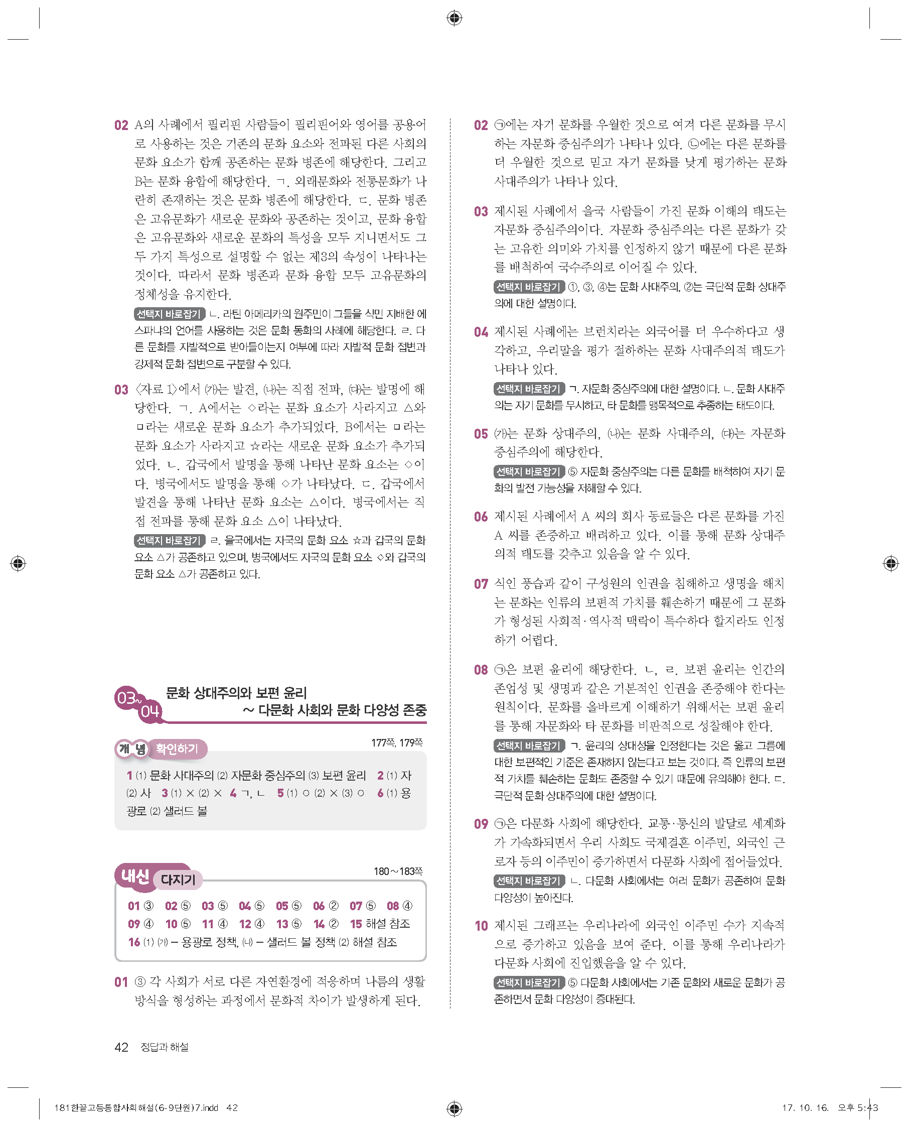 한끝 고등통합사회(15개정) 답지 해설 바로보는 사진답지 빠른답지 모바일최적화