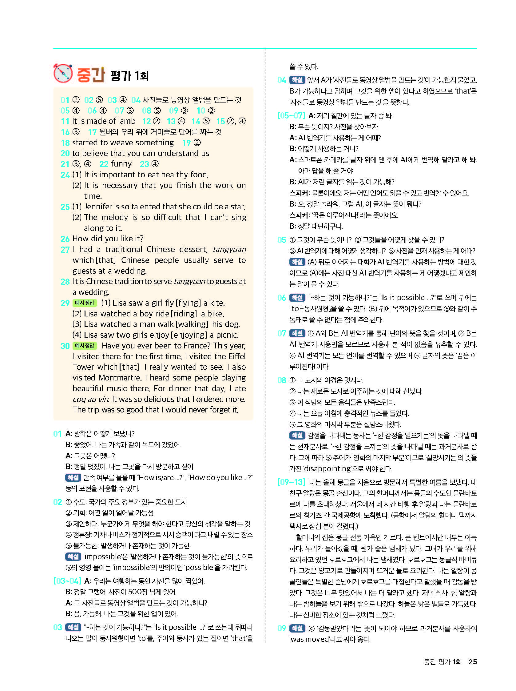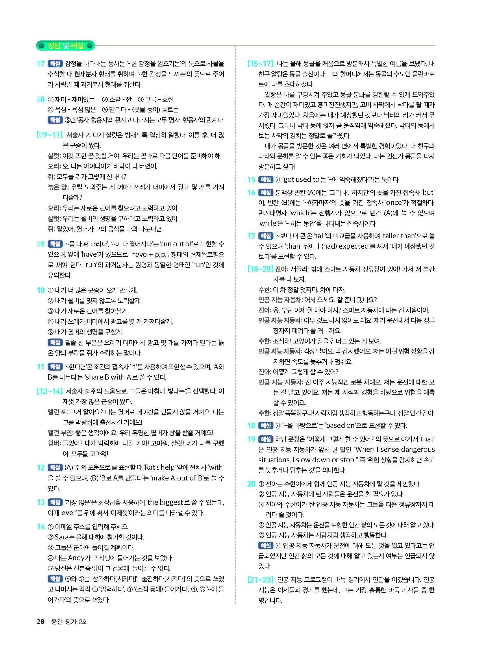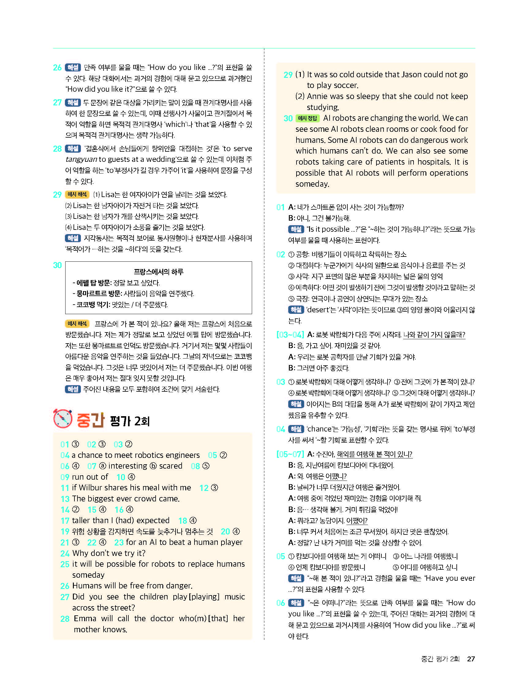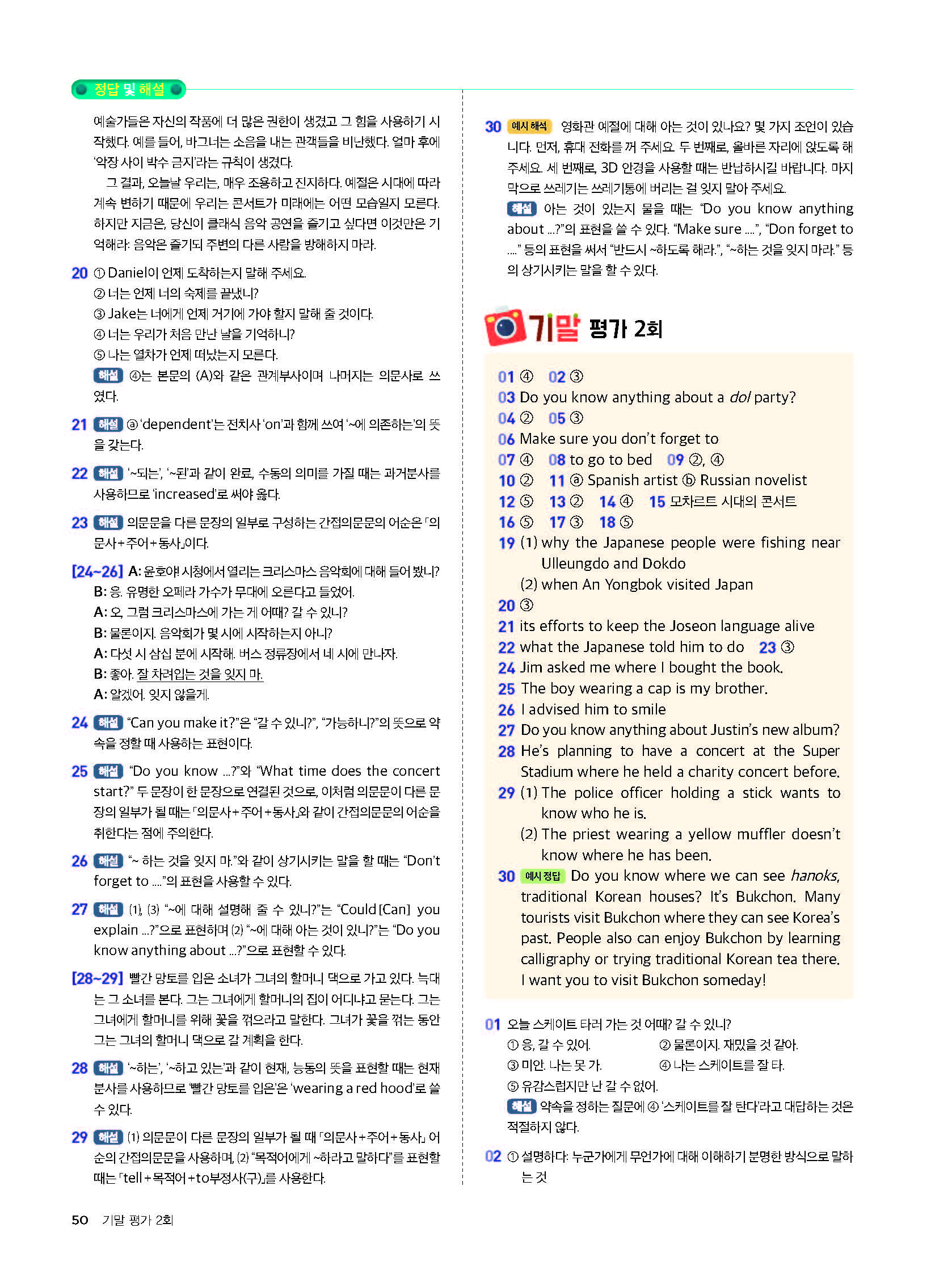 YBM시사 중등영어2-2 송미정 평가문제집 사진답지 빠른답지 모바일최적화