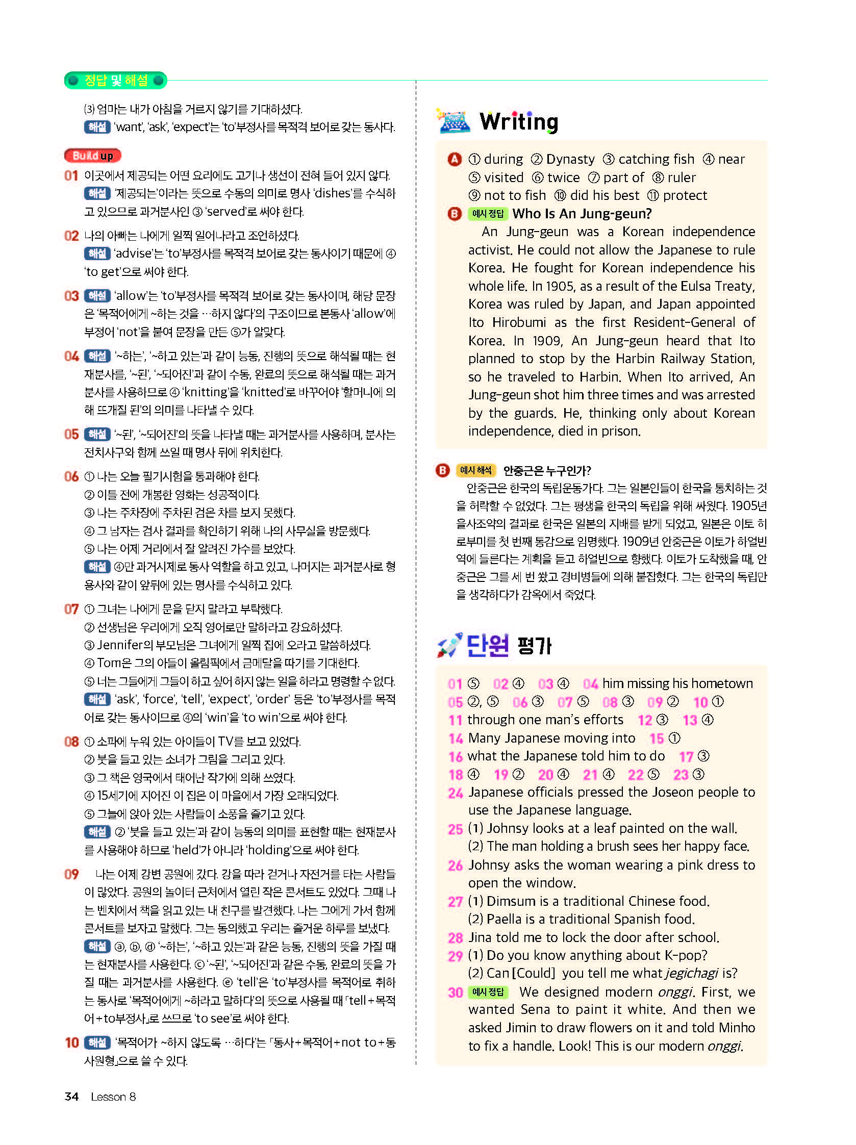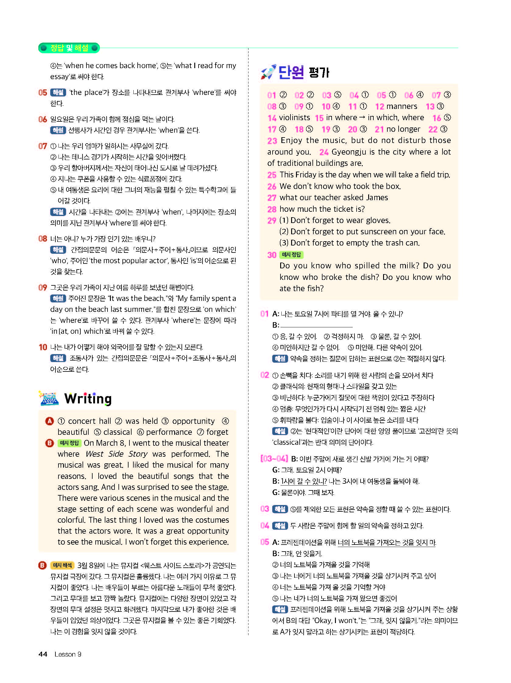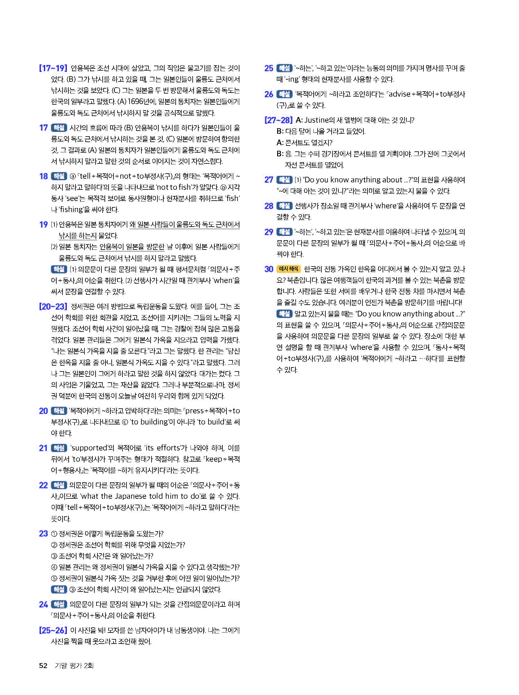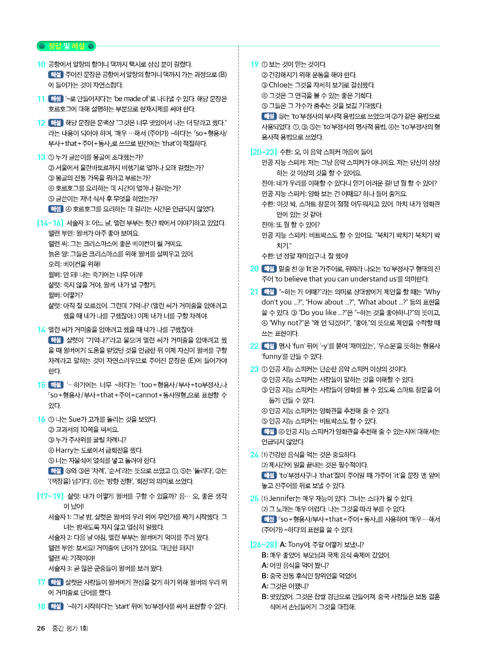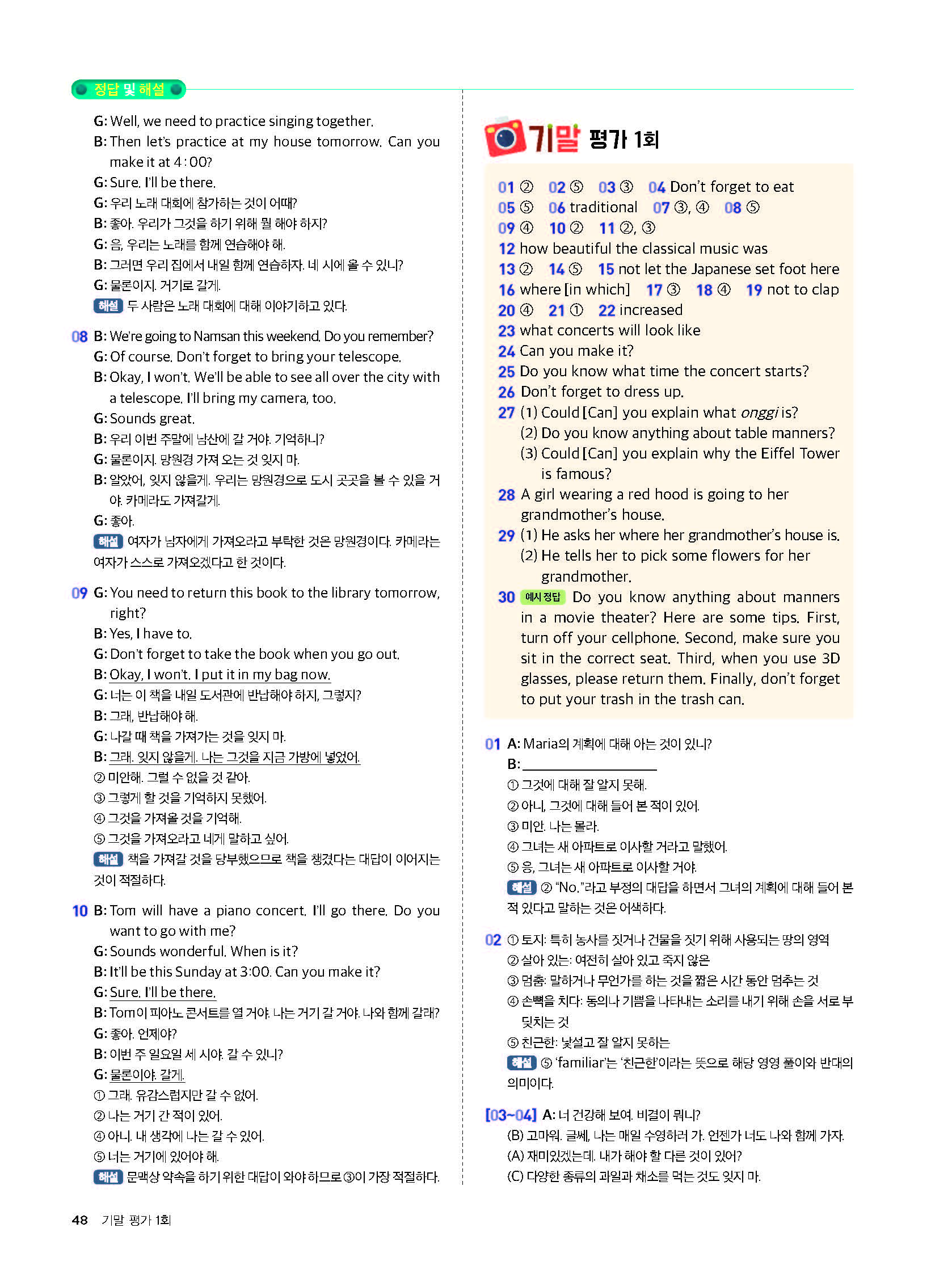YBM시사 중등영어2-2 송미정 평가문제집 사진답지 빠른답지 모바일최적화