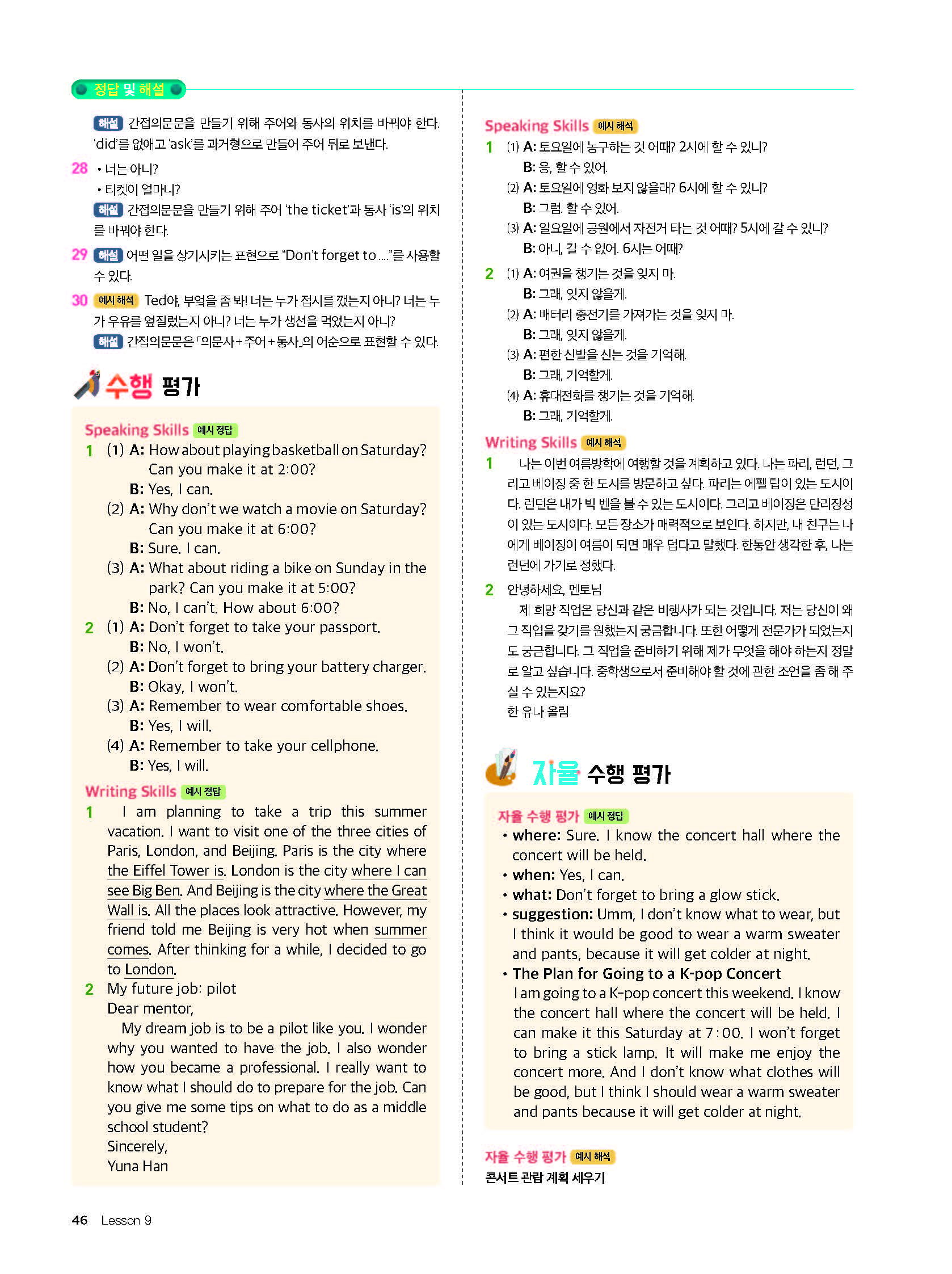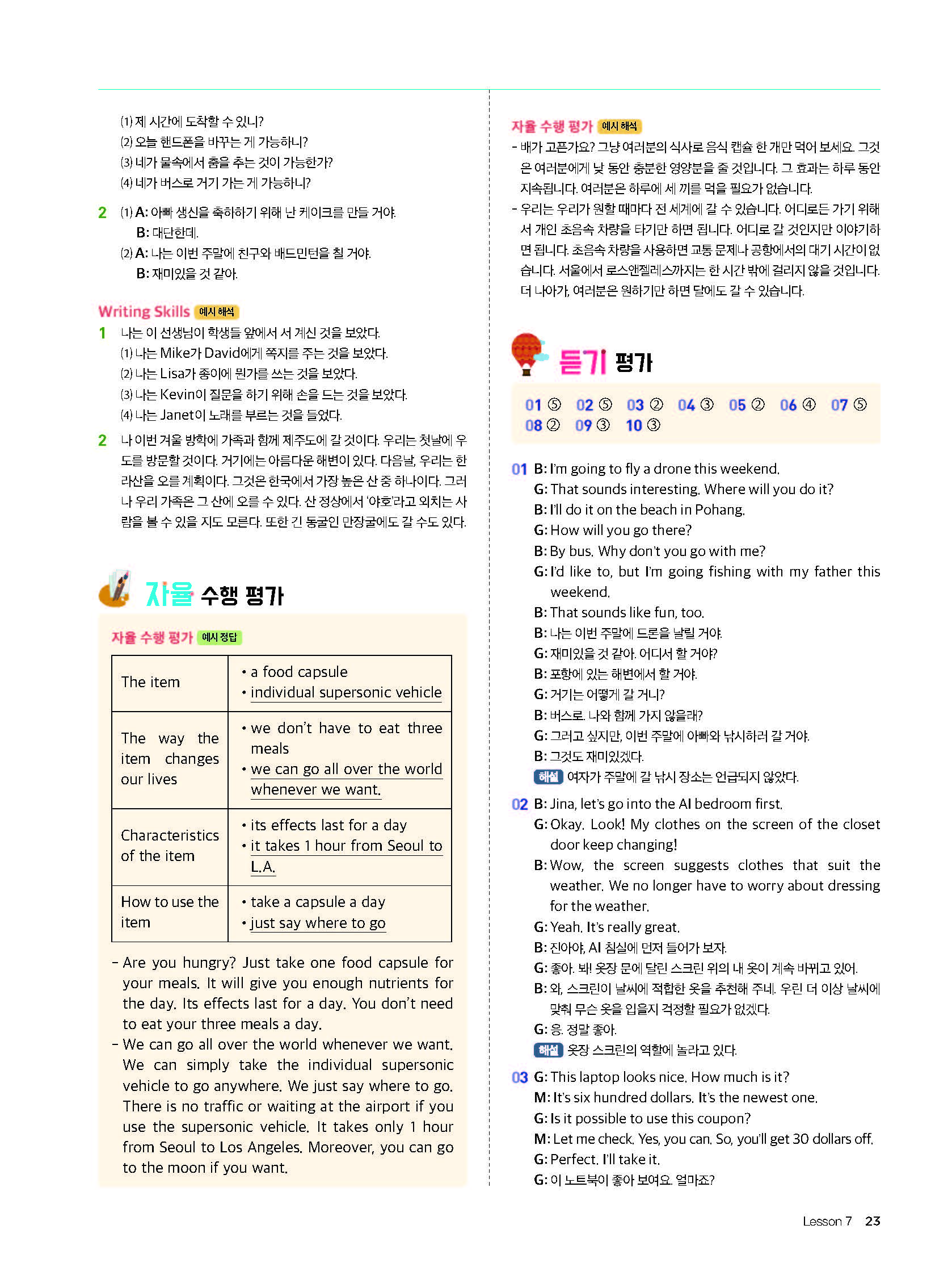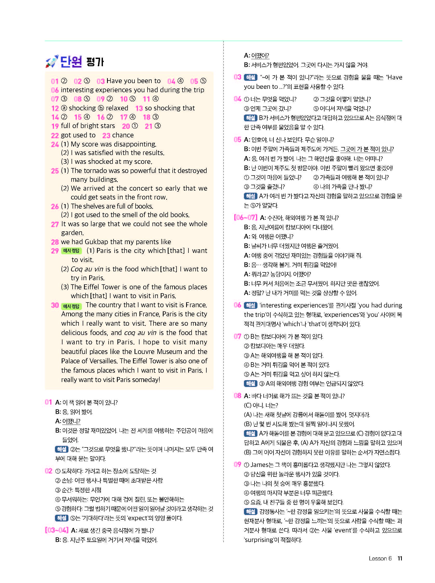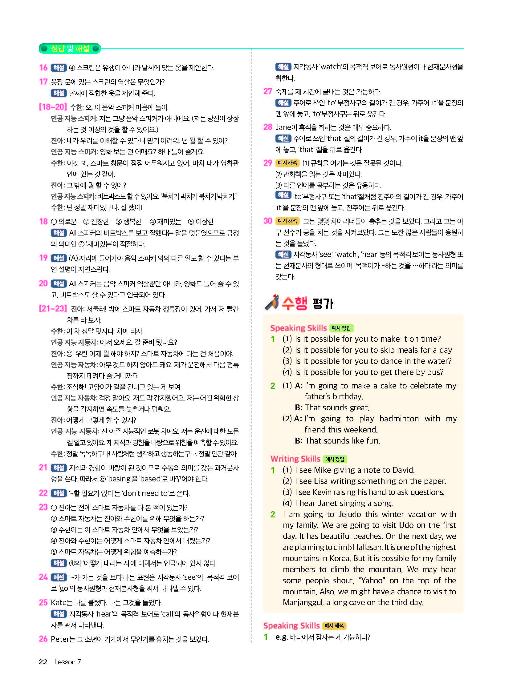 YBM시사 중등영어2-2 송미정 평가문제집 사진답지 빠른답지 모바일최적화