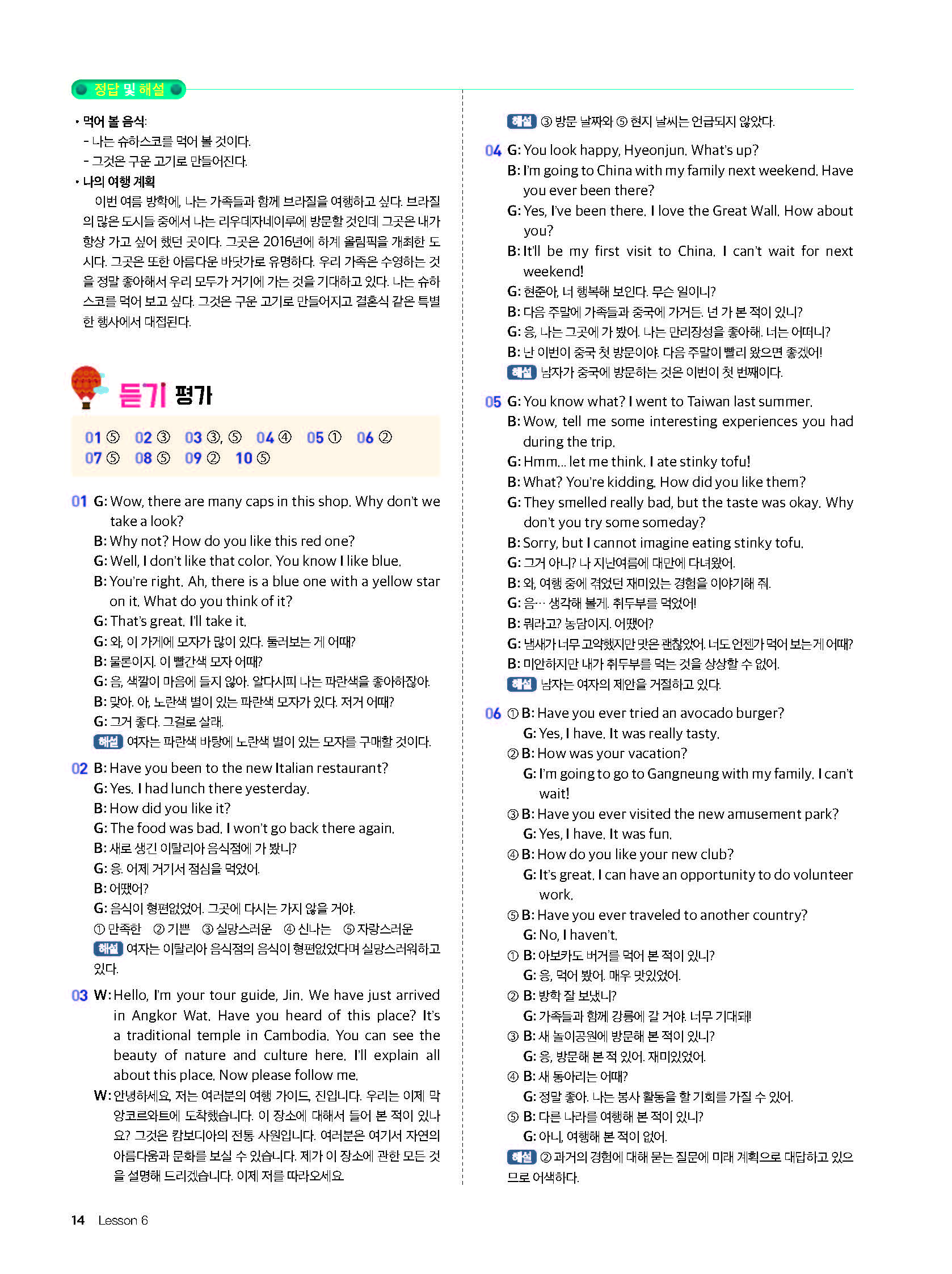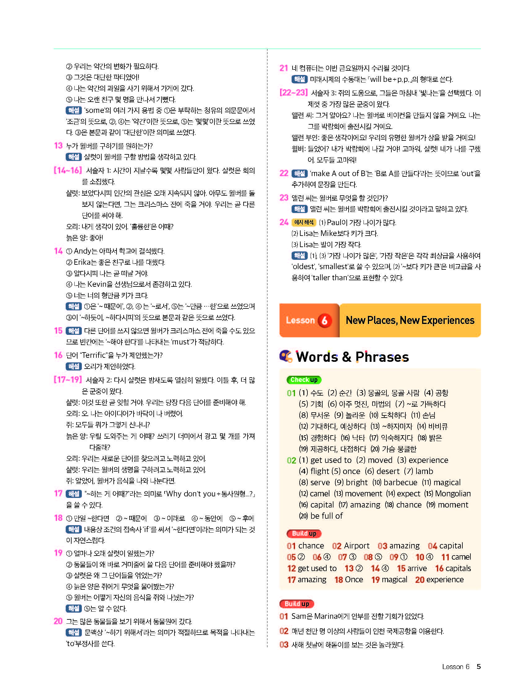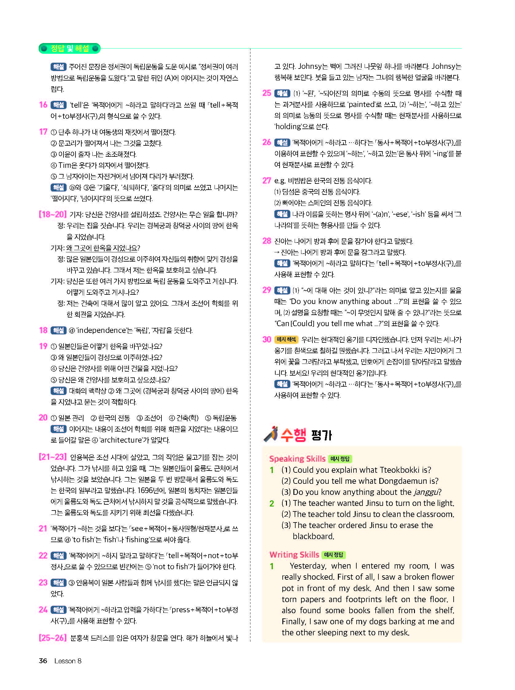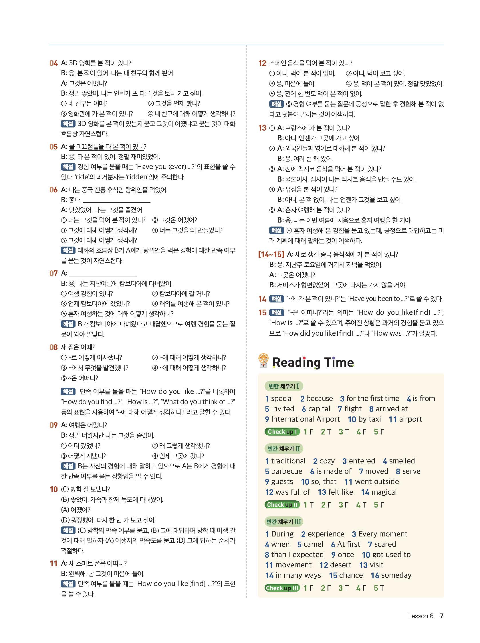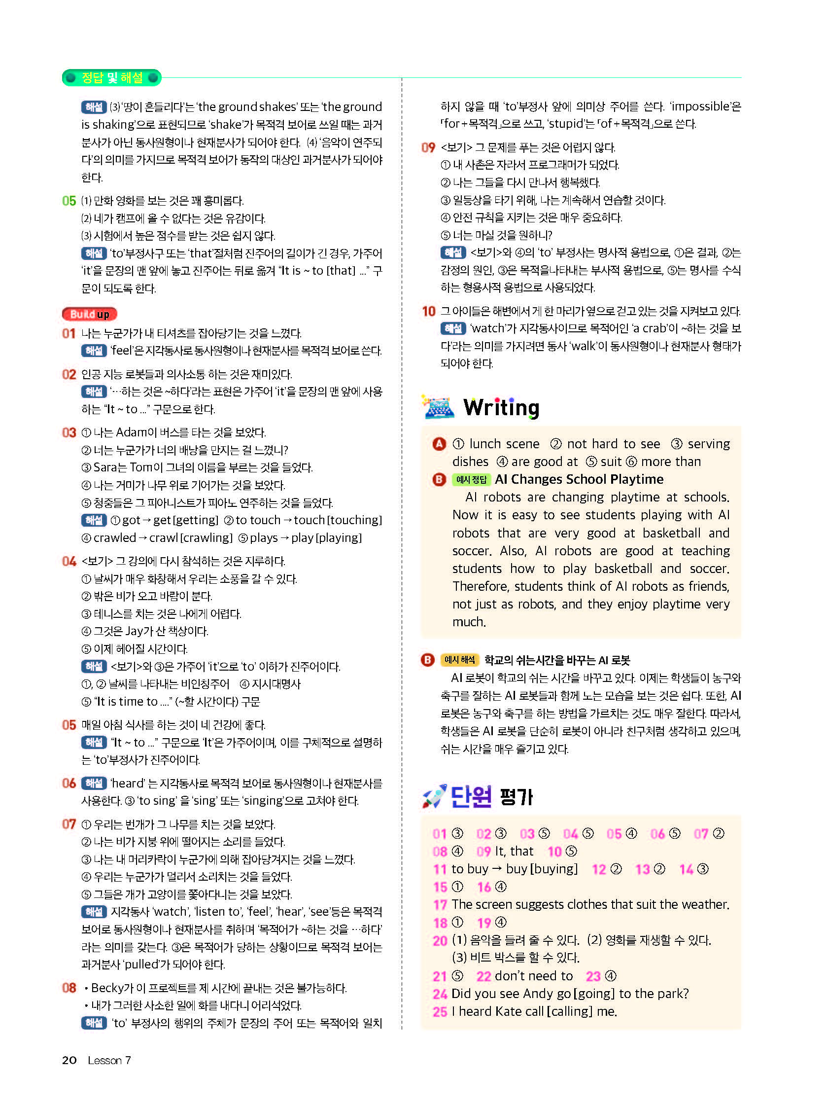 YBM시사 중등영어2-2 송미정 평가문제집 사진답지 빠른답지 모바일최적화