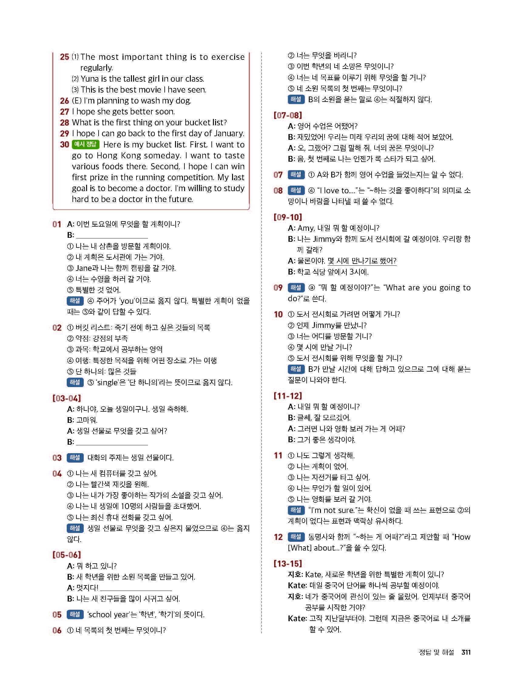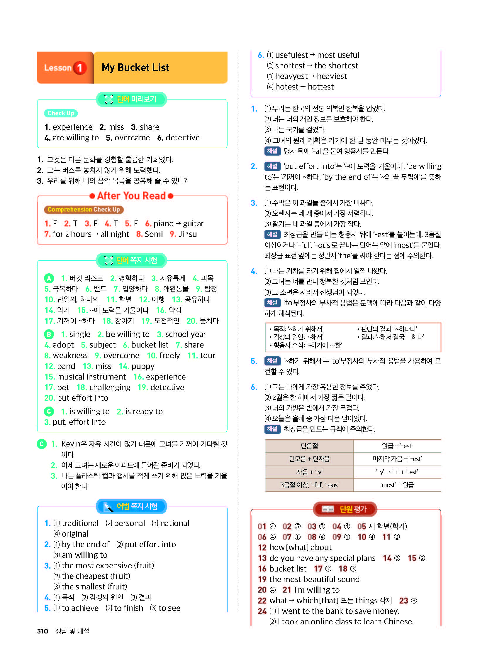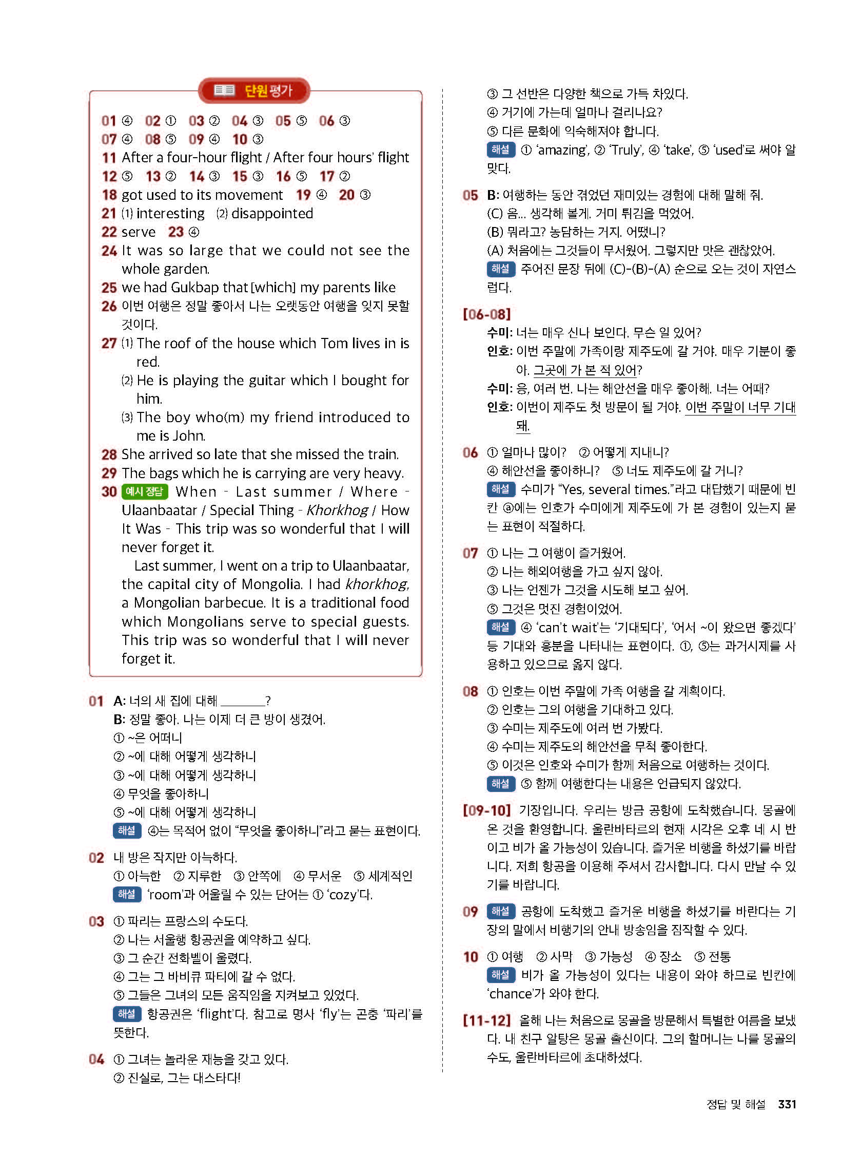 YBM시사 중등영어2 송미정 교과서 해설서 자습서 사진답지 빠른답지 모바일최적화