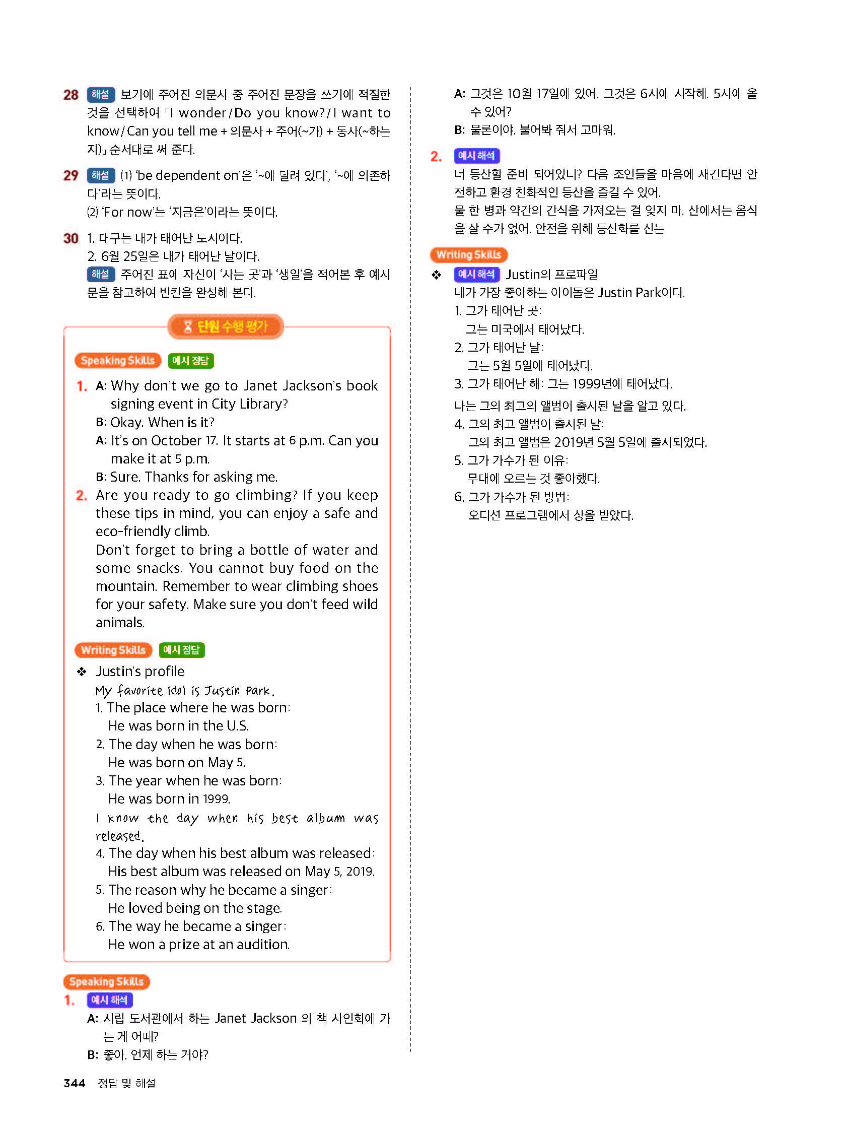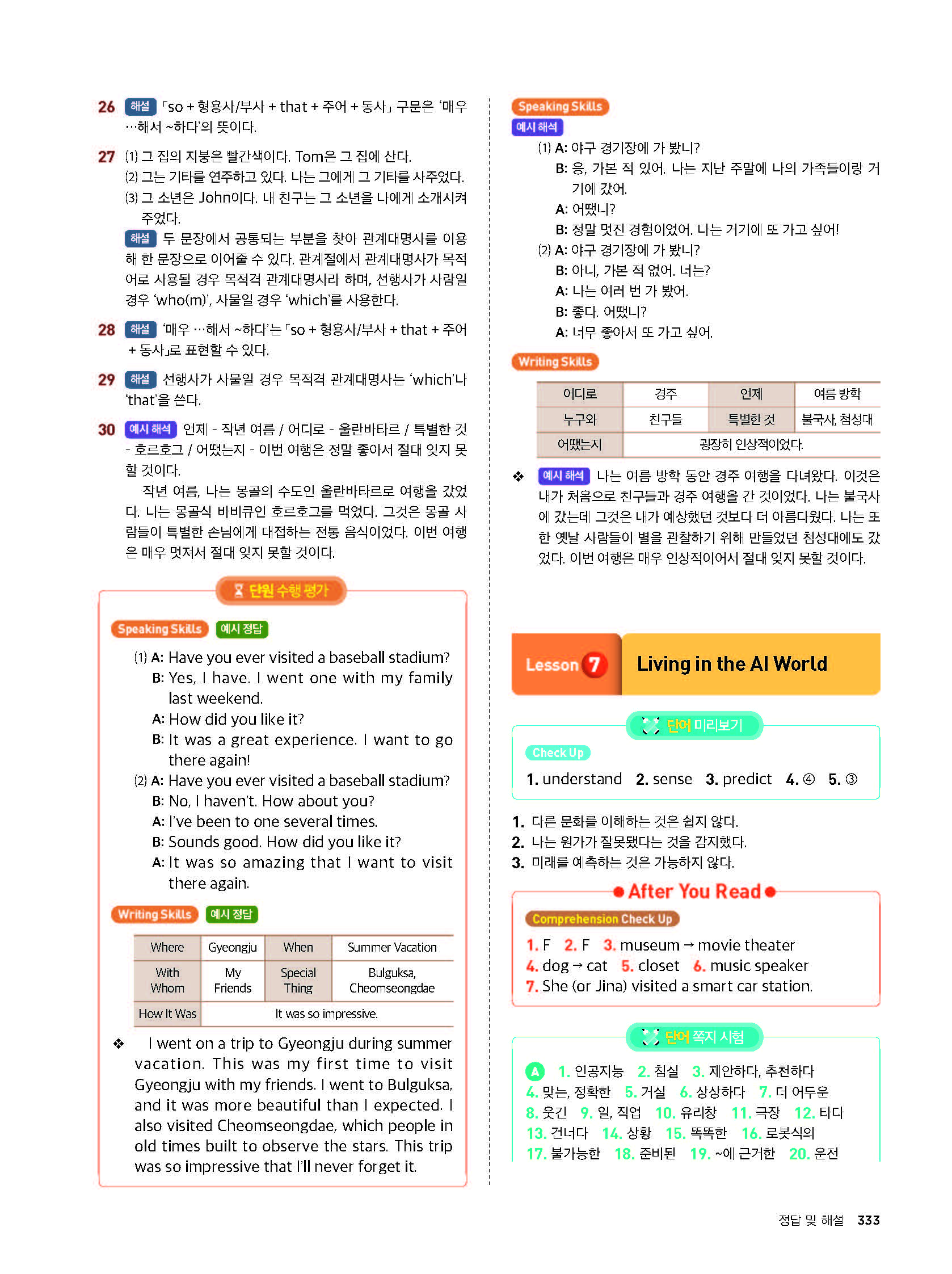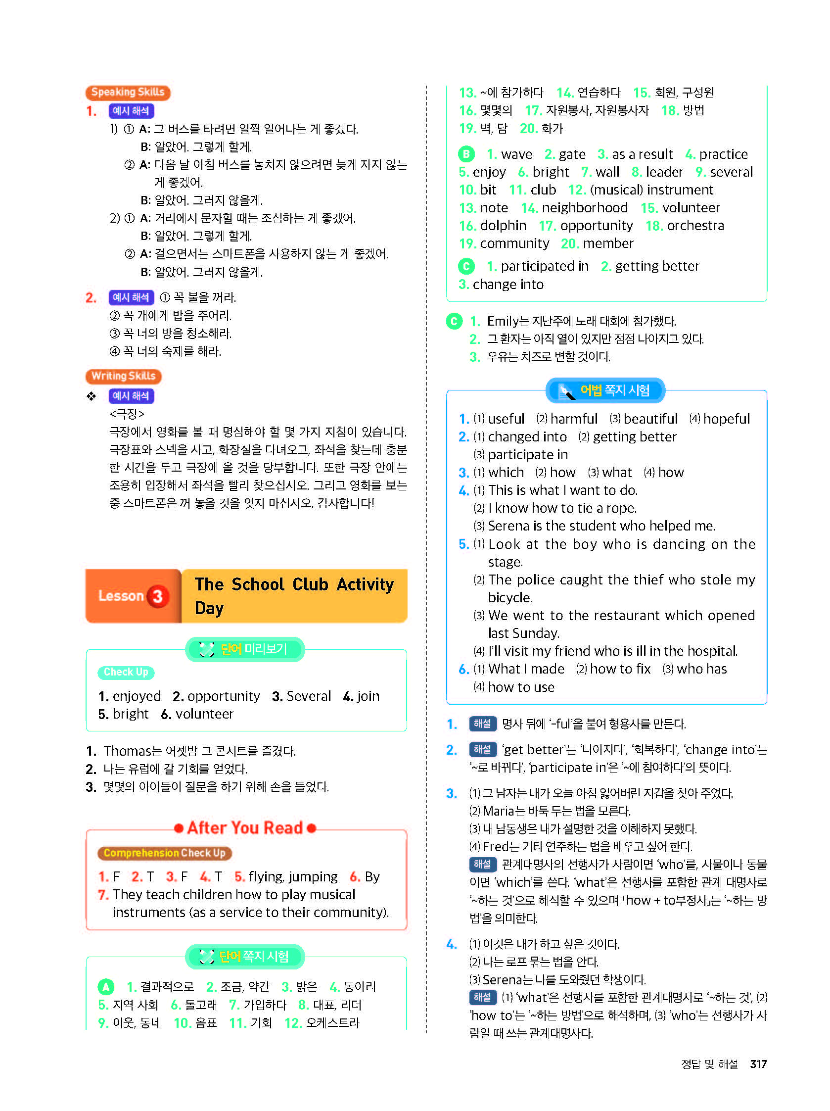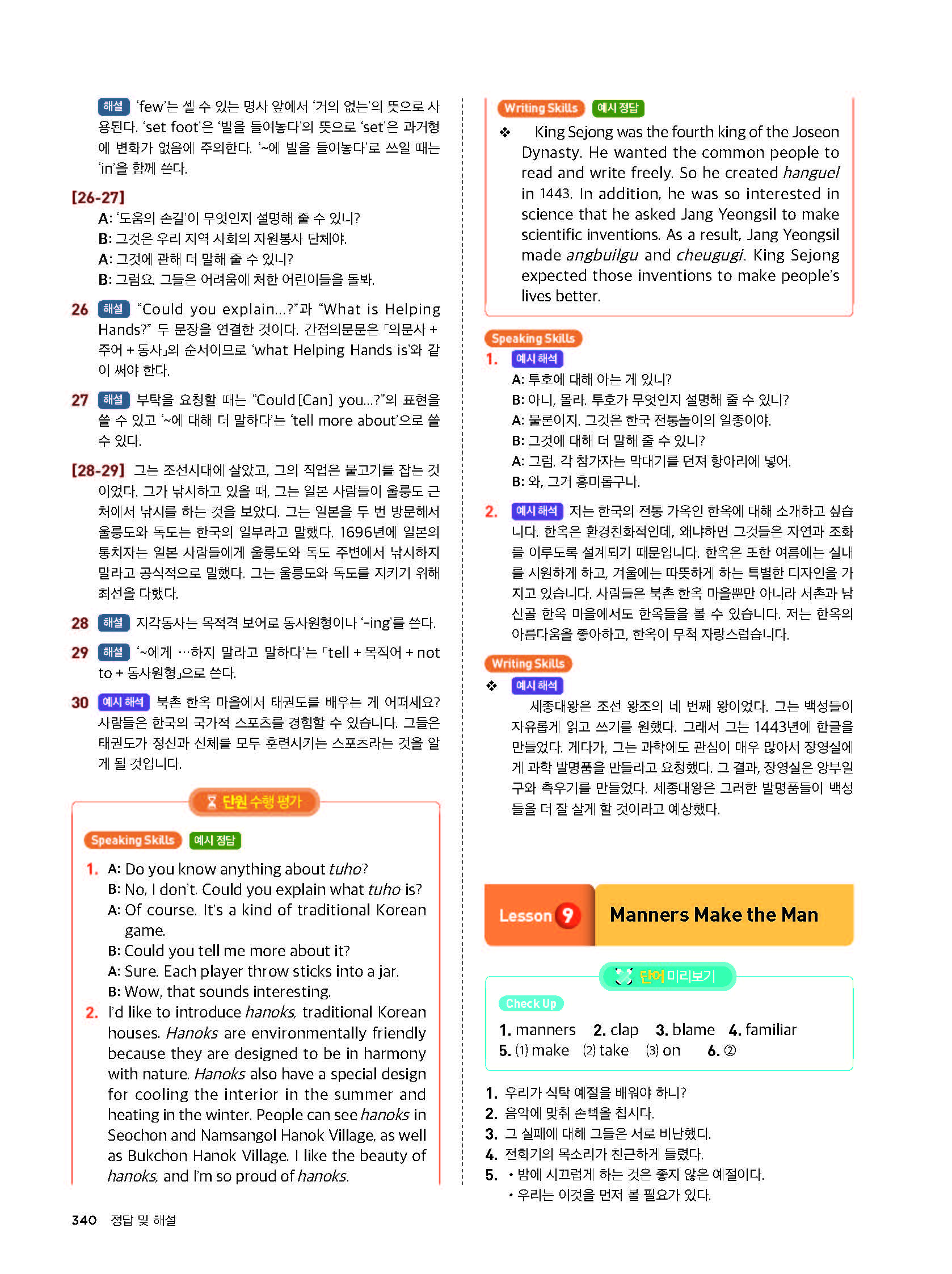 YBM시사 중등영어2 송미정 교과서 해설서 자습서 사진답지 빠른답지 모바일최적화