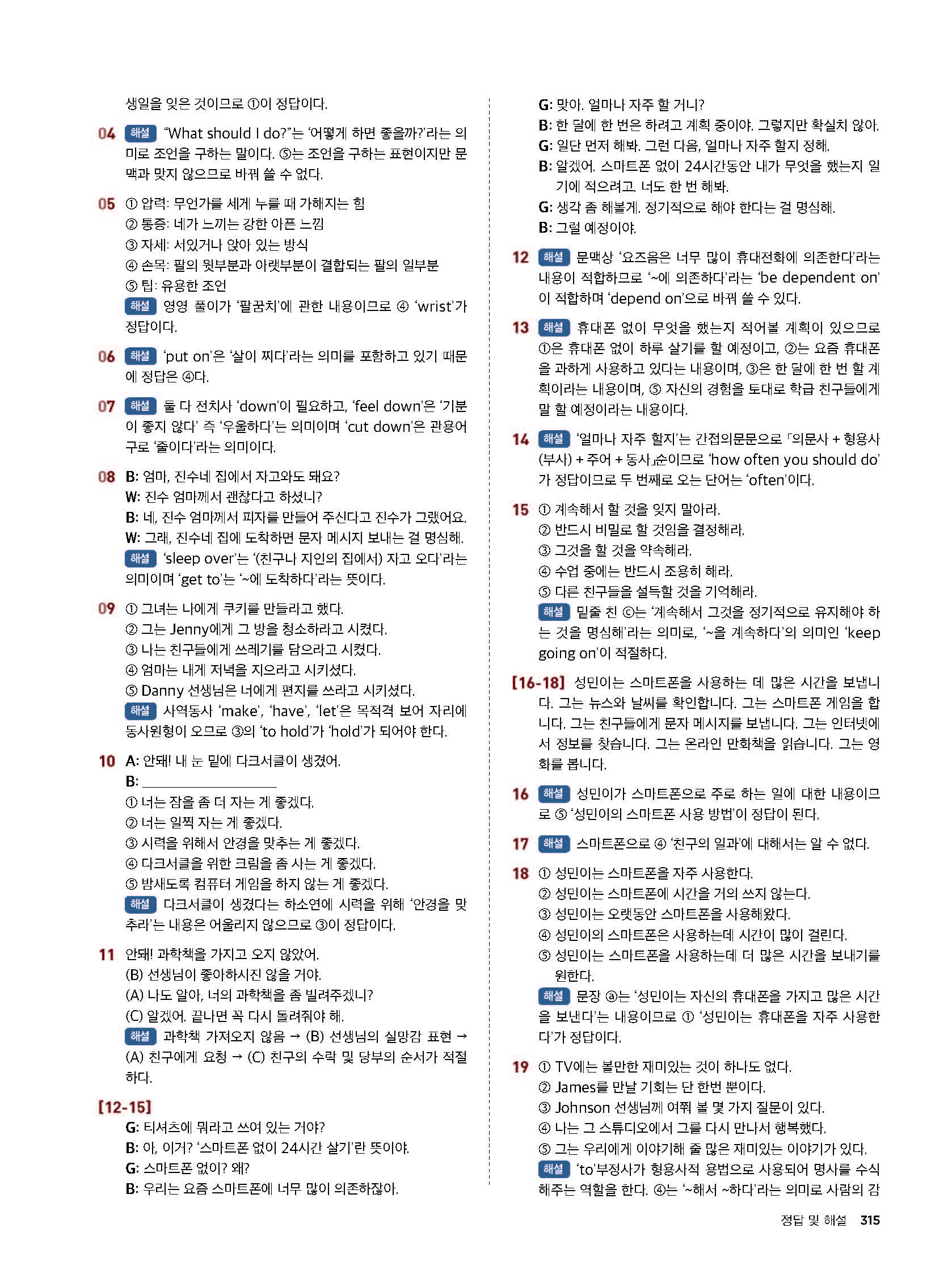 다운로드 받을필요 없이 바로 볼수 있는 모바일에 최적화된 답지 입니다