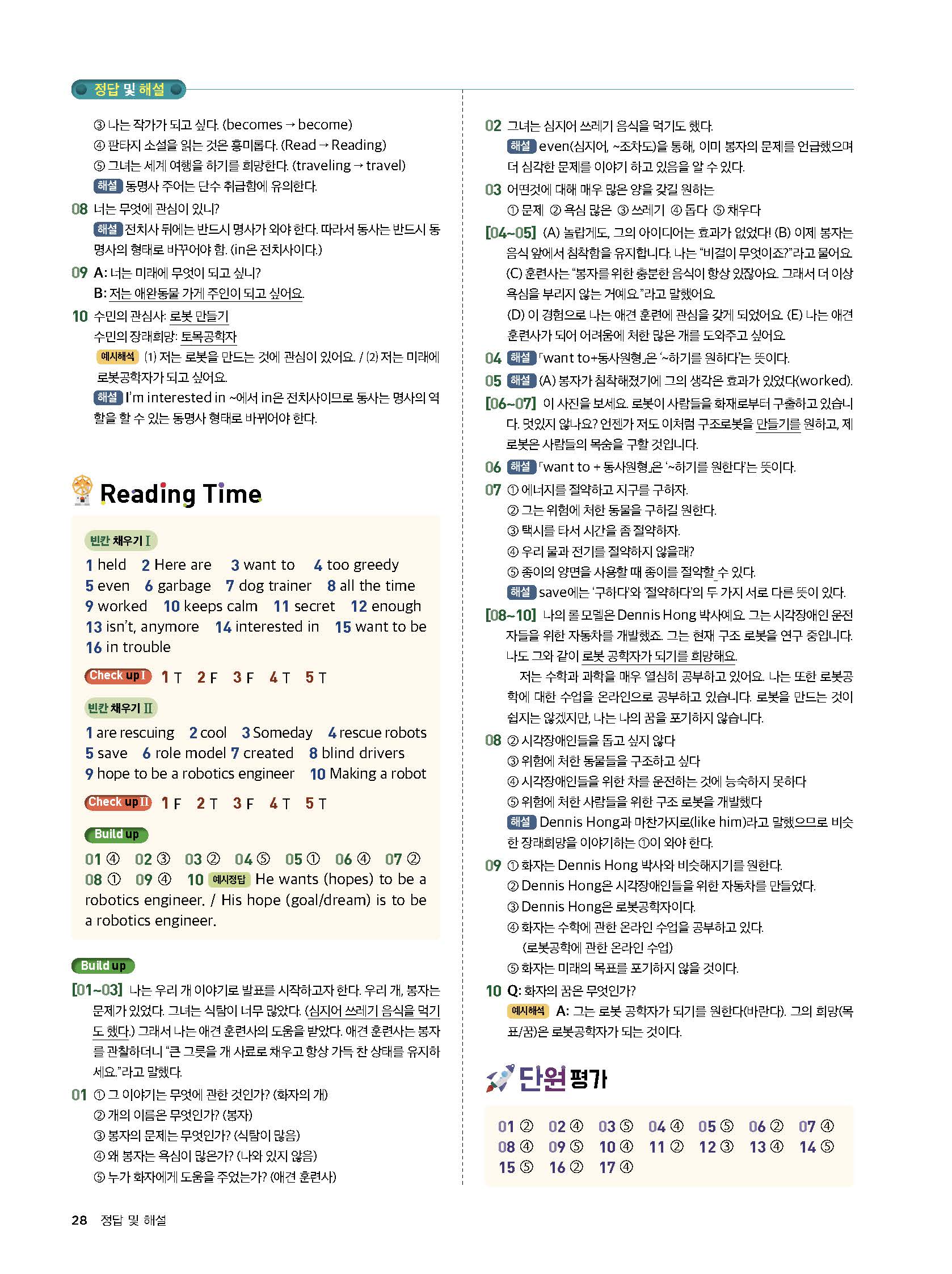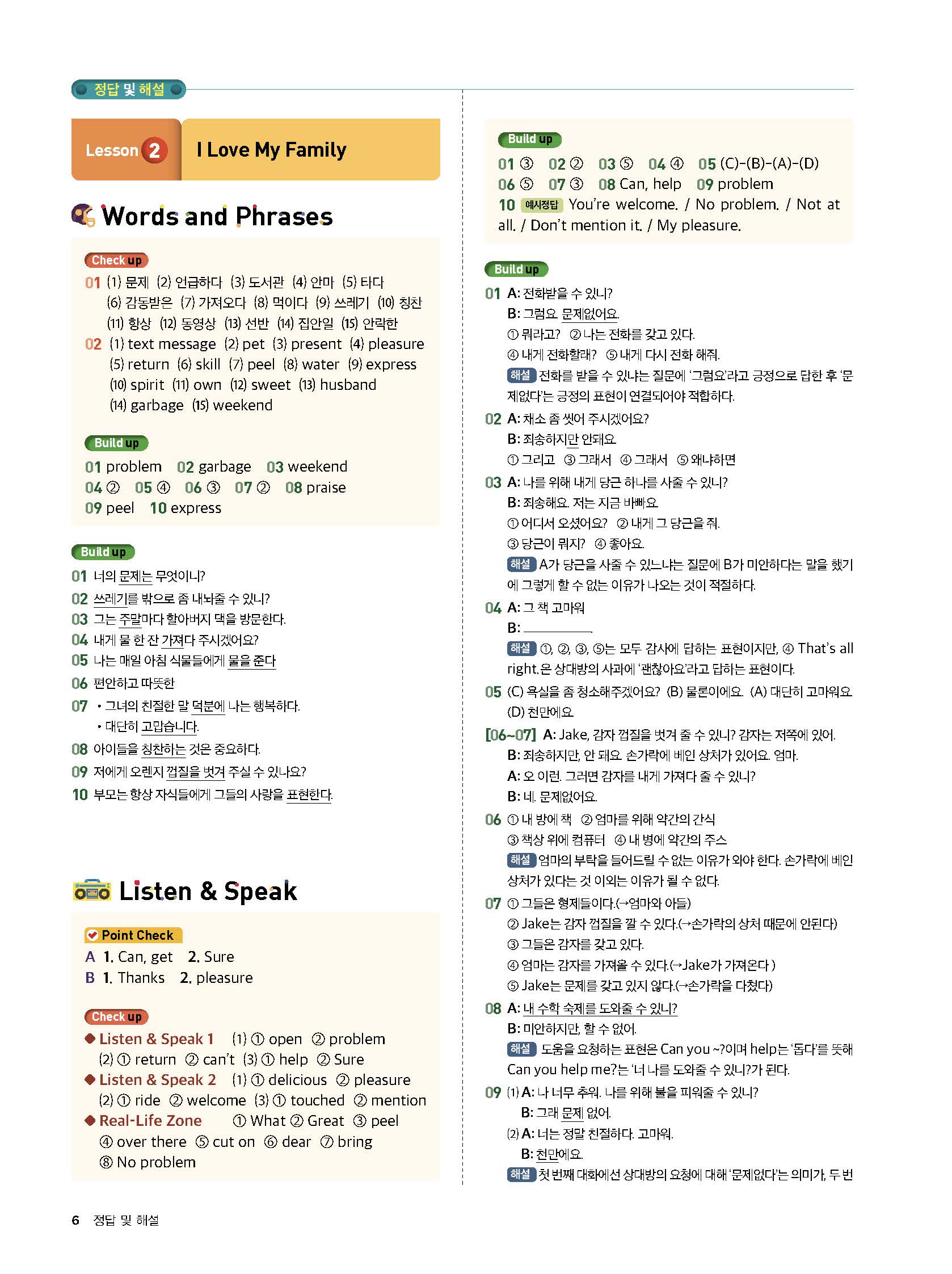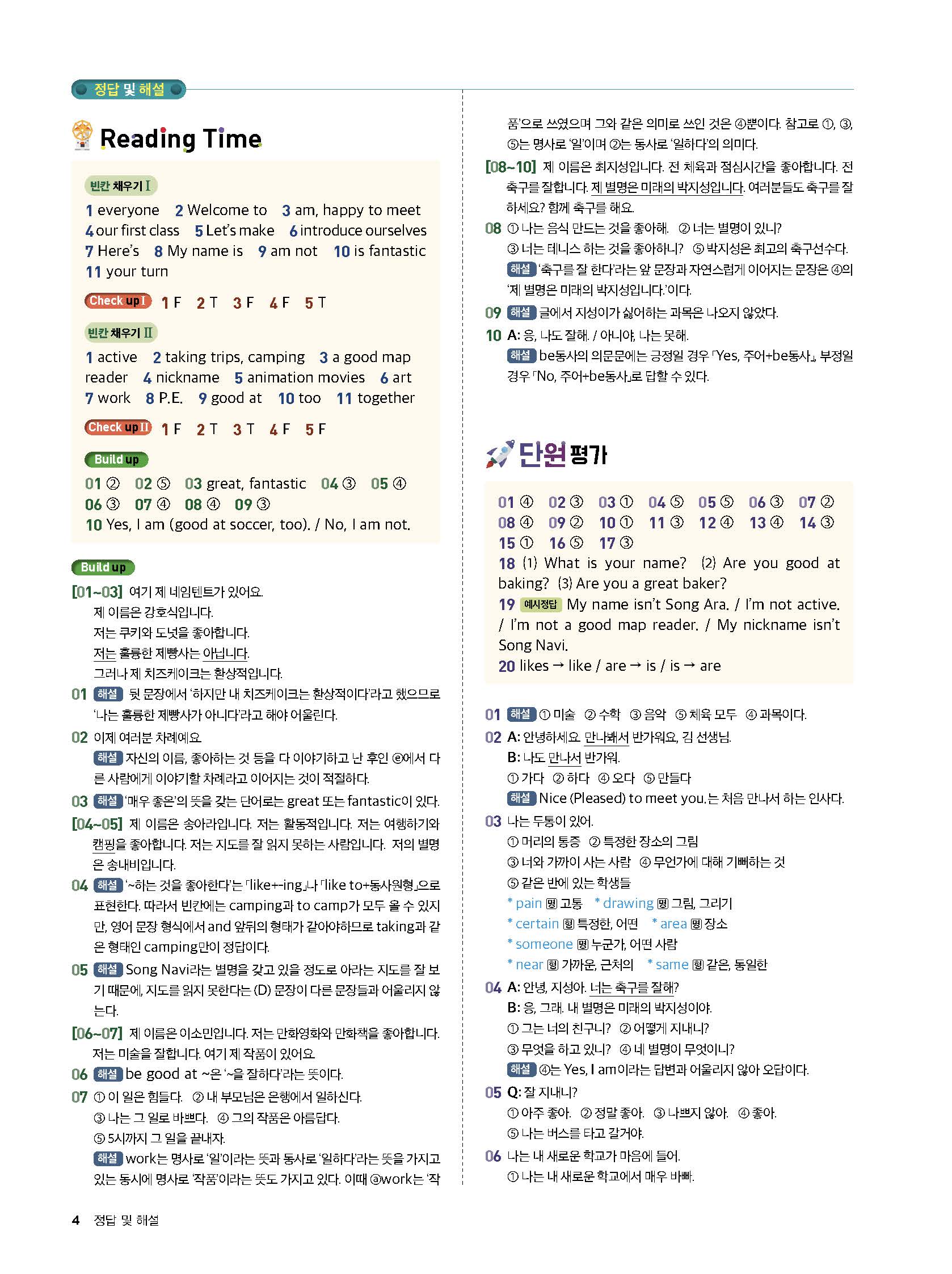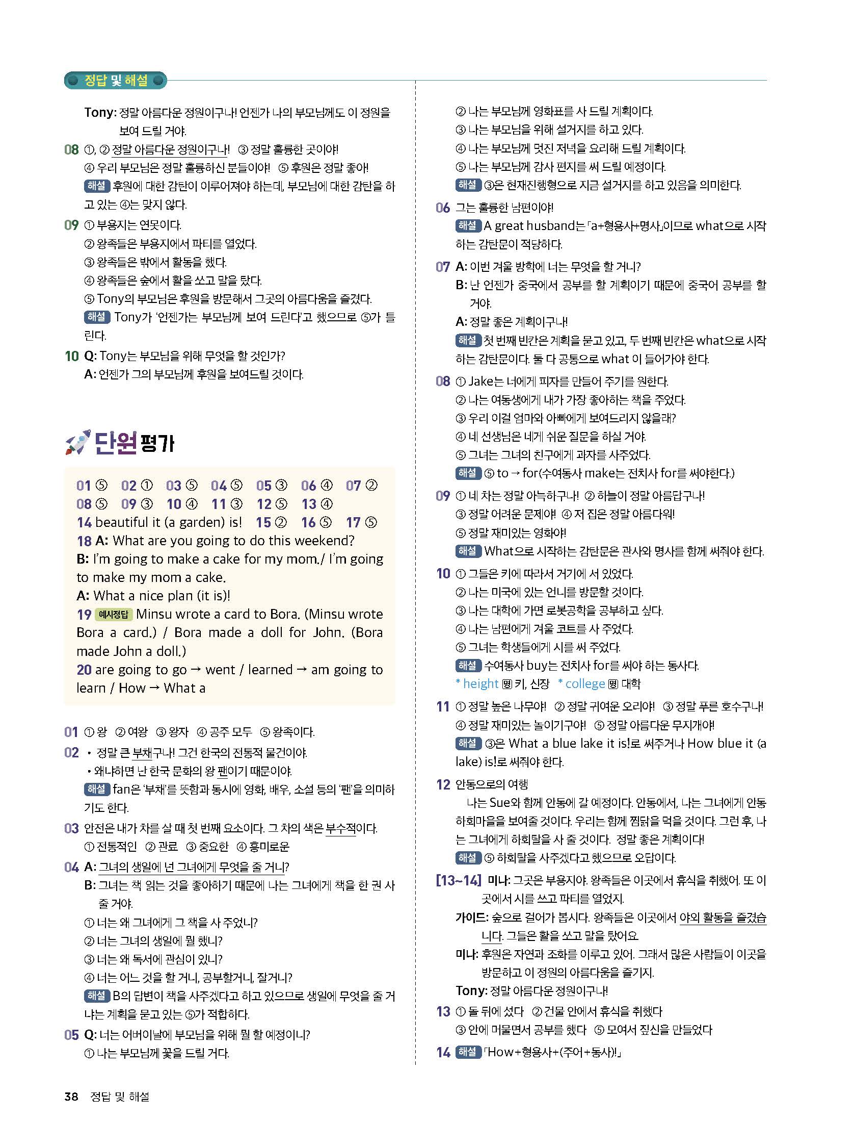 YBM시사 중등영어1 송미정 교과서 평가문제집 사진답지 빠른답지 모바일최적화