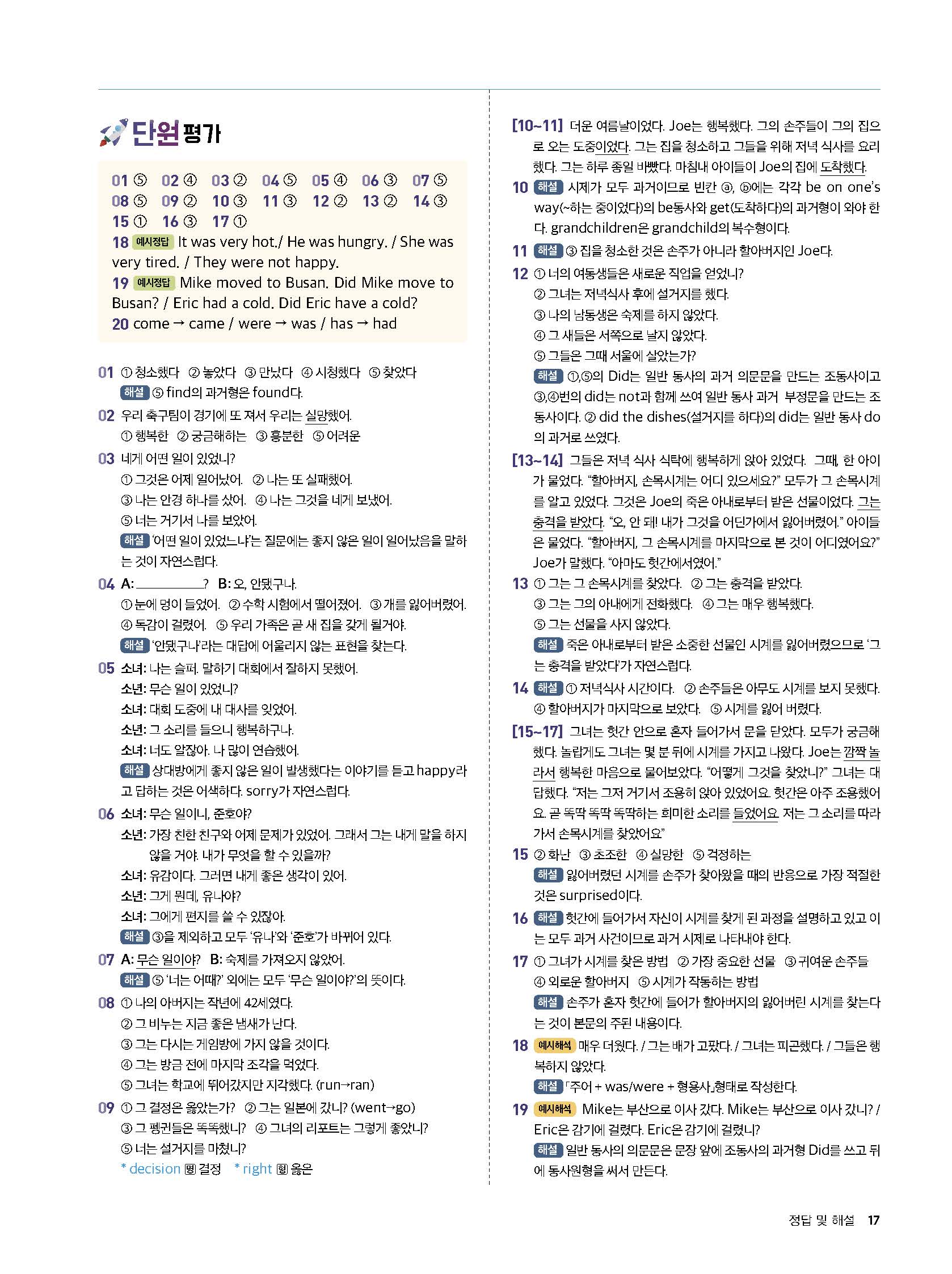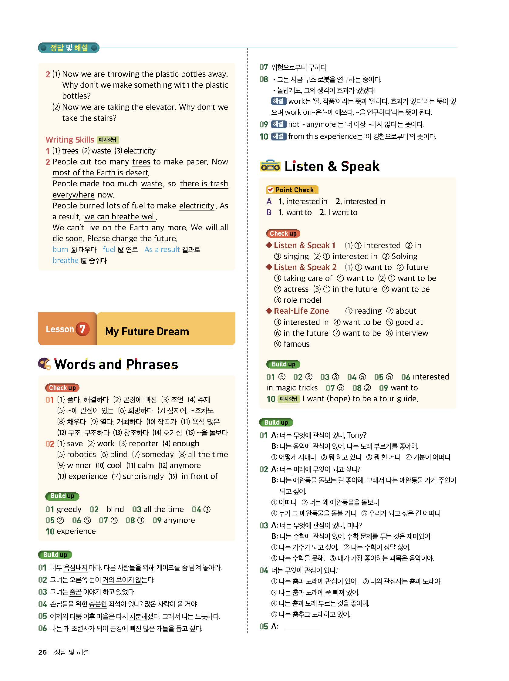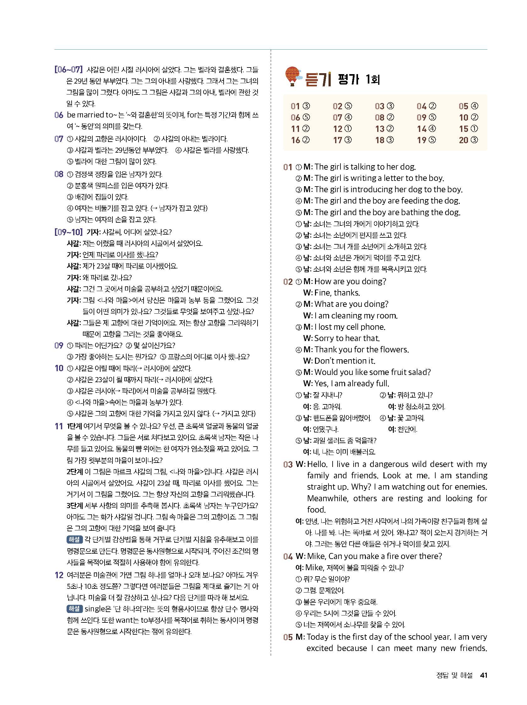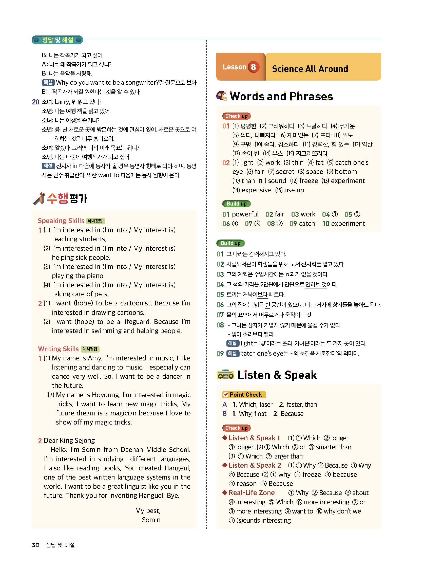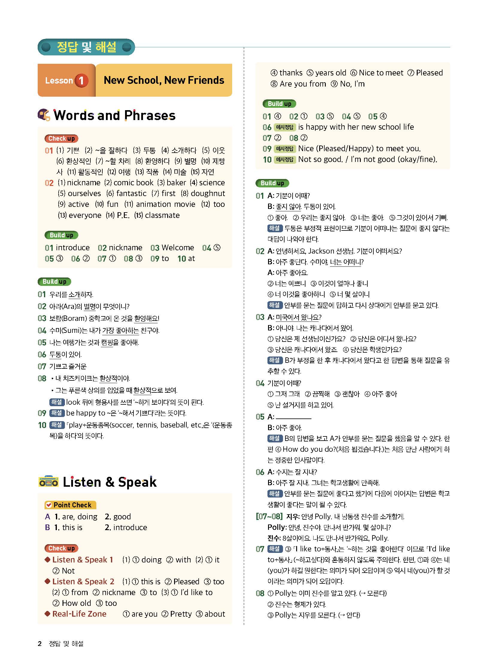 YBM시사 중등영어1 송미정 교과서 평가문제집 사진답지 빠른답지 모바일최적화
