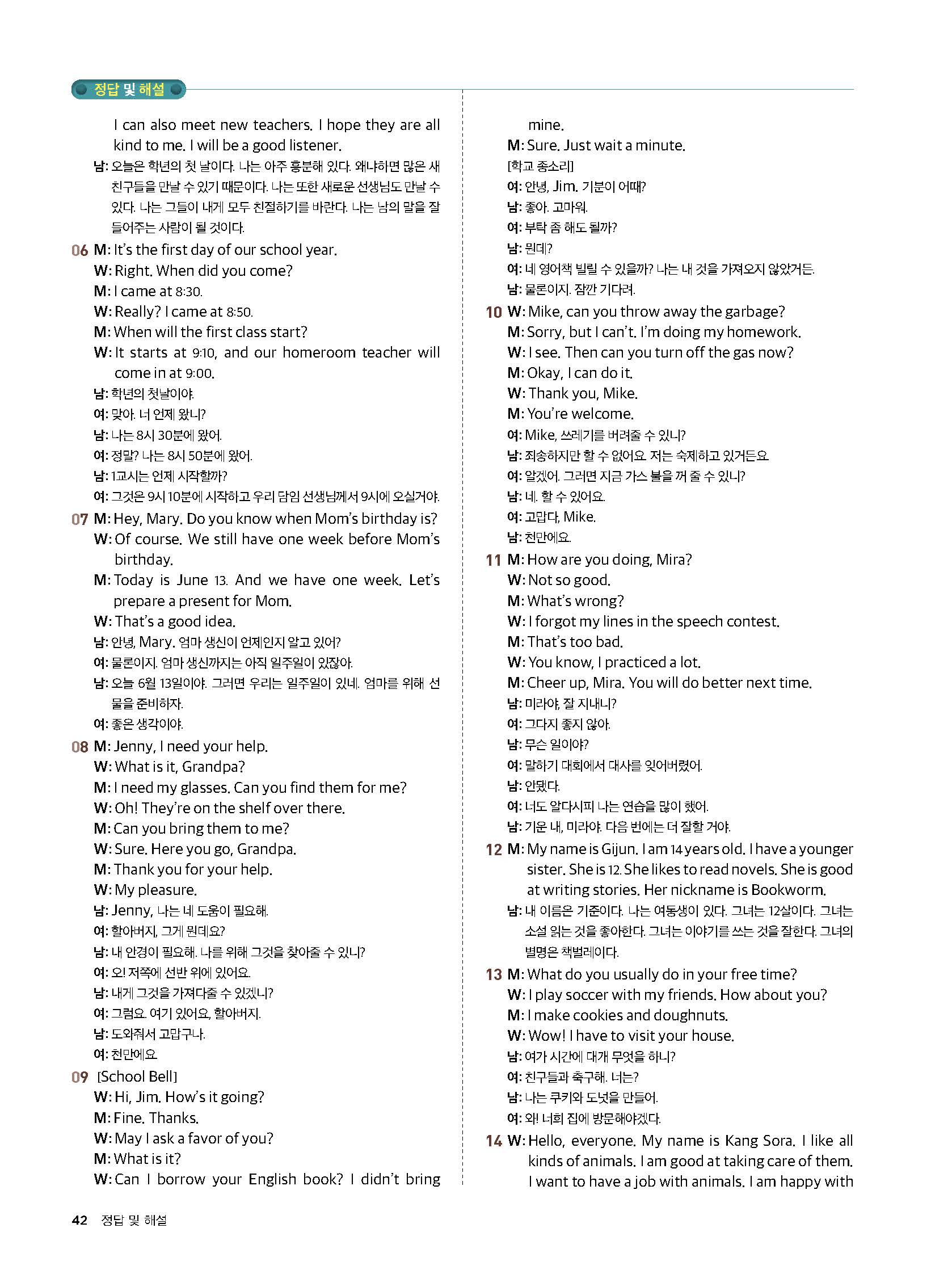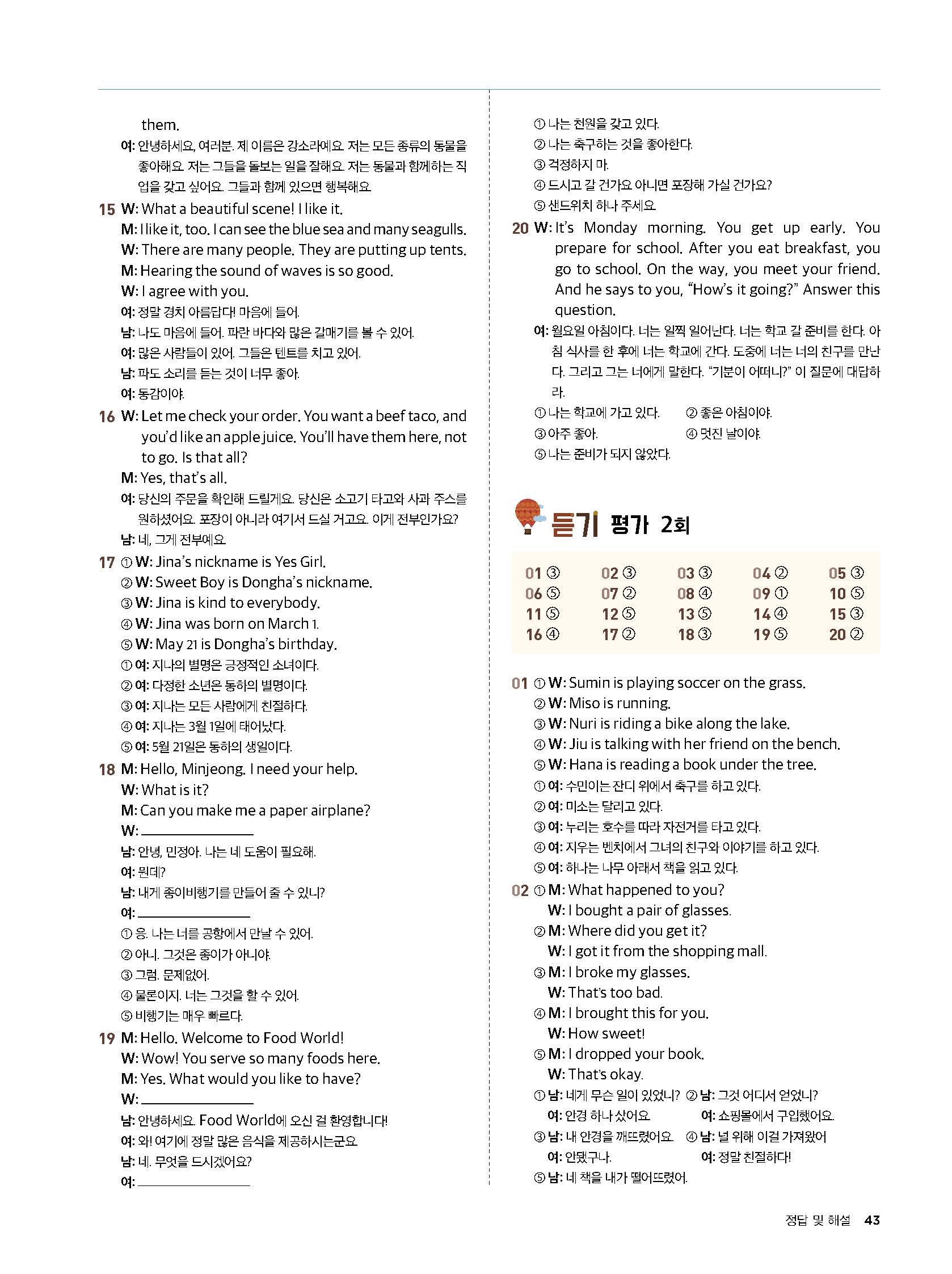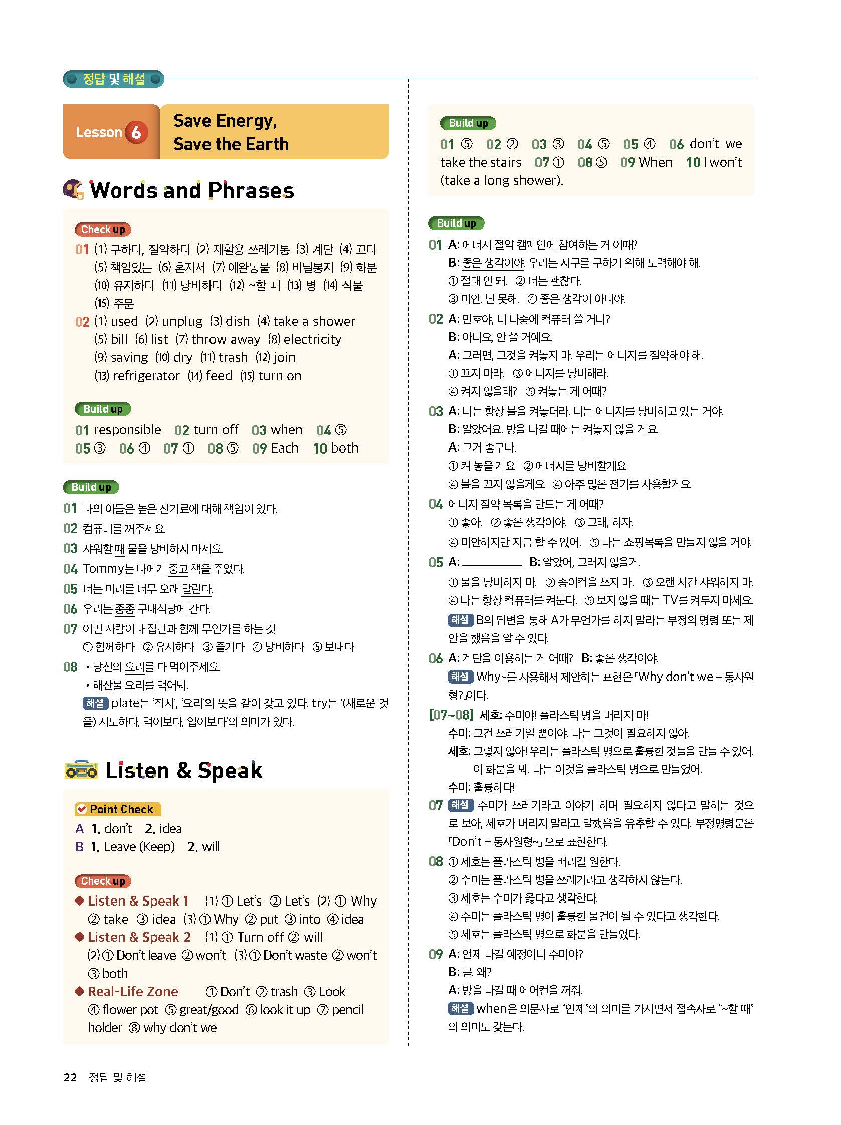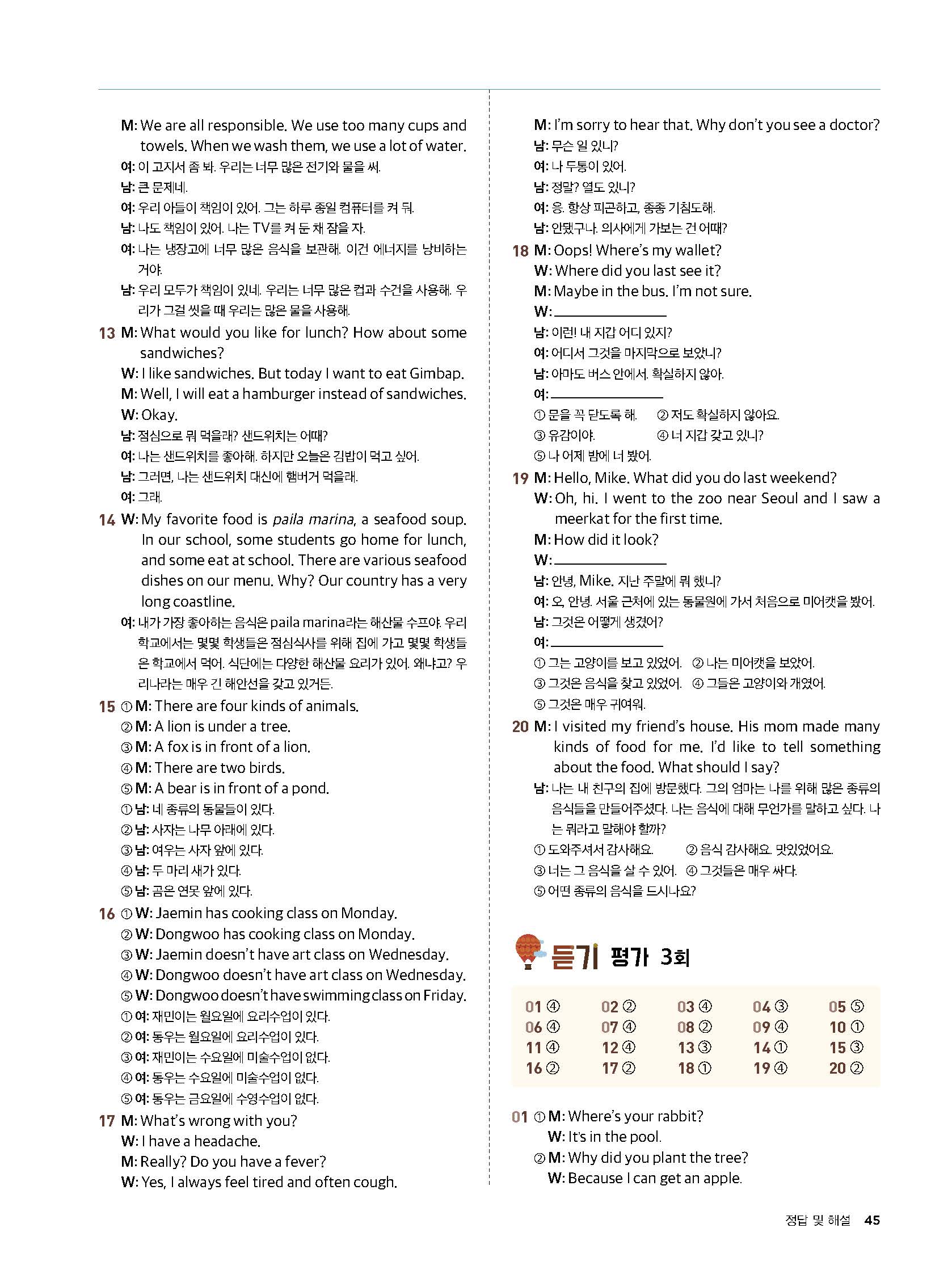 YBM시사 중등영어1 송미정 교과서 평가문제집 사진답지 빠른답지 모바일최적화