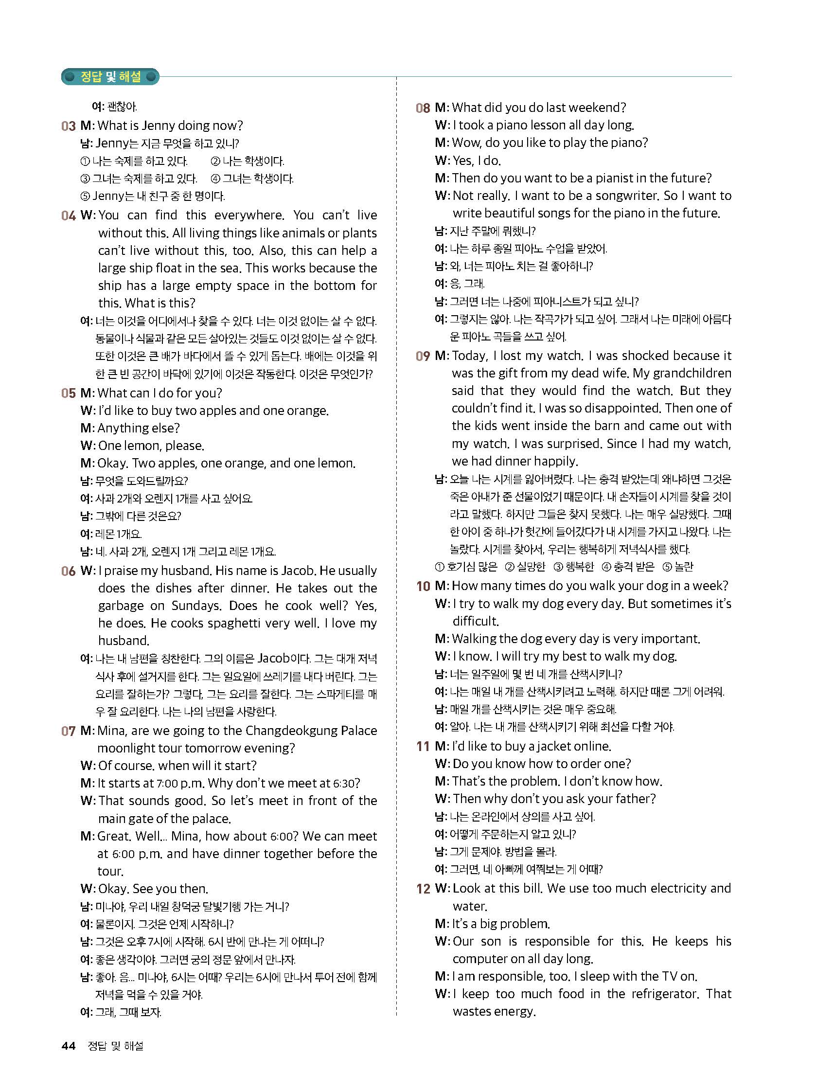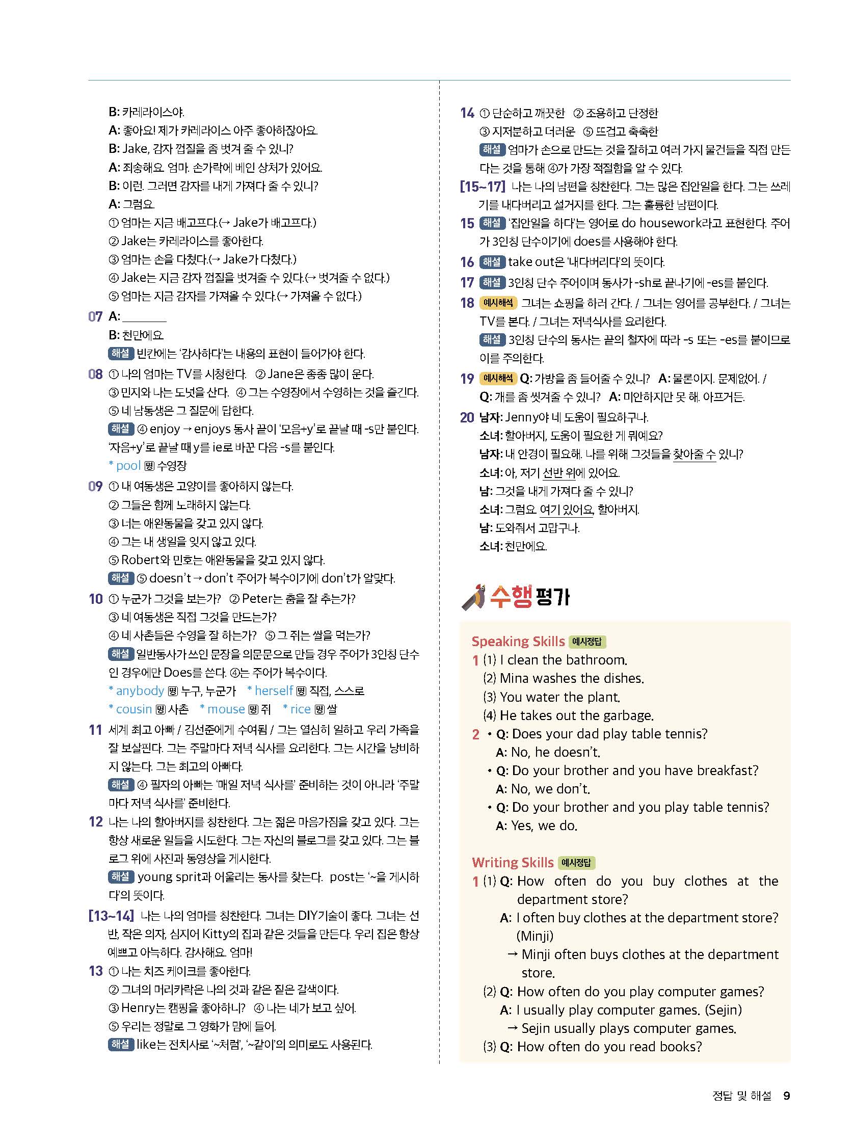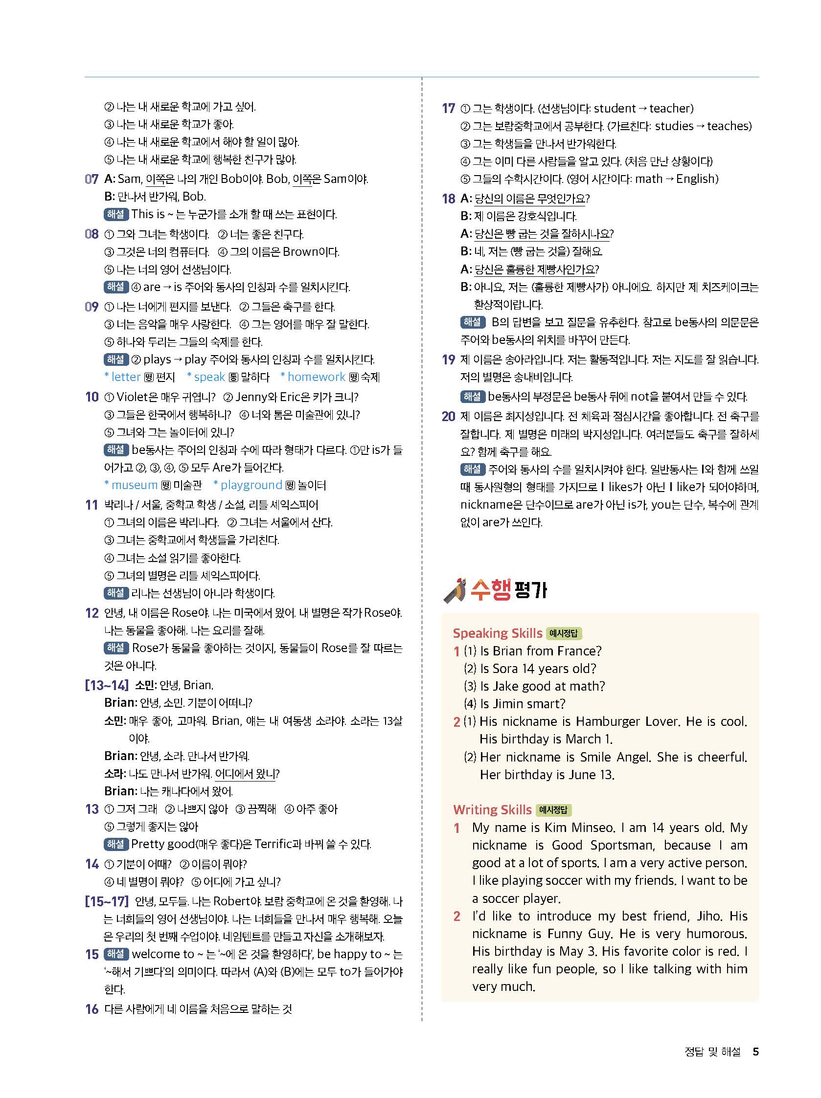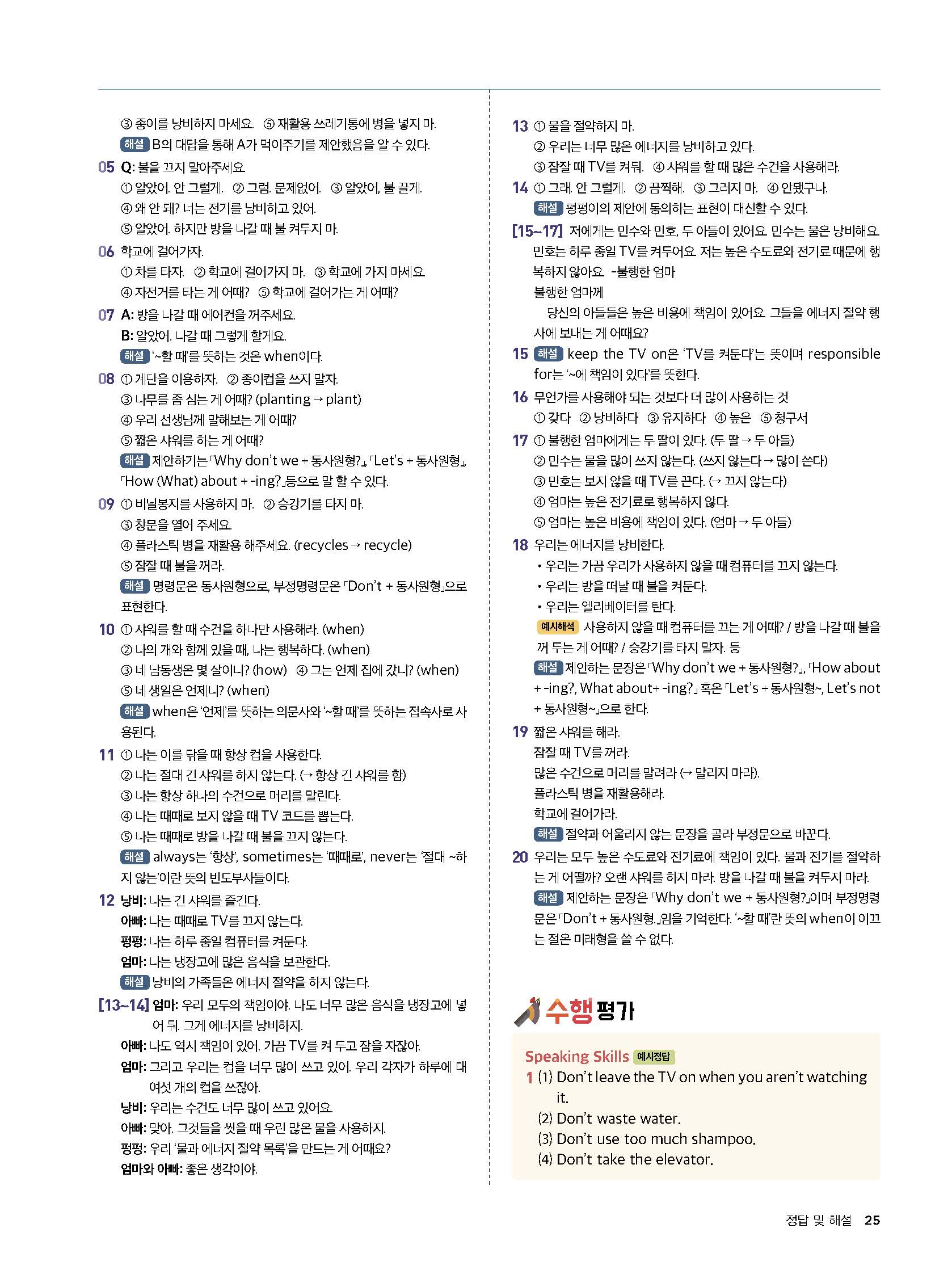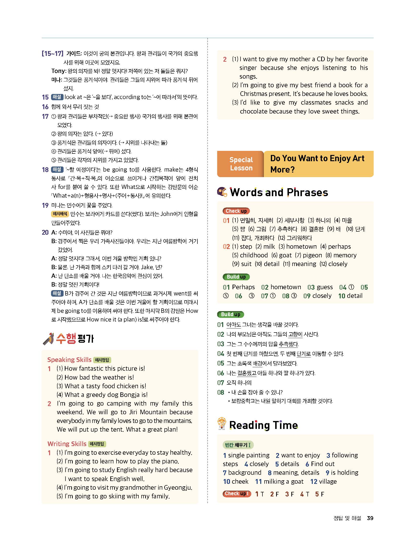 YBM시사 중등영어1 송미정 교과서 평가문제집 사진답지 빠른답지 모바일최적화