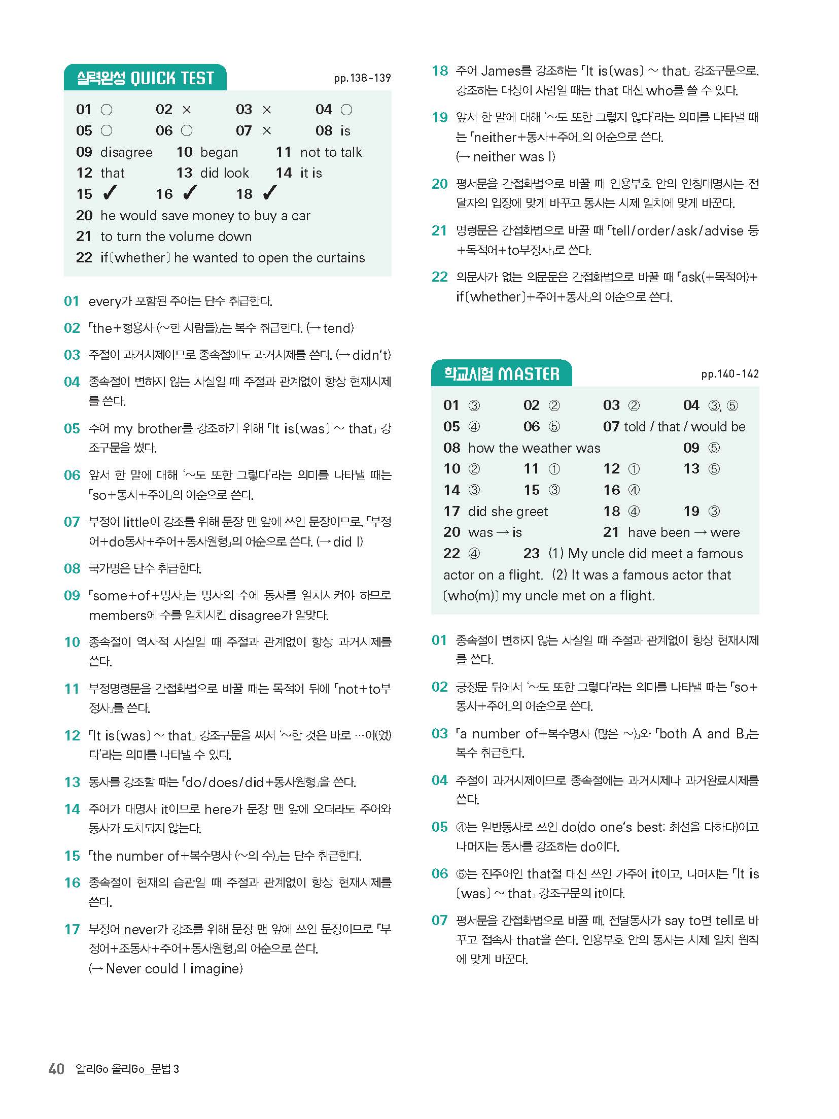 YBM시사 인터알리GO 올리GO 문법 3 사진답지 빠른답지 모바일최적화