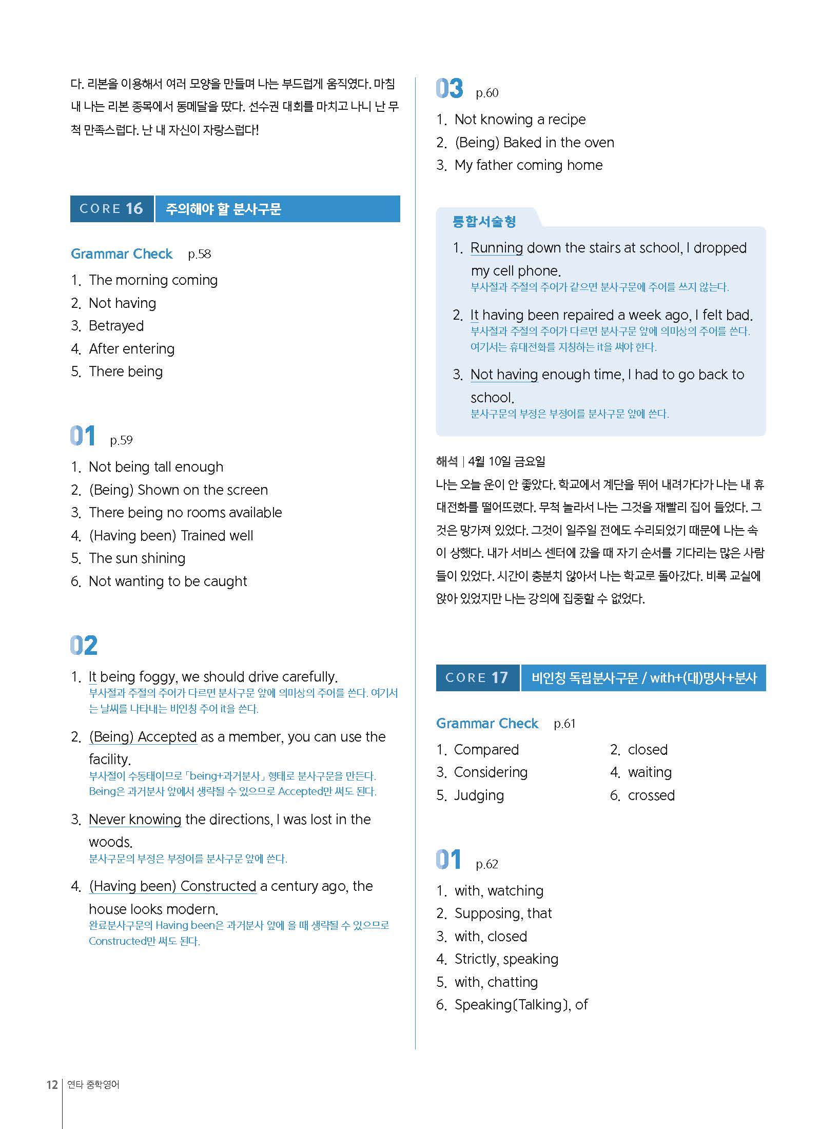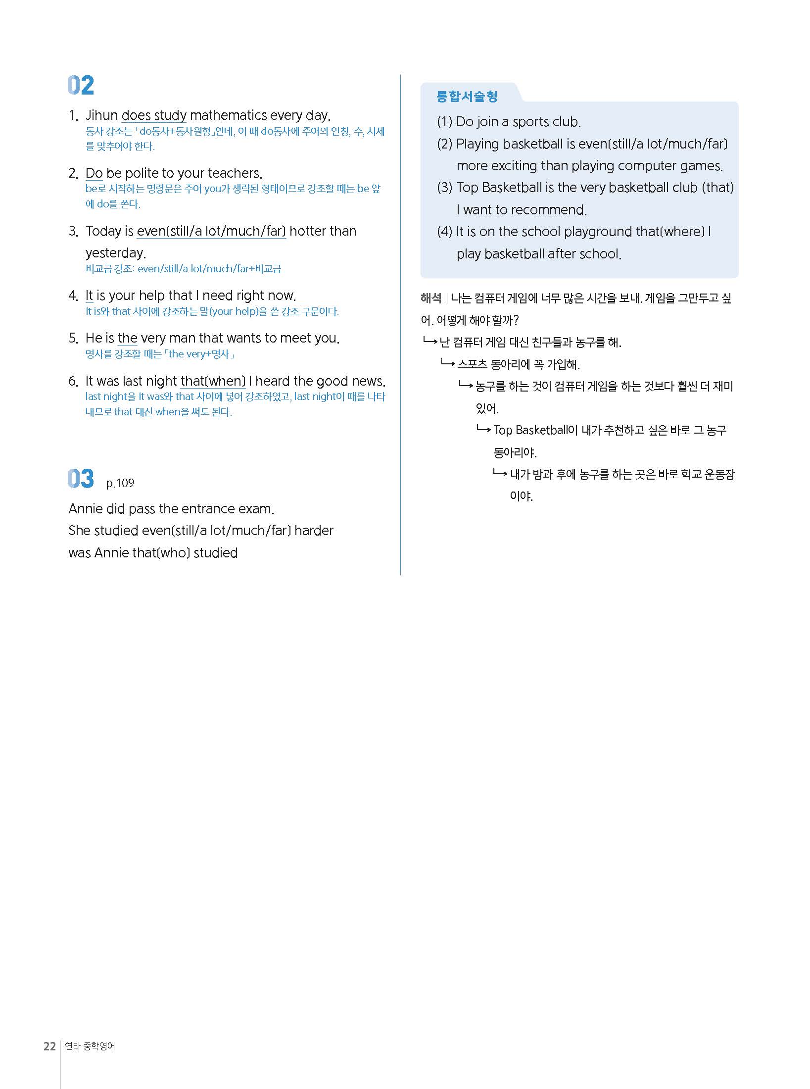 YBM시사 연타 중학영어 문법 쓰기 레벨3 사진답지 빠른답지 모바일최적화