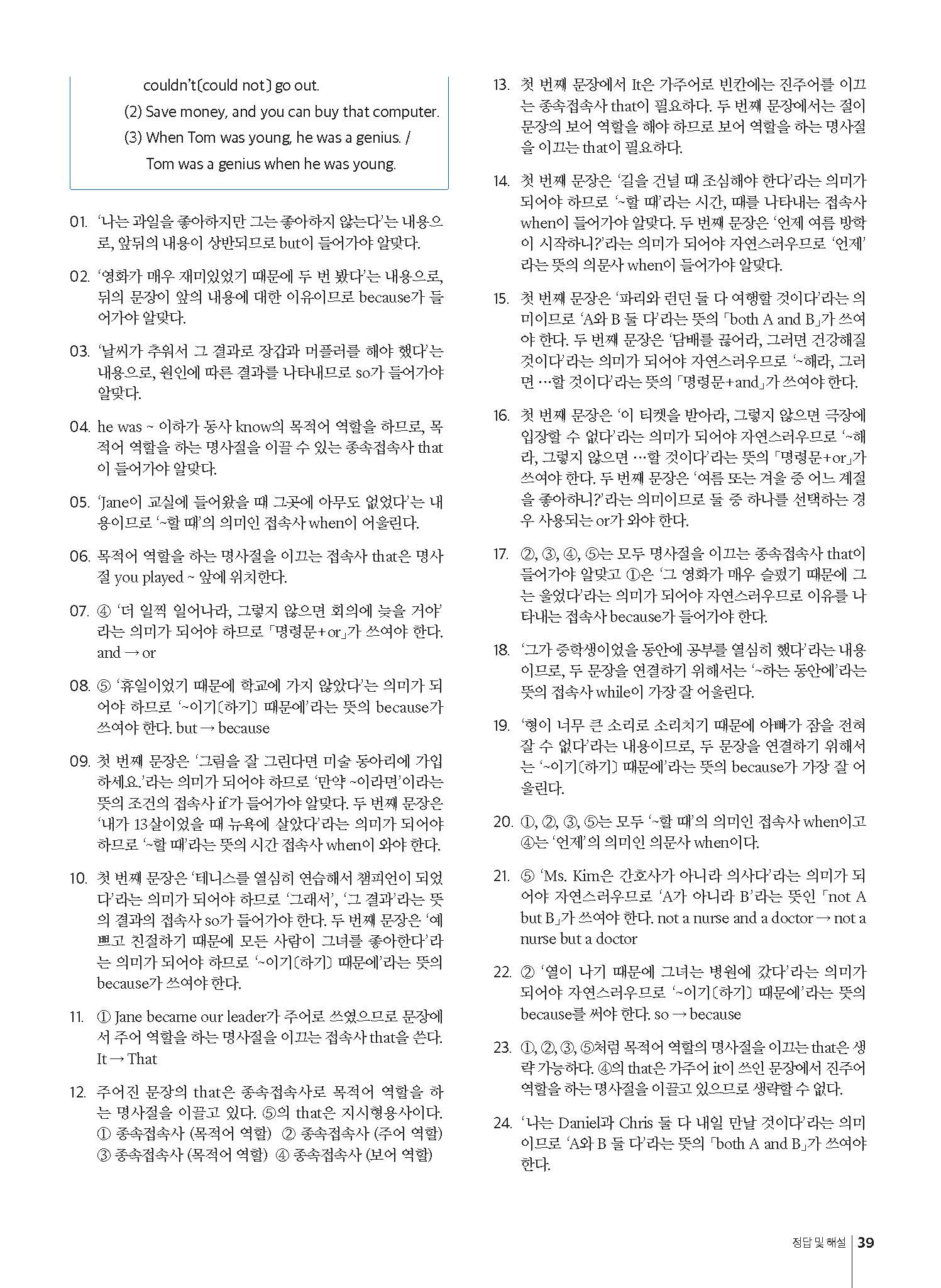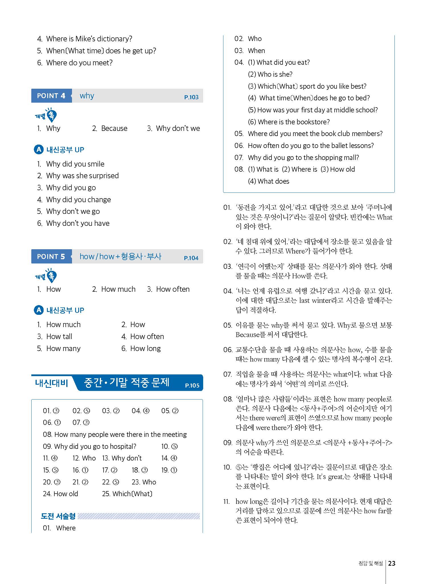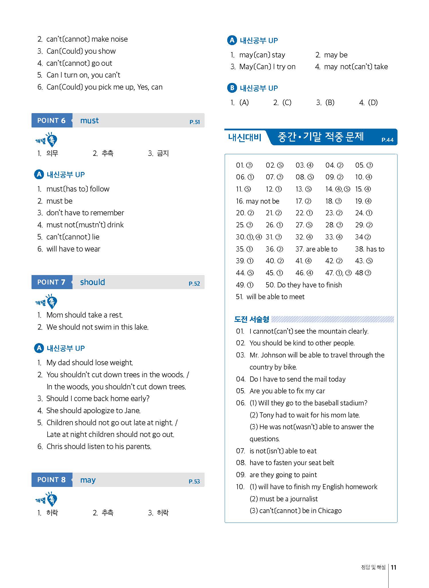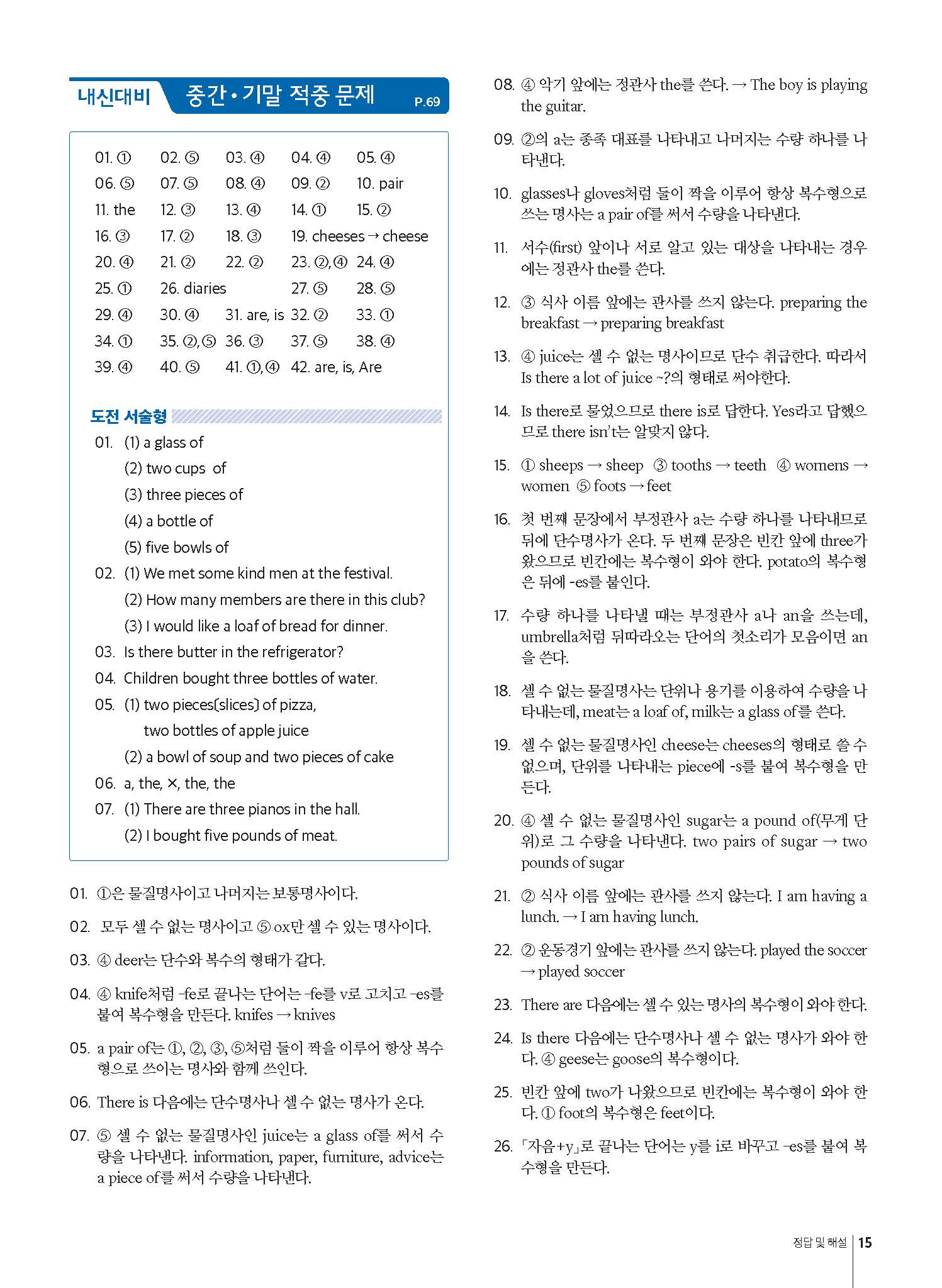 YBM시사 중학영문법 레벨1 Level1 사진답지 빠른답지 모바일최적화