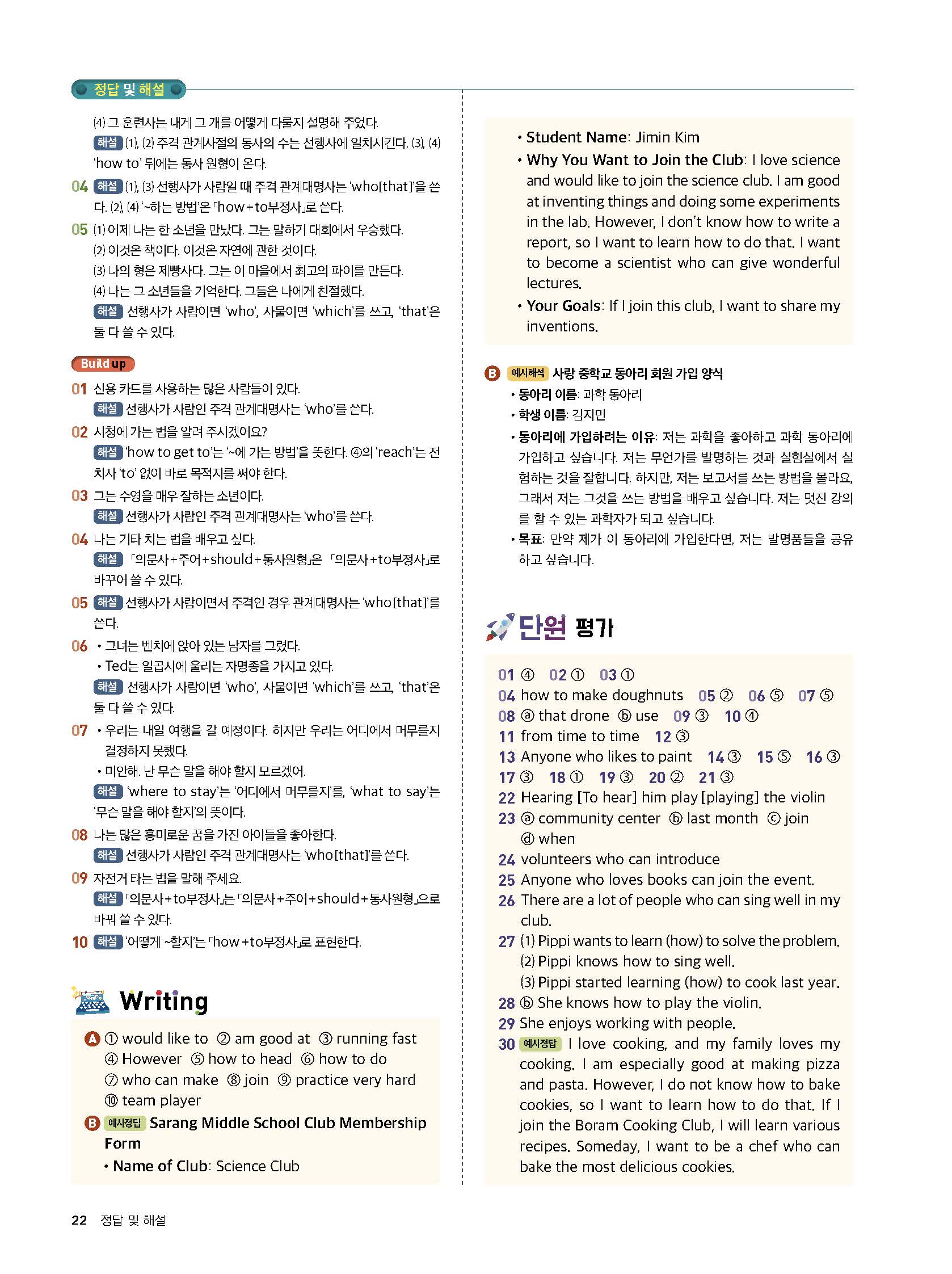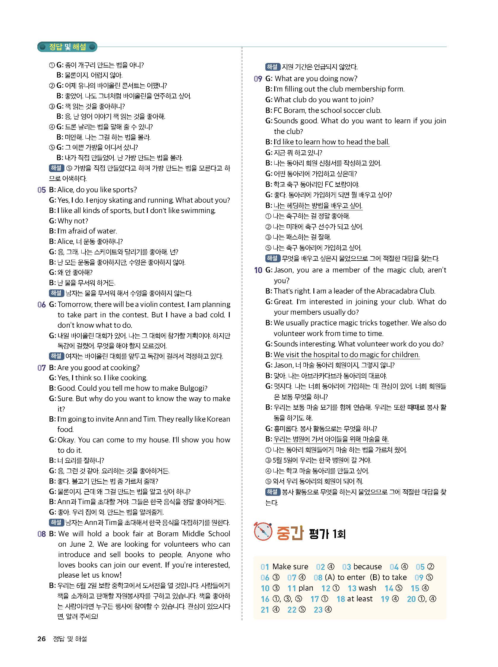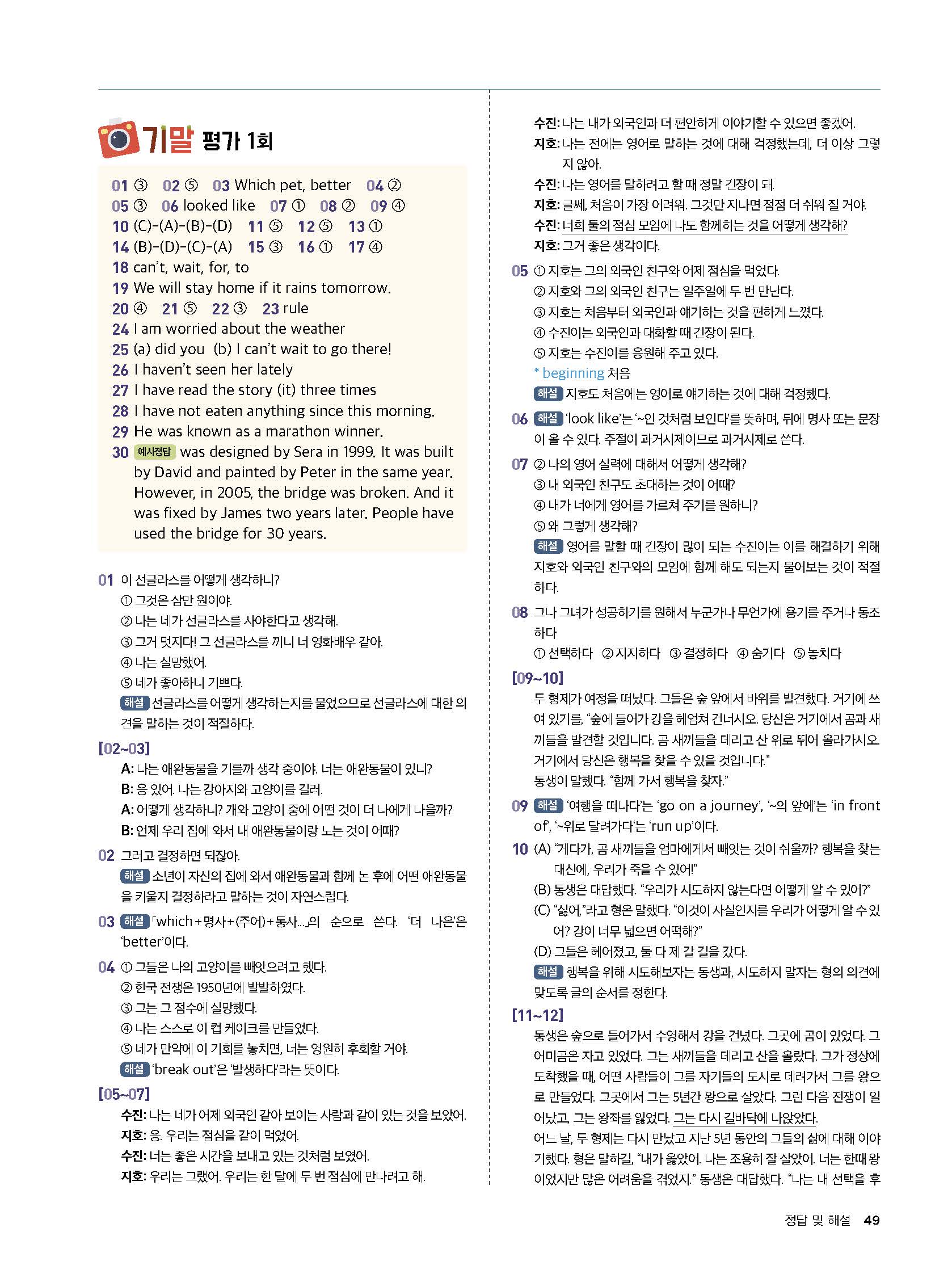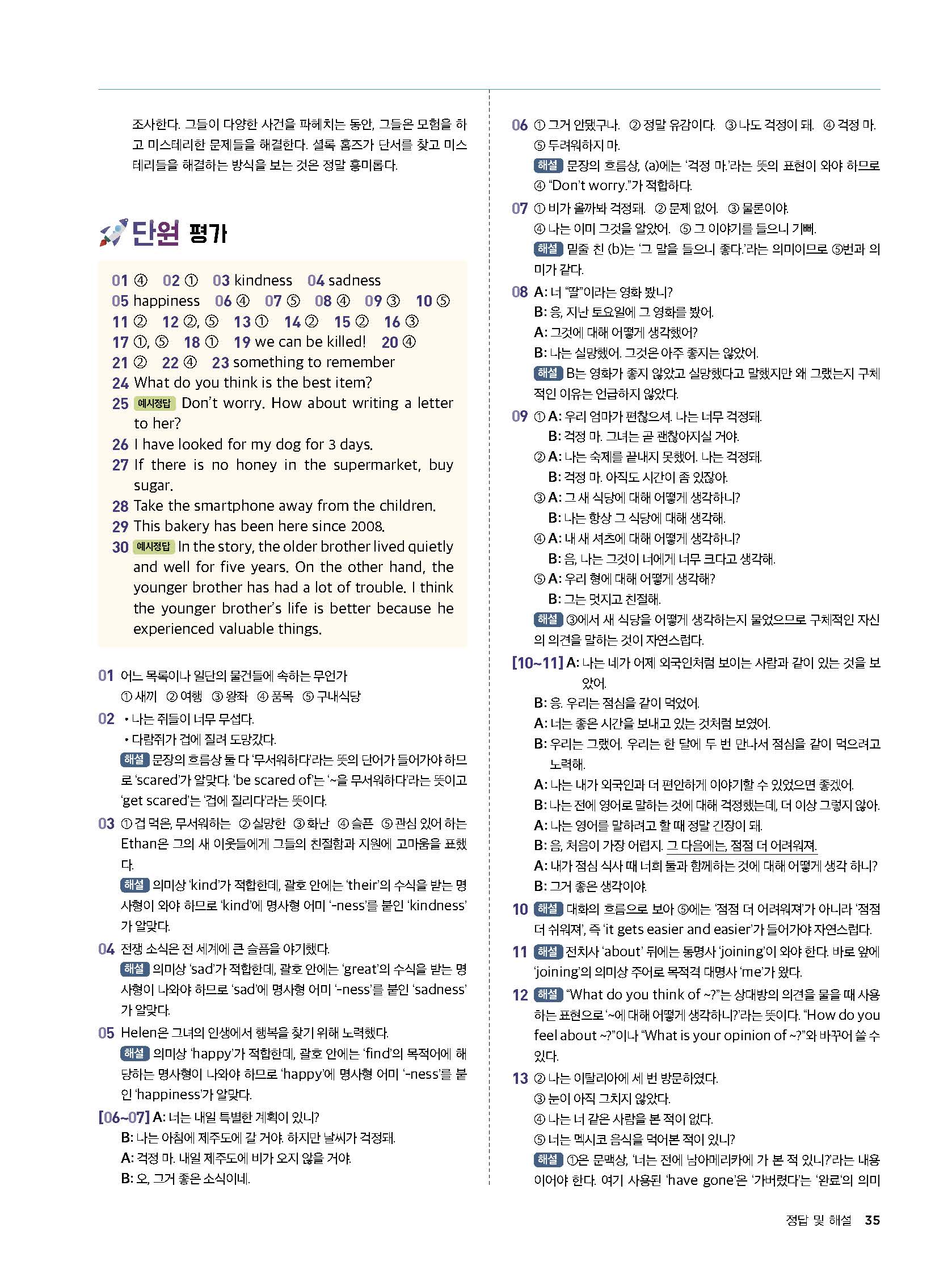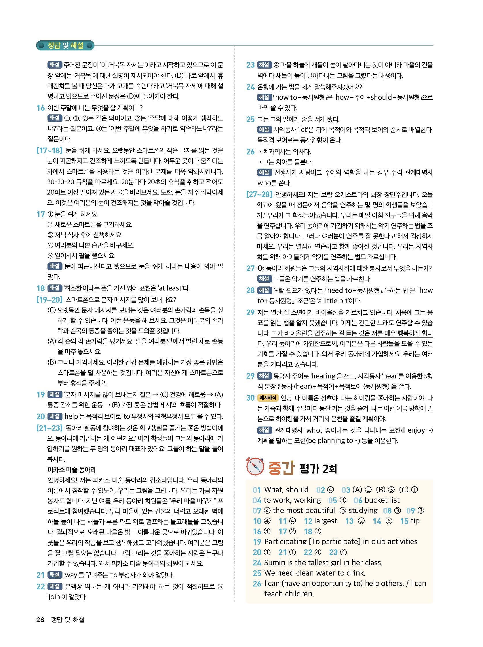YBM시사 중학영어 송미정 평가문제집 2-1 사진답지 빠른답지 모바일최적화