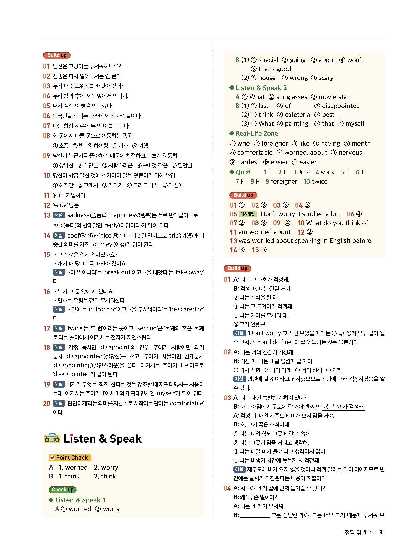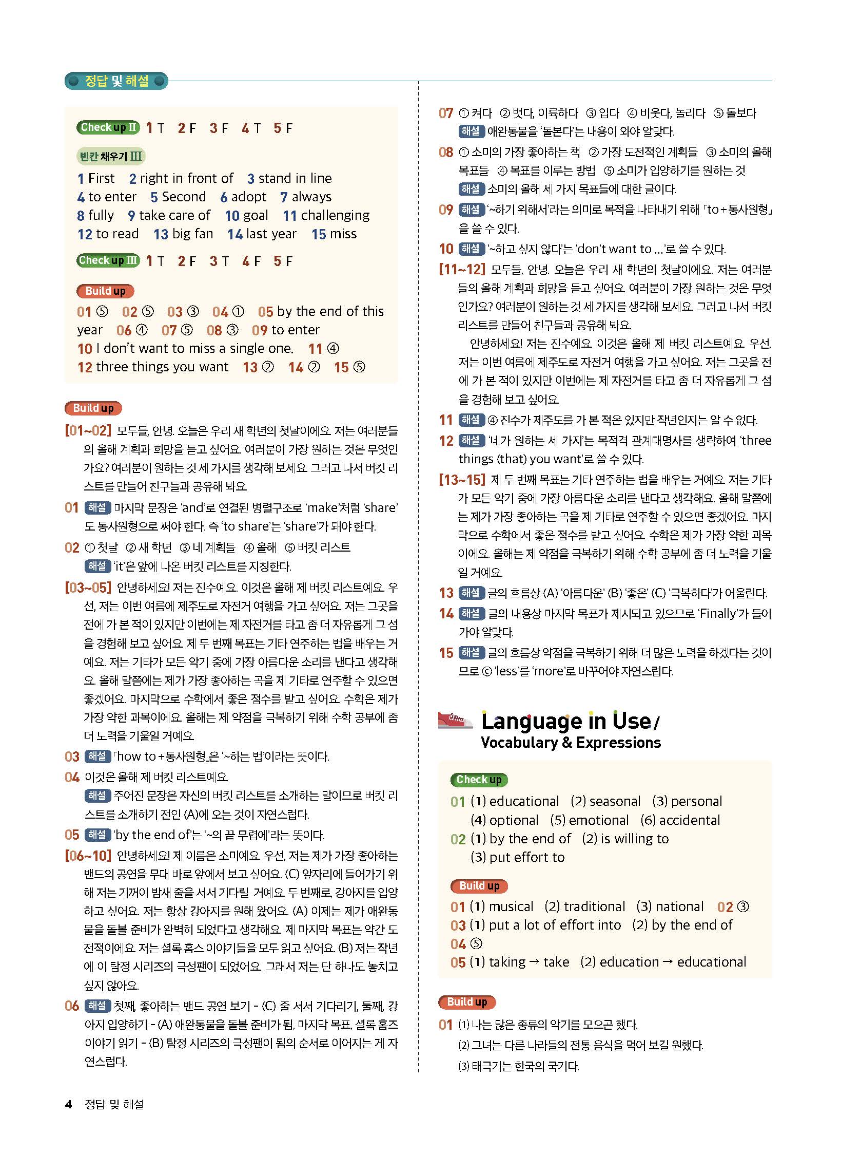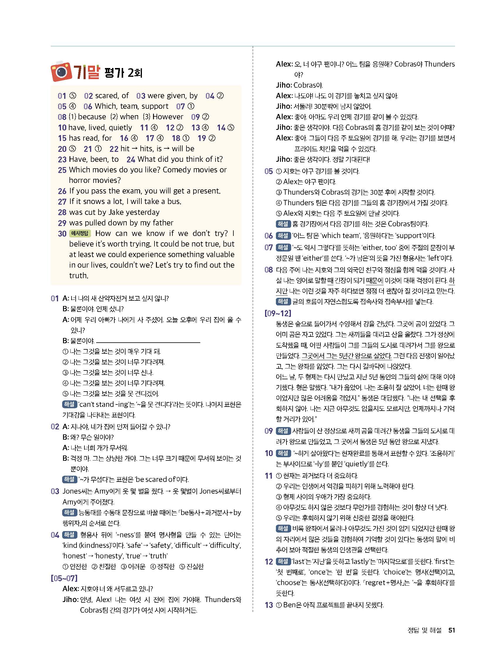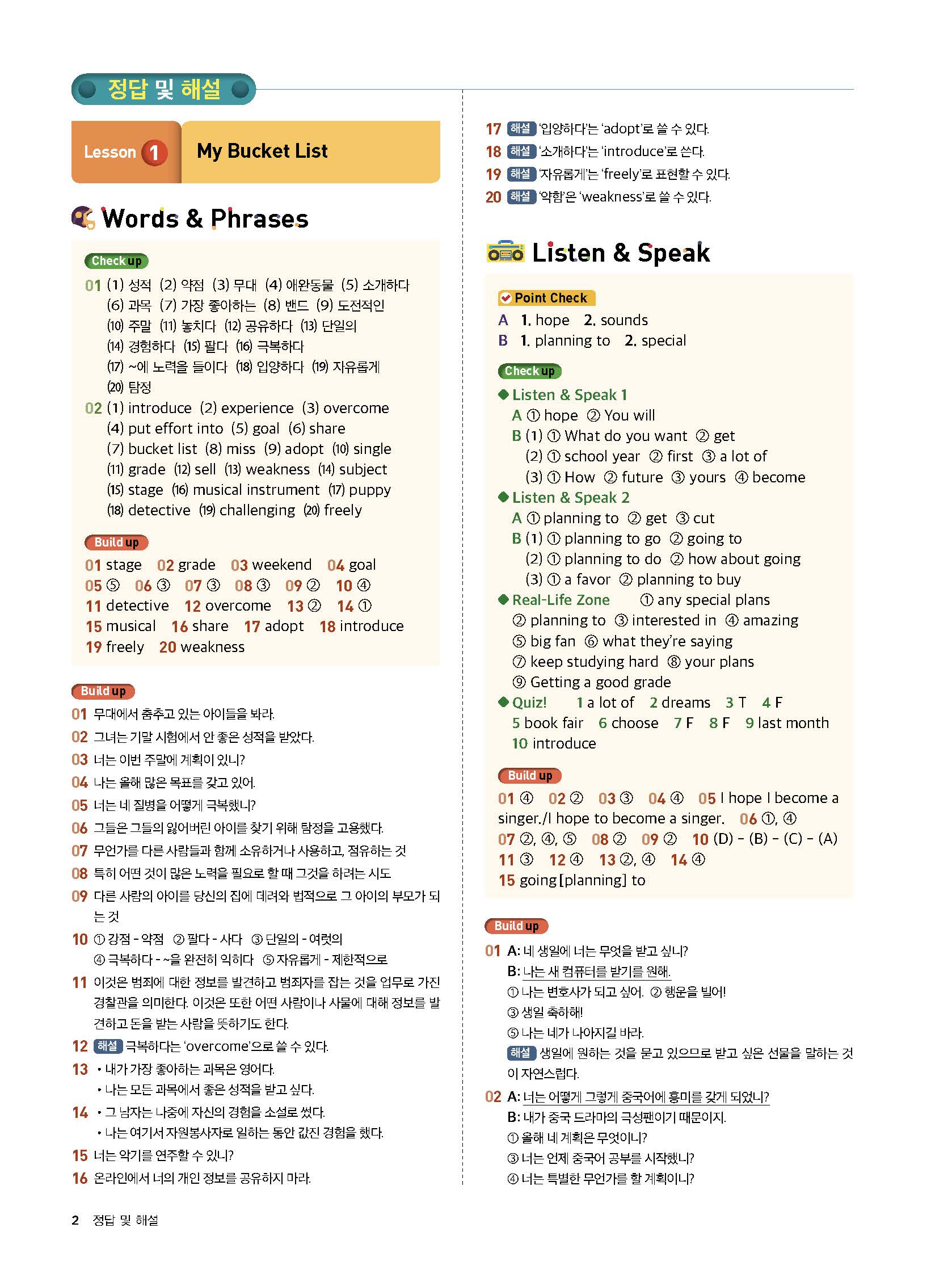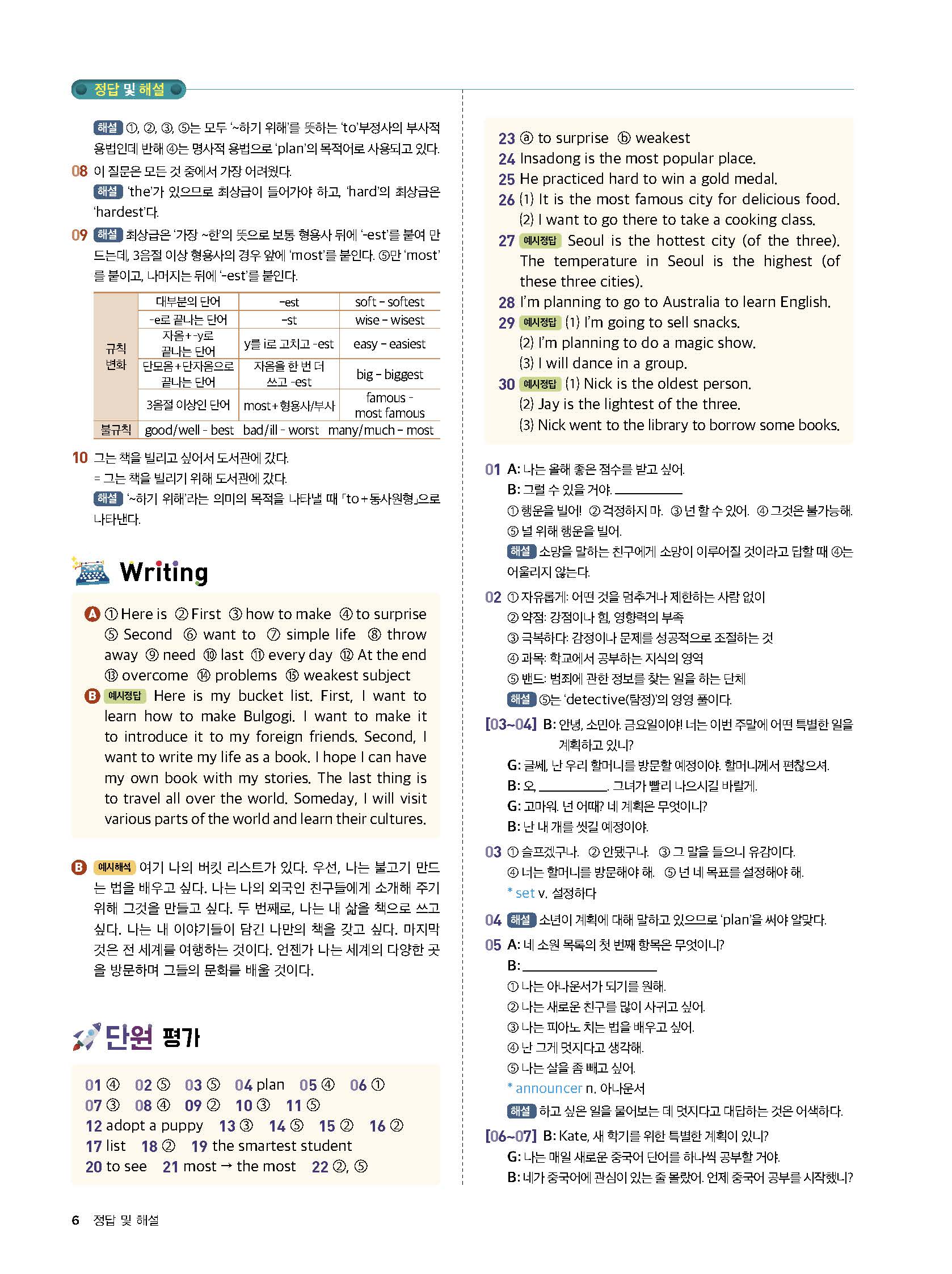 YBM시사 중학영어 송미정 평가문제집 2-1 사진답지 빠른답지 모바일최적화