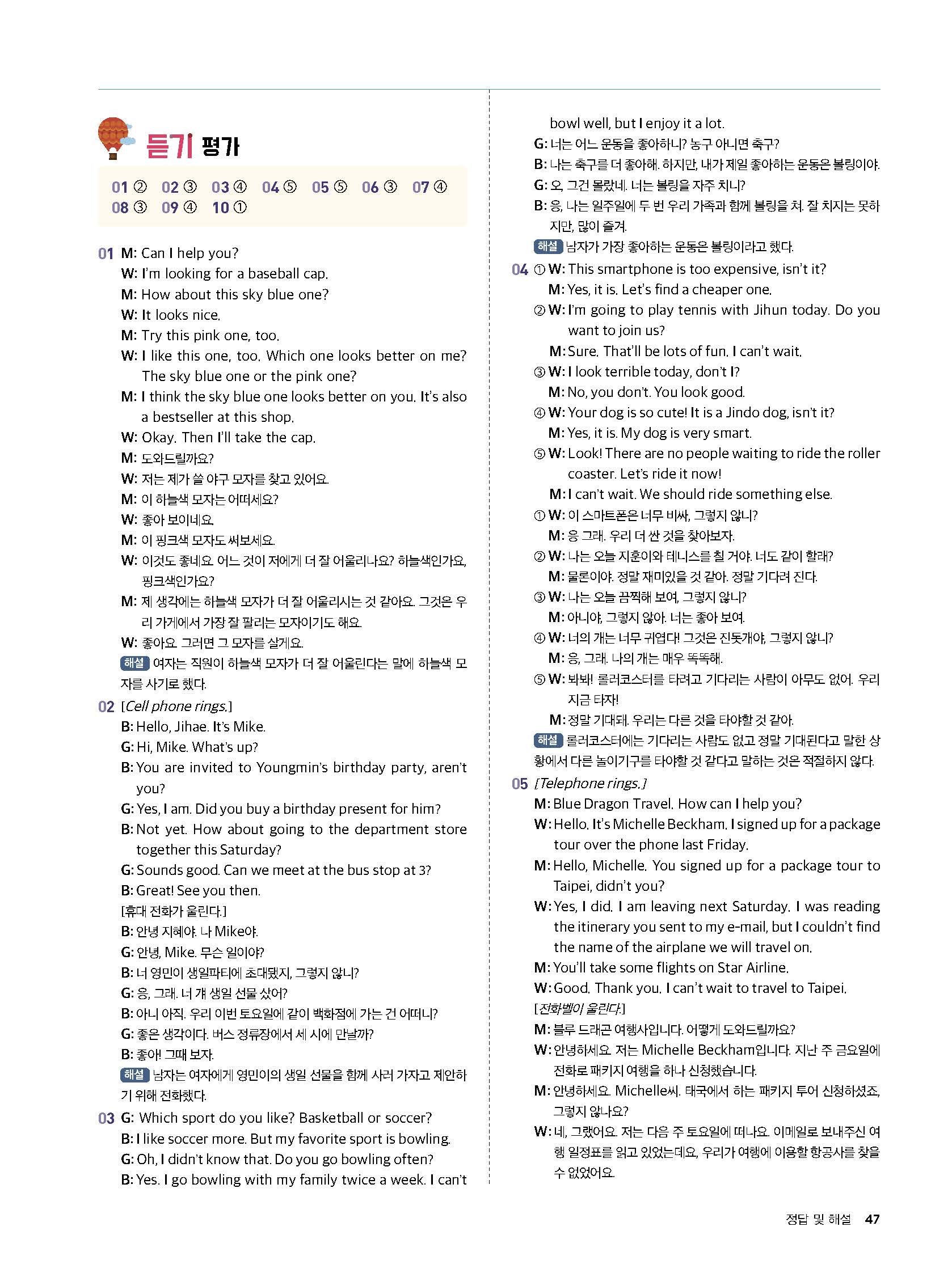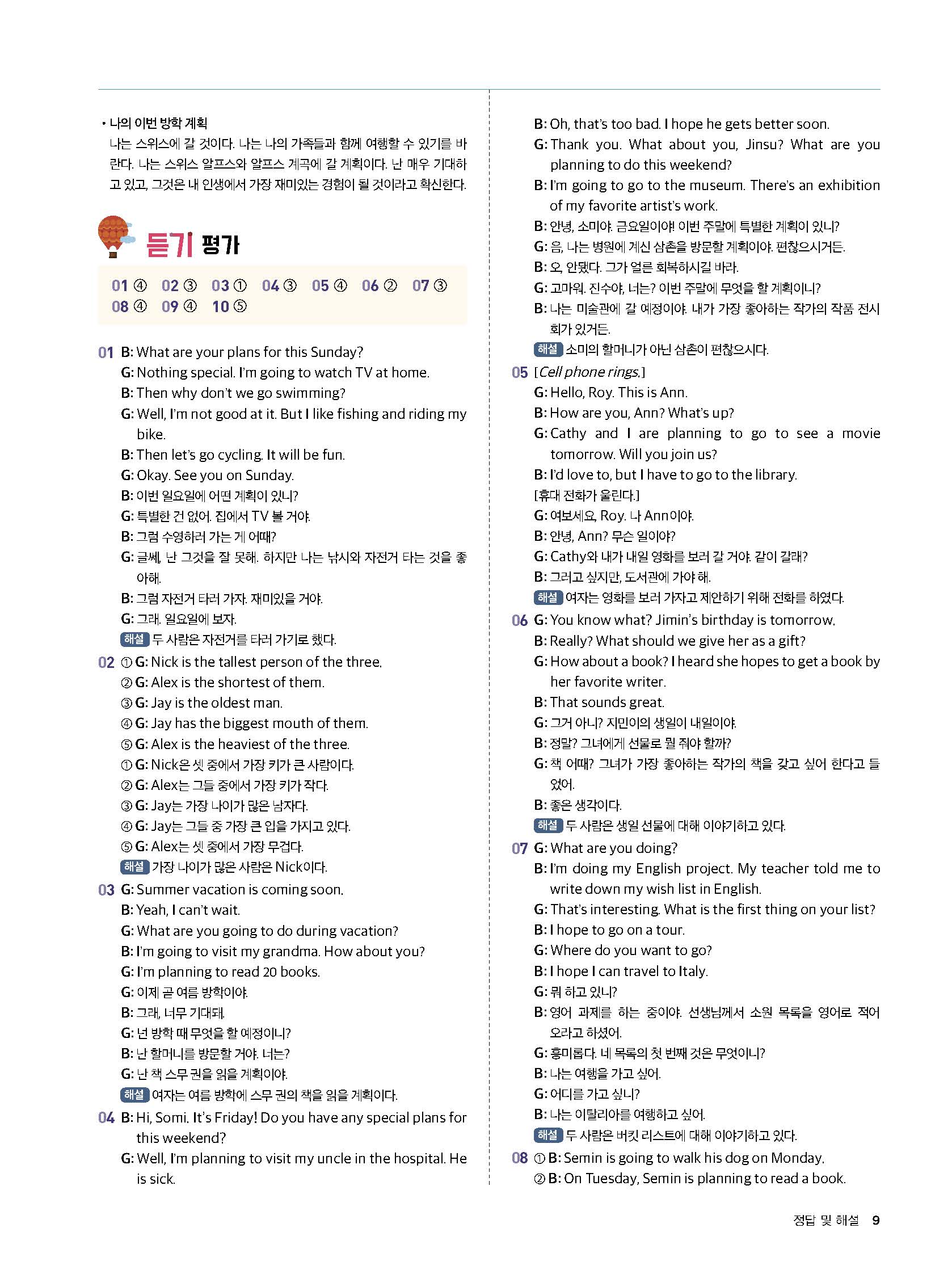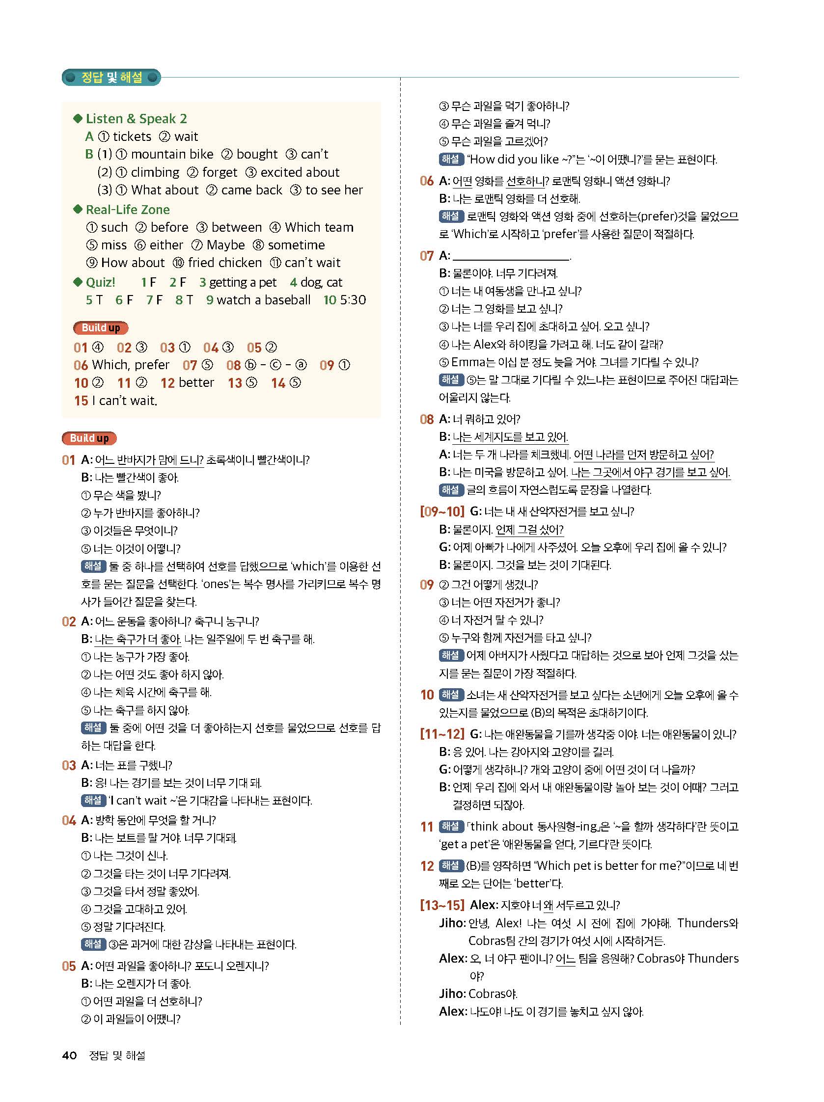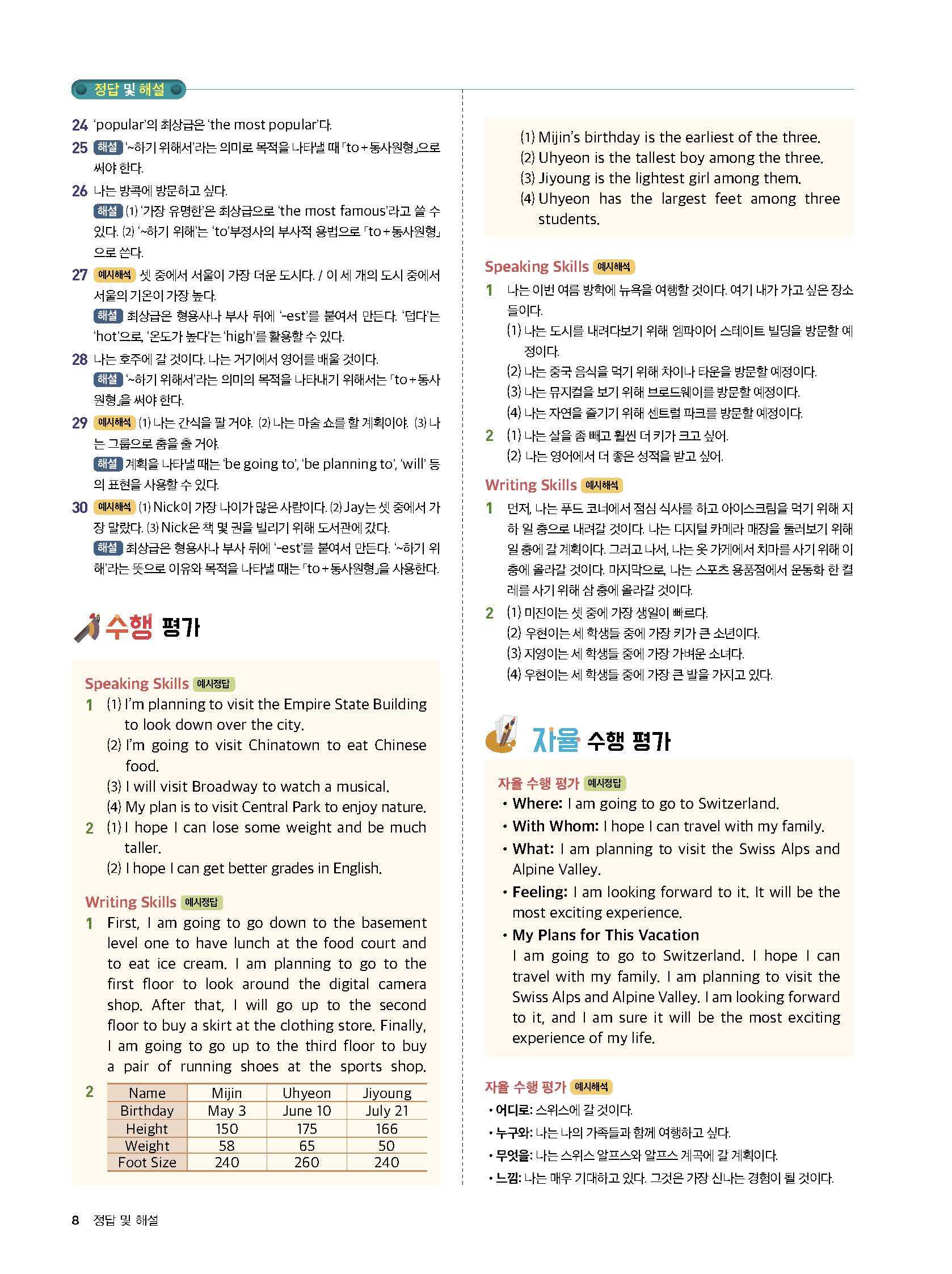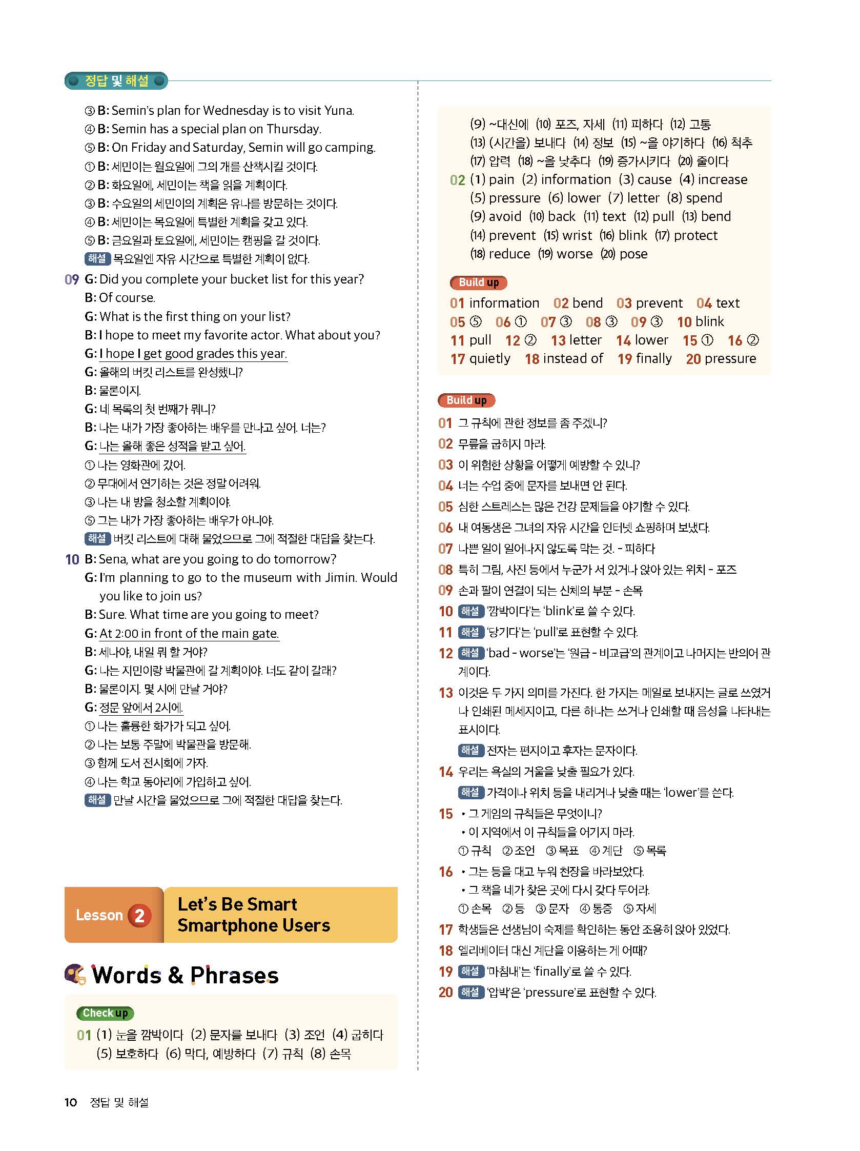 YBM시사 중학영어 송미정 평가문제집 2-1 사진답지 빠른답지 모바일최적화