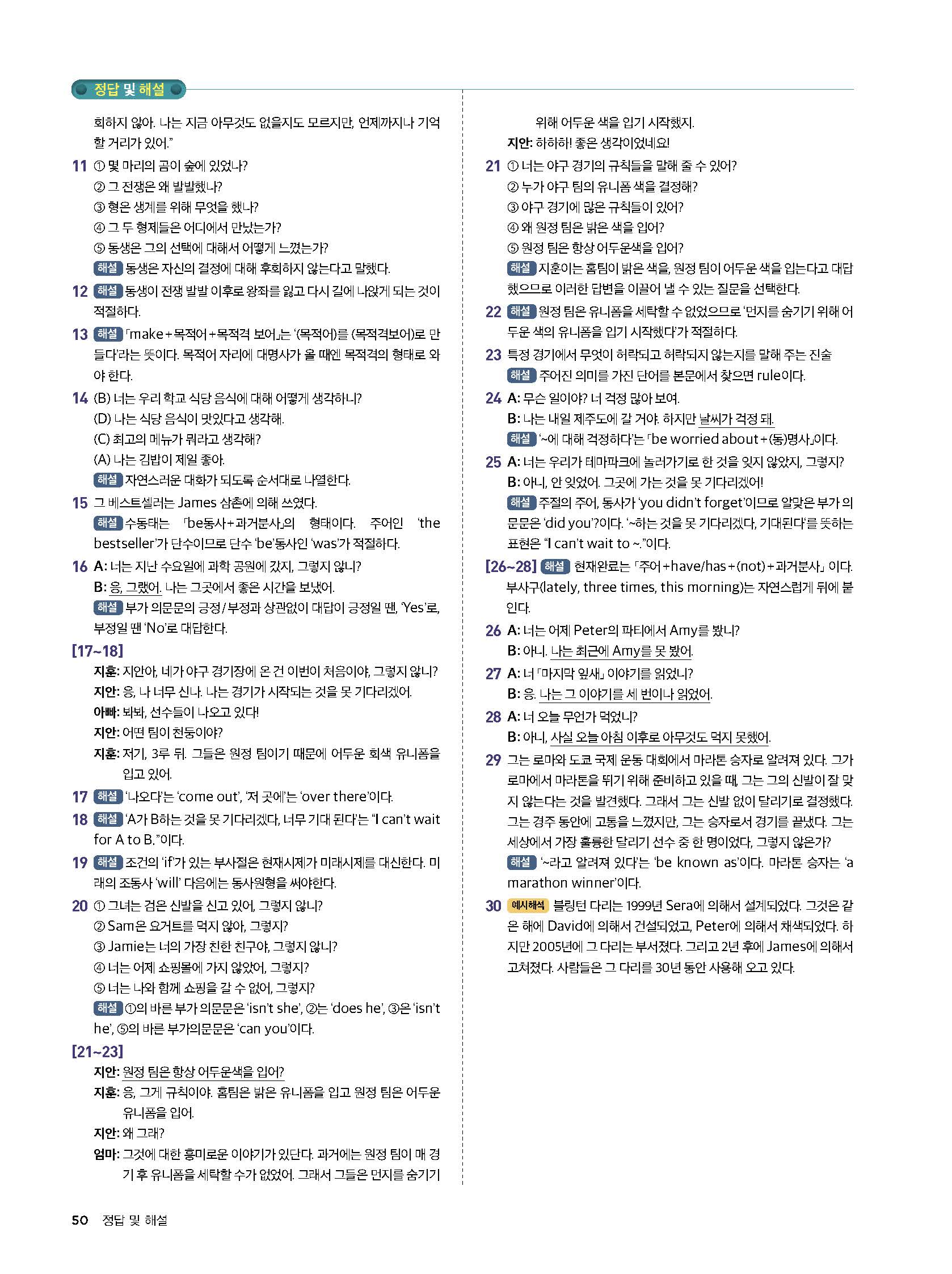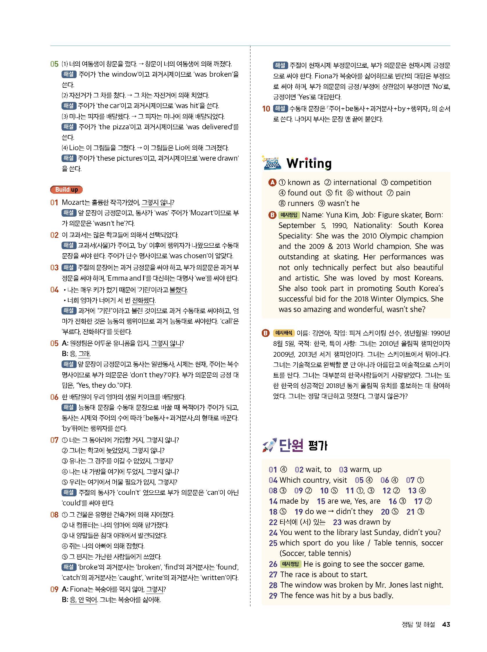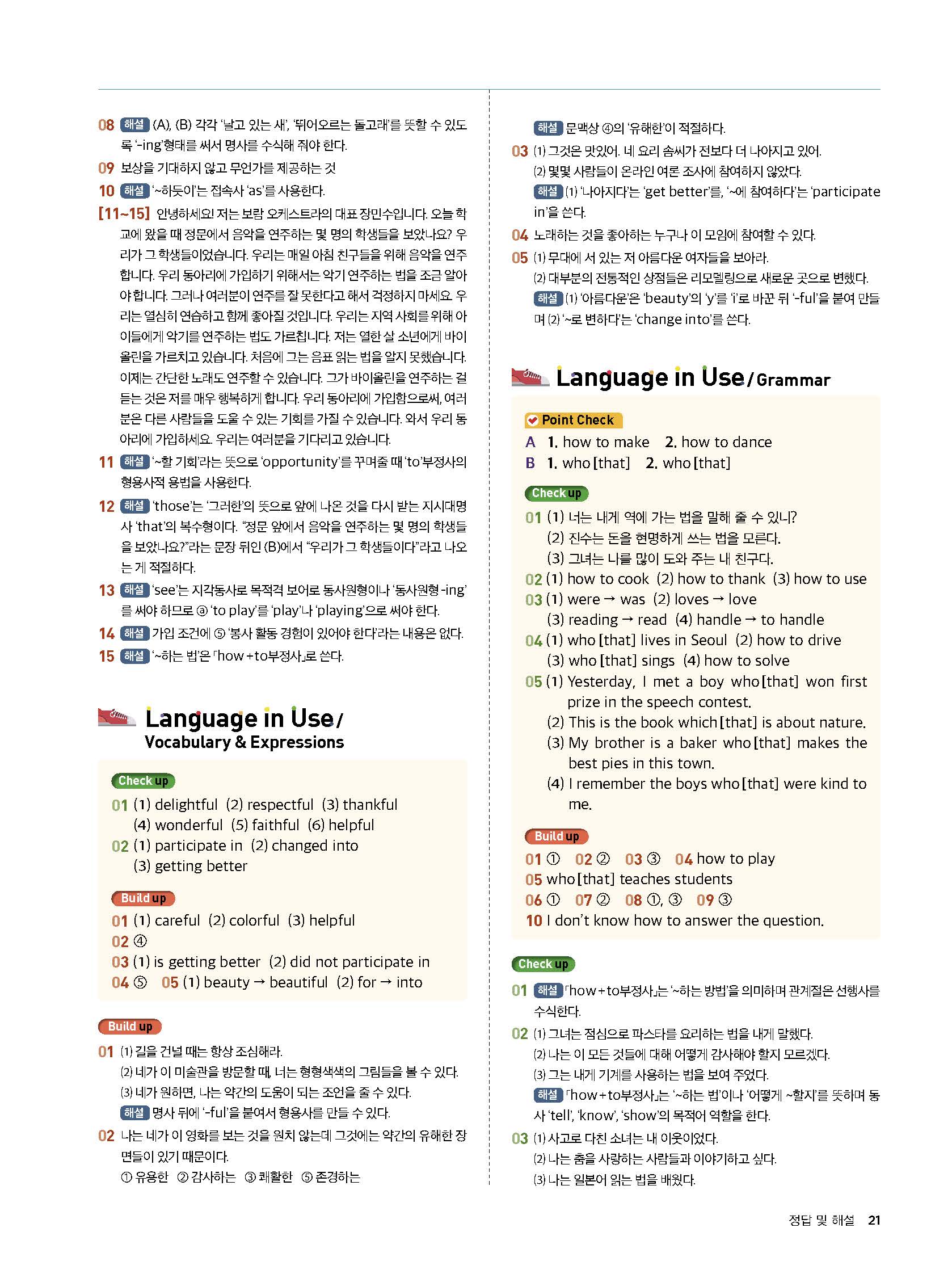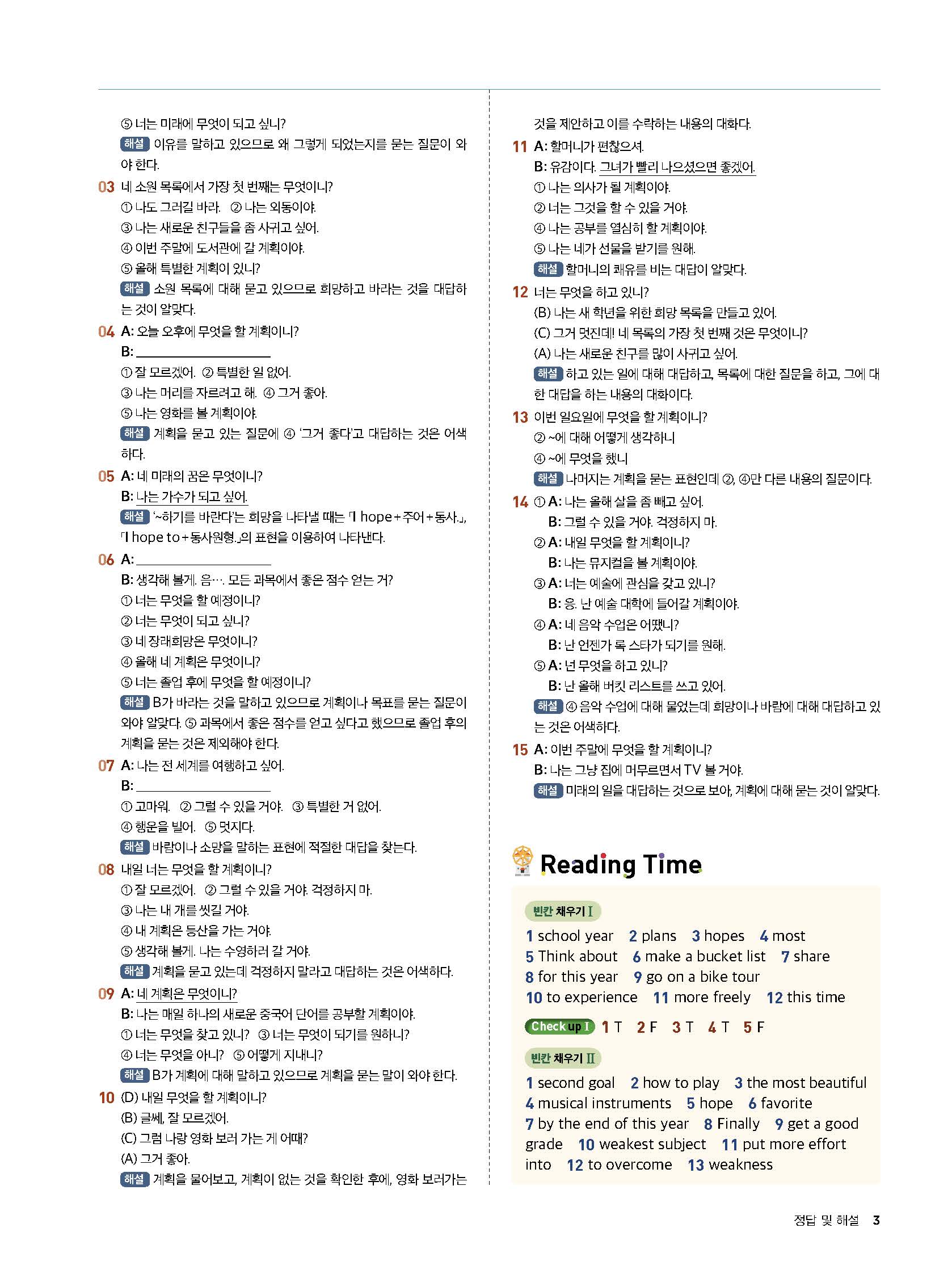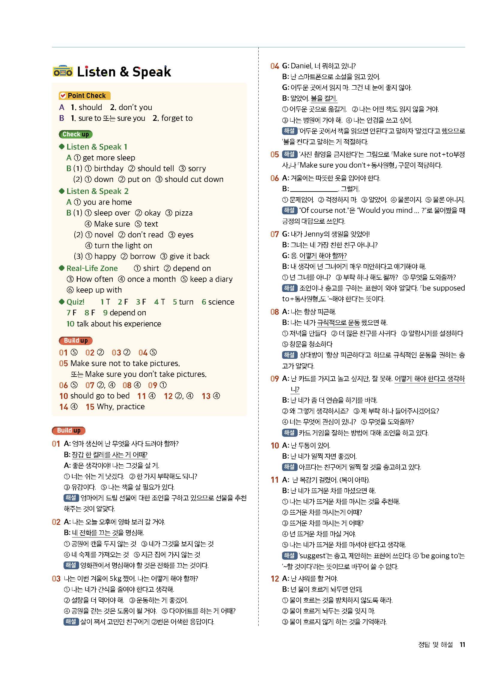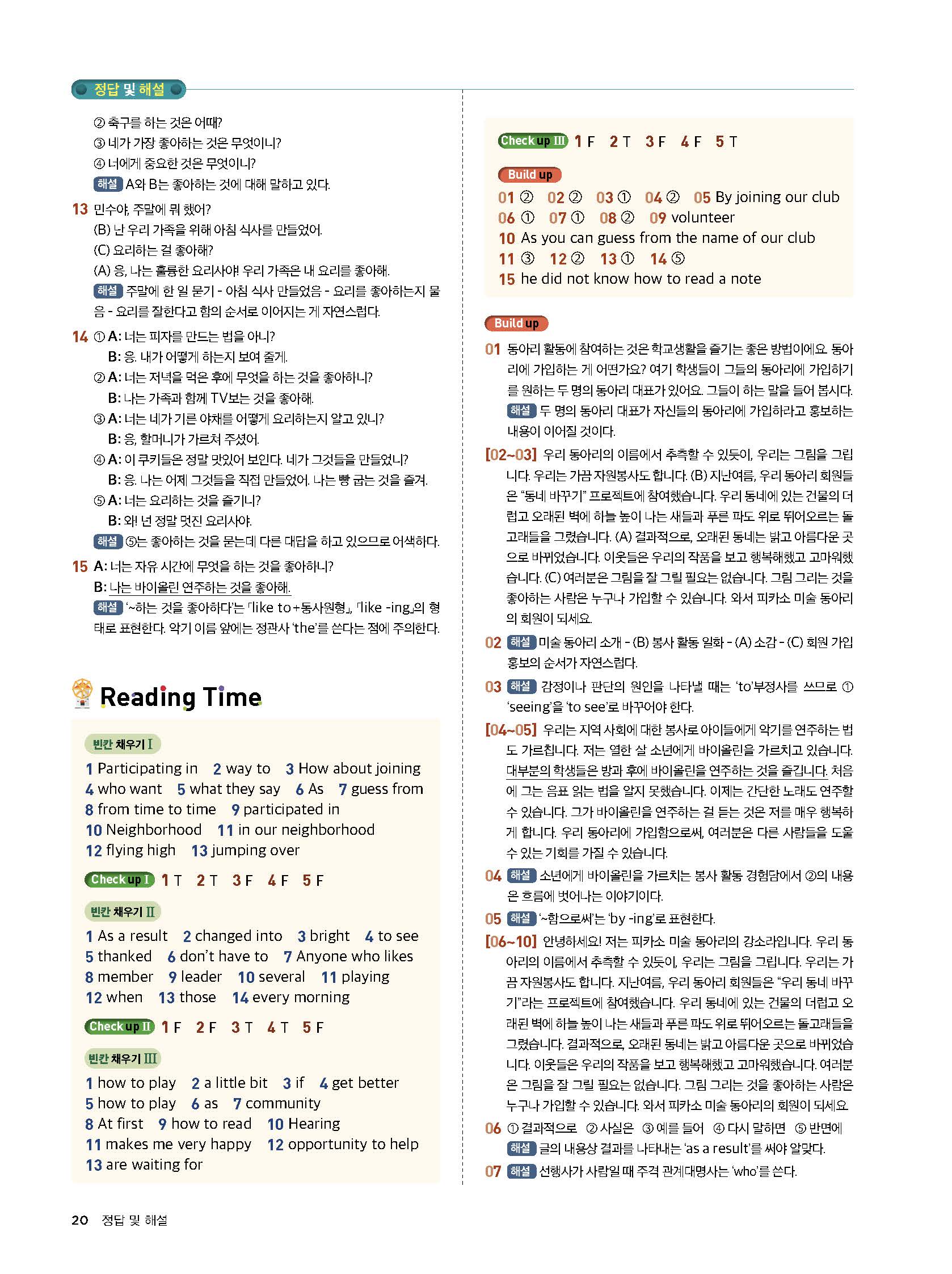 YBM시사 중학영어 송미정 평가문제집 2-1 사진답지 빠른답지 모바일최적화