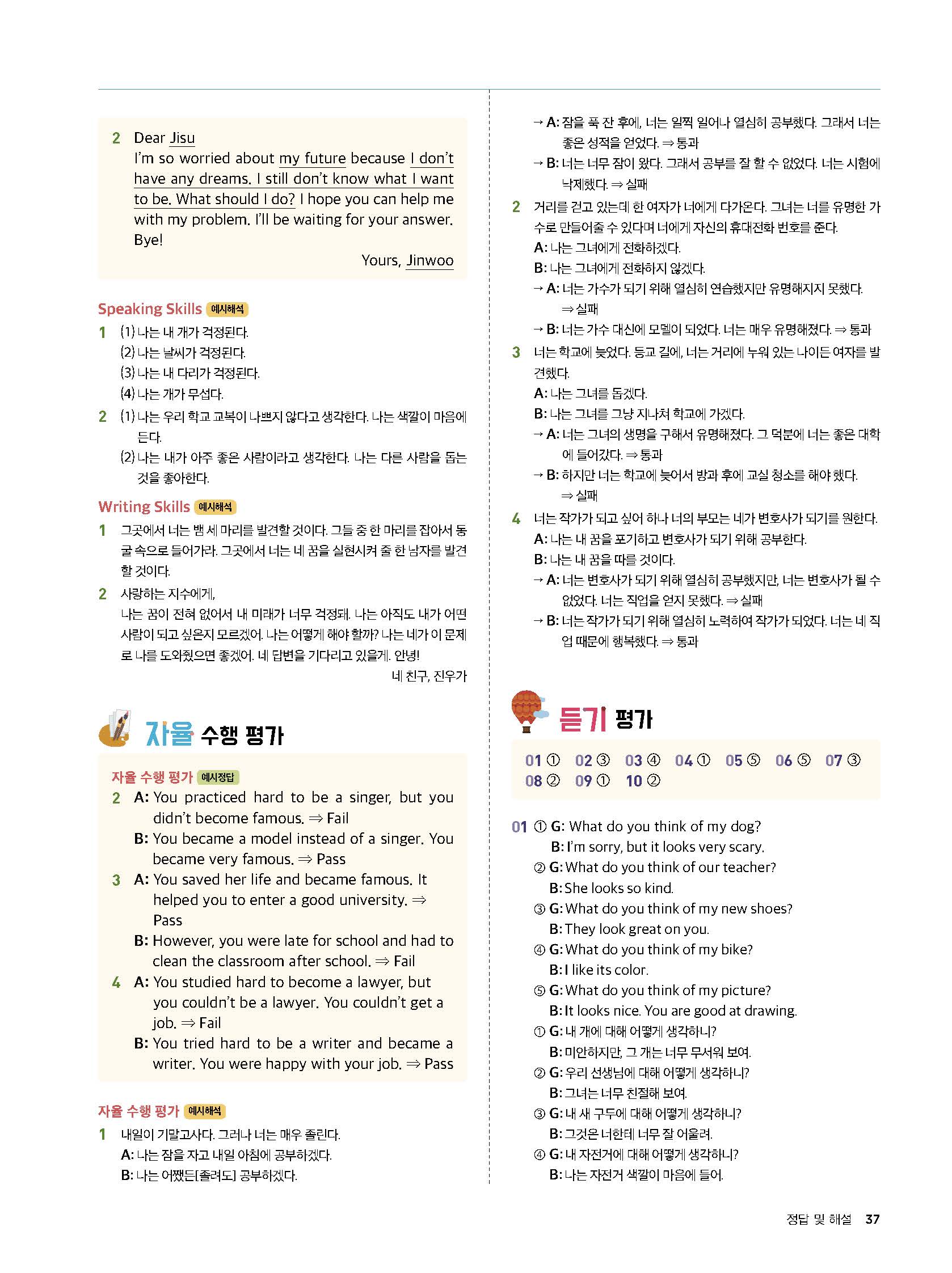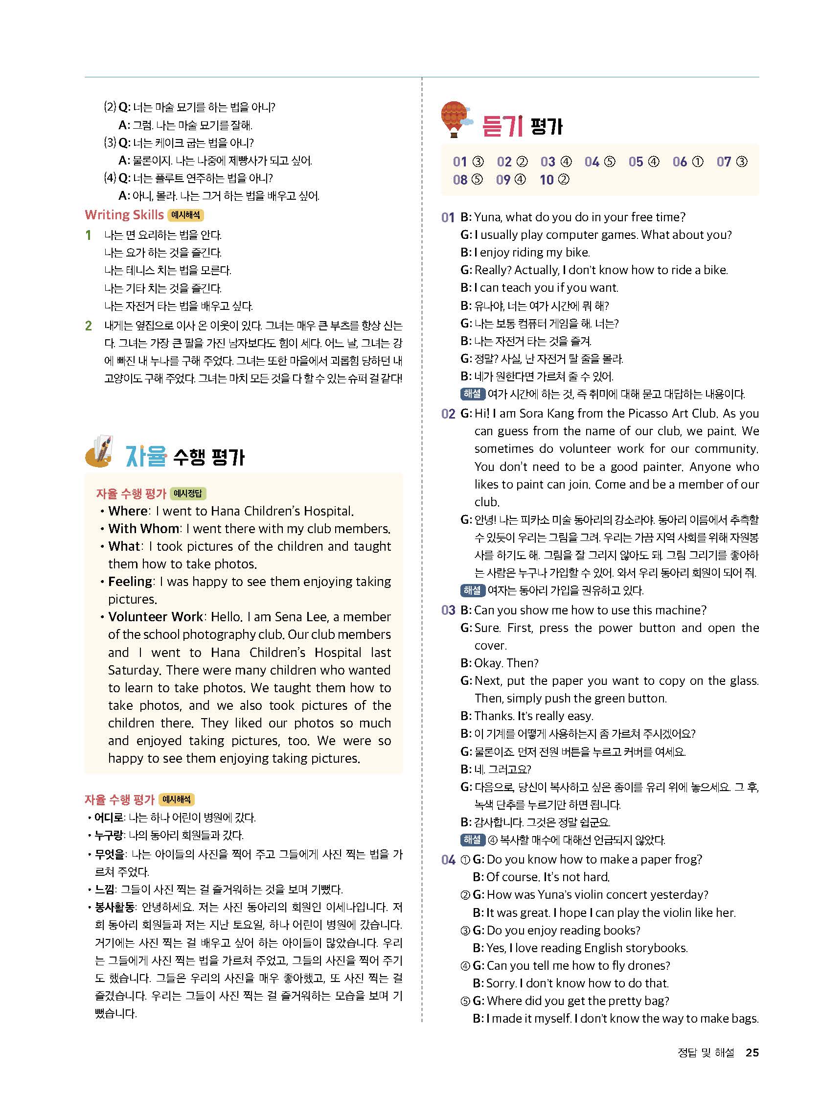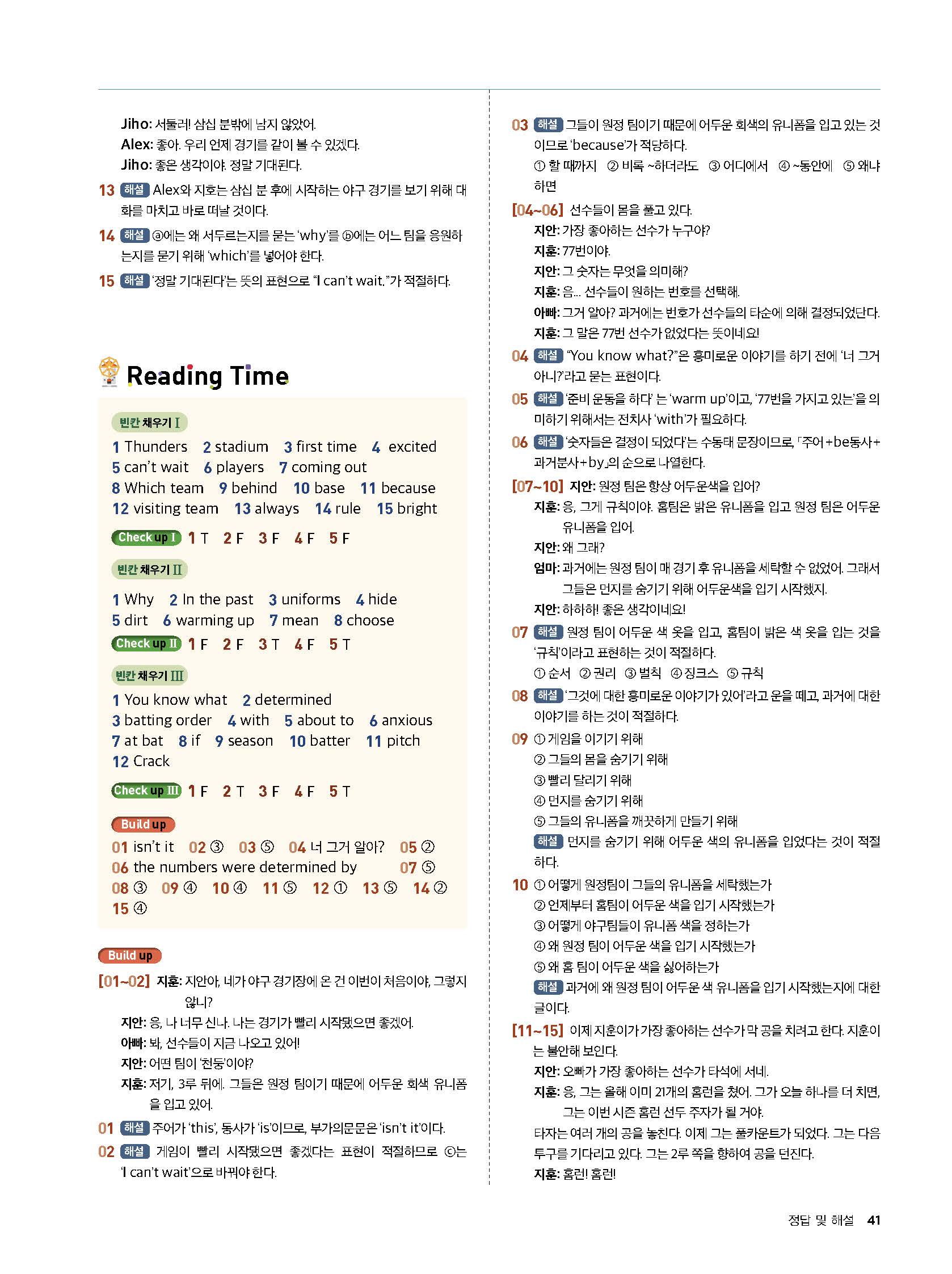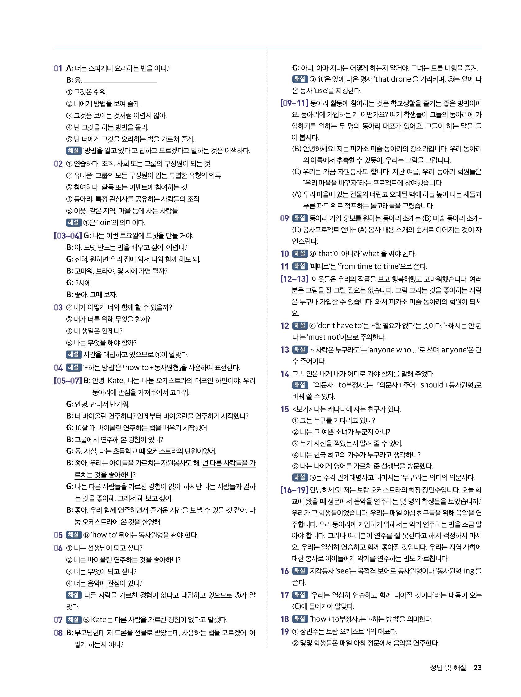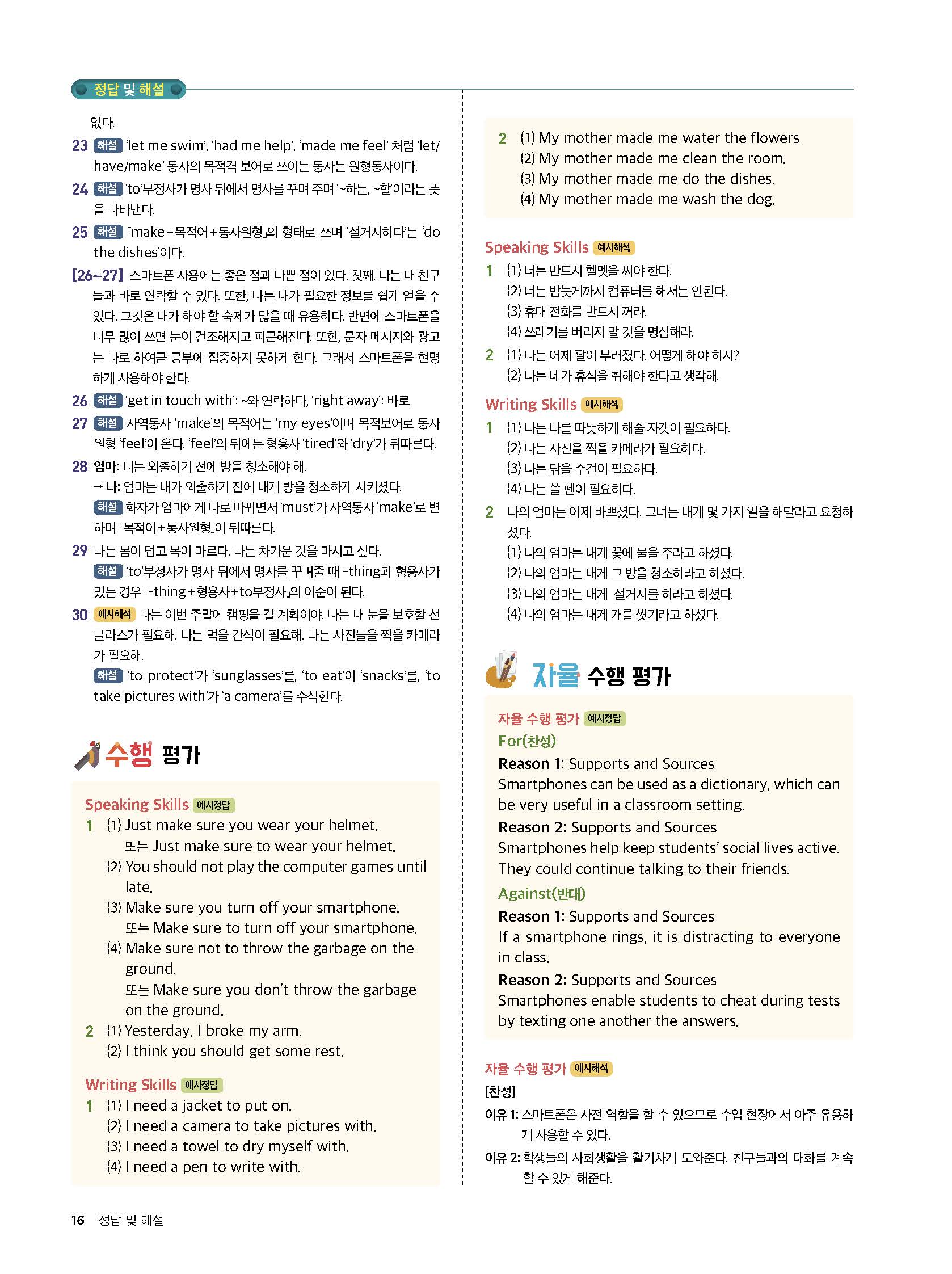 YBM시사 중학영어 송미정 평가문제집 2-1 사진답지 빠른답지 모바일최적화