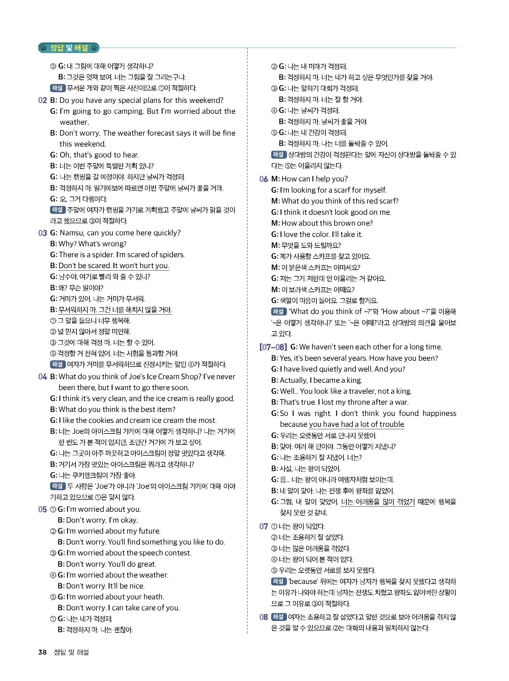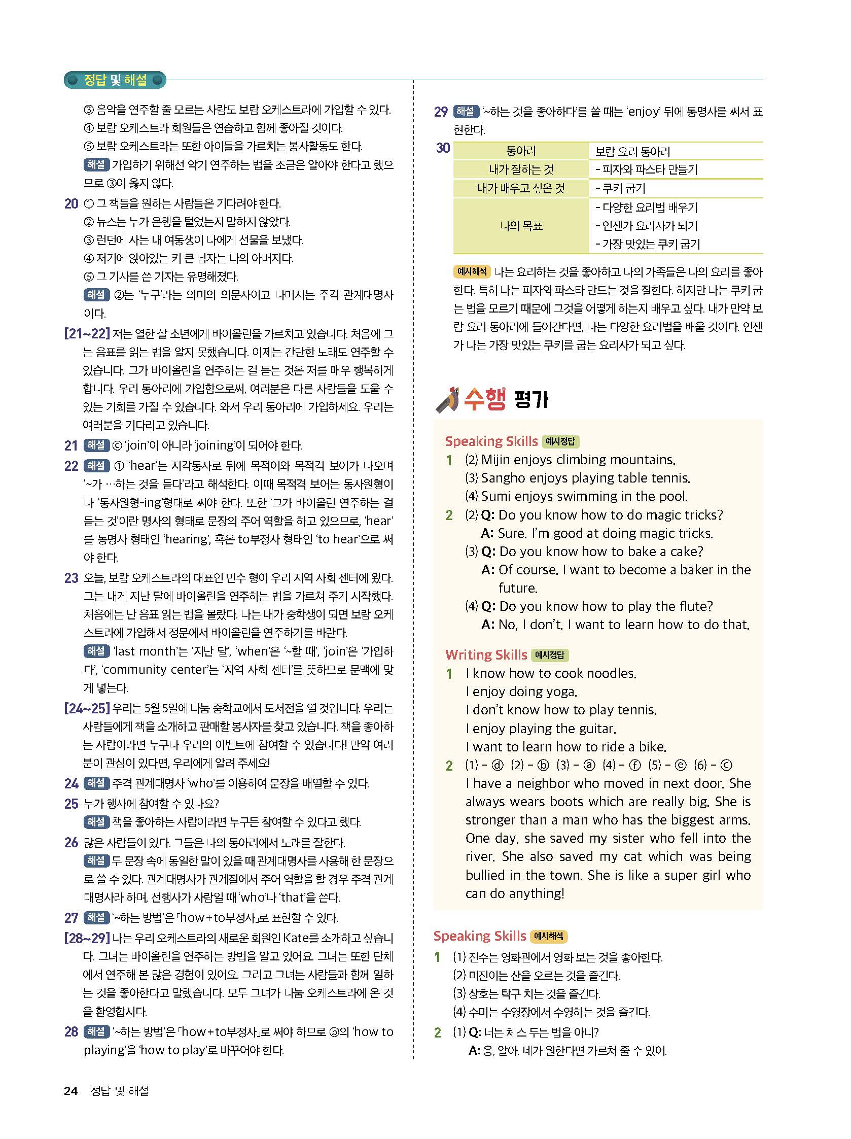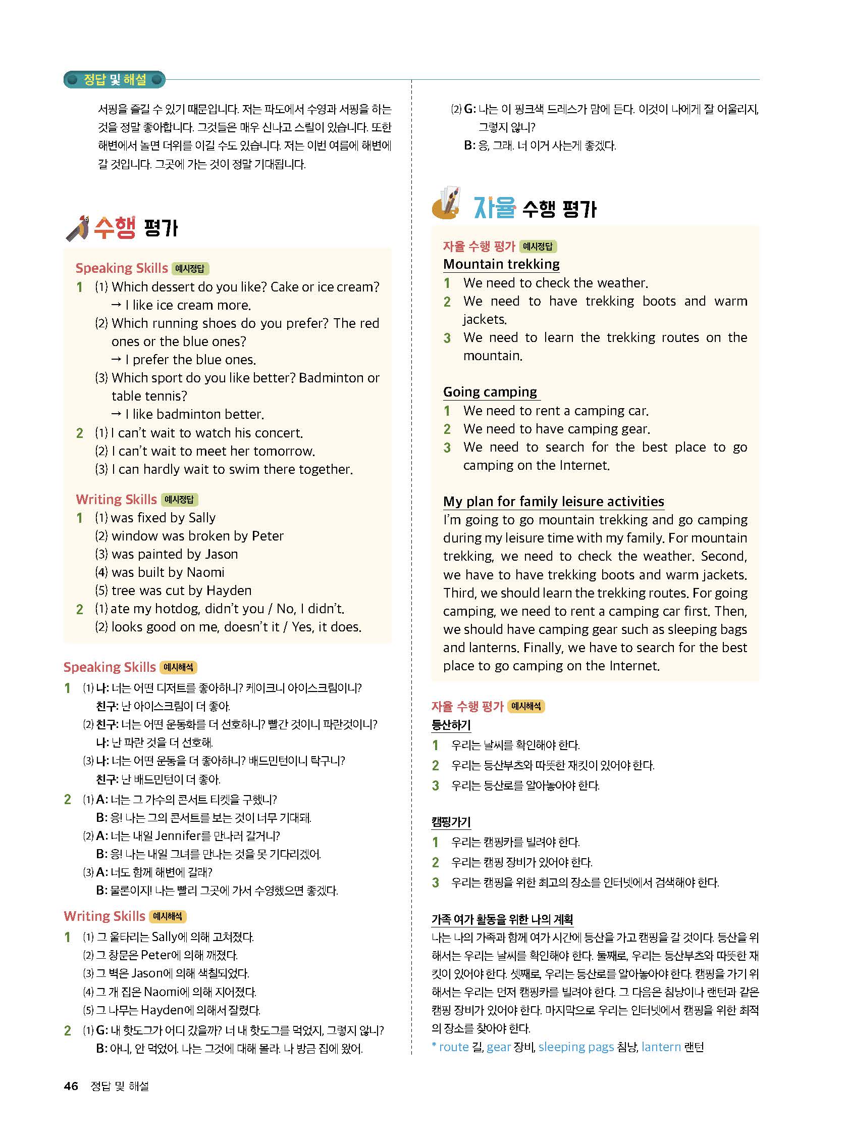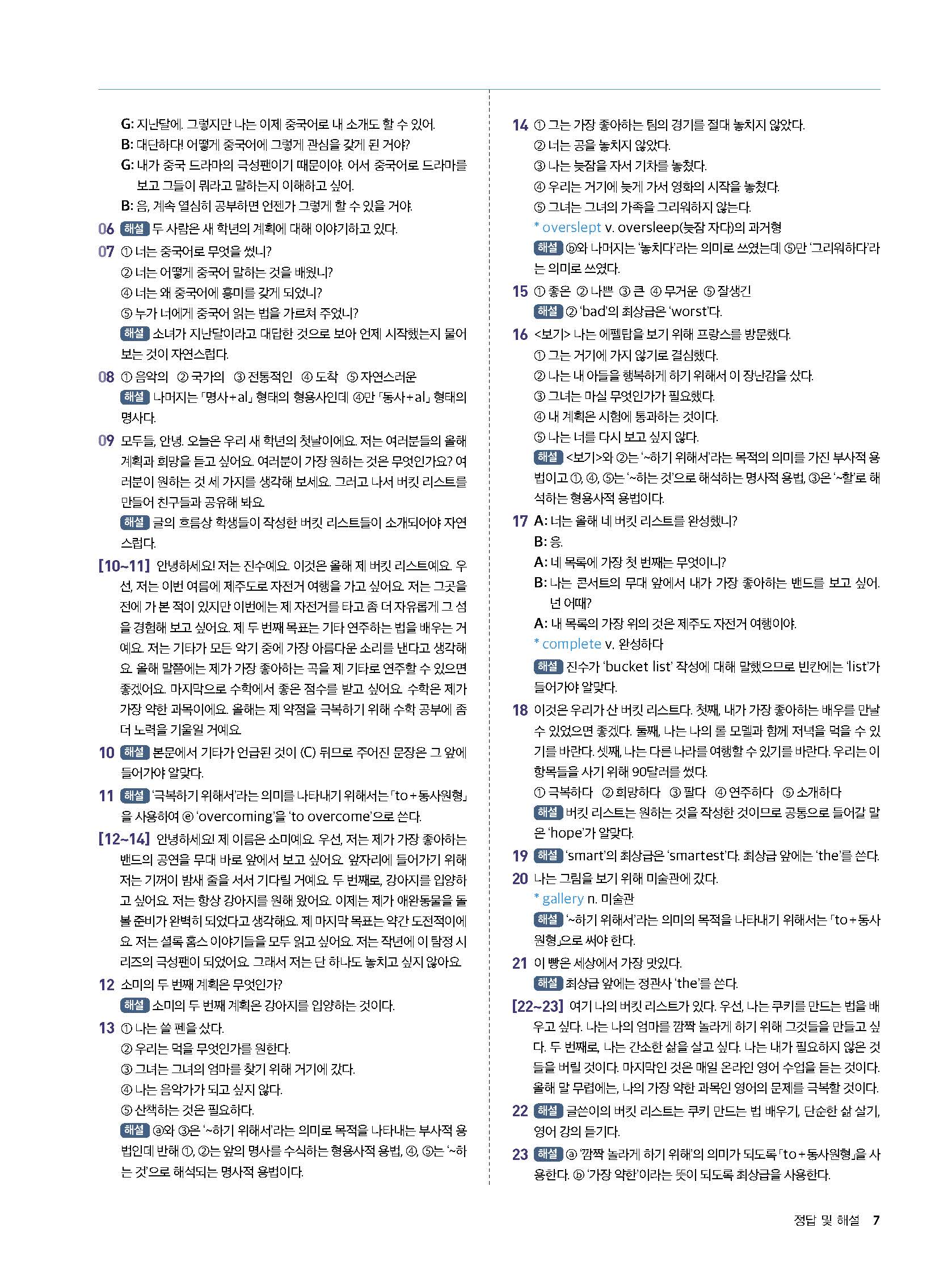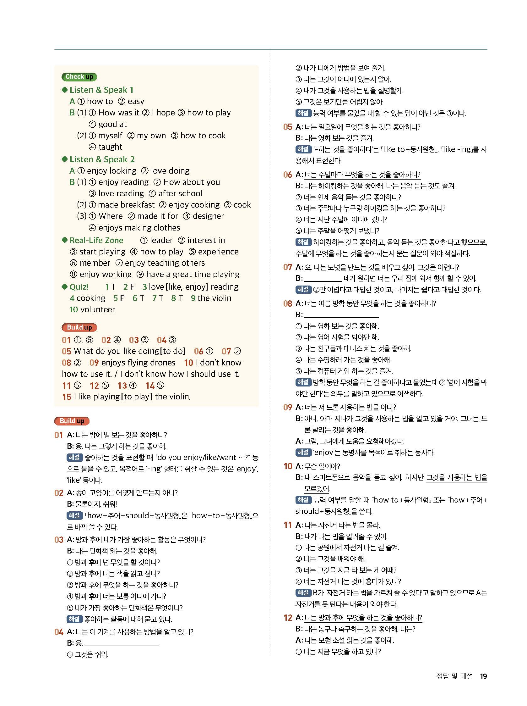 YBM시사 중학영어 송미정 평가문제집 2-1 사진답지 빠른답지 모바일최적화