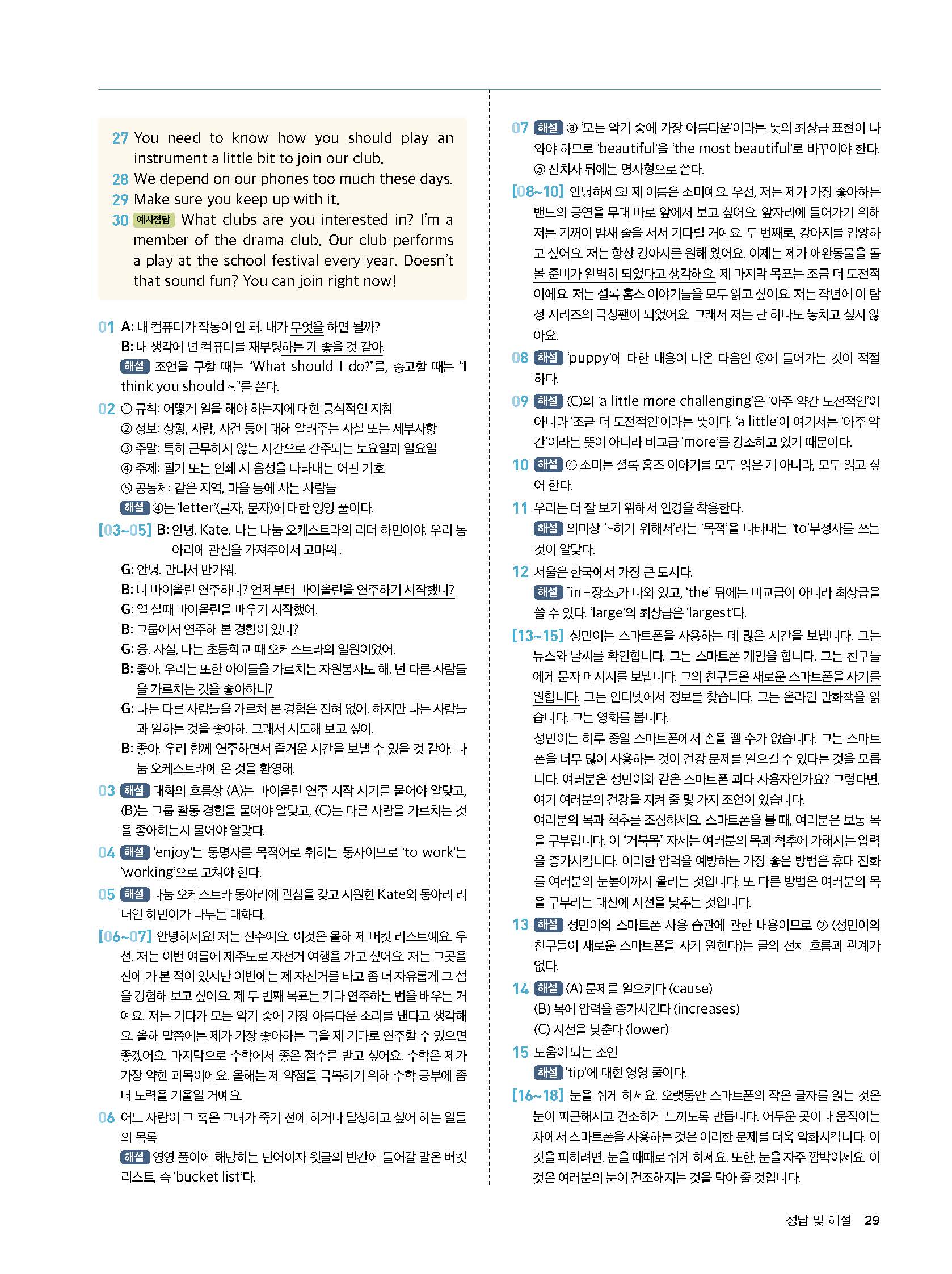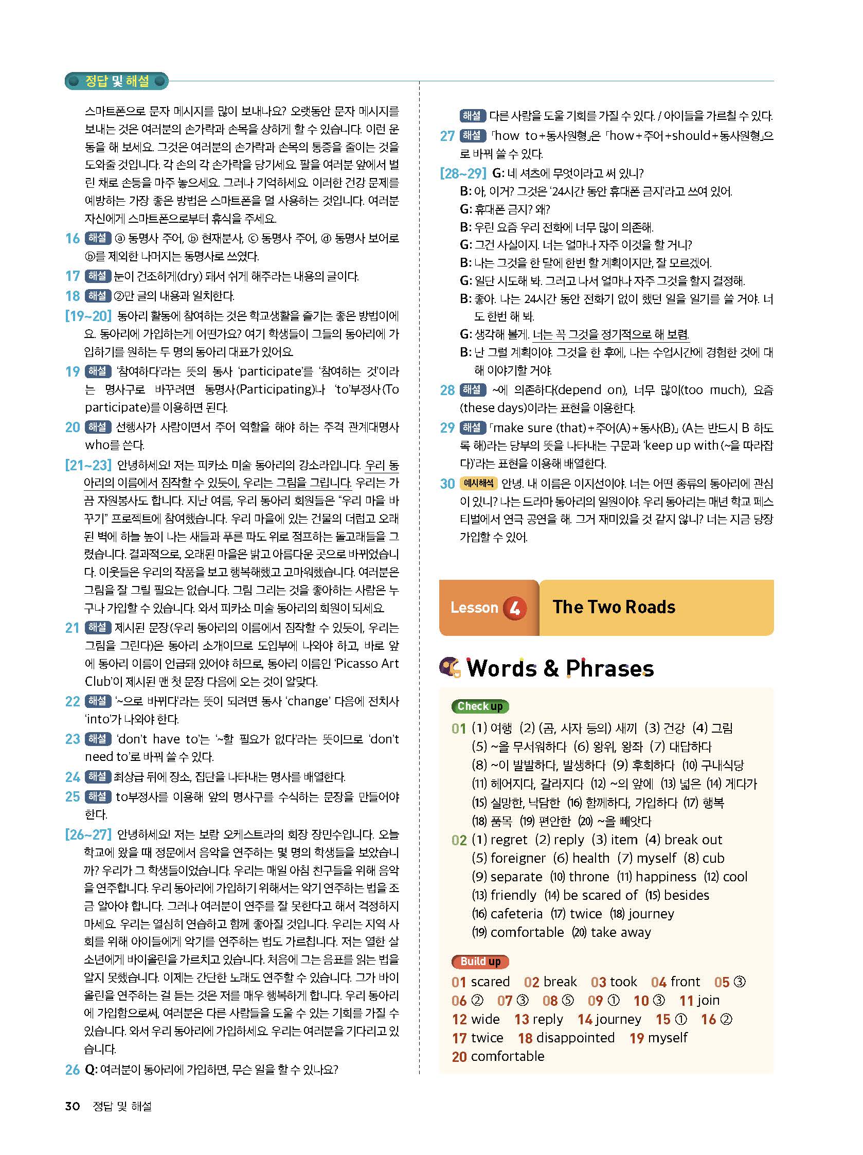 다운로드 받을필요 없이 바로 볼수 있는 모바일에 최적화된 답지 입니다