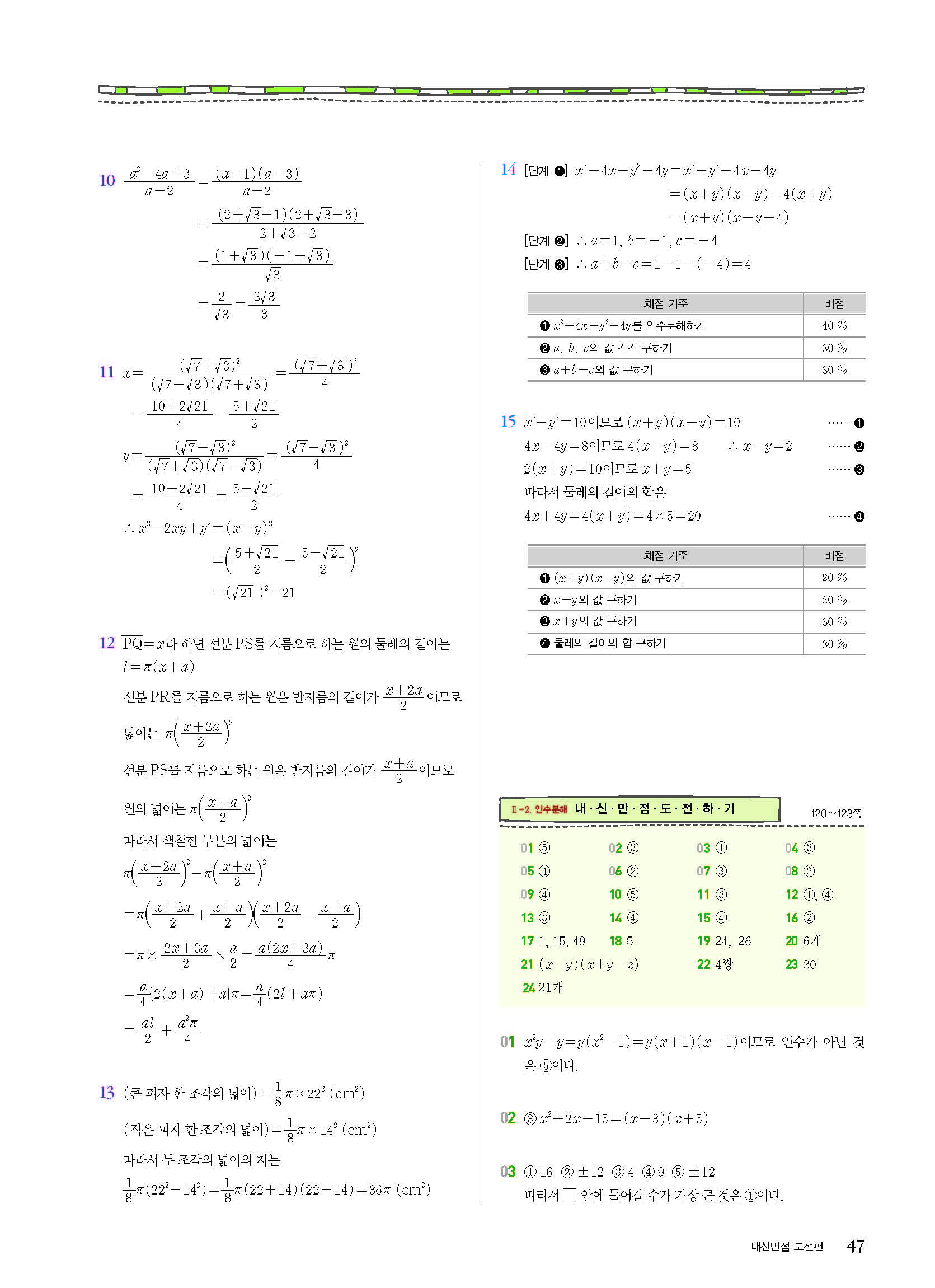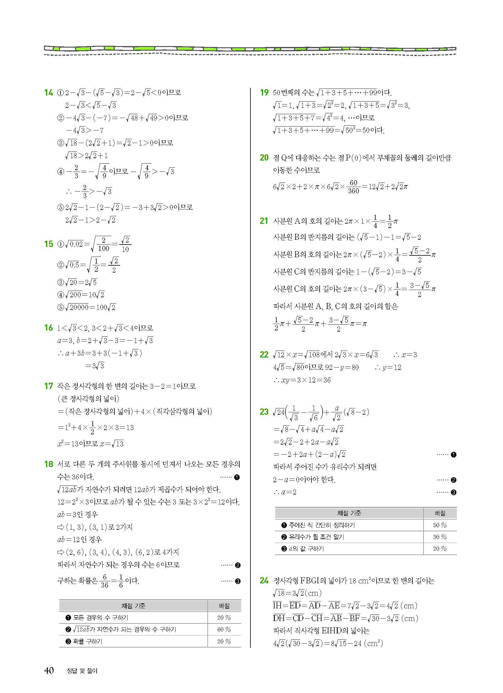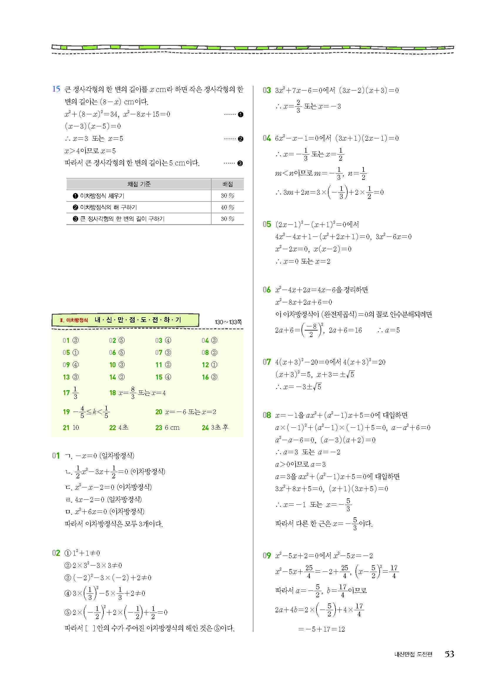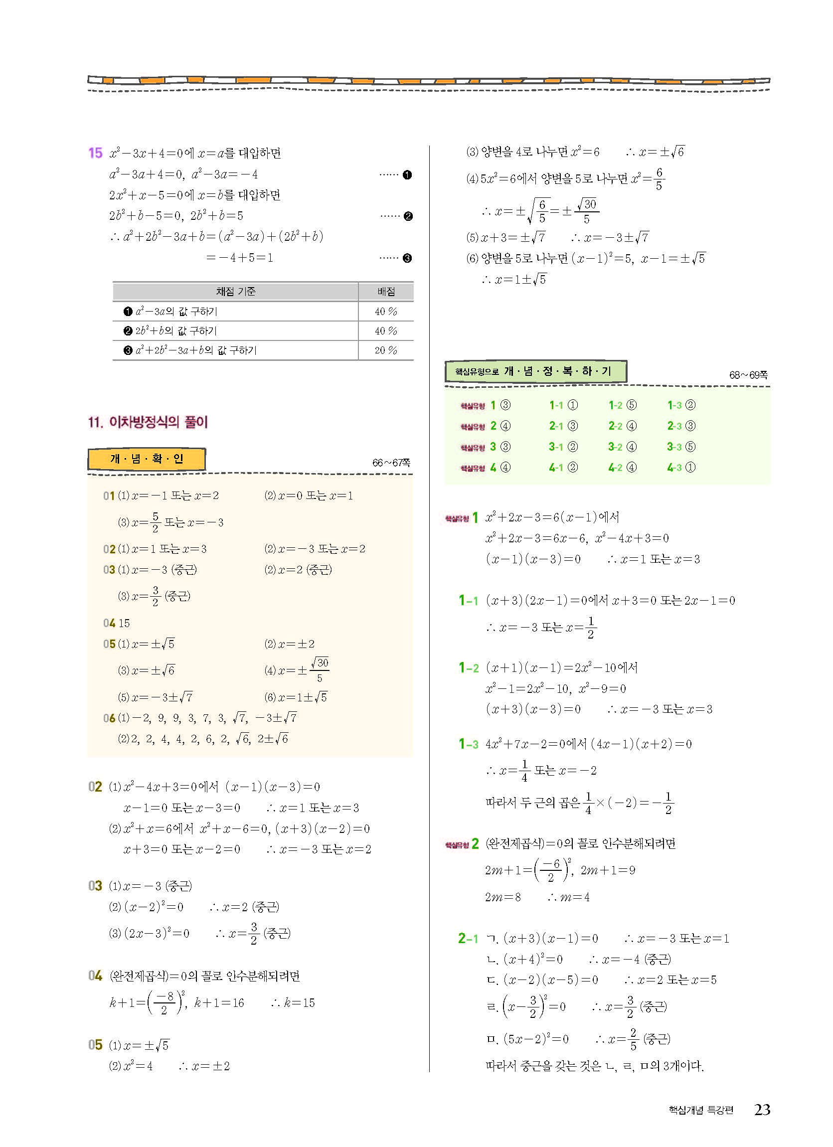 | 천재교육 이준열 중3 수학교과서 답지 | |