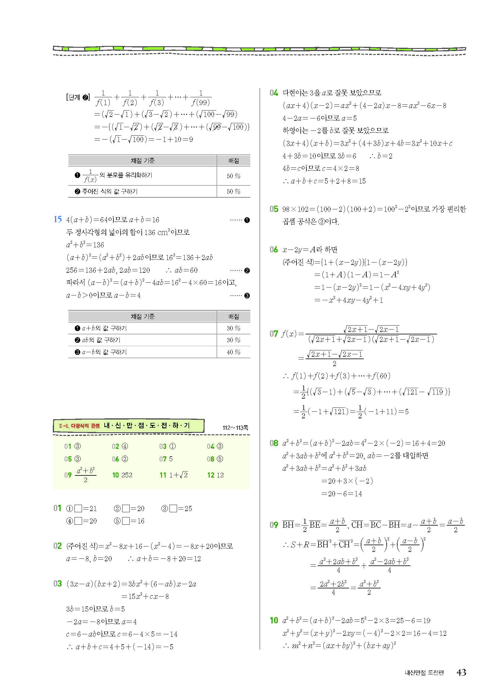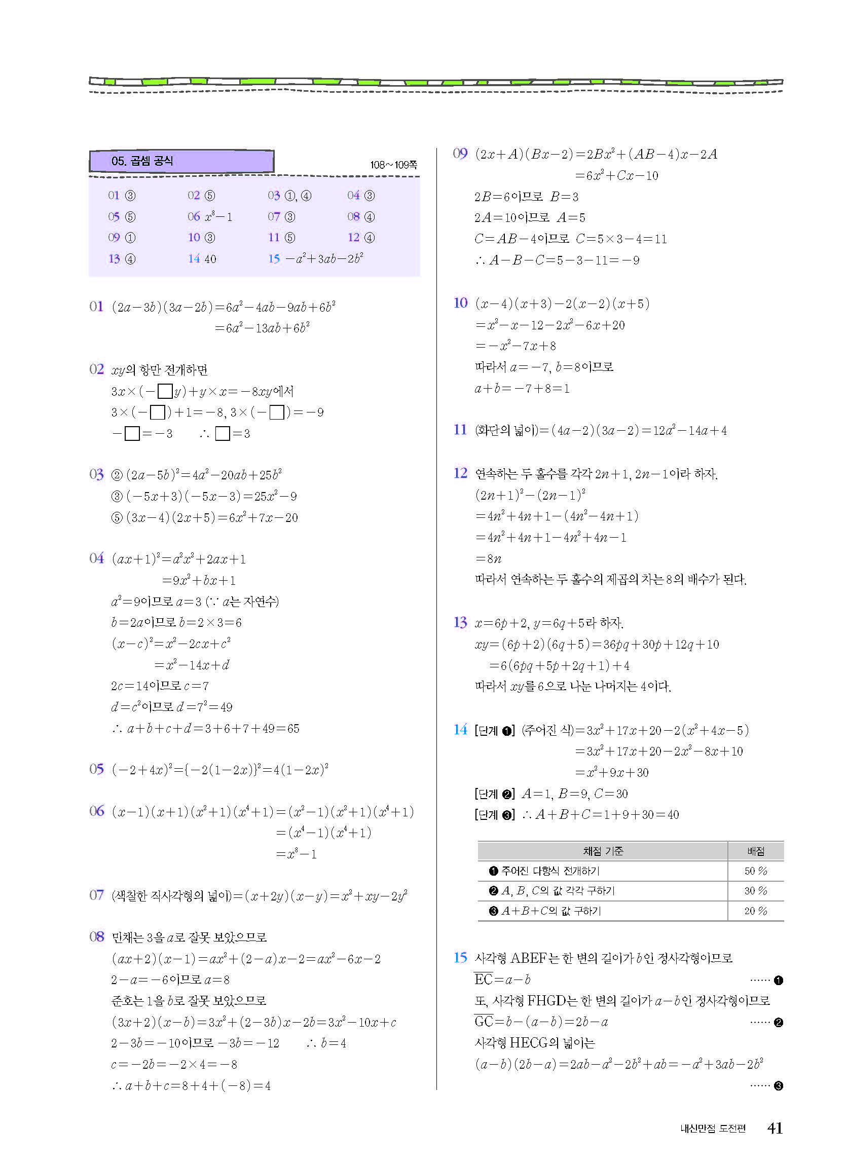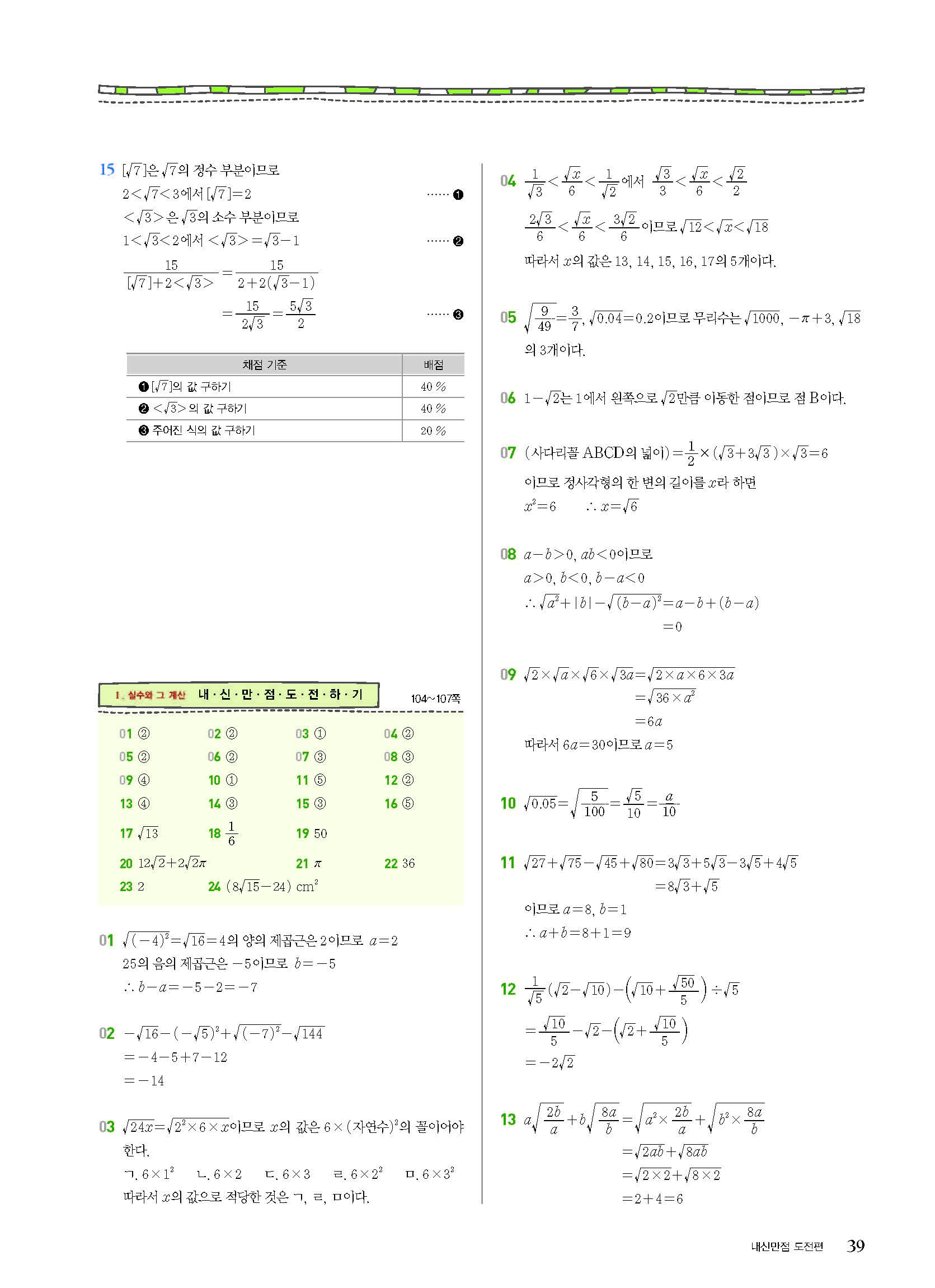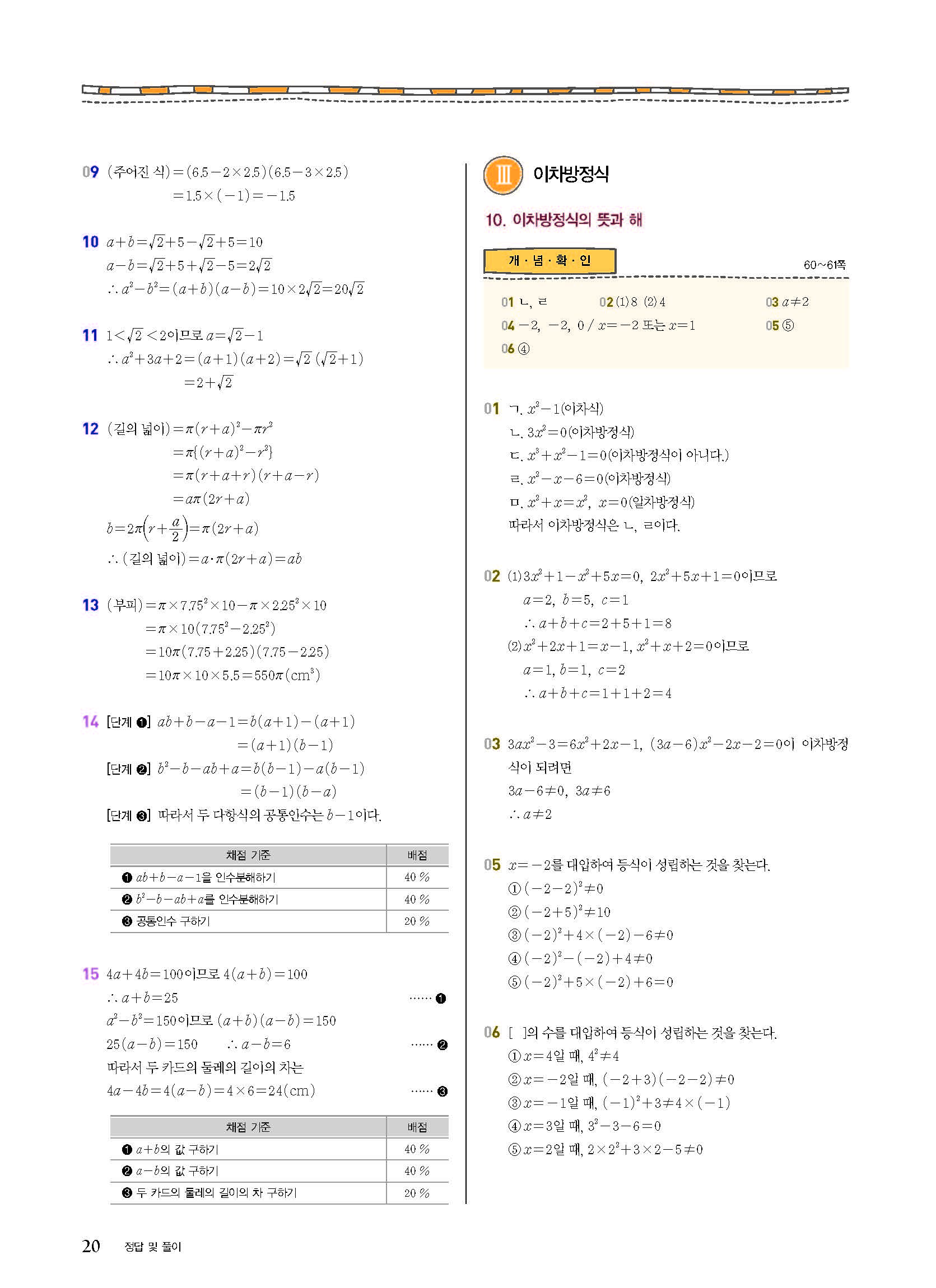 | 천재교육 이준열 중3 수학교과서 답지 | |