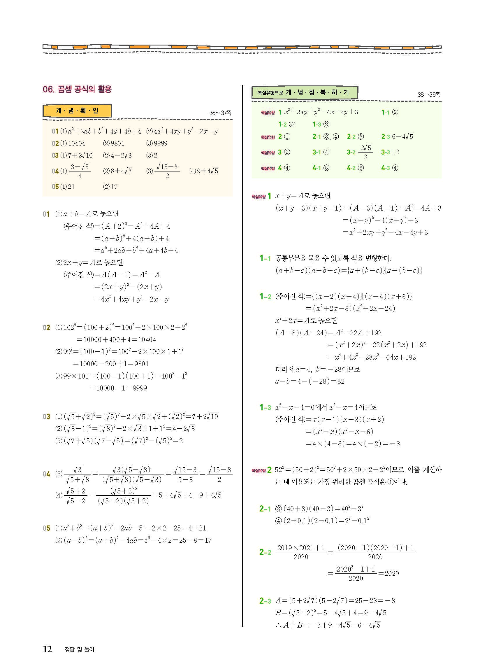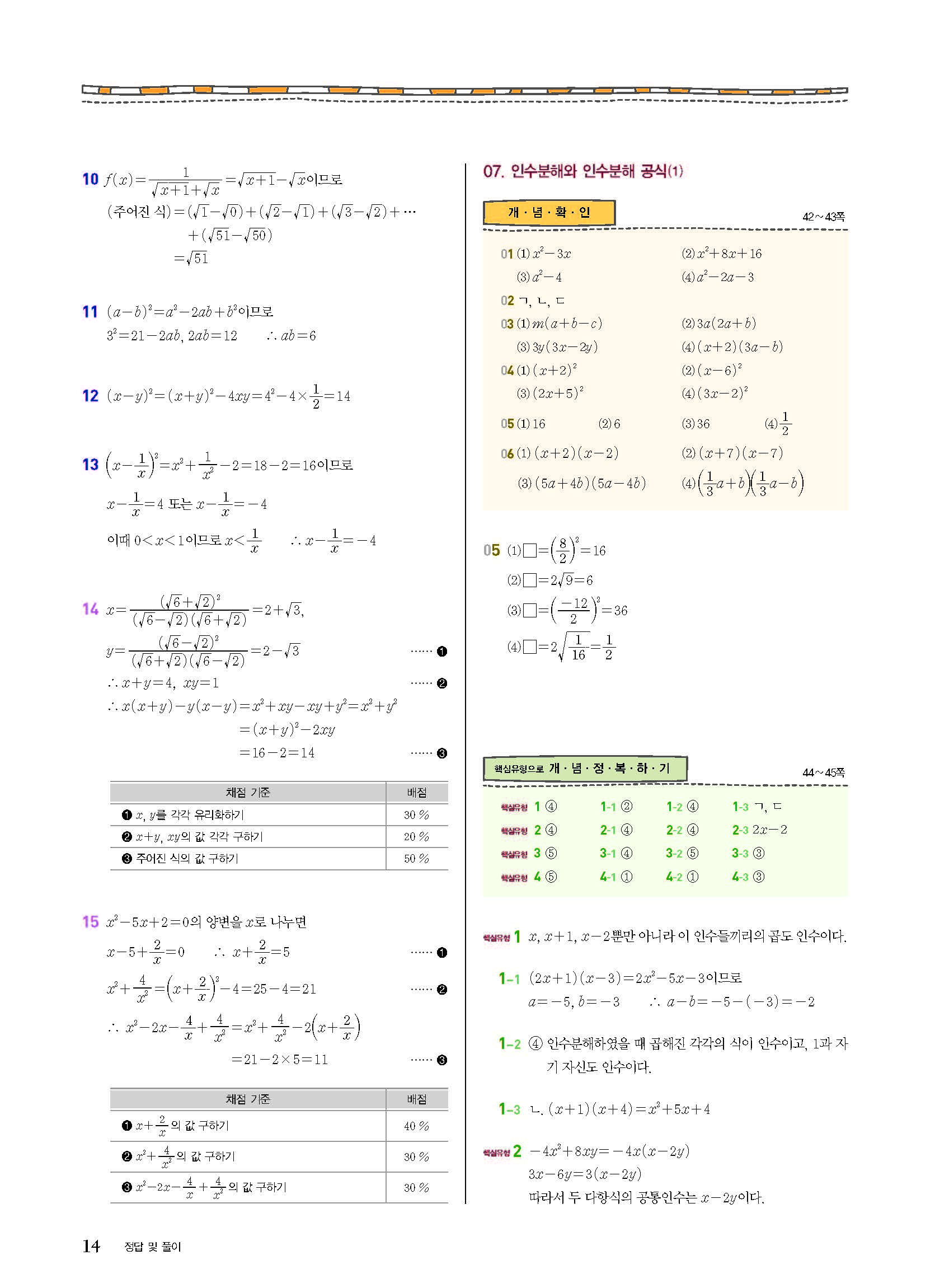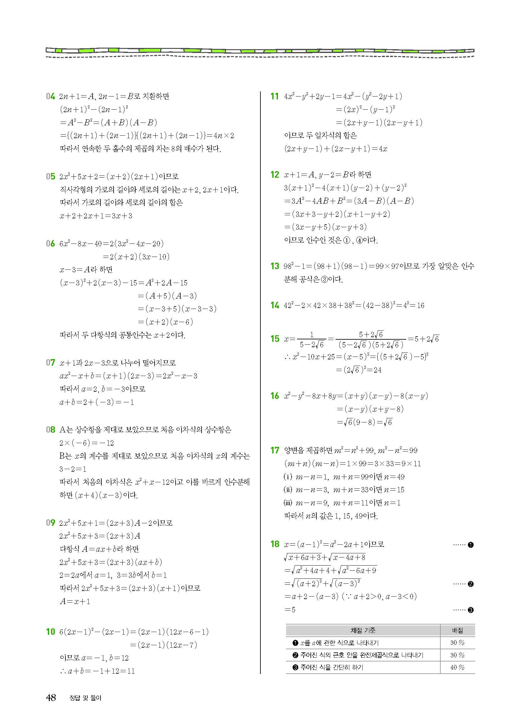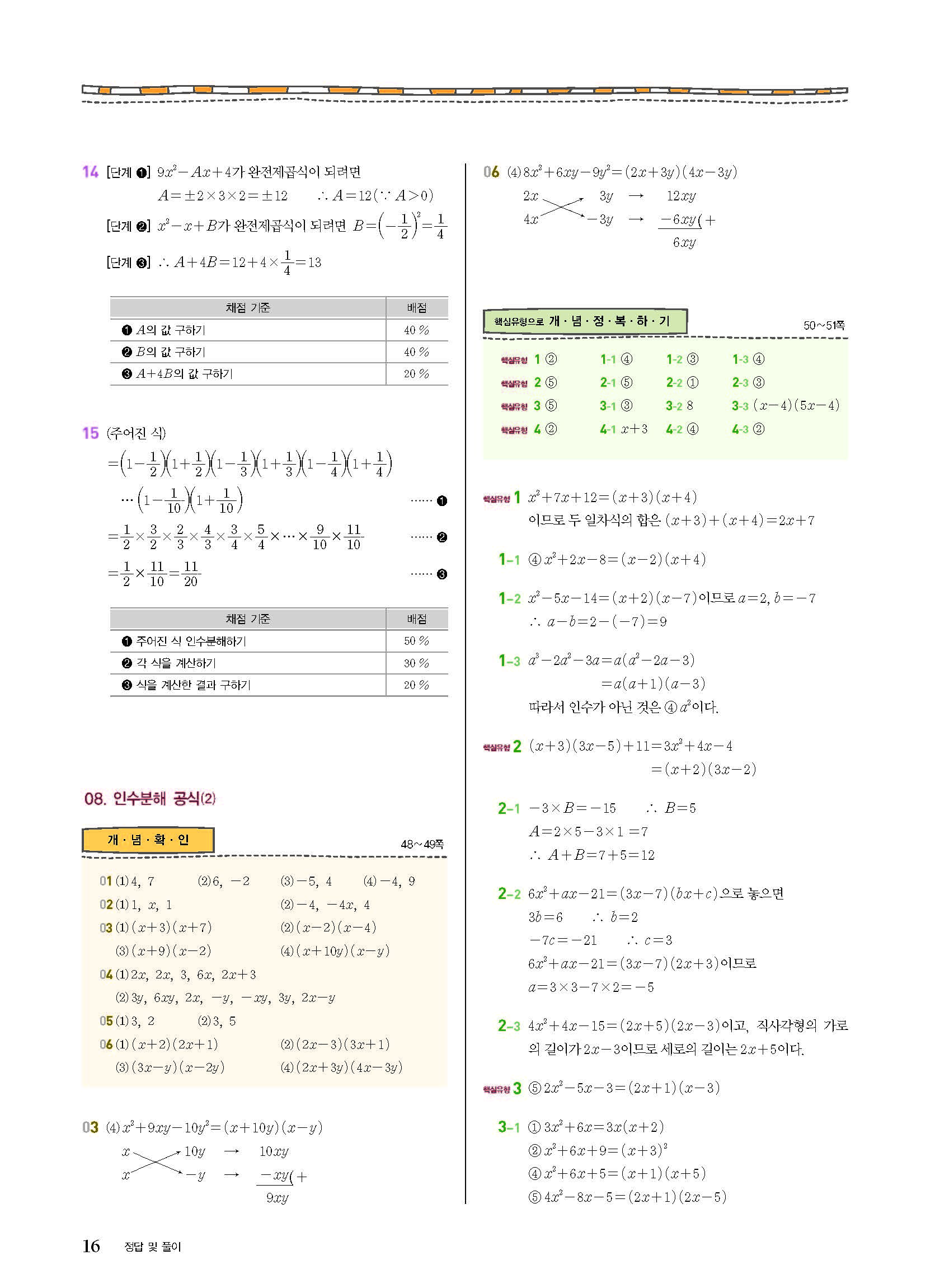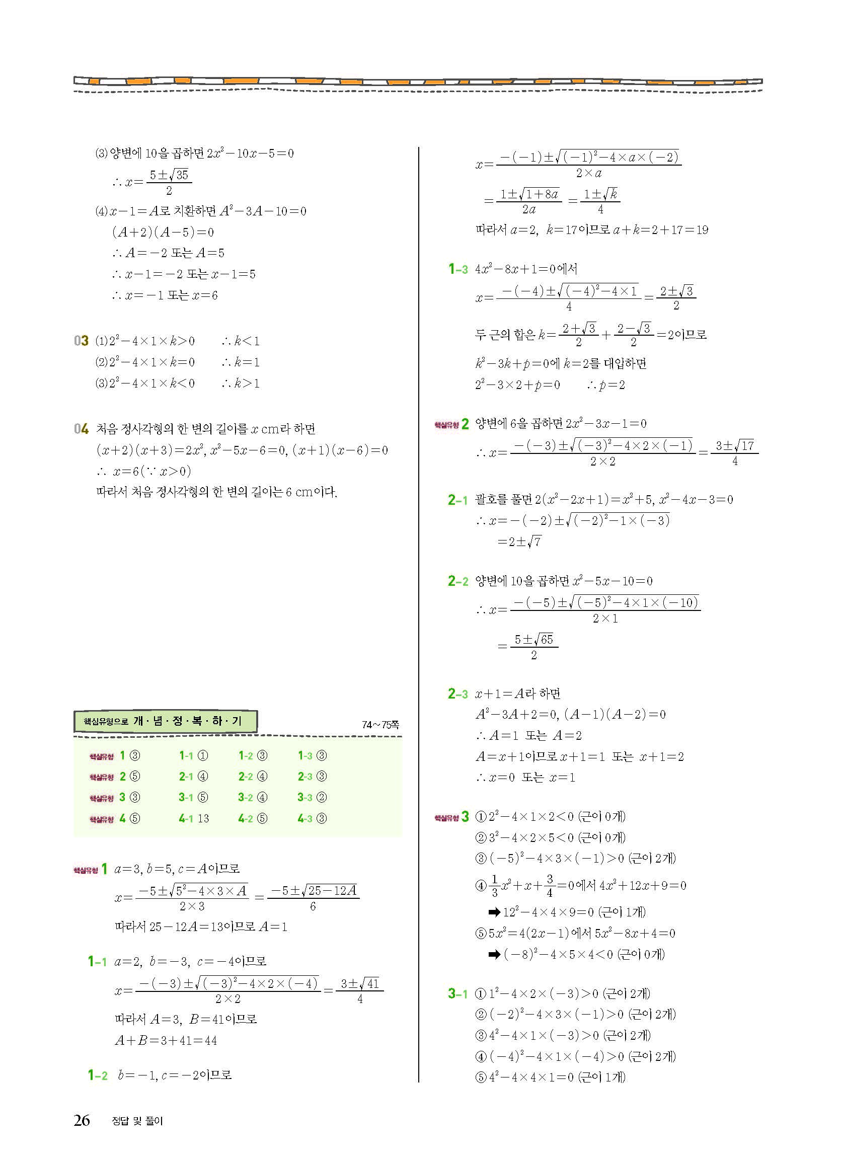 | 천재교육 이준열 중3 수학교과서 답지 | |