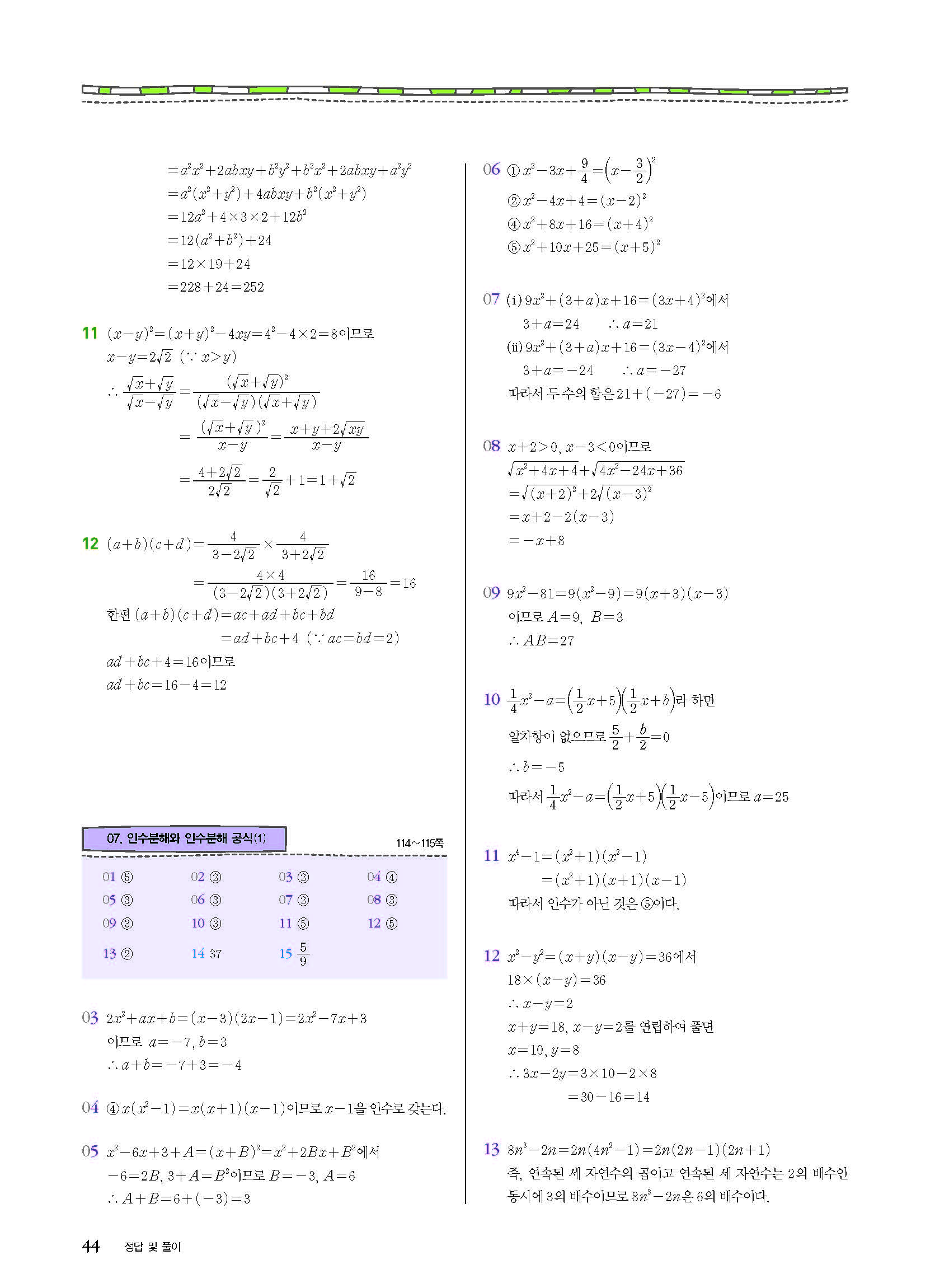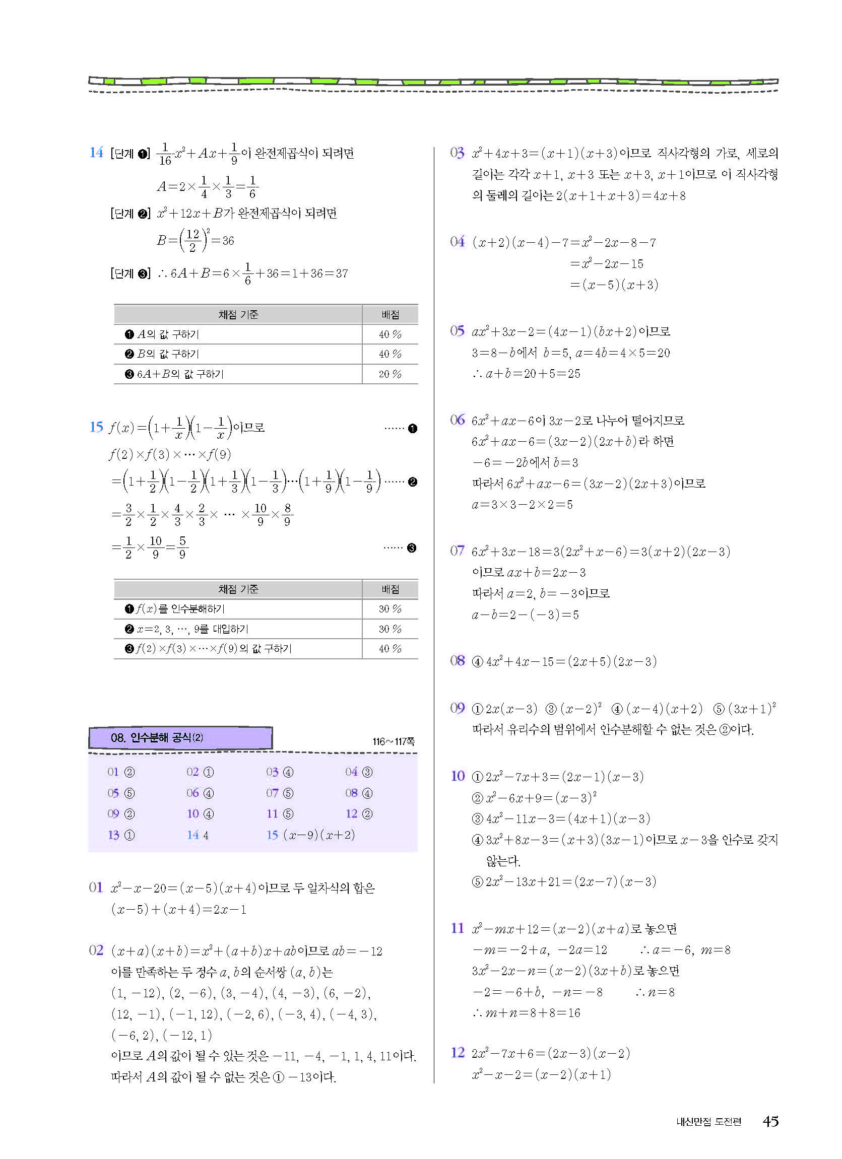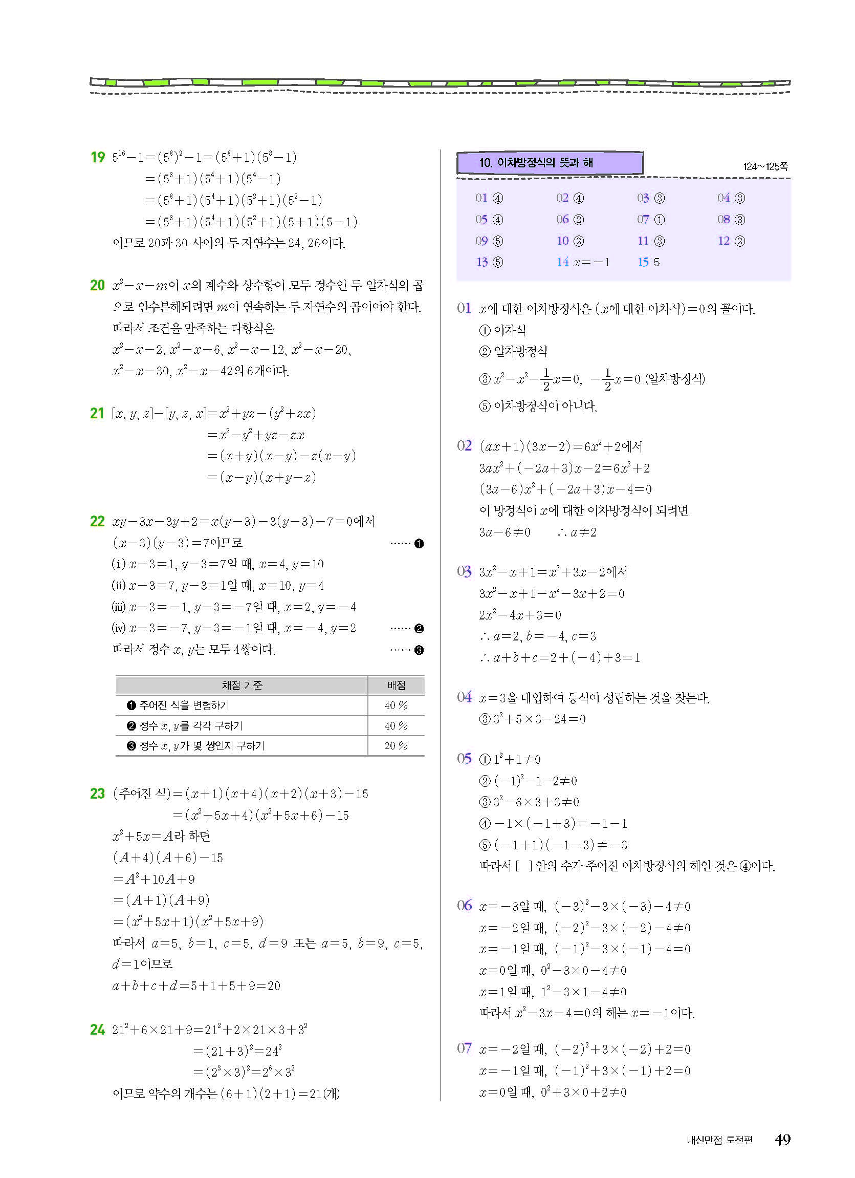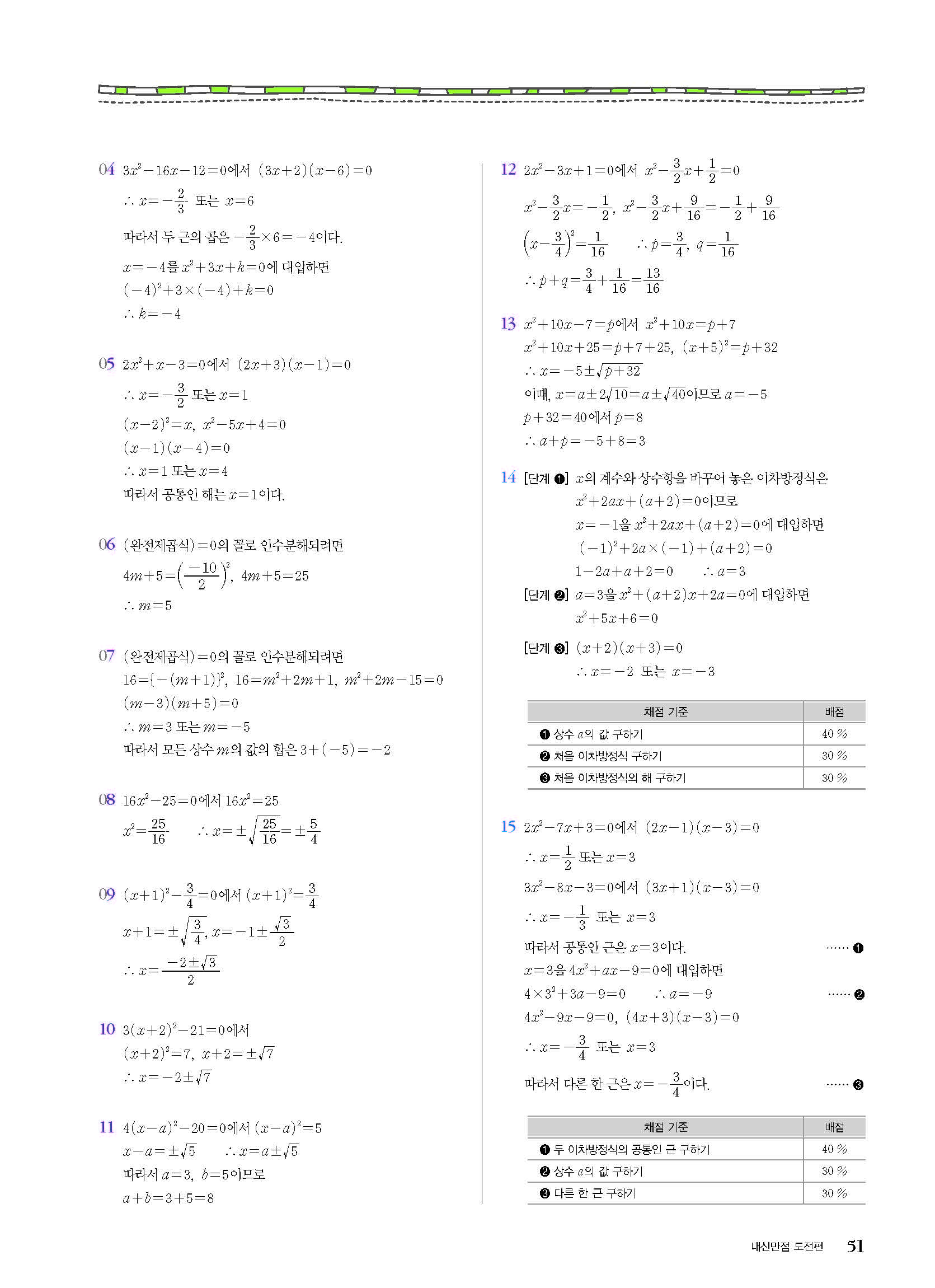 | 천재교육 이준열 중3 수학교과서 답지 | |