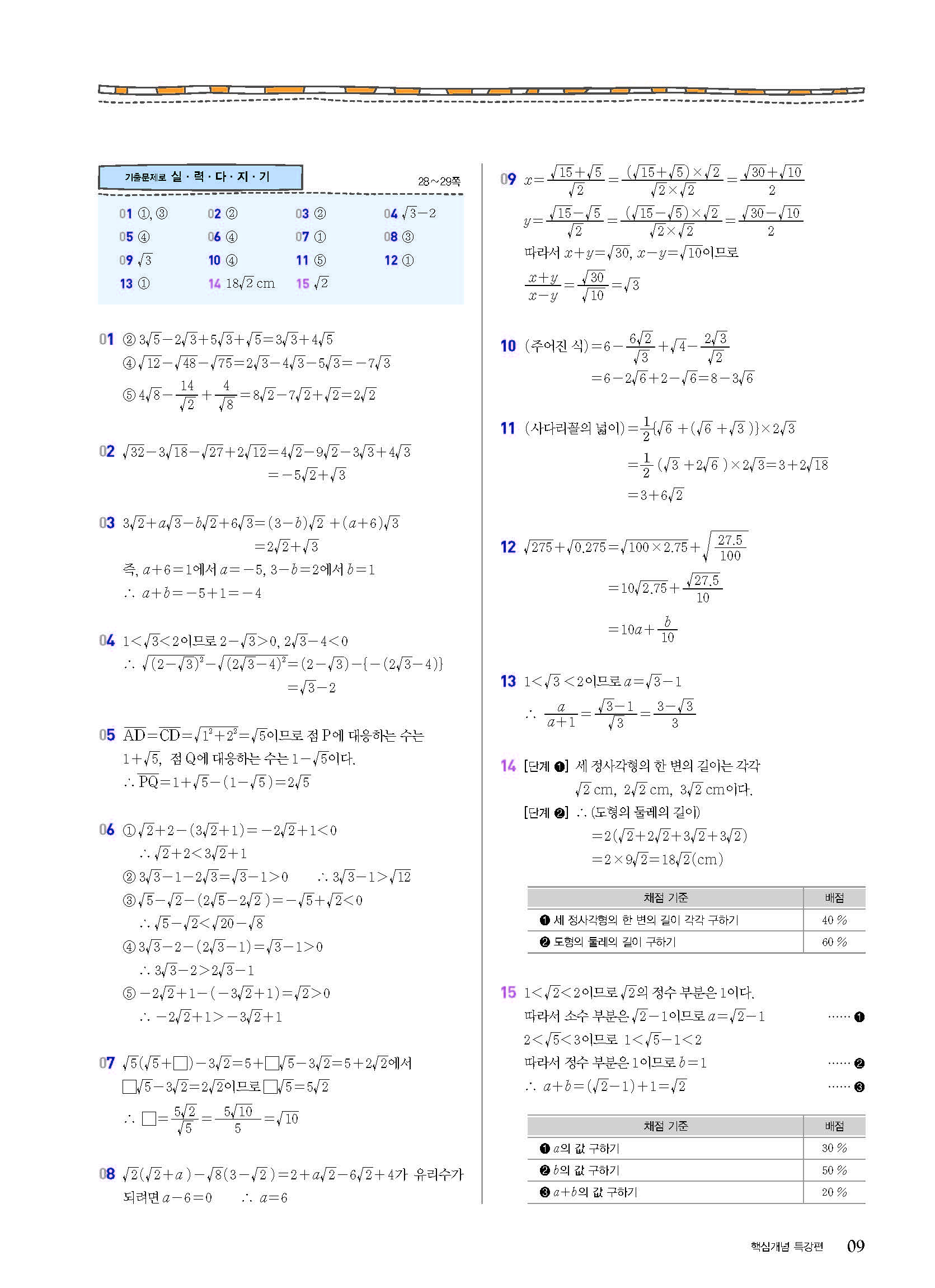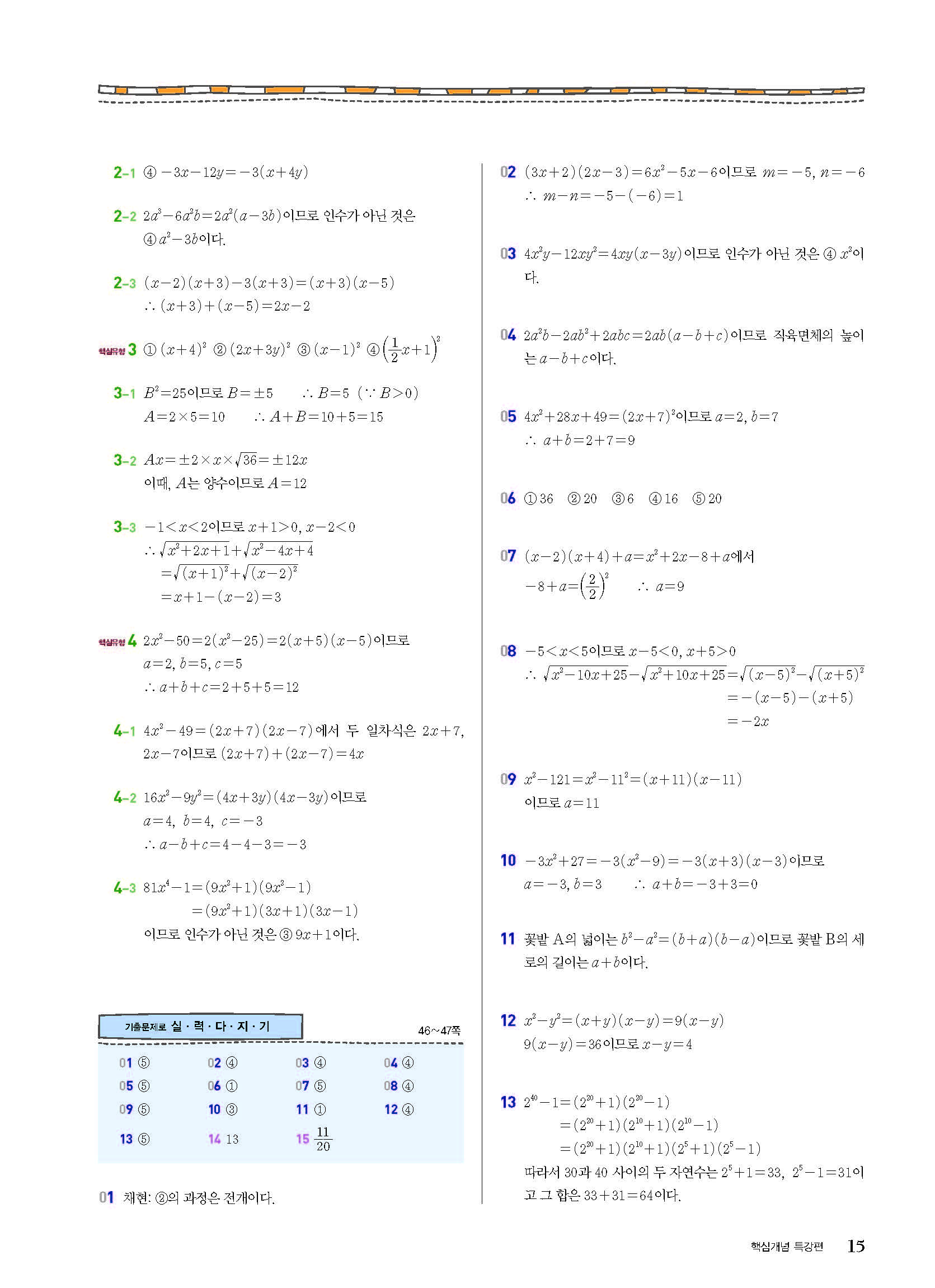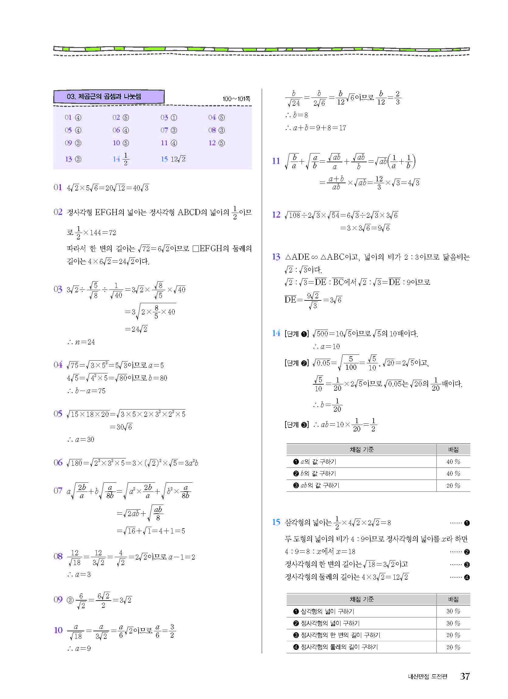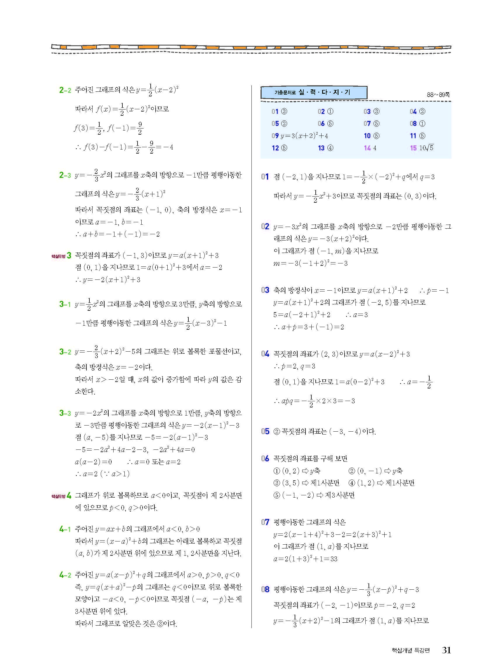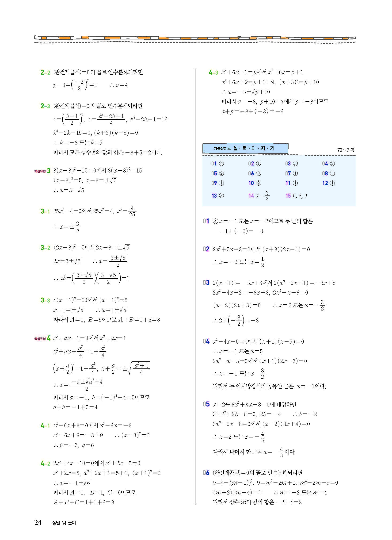 숨마쿰라우데 중학수학 실전문제집 중3상 3-1 사진답지 빠른답지 모바일최적화