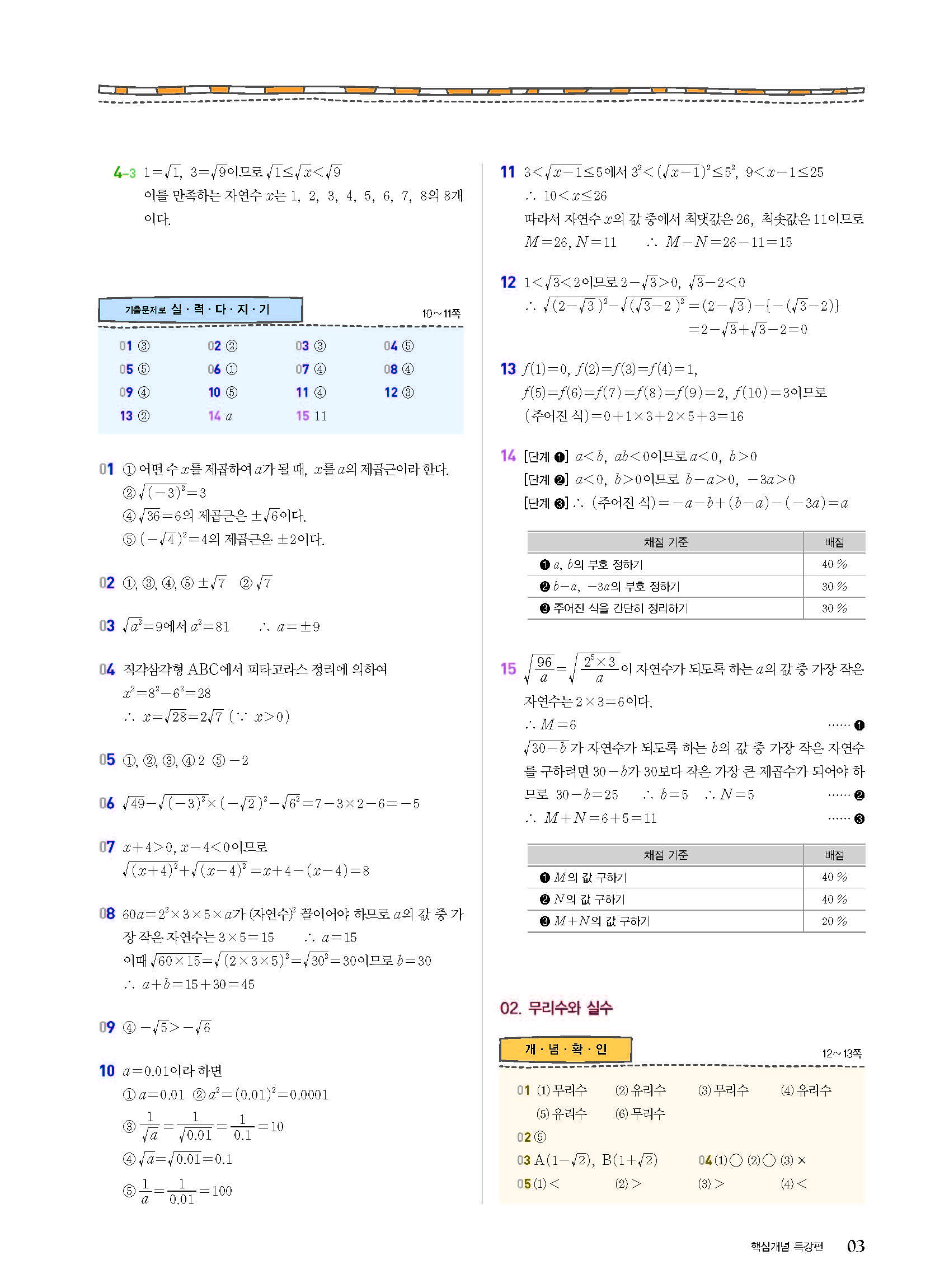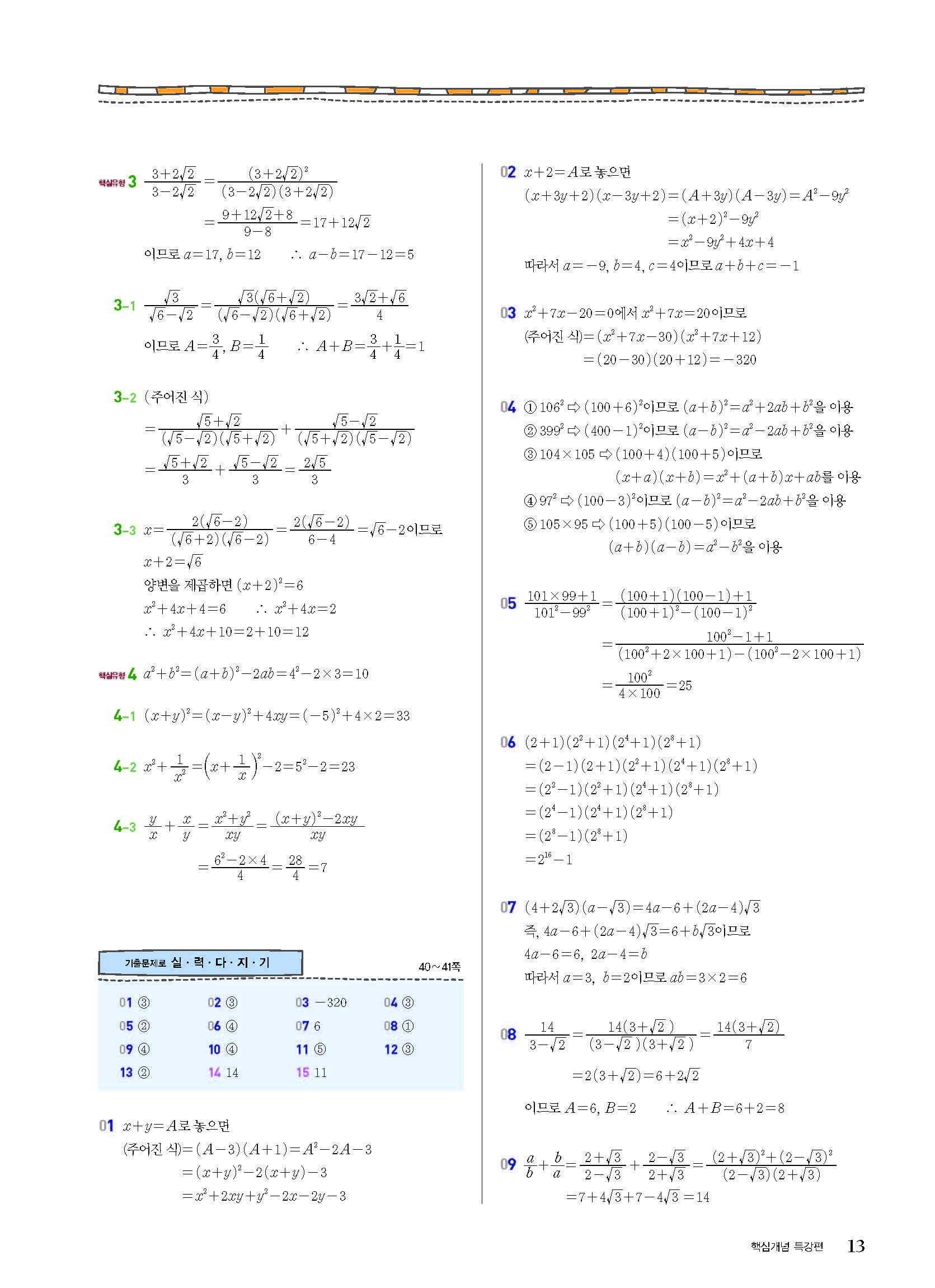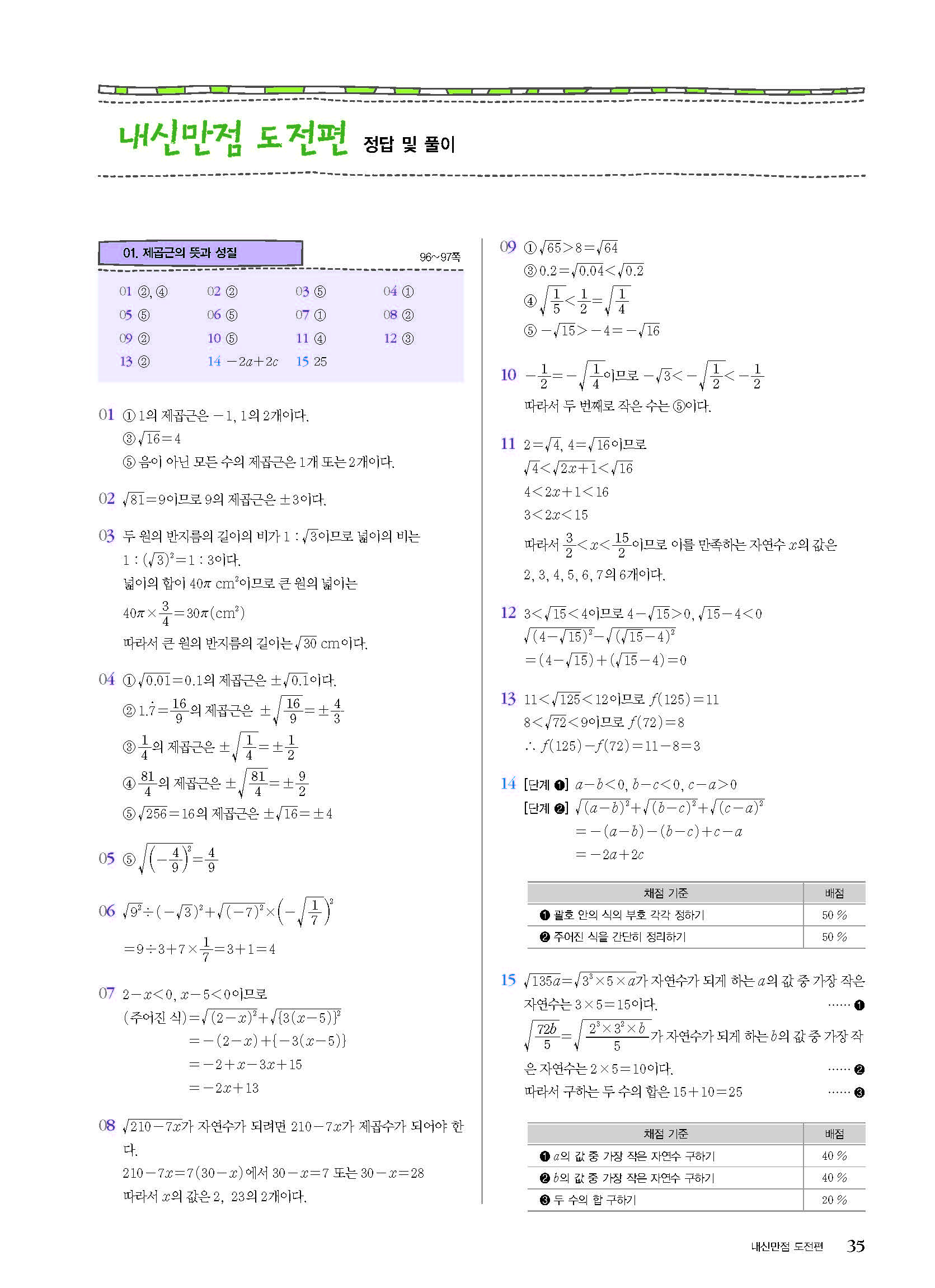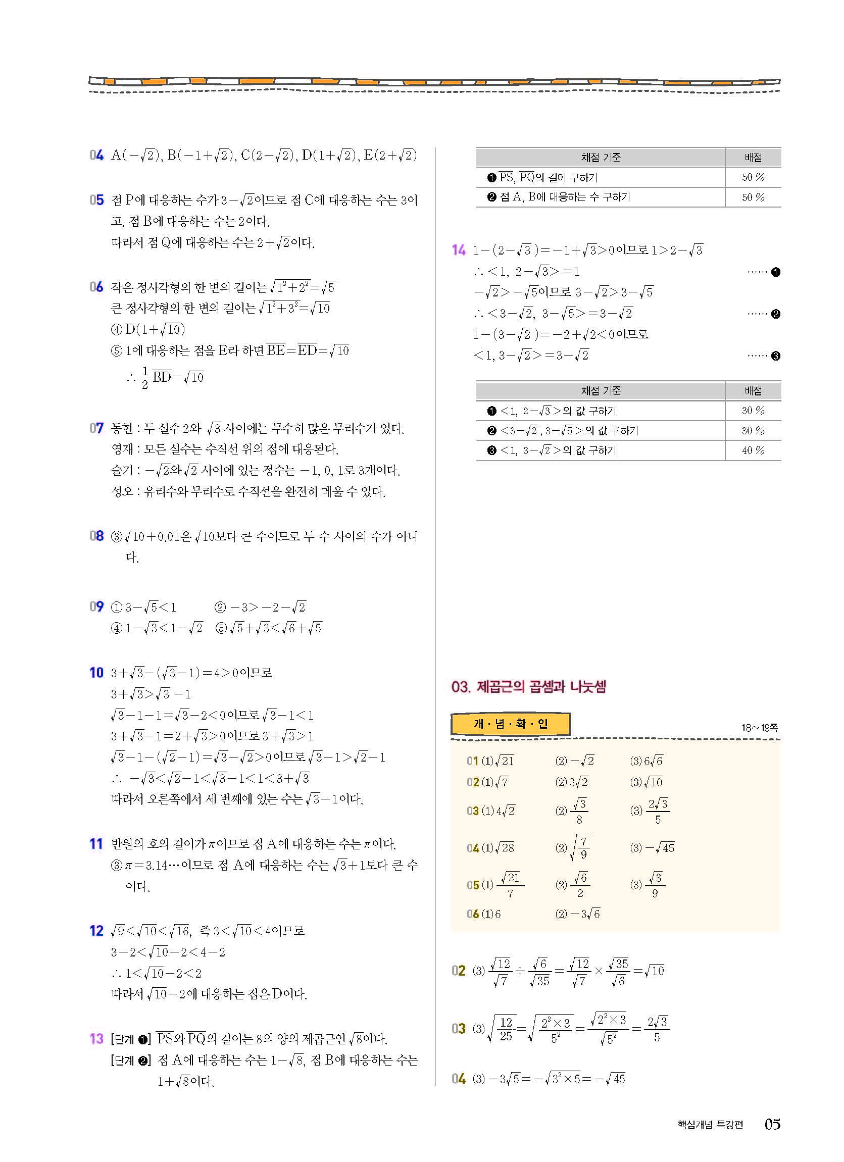 숨마쿰라우데 중학수학 실전문제집 중3상 3-1 사진답지 빠른답지 모바일최적화