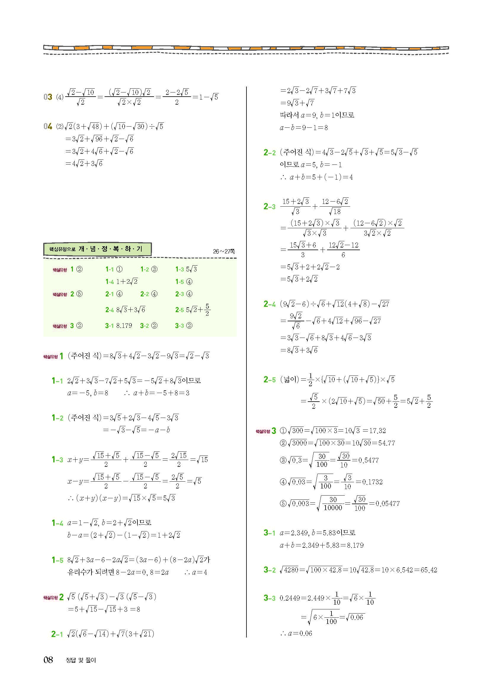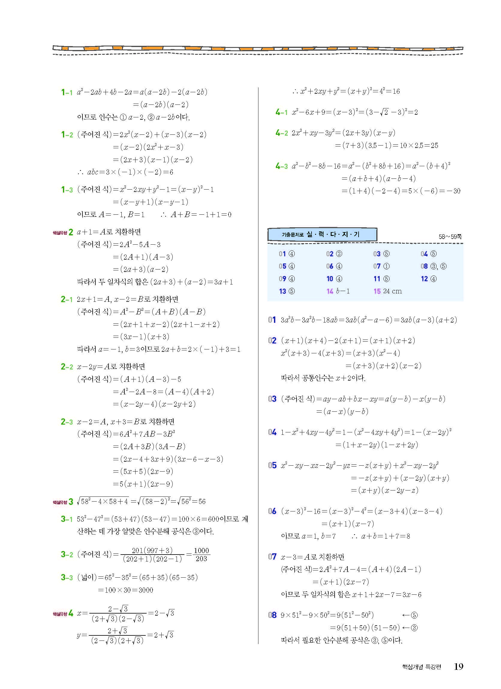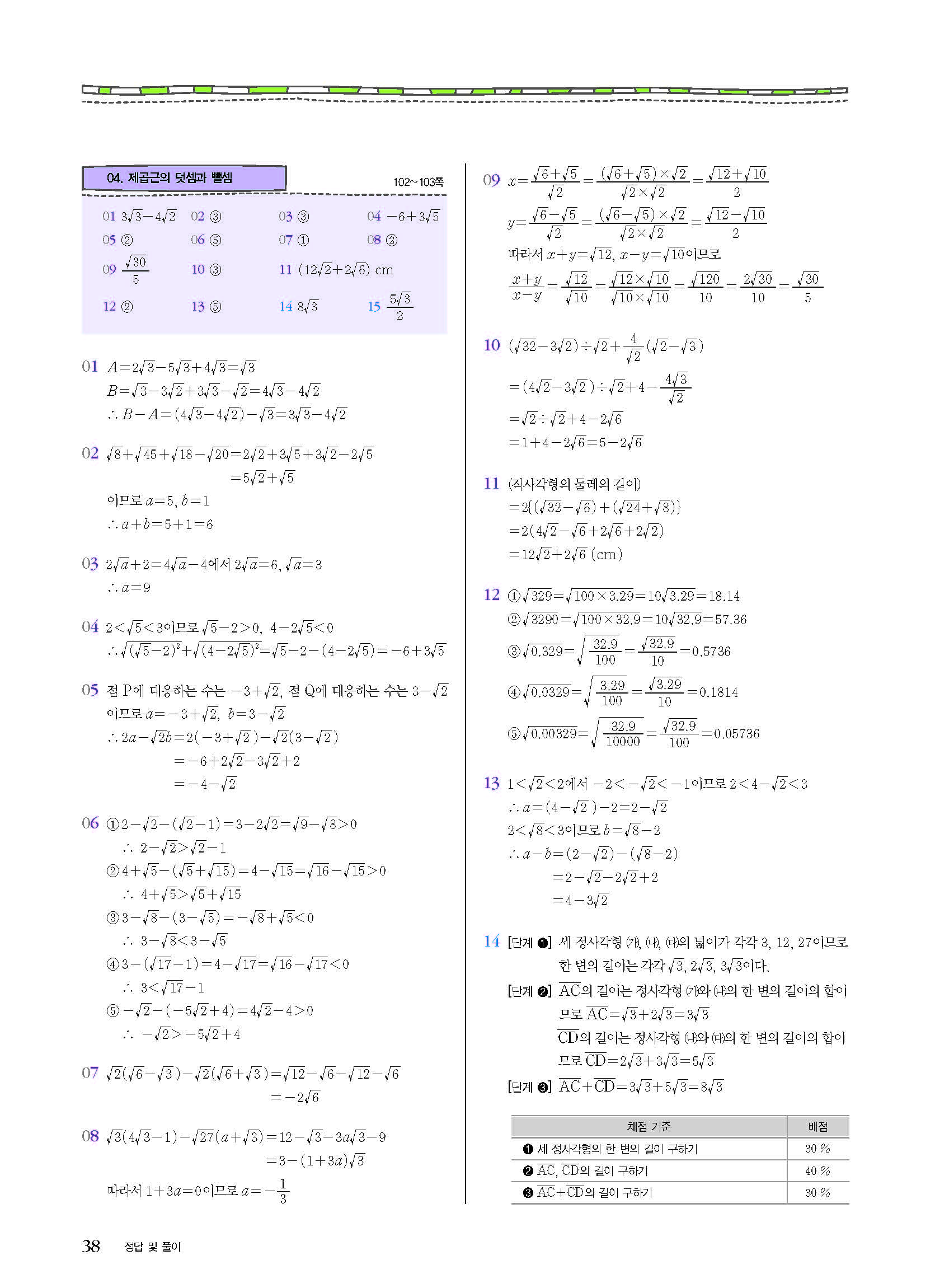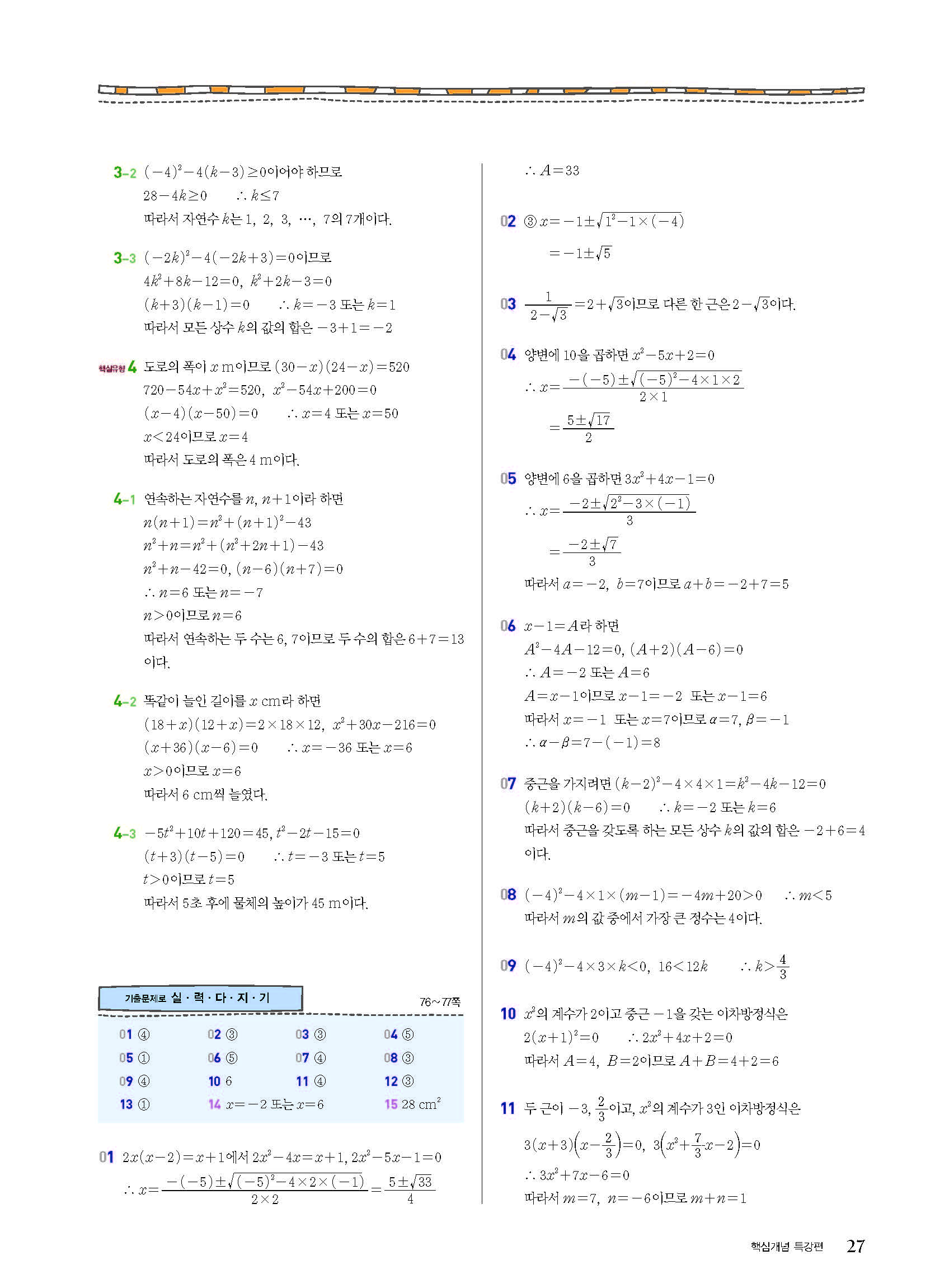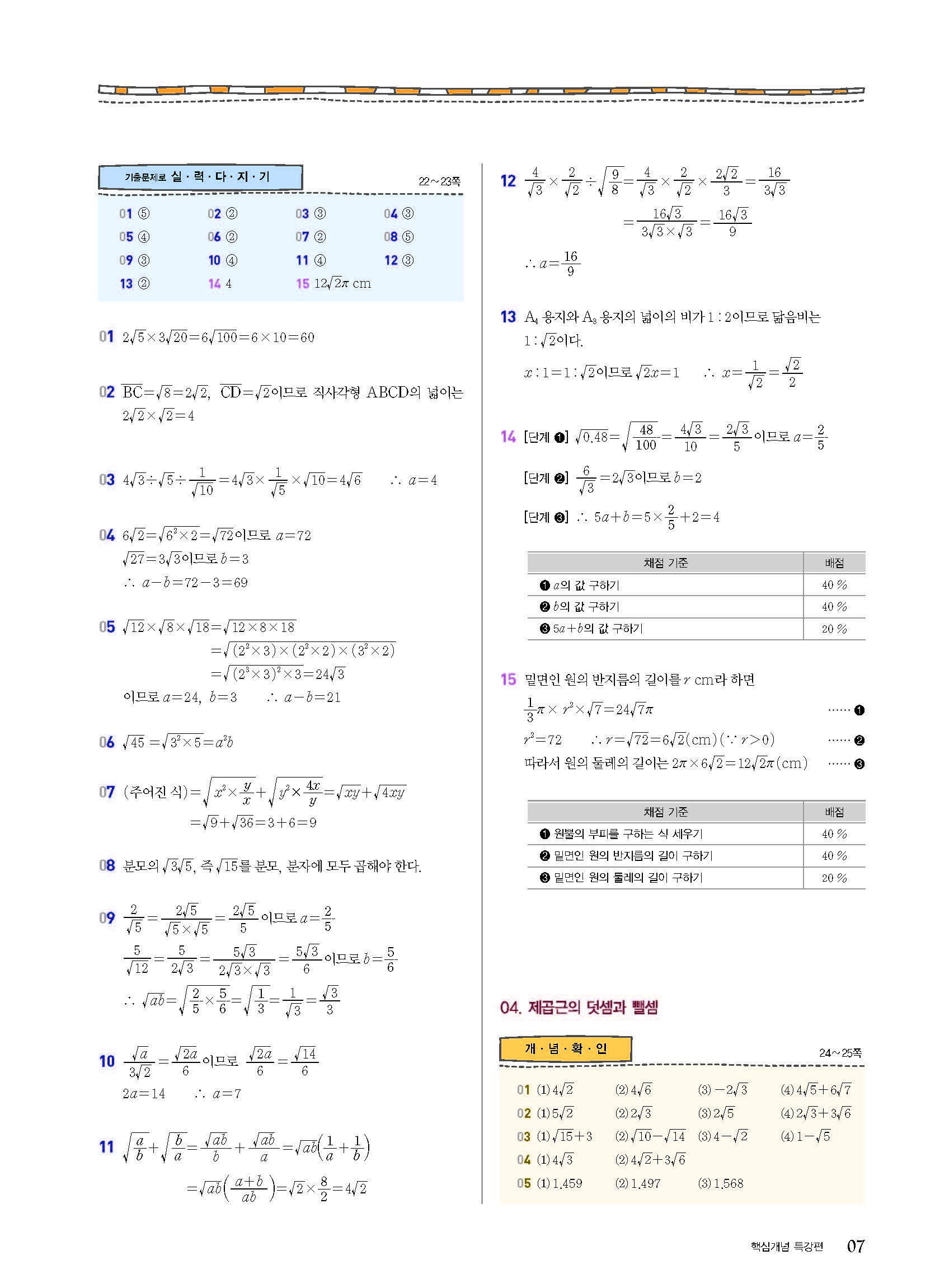 숨마쿰라우데 중학수학 실전문제집 중3상 3-1 사진답지 빠른답지 모바일최적화