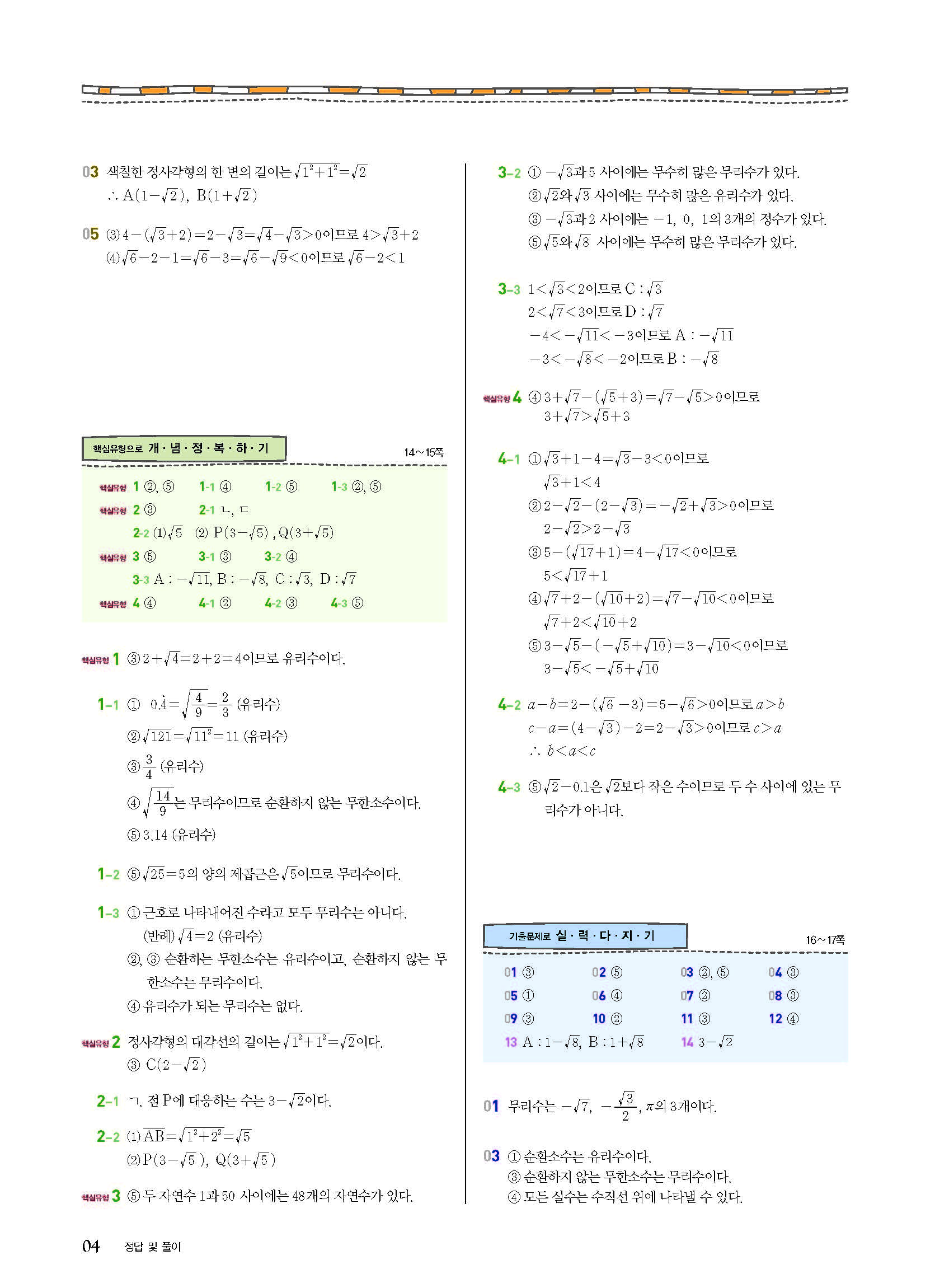 | 천재교육 류희찬 중3 수학교과서 답지 | |