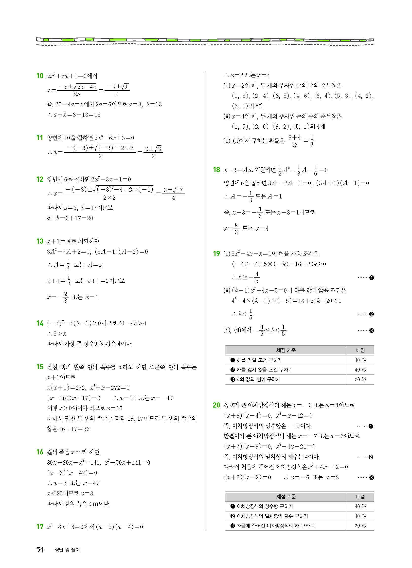 | 교학사 고호경 중3 수학교과서 답지 | |