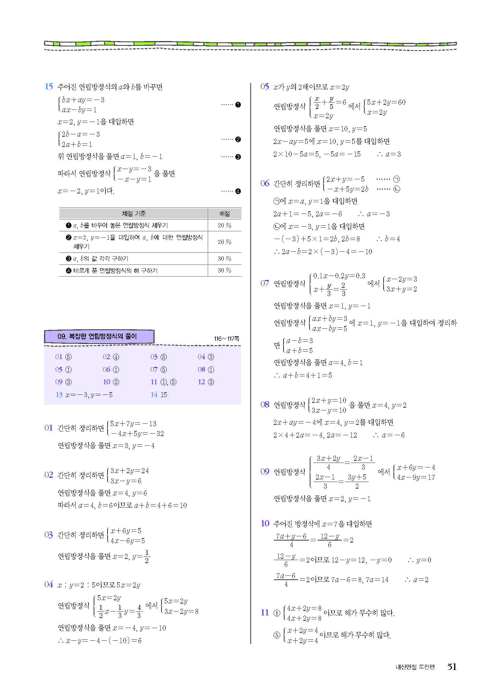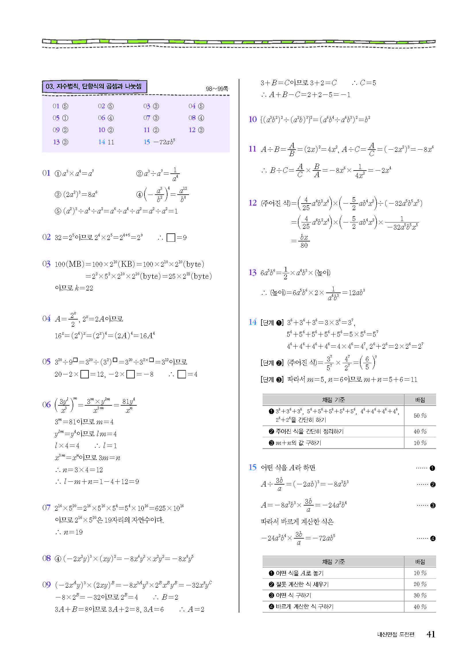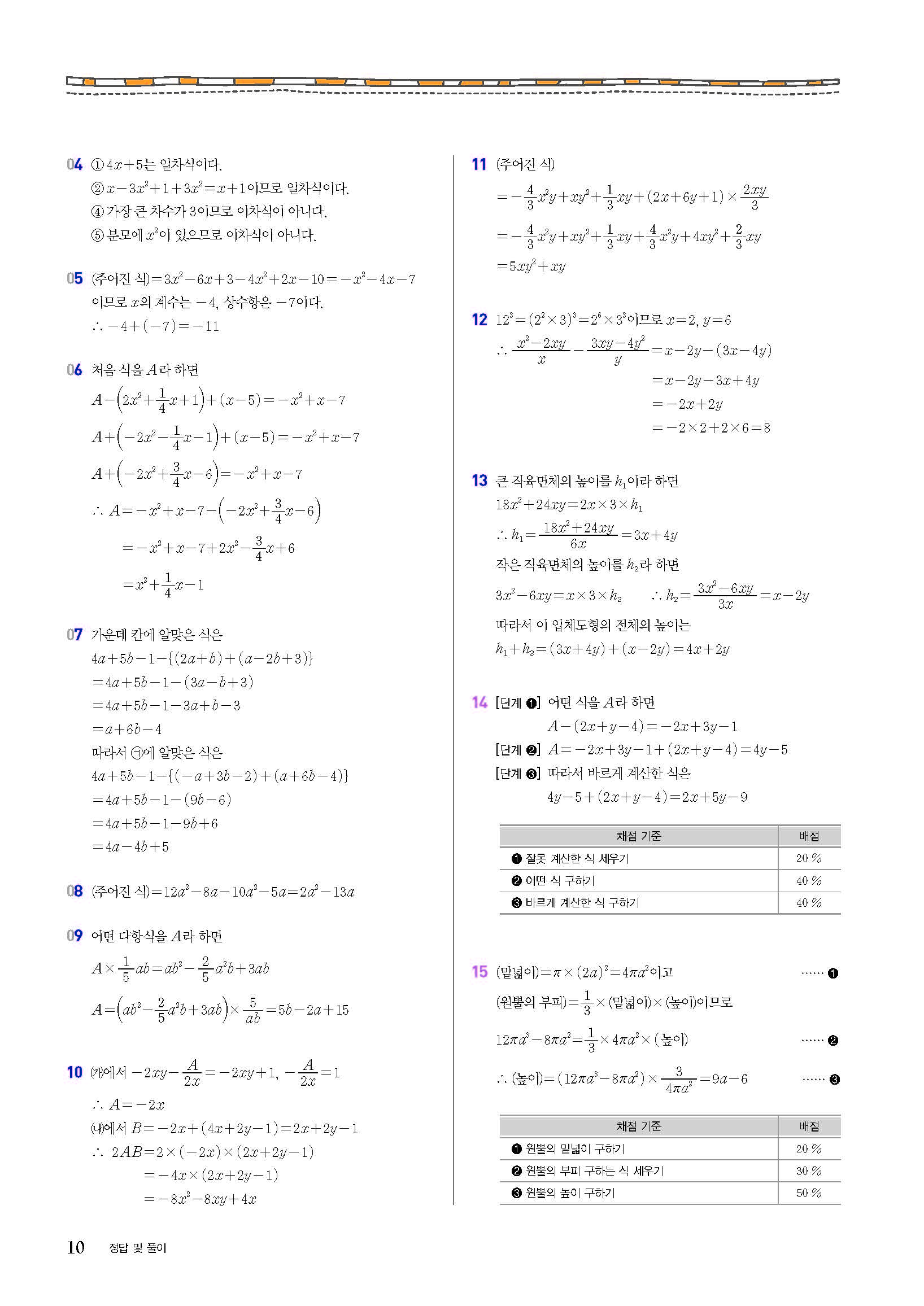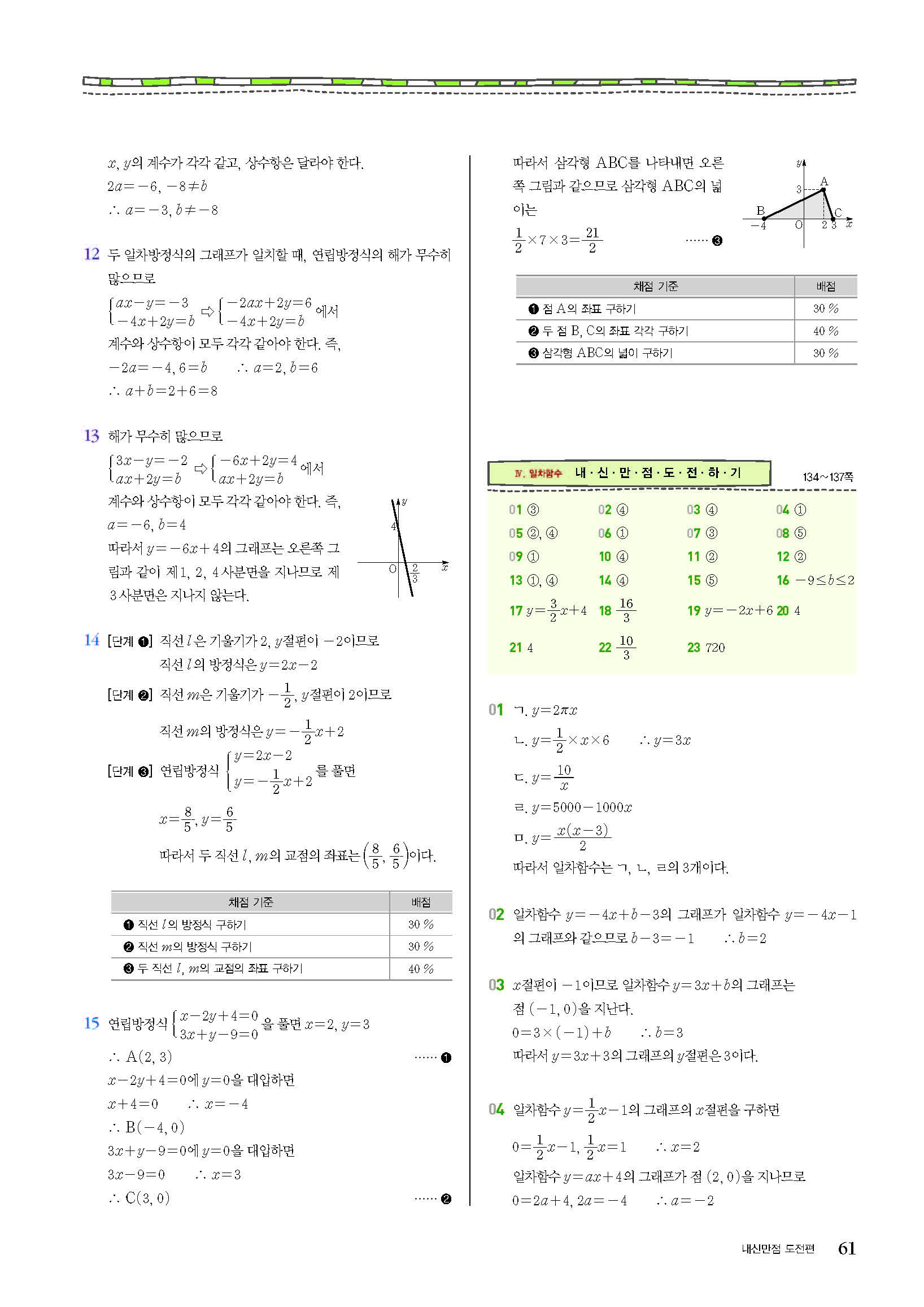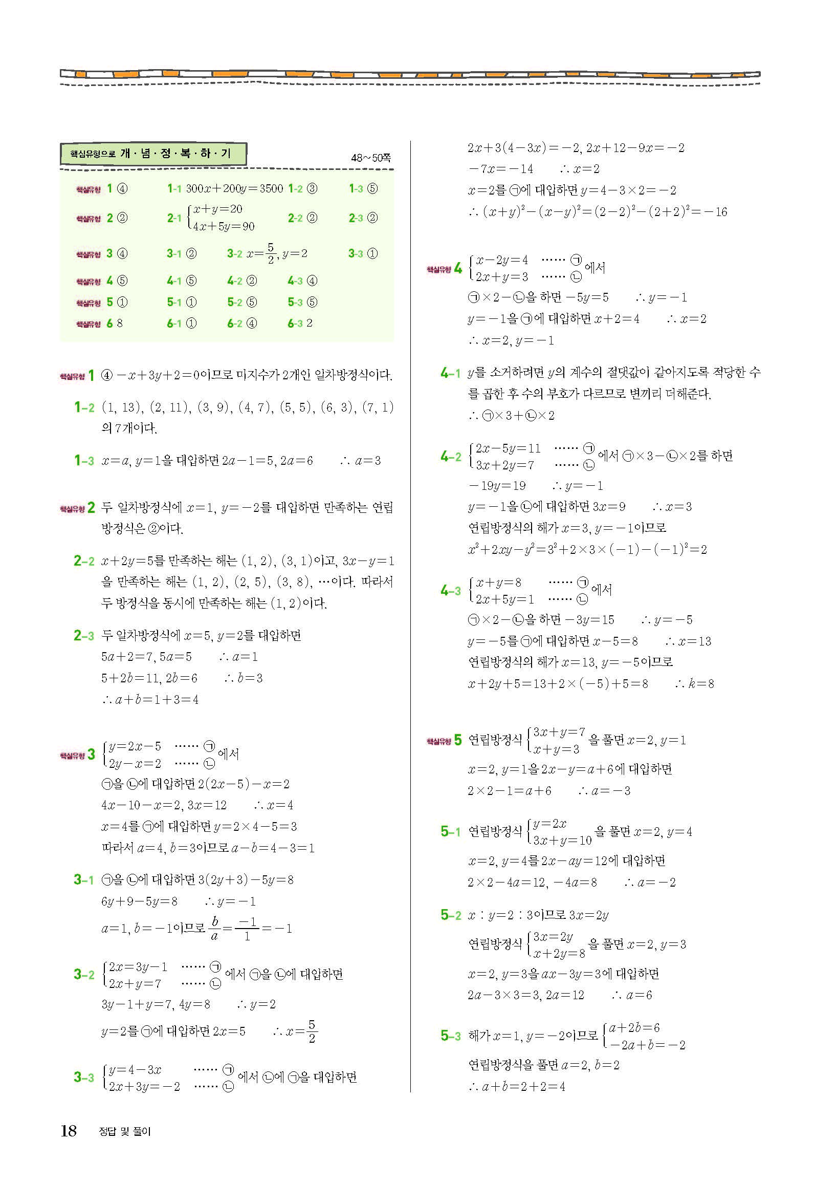 | 천재교육 이준열 중2 수학교과서 답지 | |