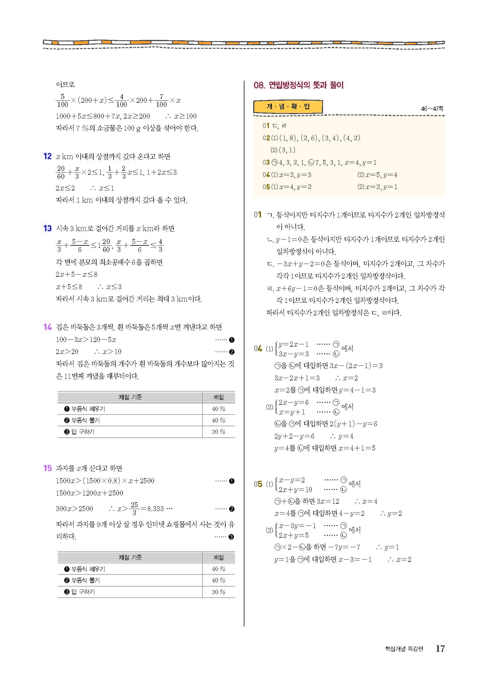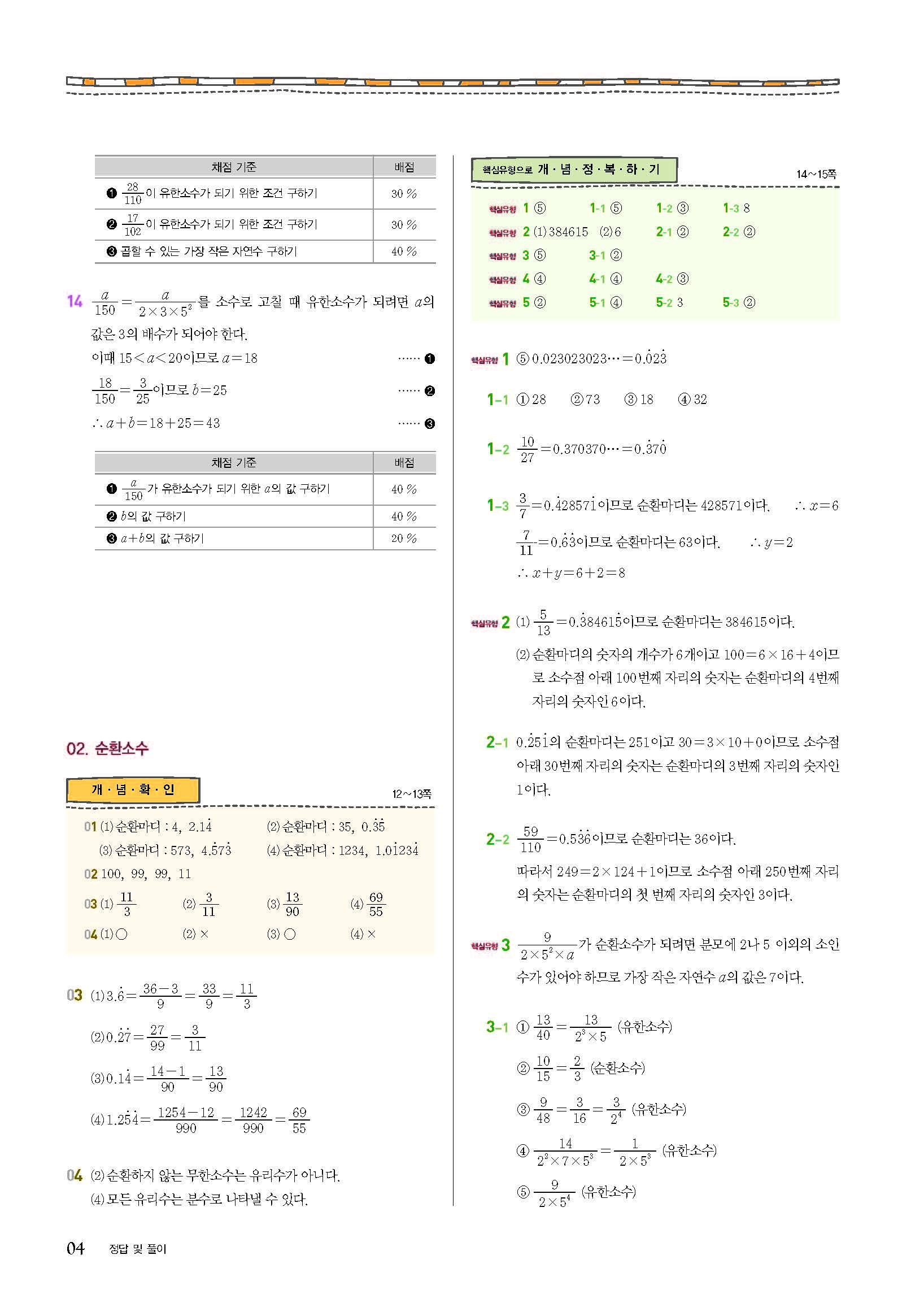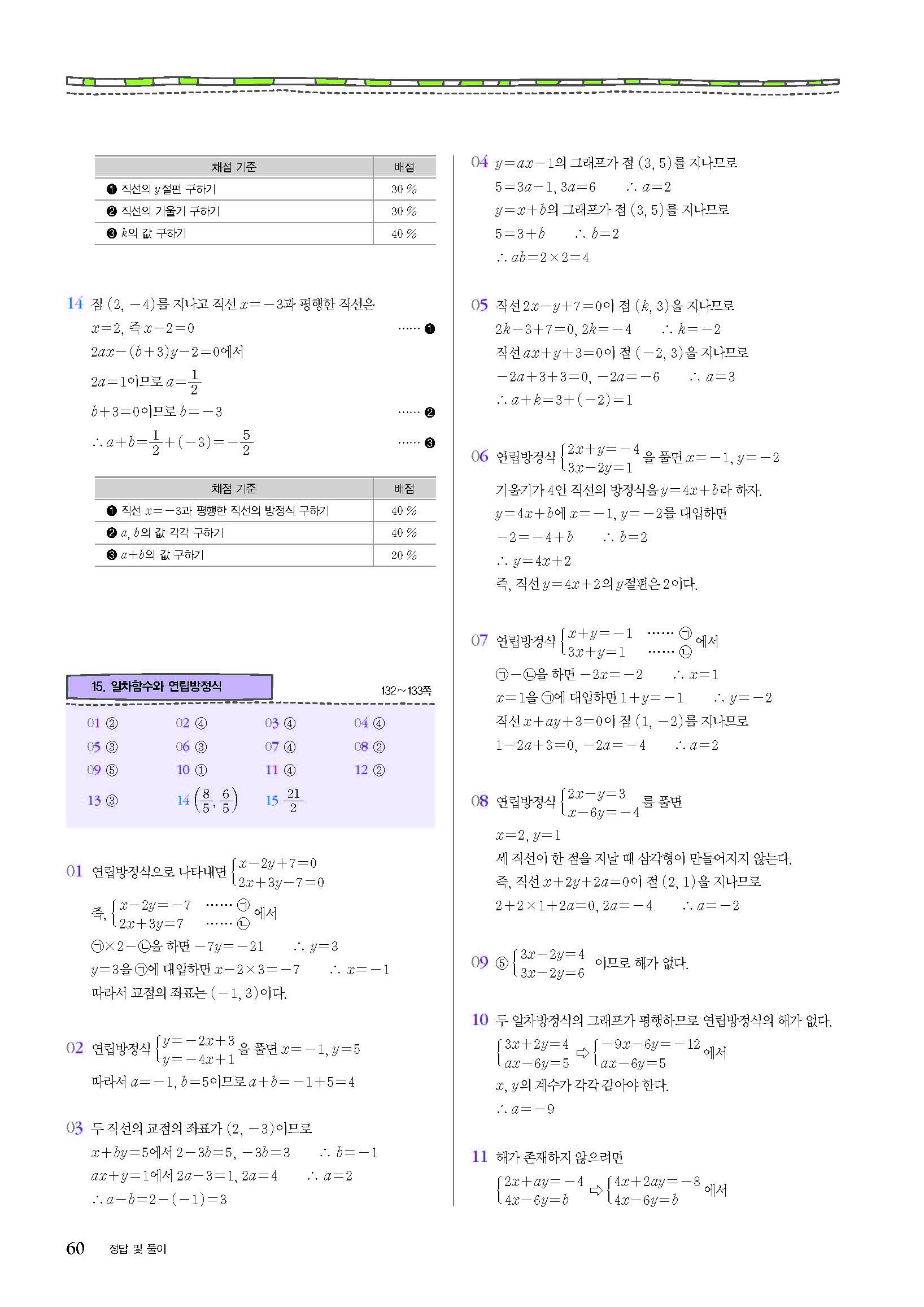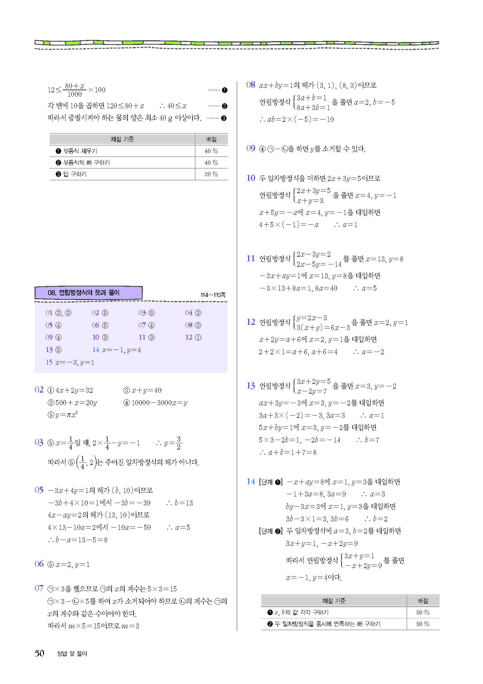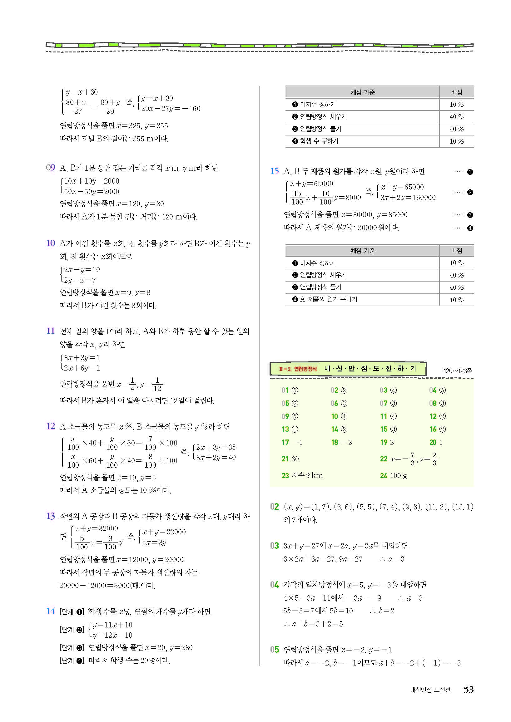 | 천재교육 이준열 중2 수학교과서 답지 | |