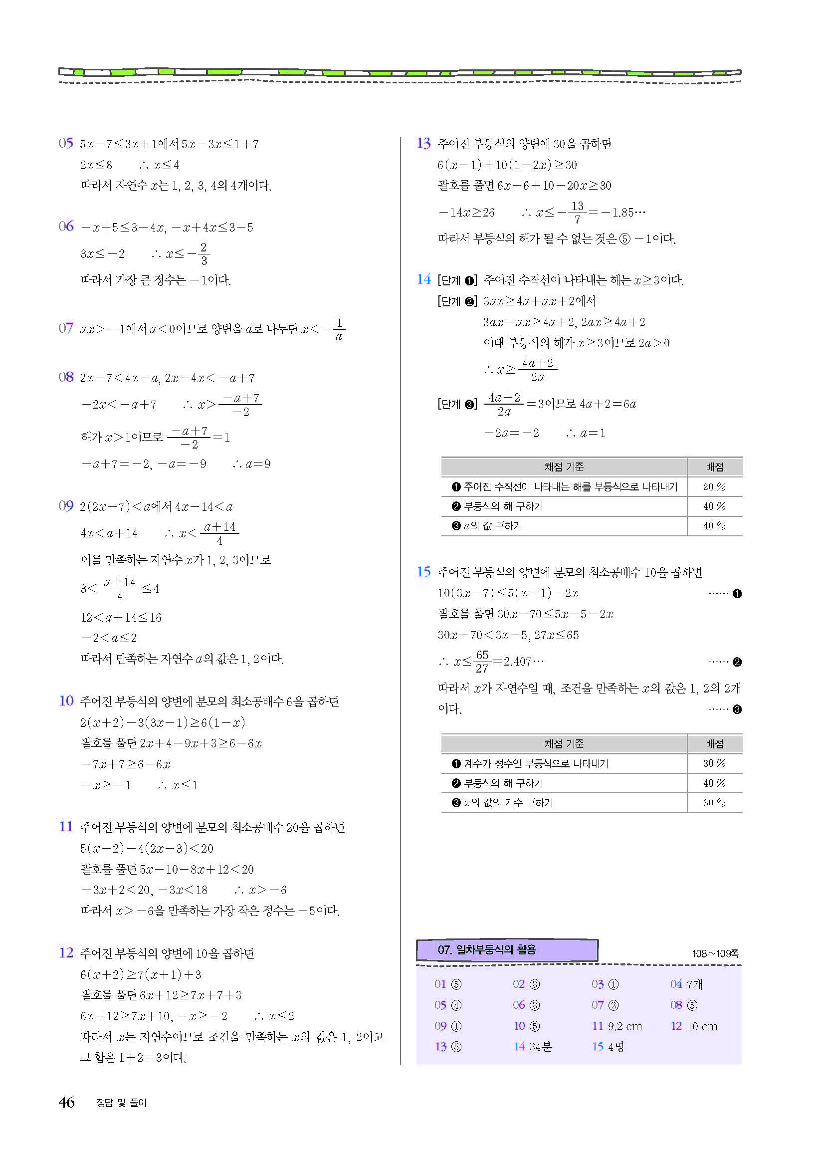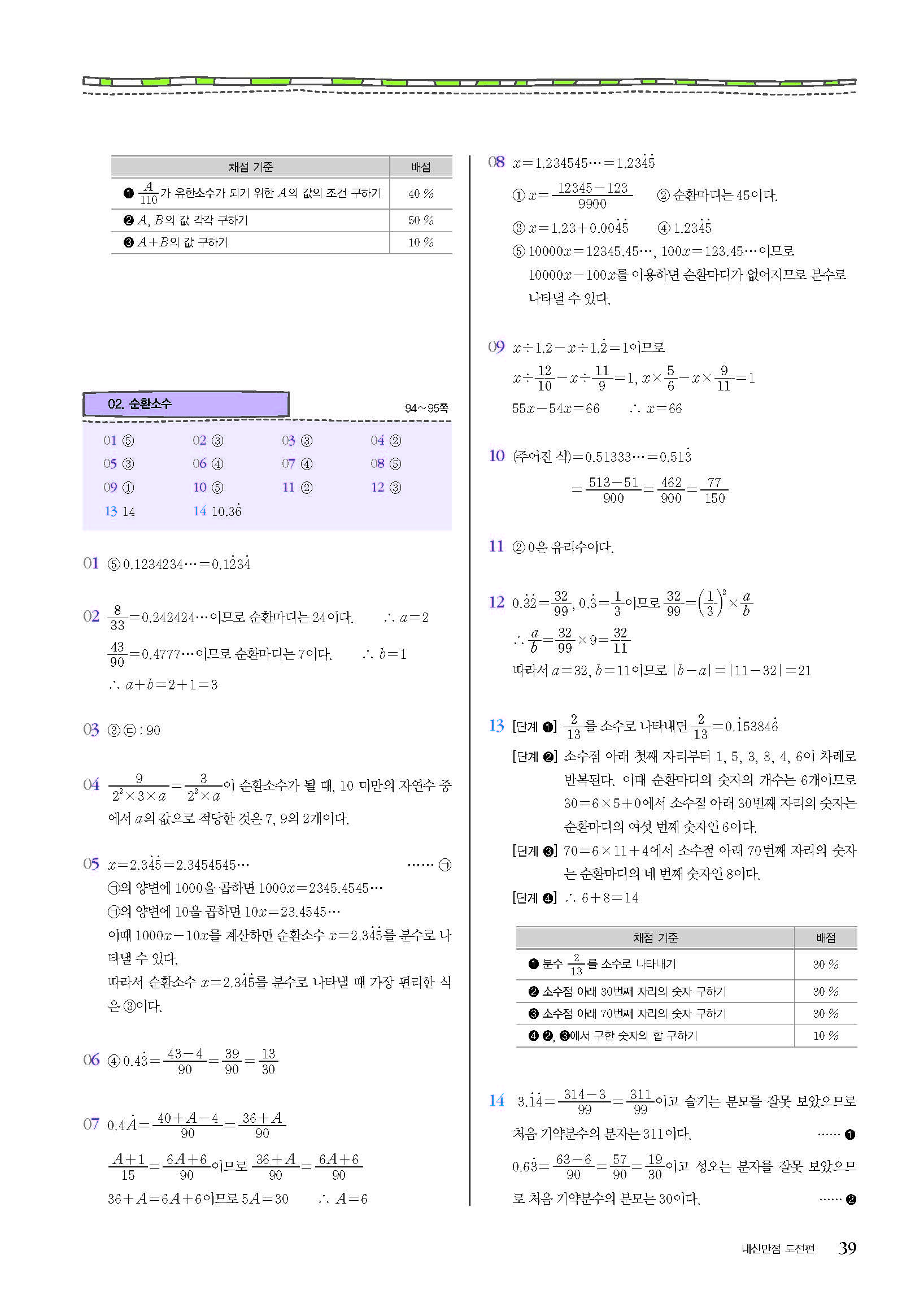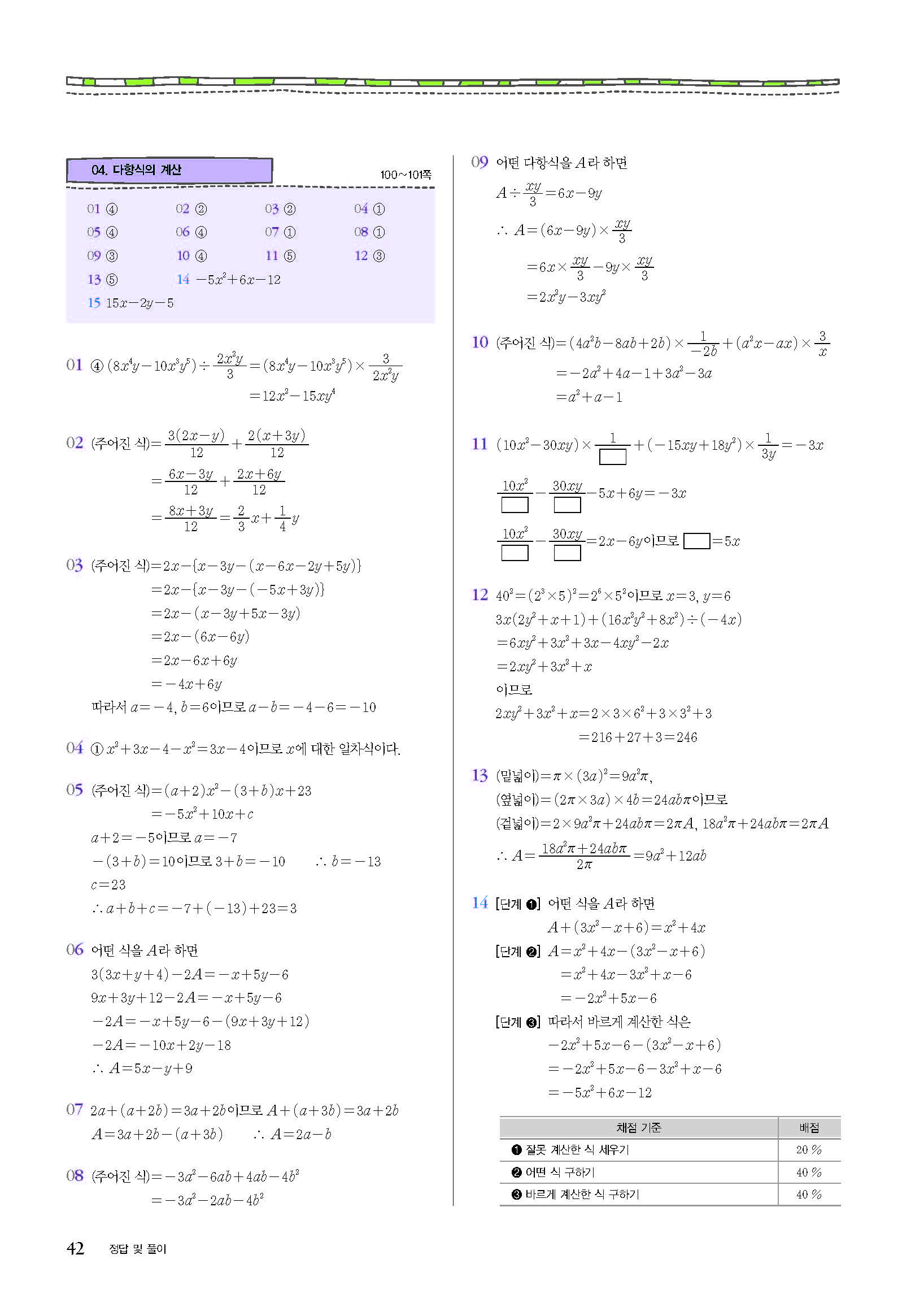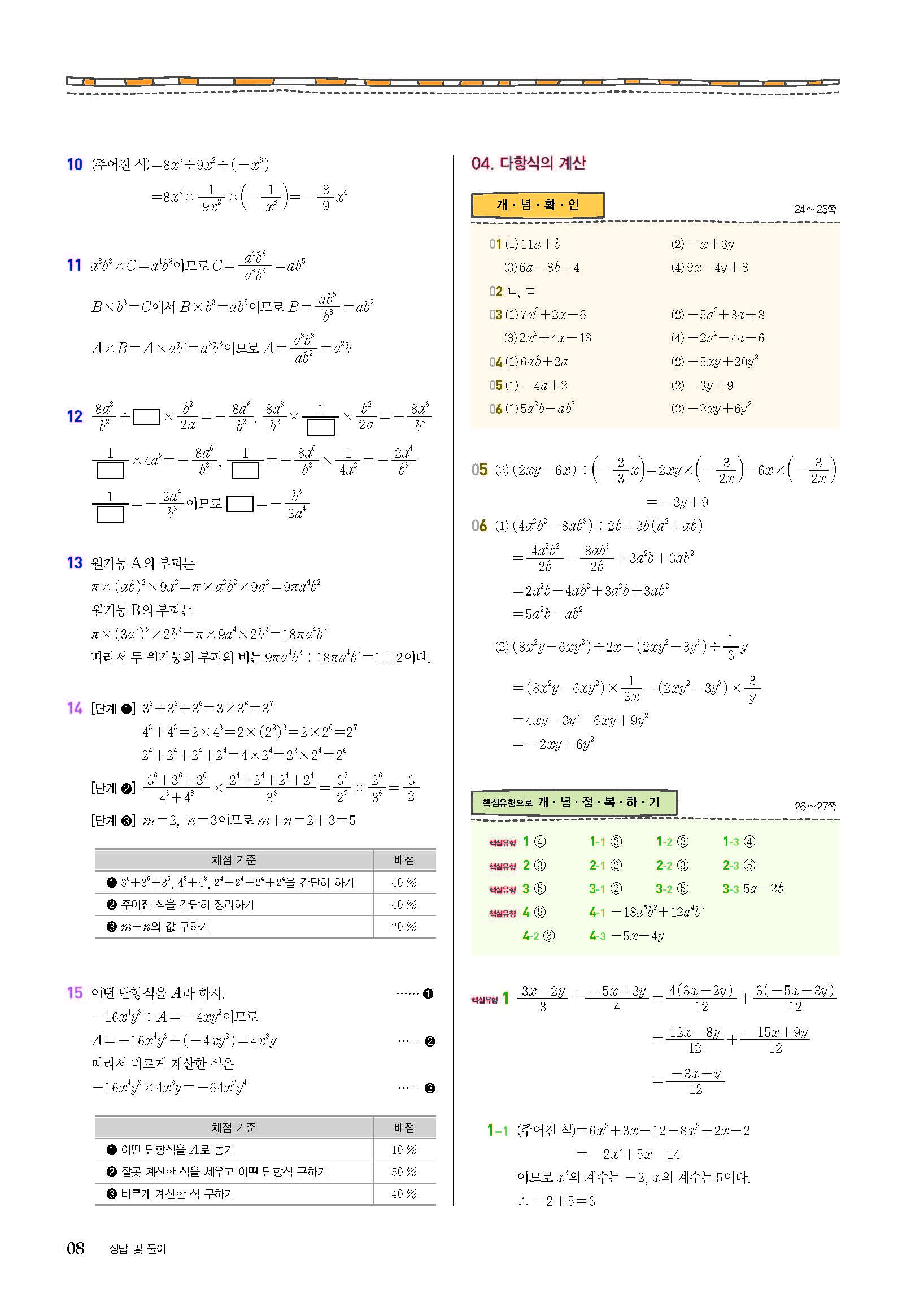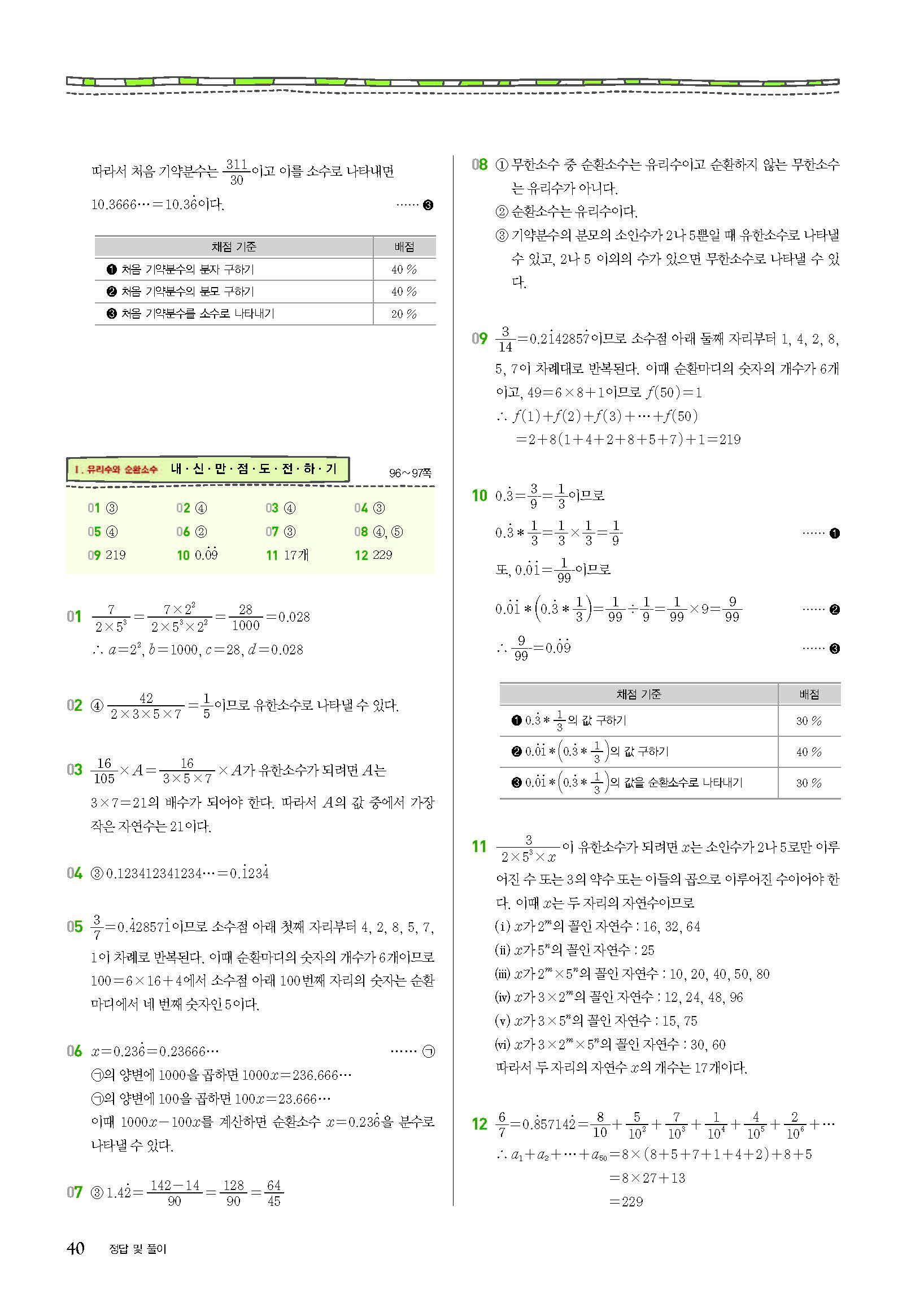| 천재교육 이준열 중2 수학교과서 답지 | |