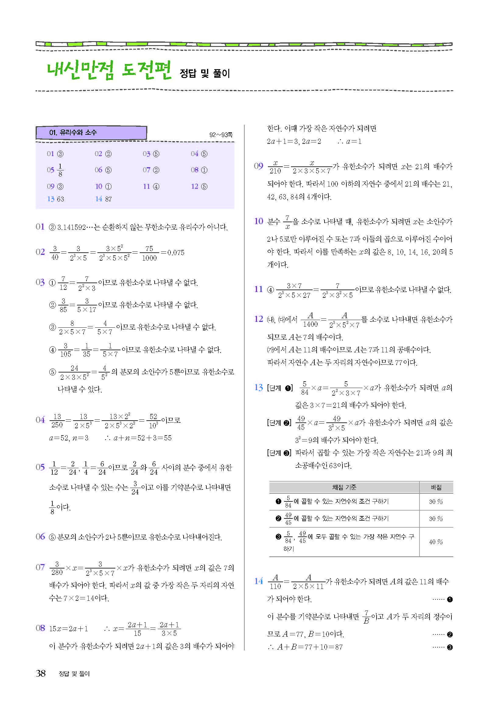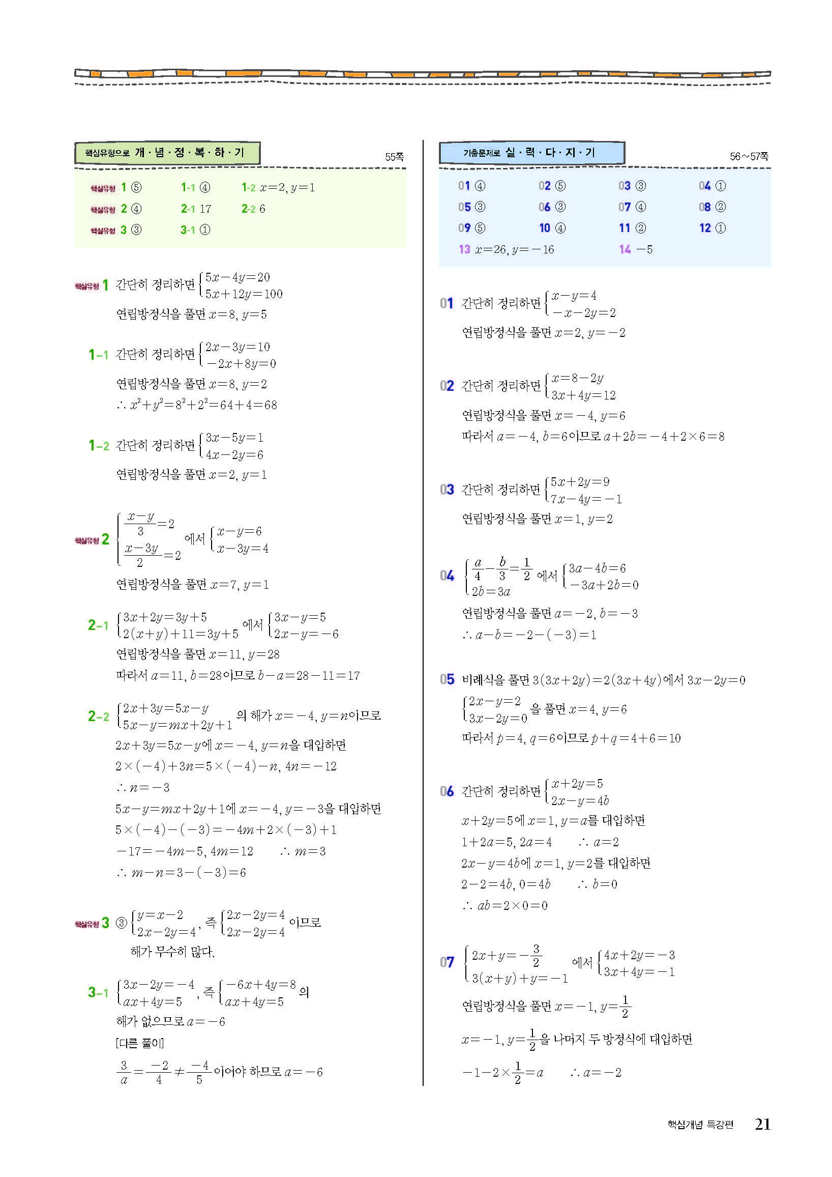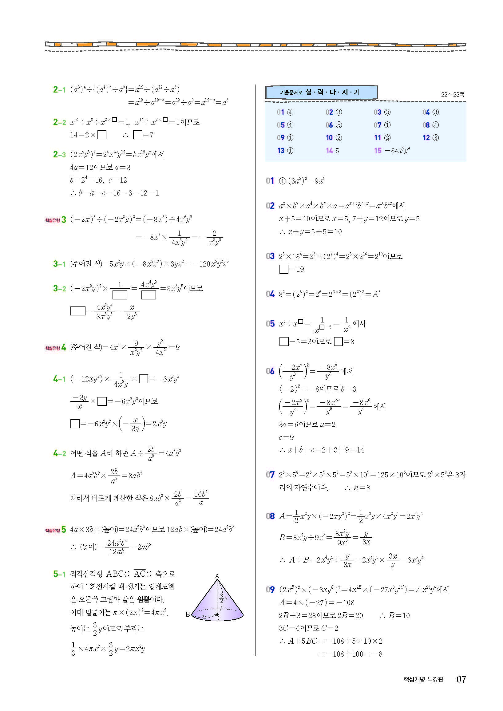 숨마쿰라우데 중학수학 실전문제집 중2상 2-1 사진답지 빠른답지 모바일최적화