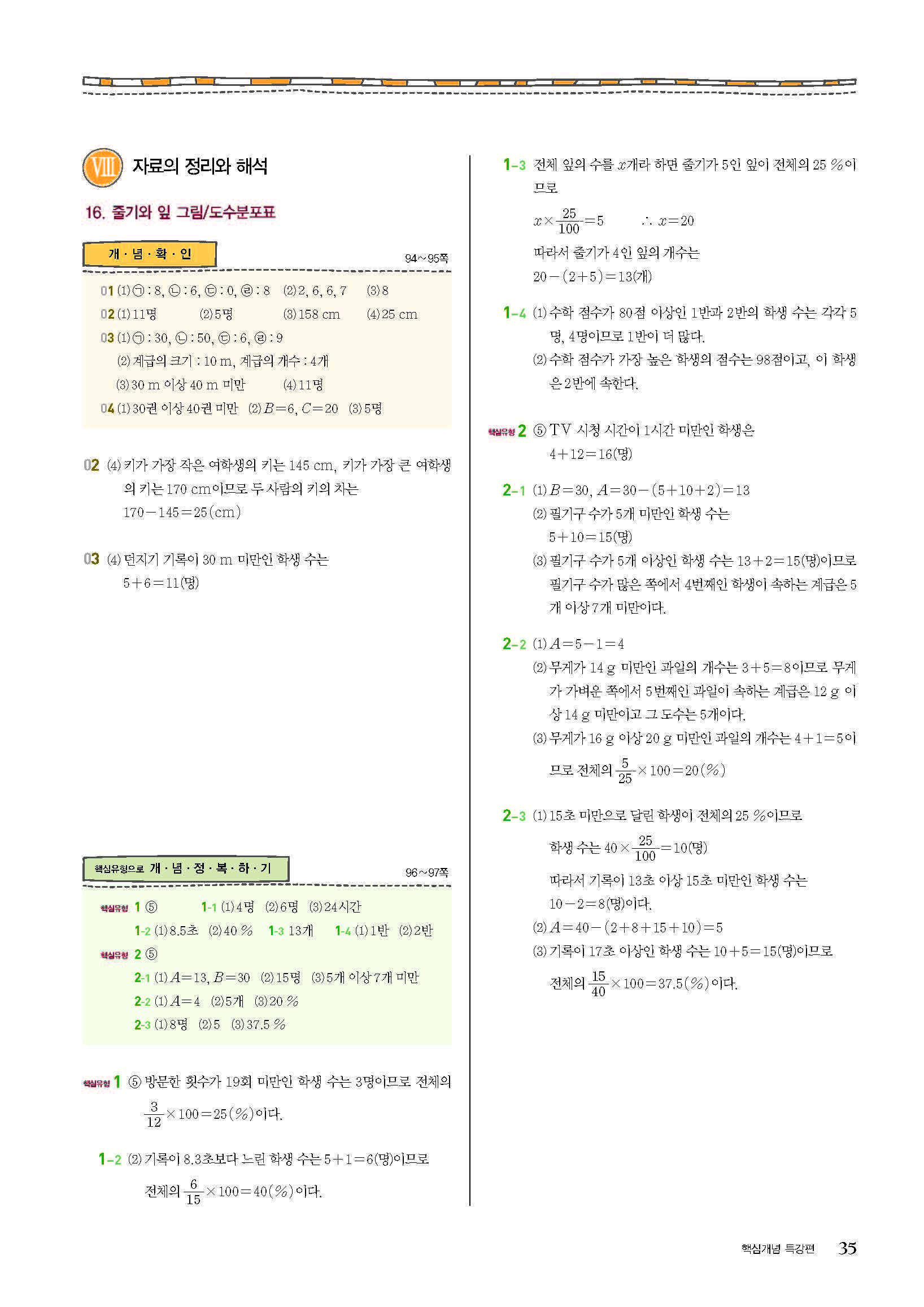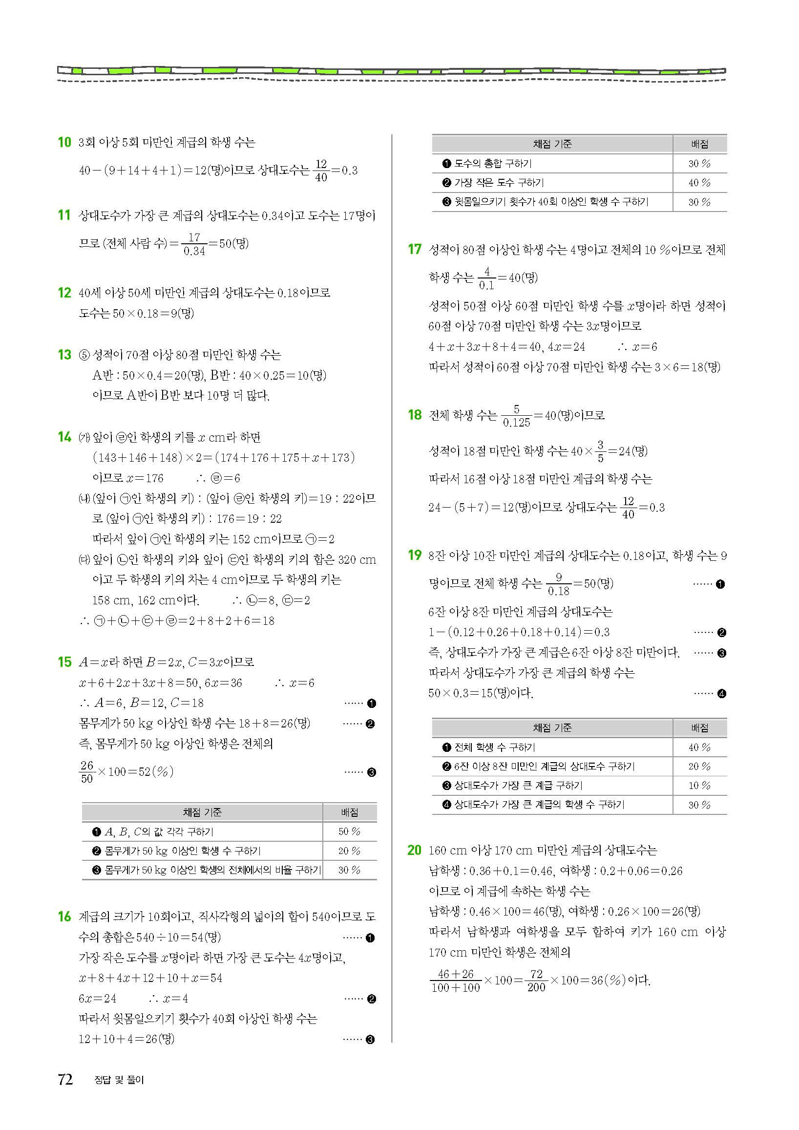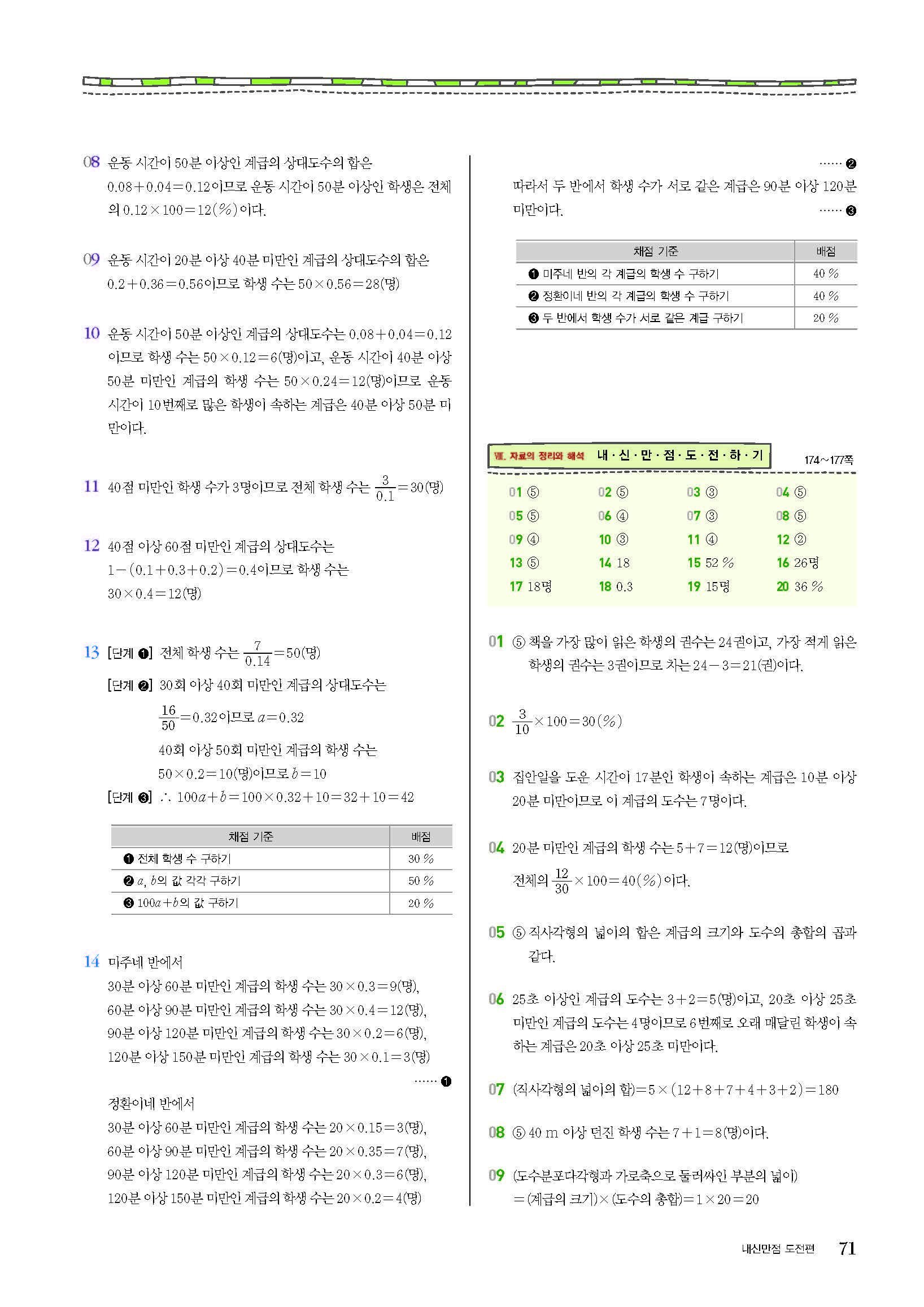 숨마쿰라우데 중학수학 실전문제집 중1하 1-2 사진답지 빠른답지 모바일최적화