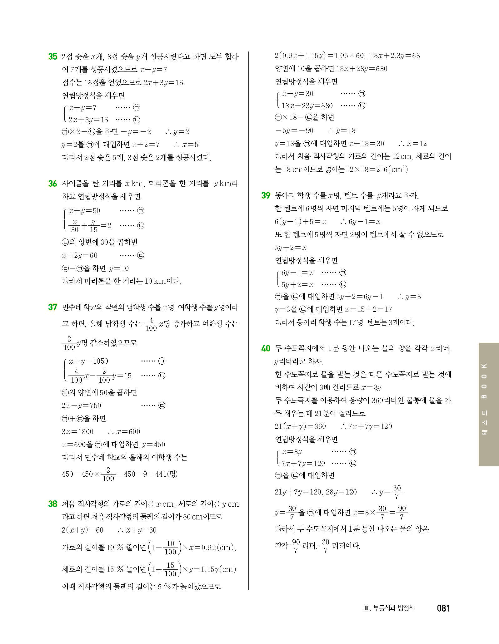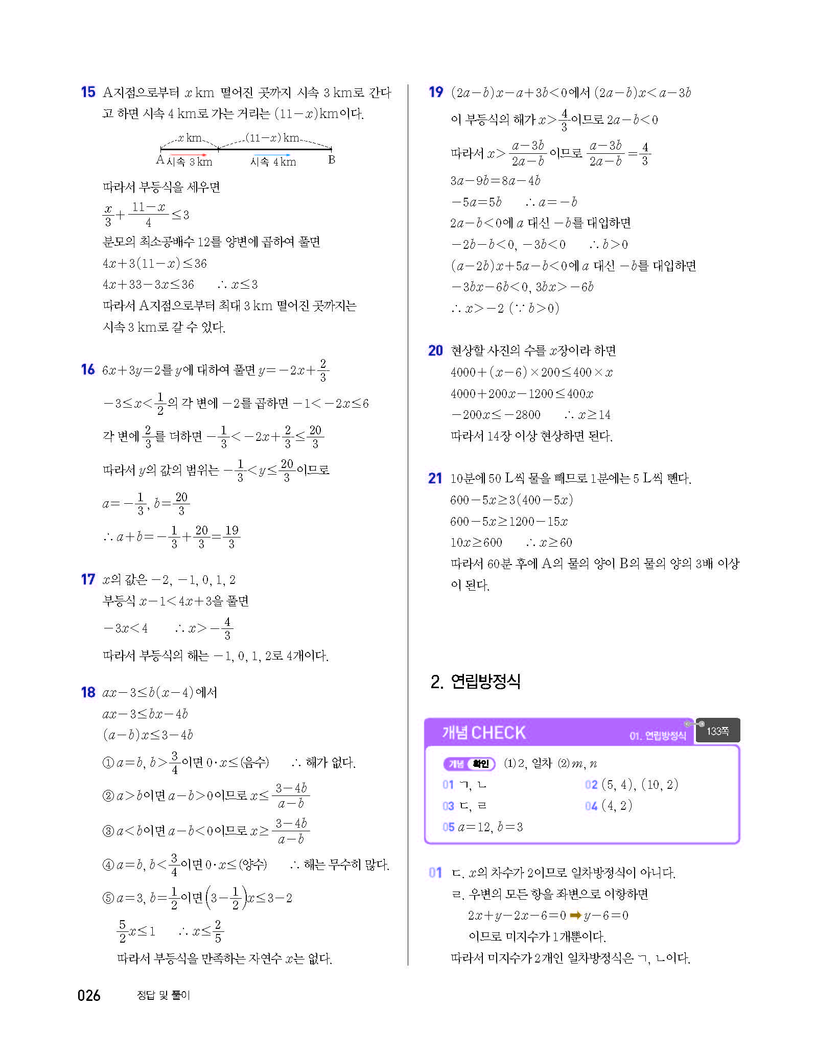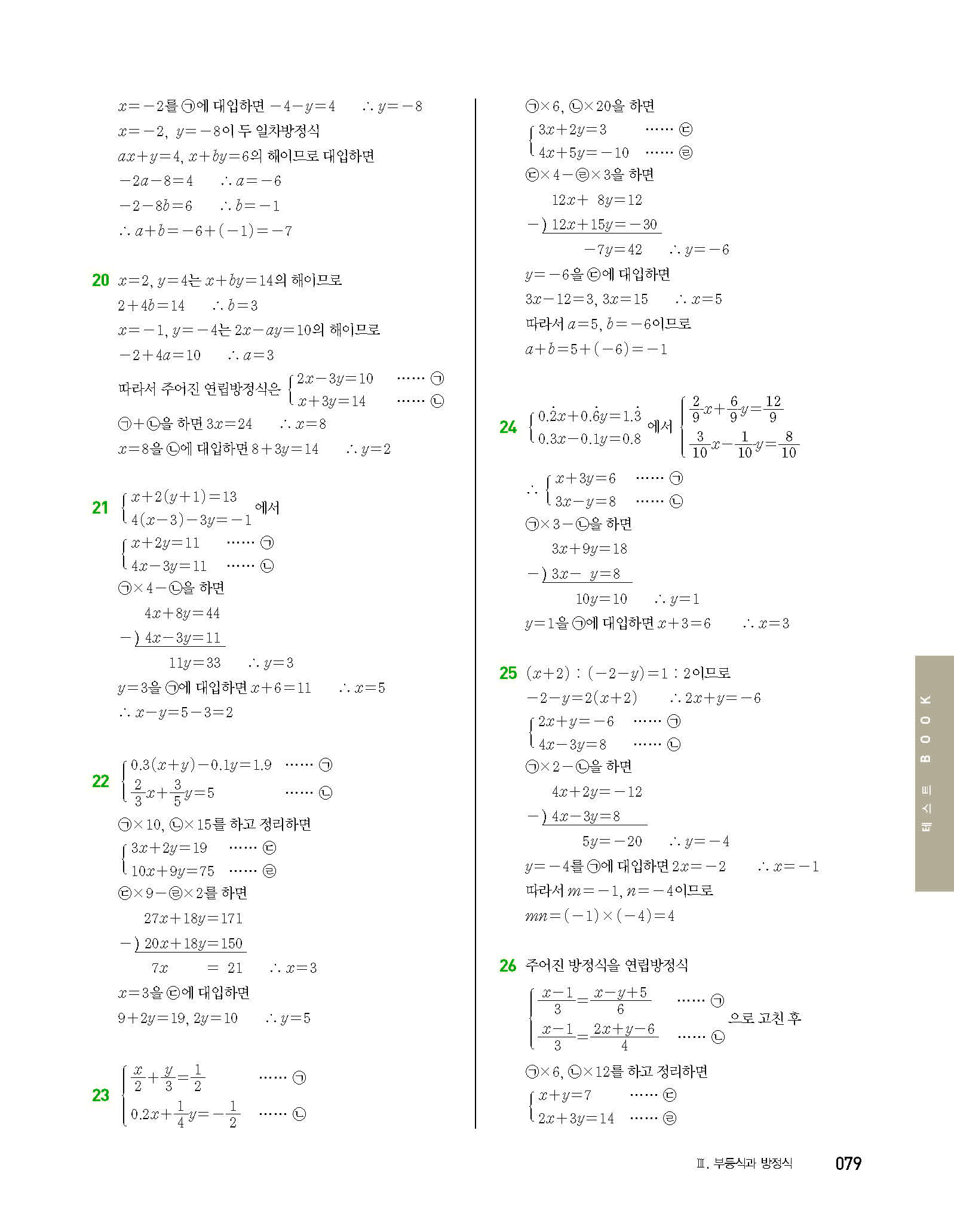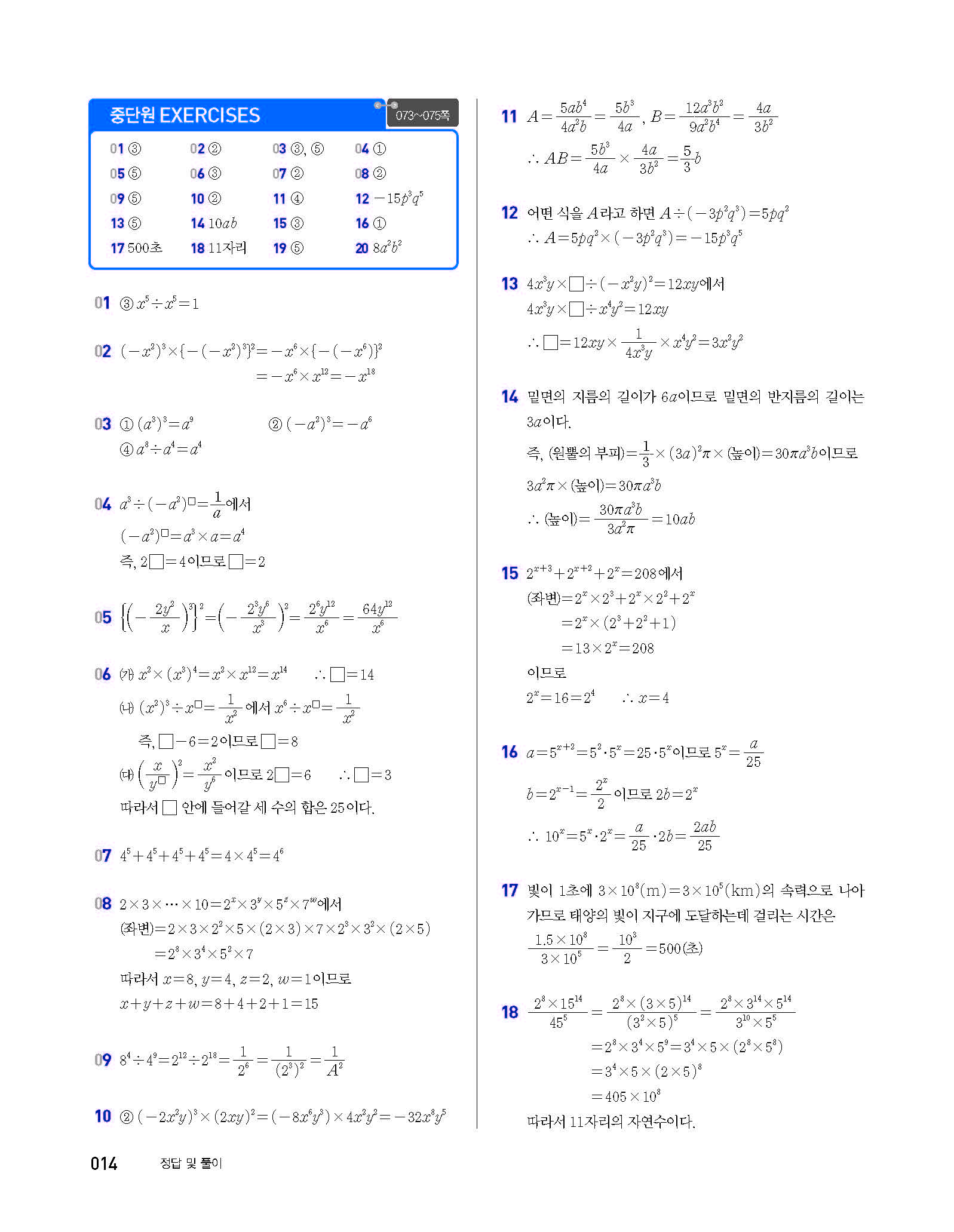 숨마쿰라우데 중학수학 개념기본서 중2상 2-1 사진답지 빠른답지 모바일최적화
