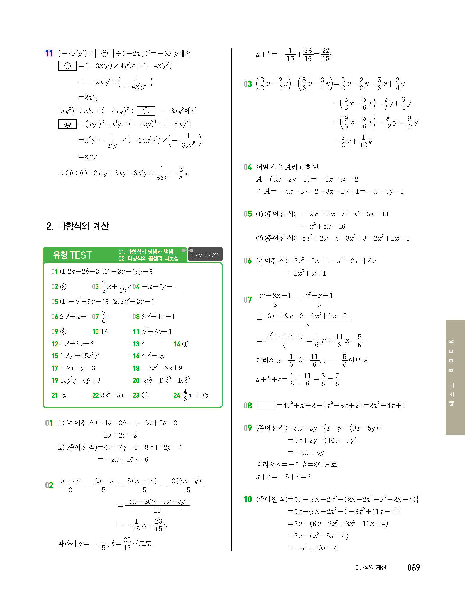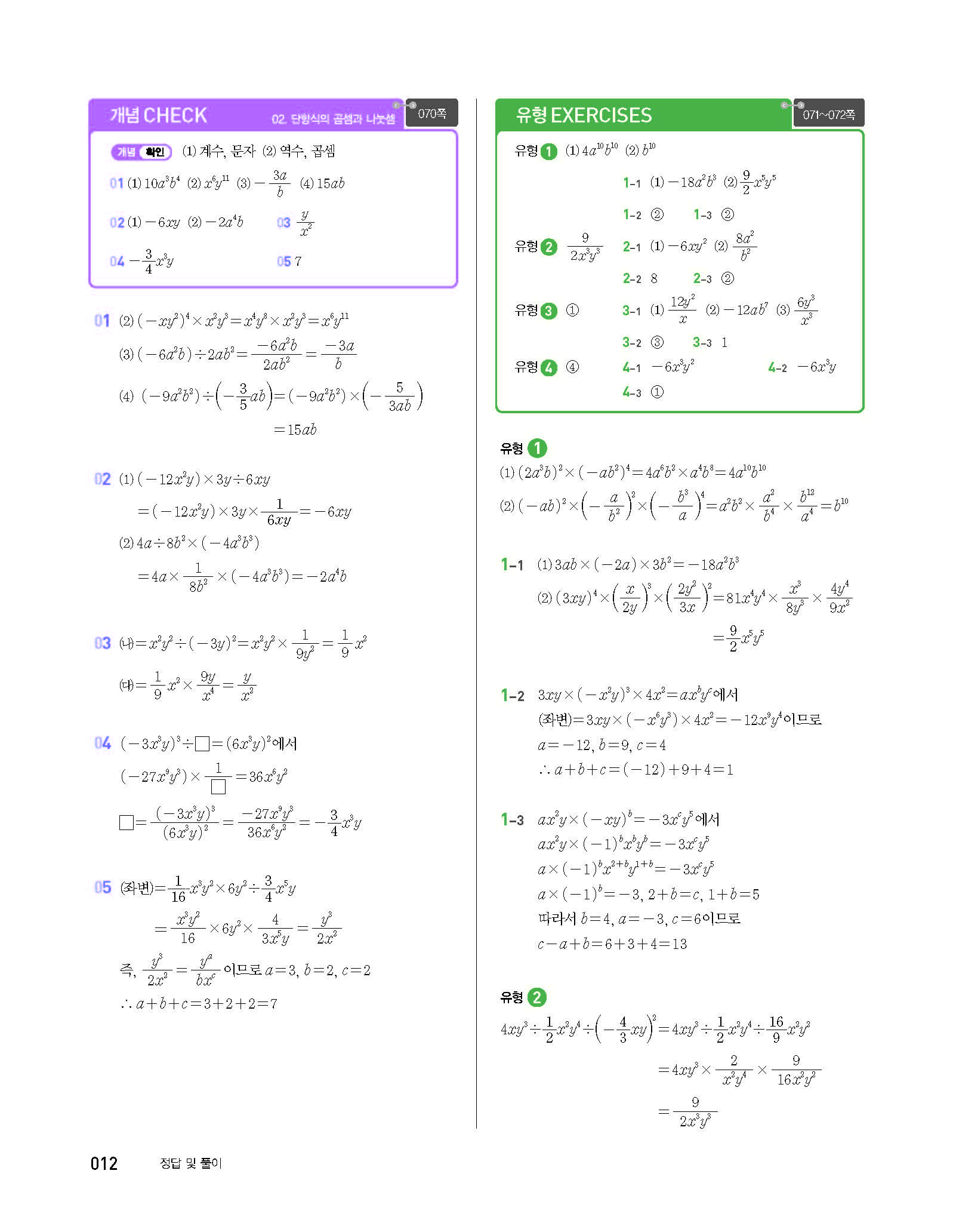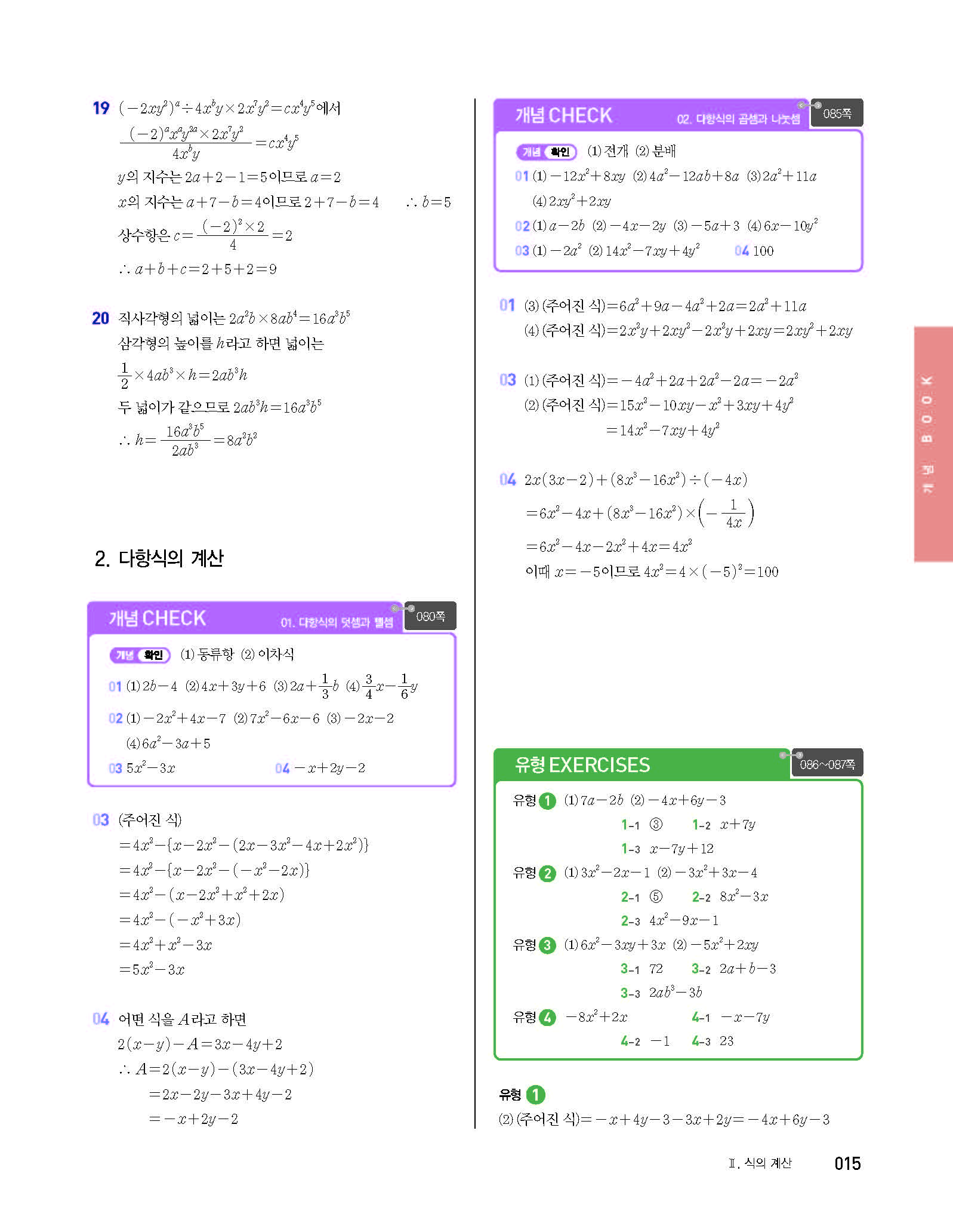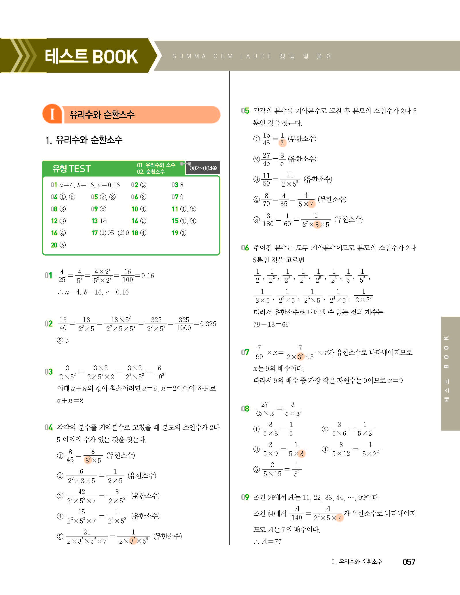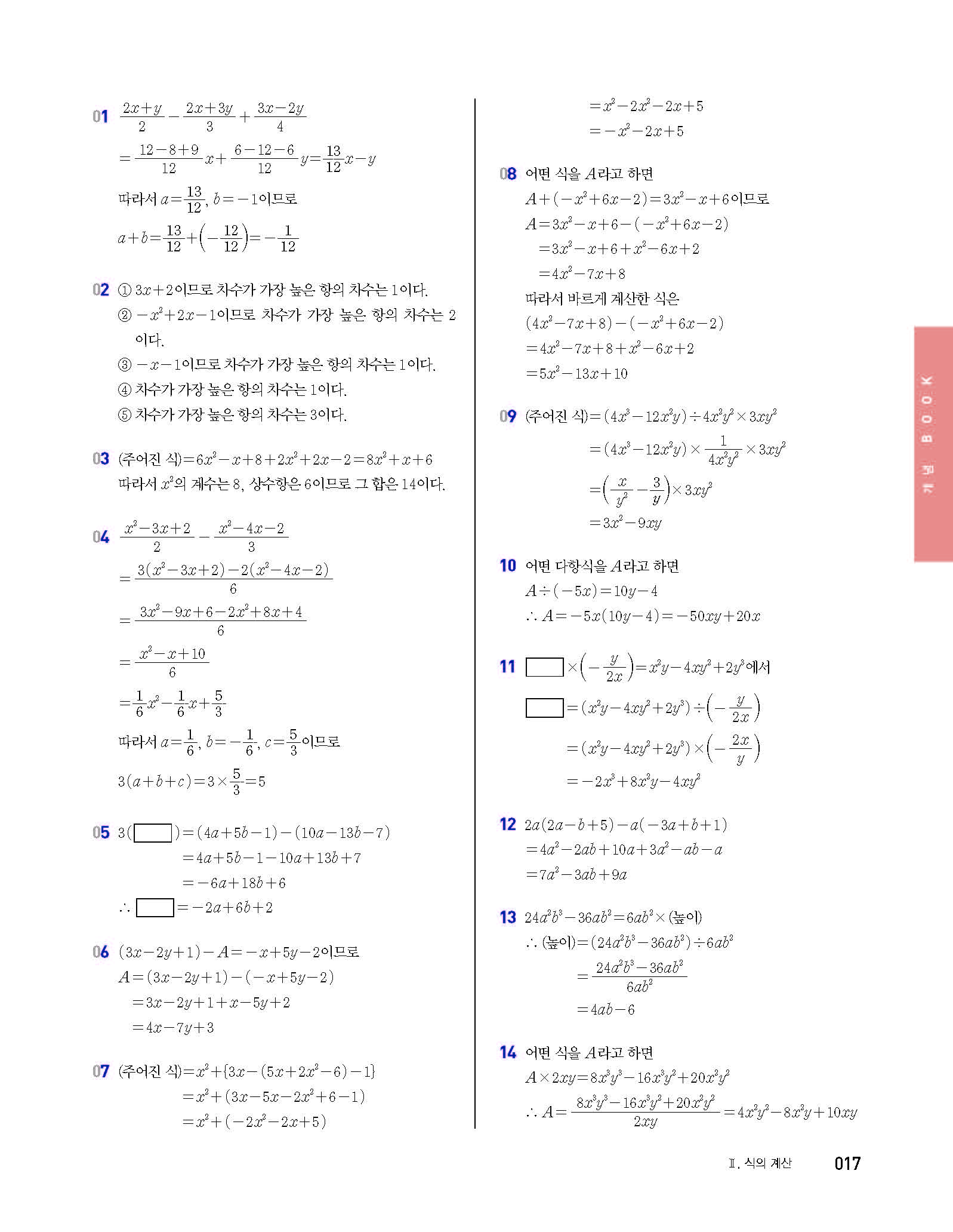 숨마쿰라우데 중학수학 개념기본서 중2상 2-1 사진답지 빠른답지 모바일최적화