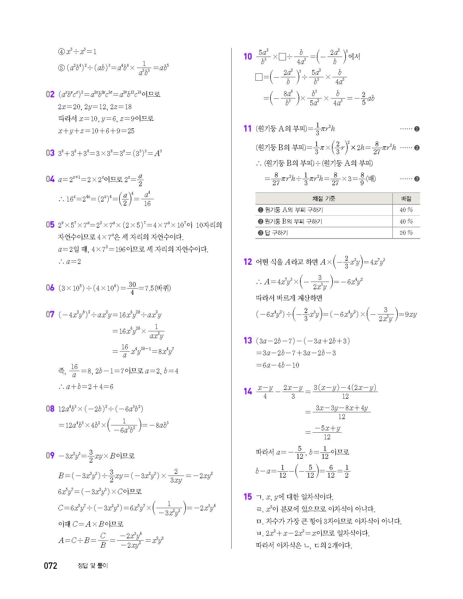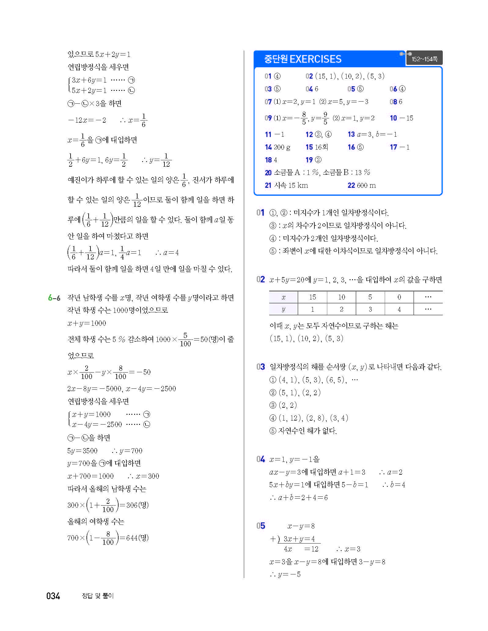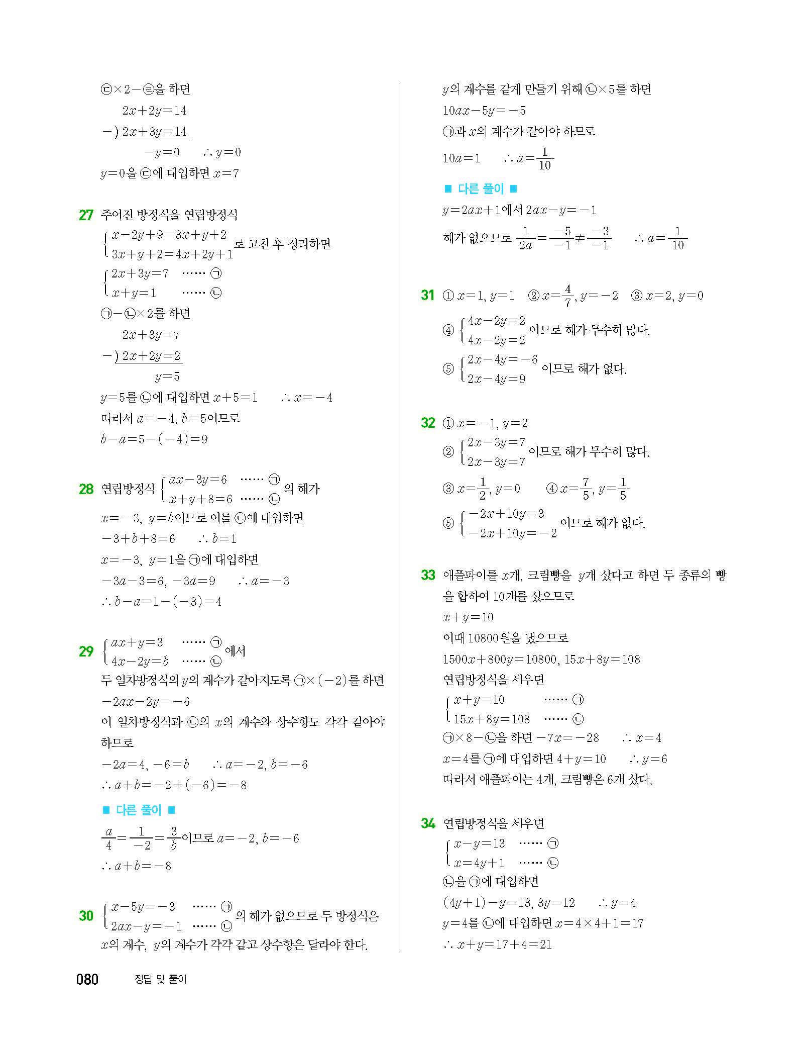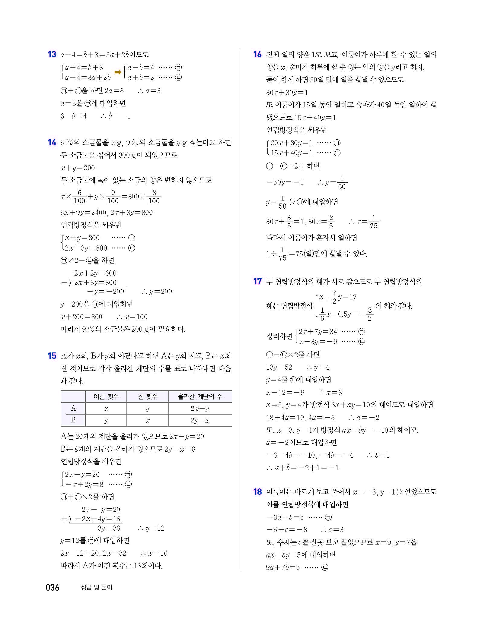 | 천재교육 이준열 중2 수학교과서 답지 | |