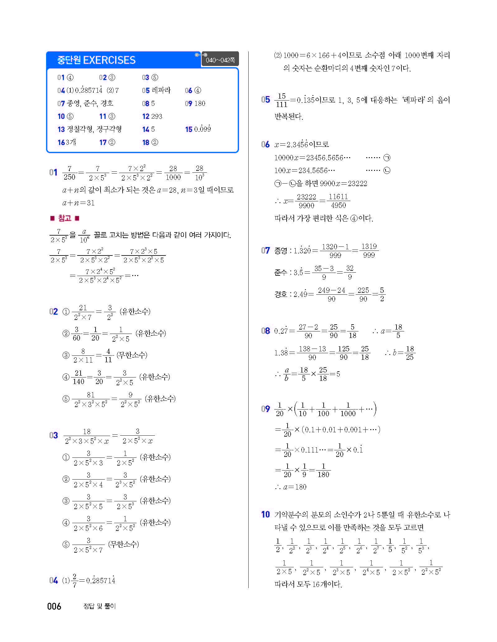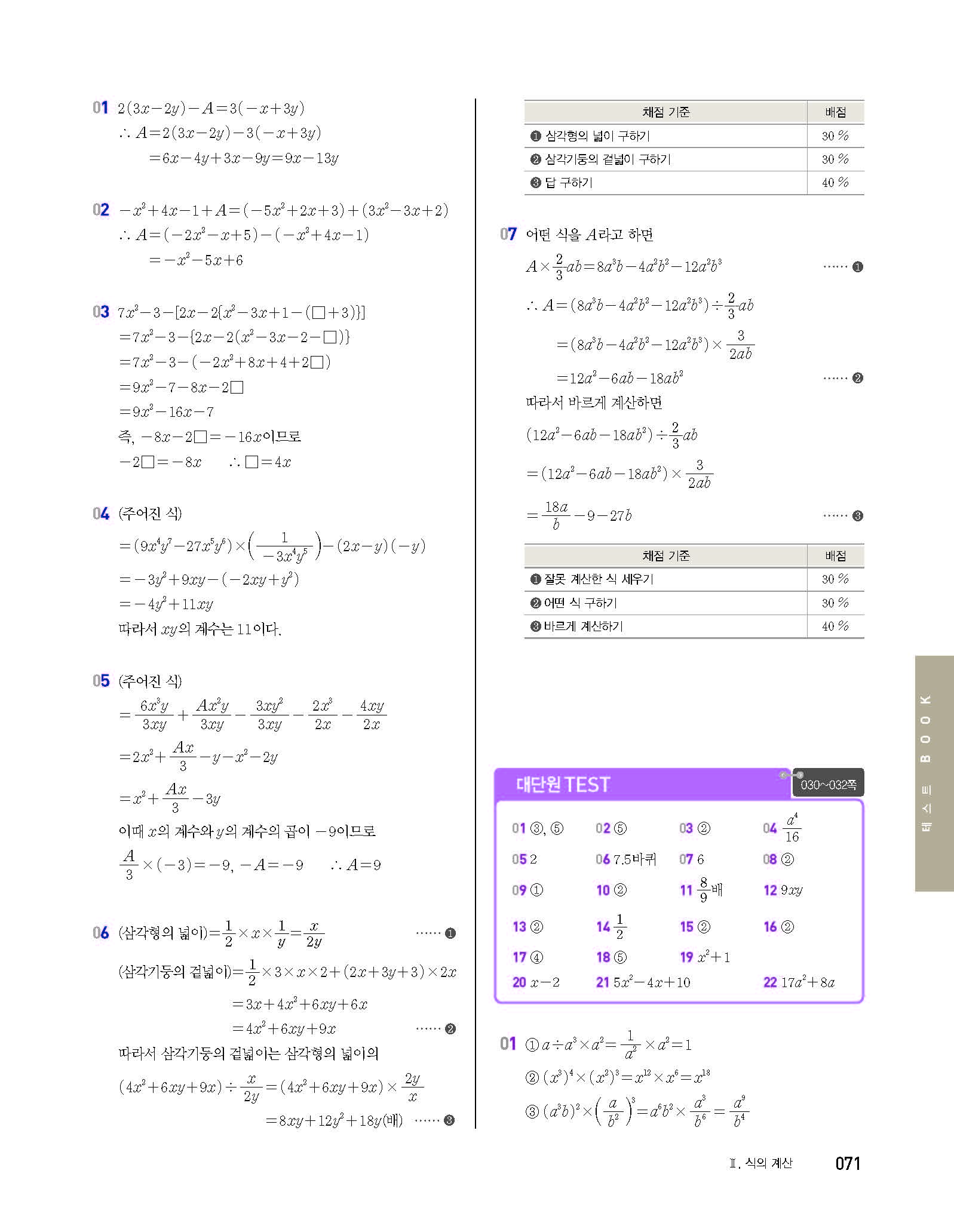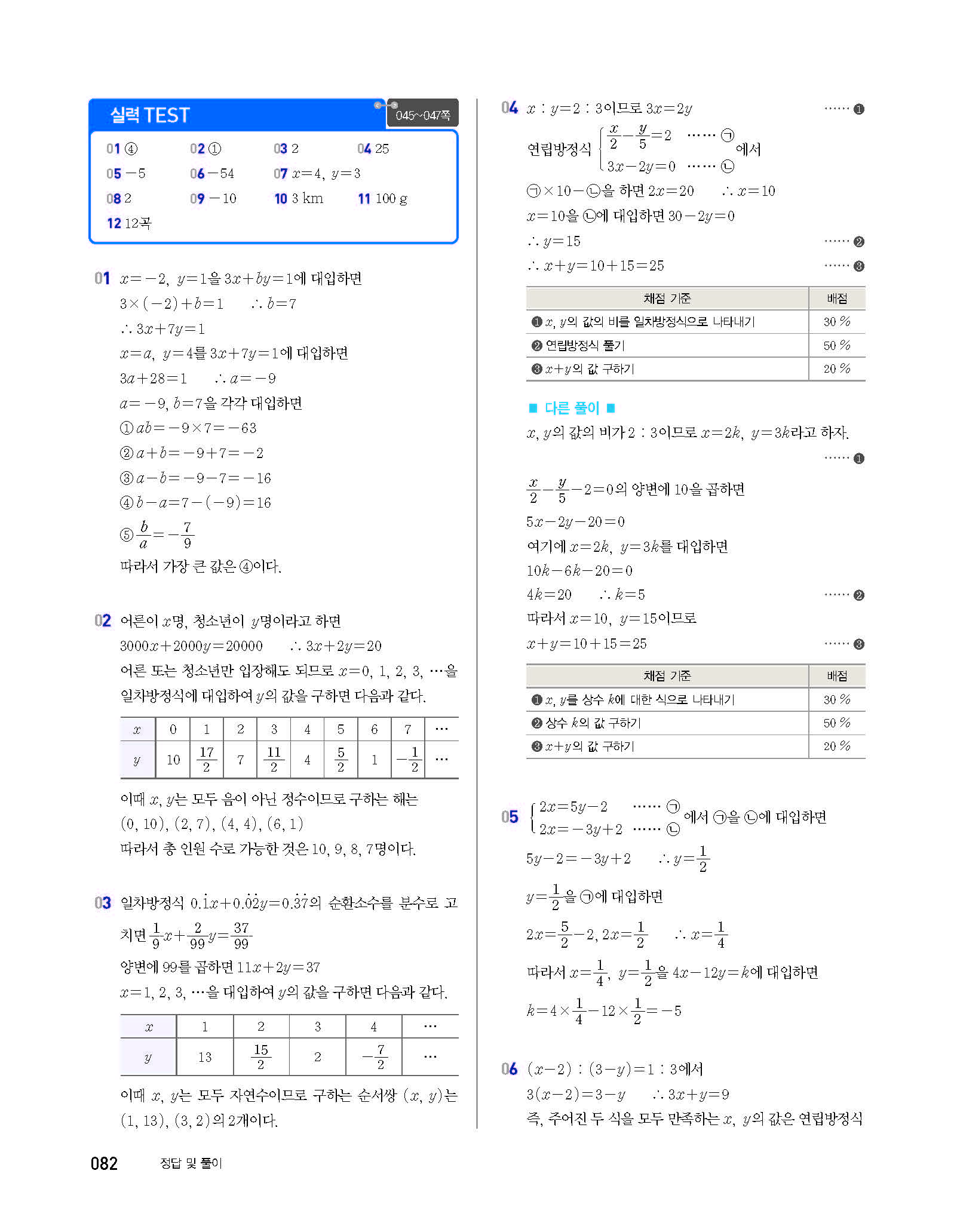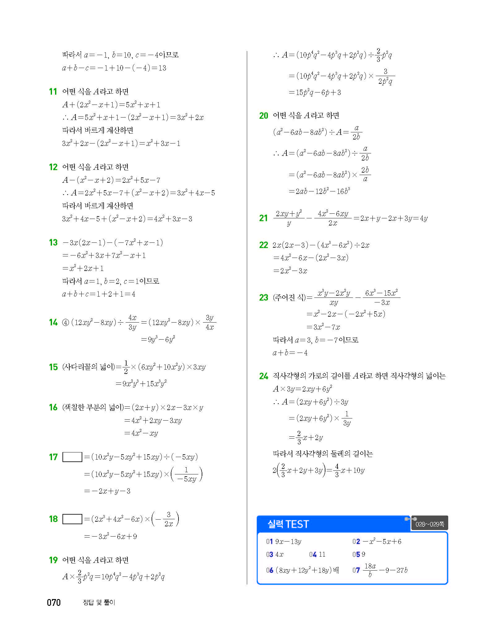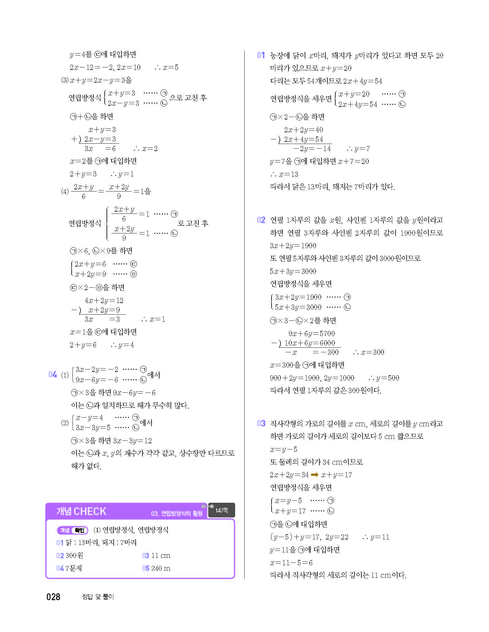 | 천재교육 이준열 중2 수학교과서 답지 | |