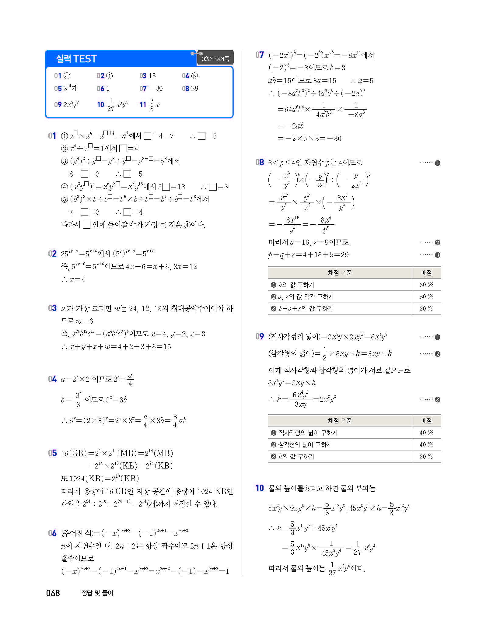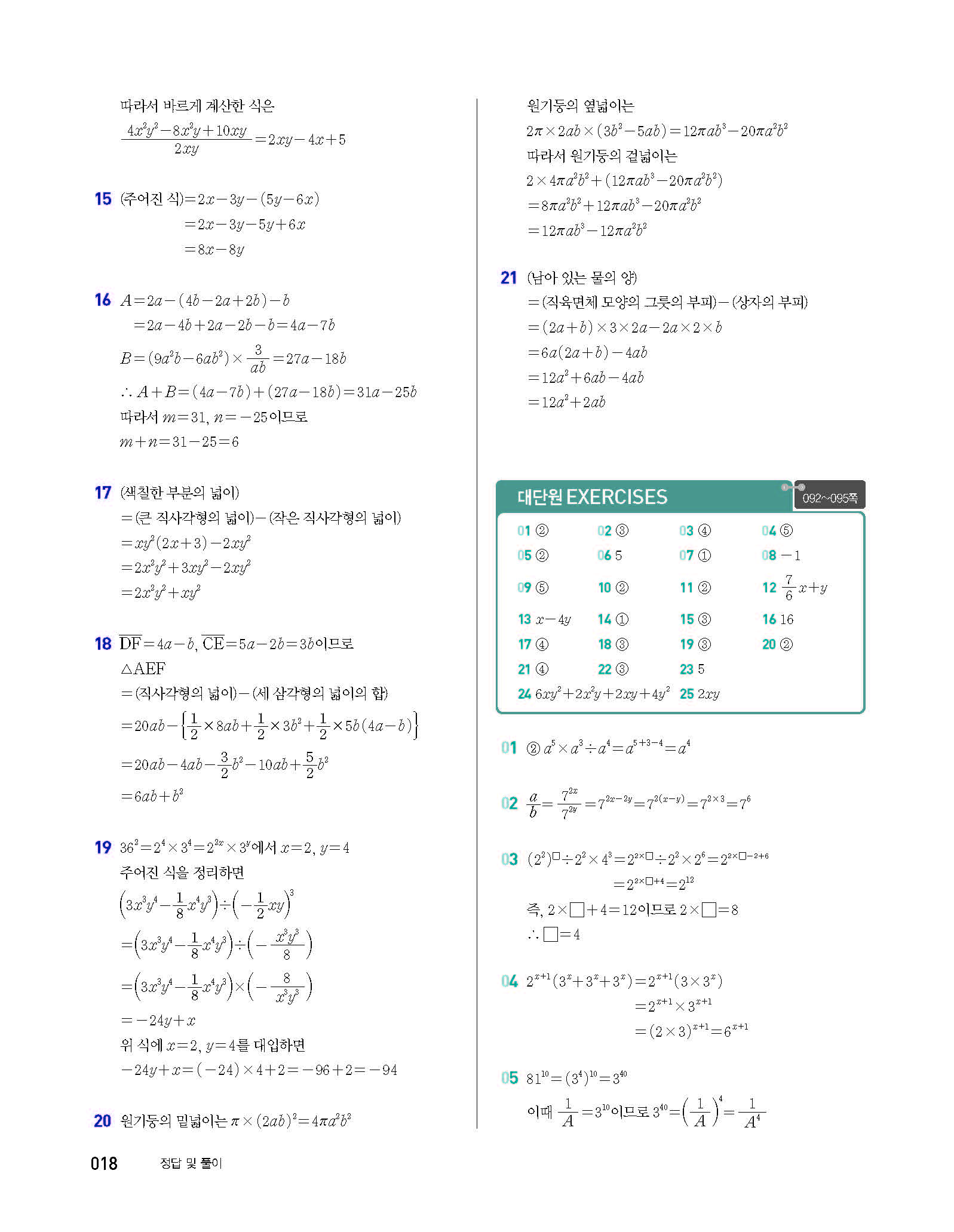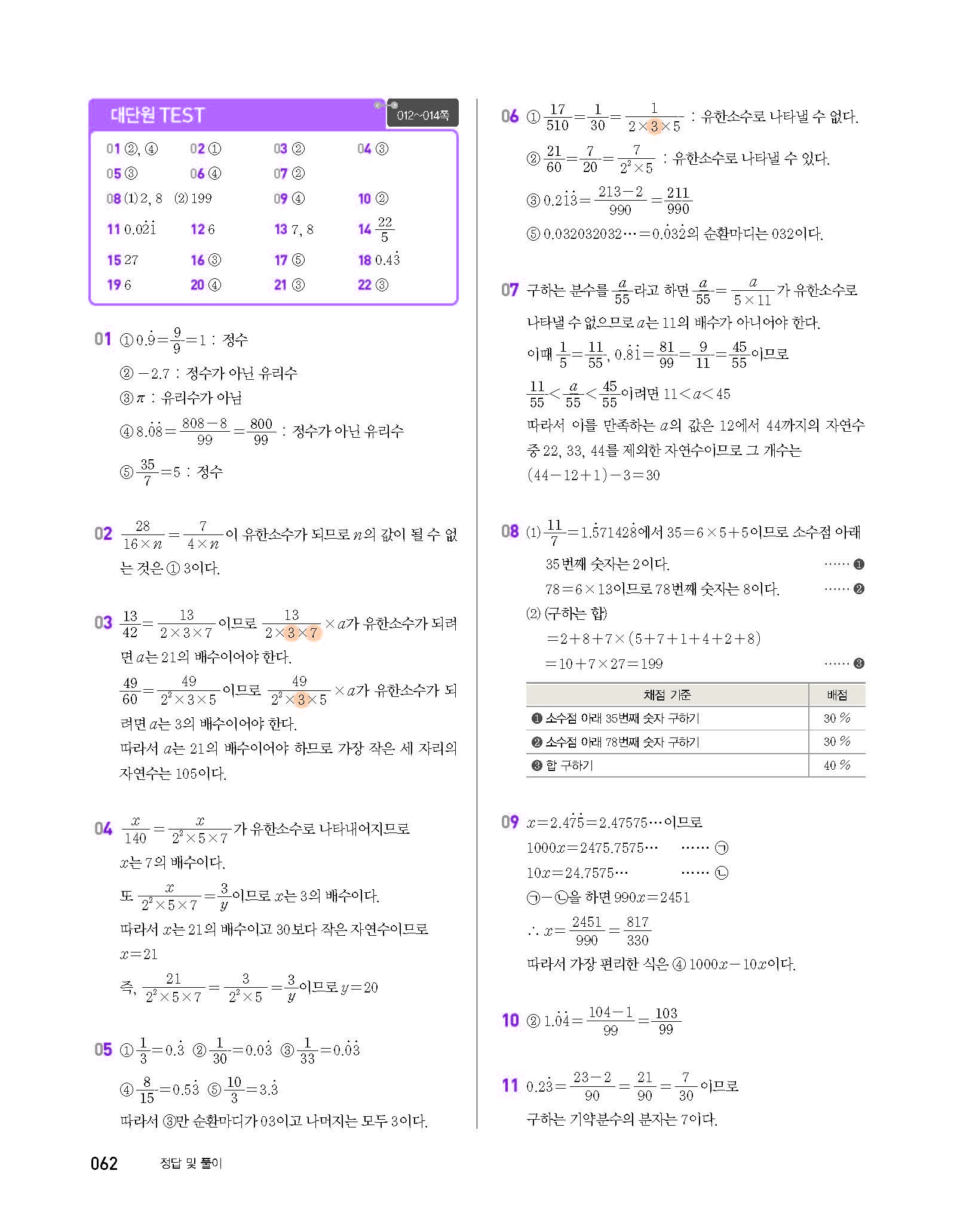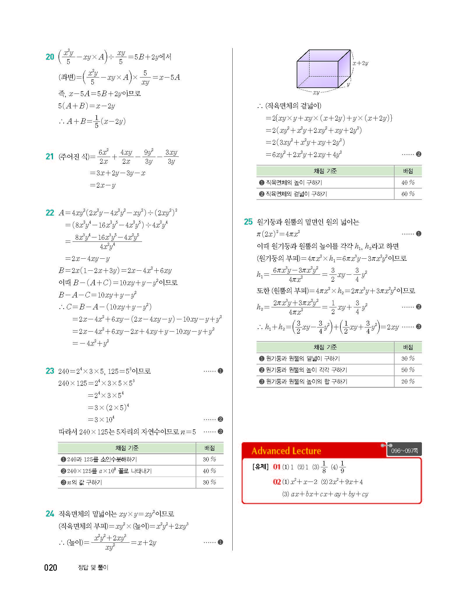 | 천재교육 이준열 중2 수학교과서 답지 | |