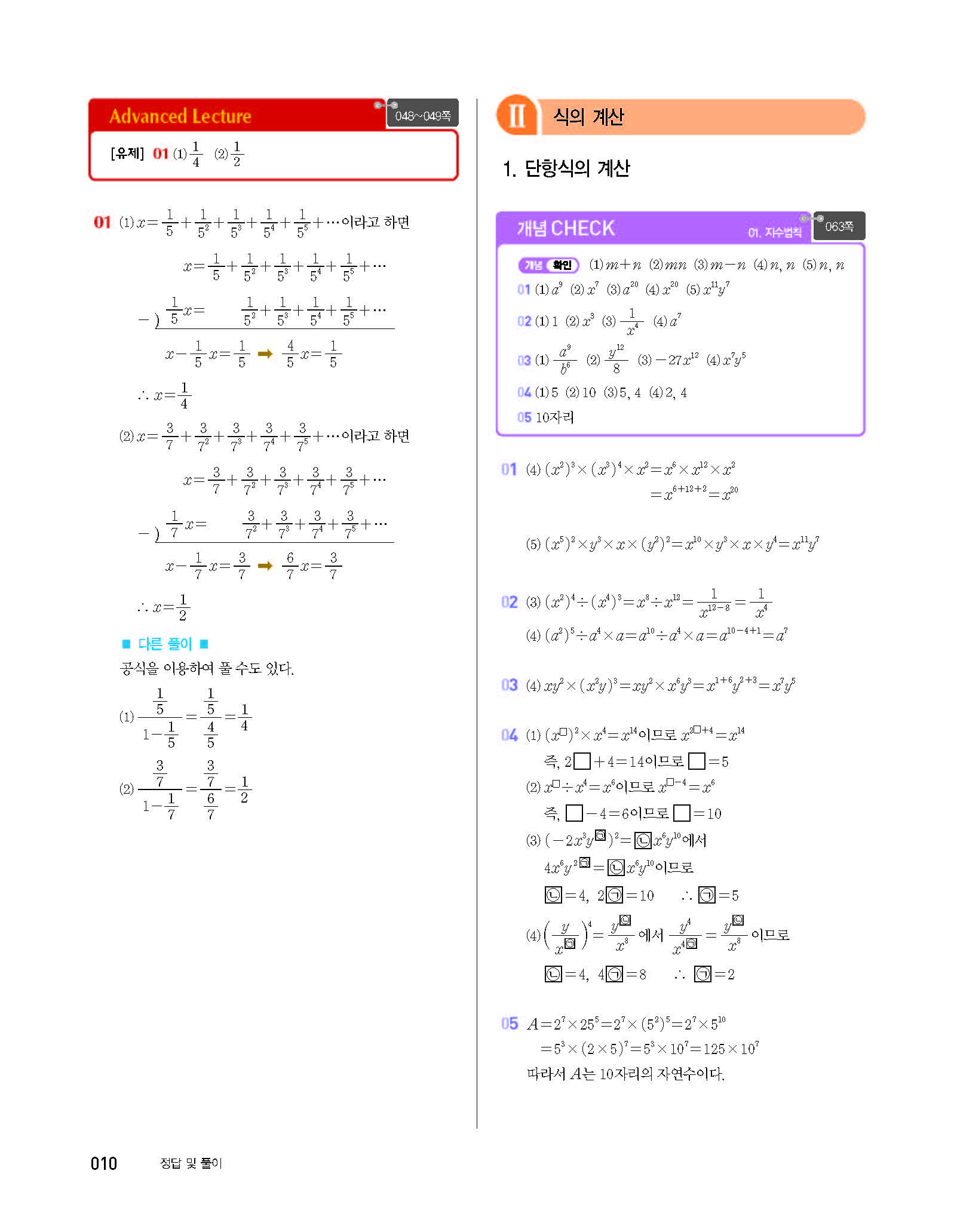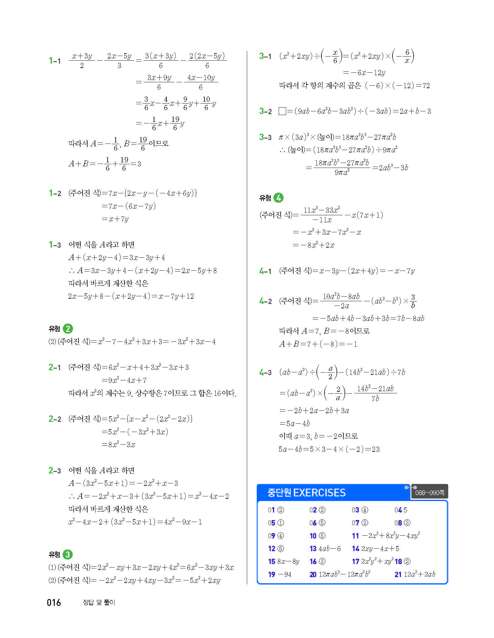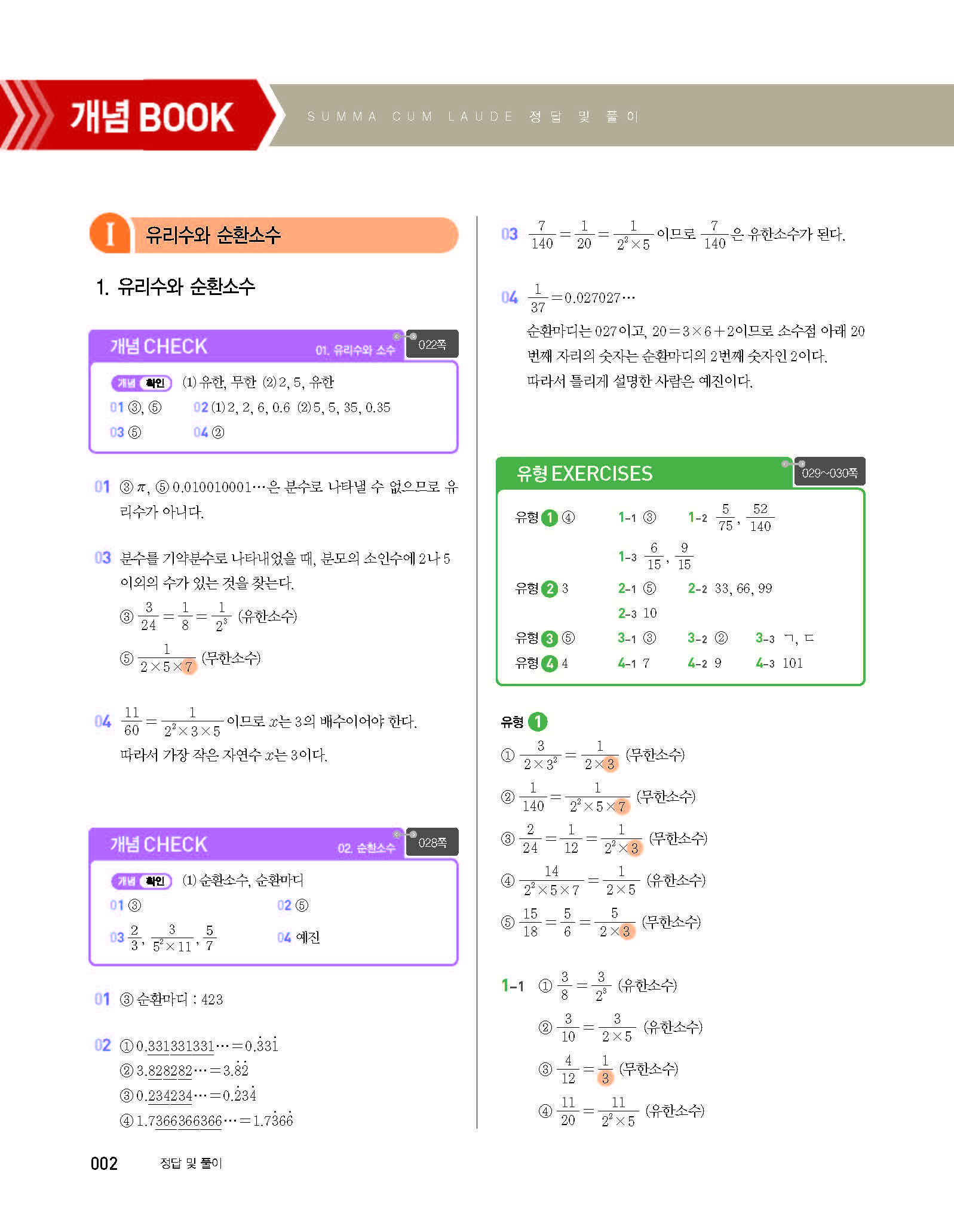 | 개념쎈 중2-1 답지 | https://mathuncle.tistory.com/191 |
