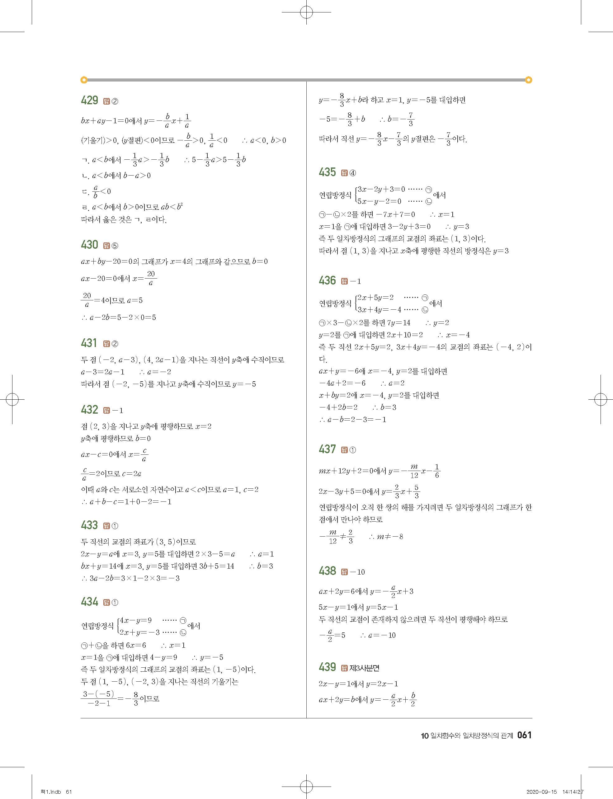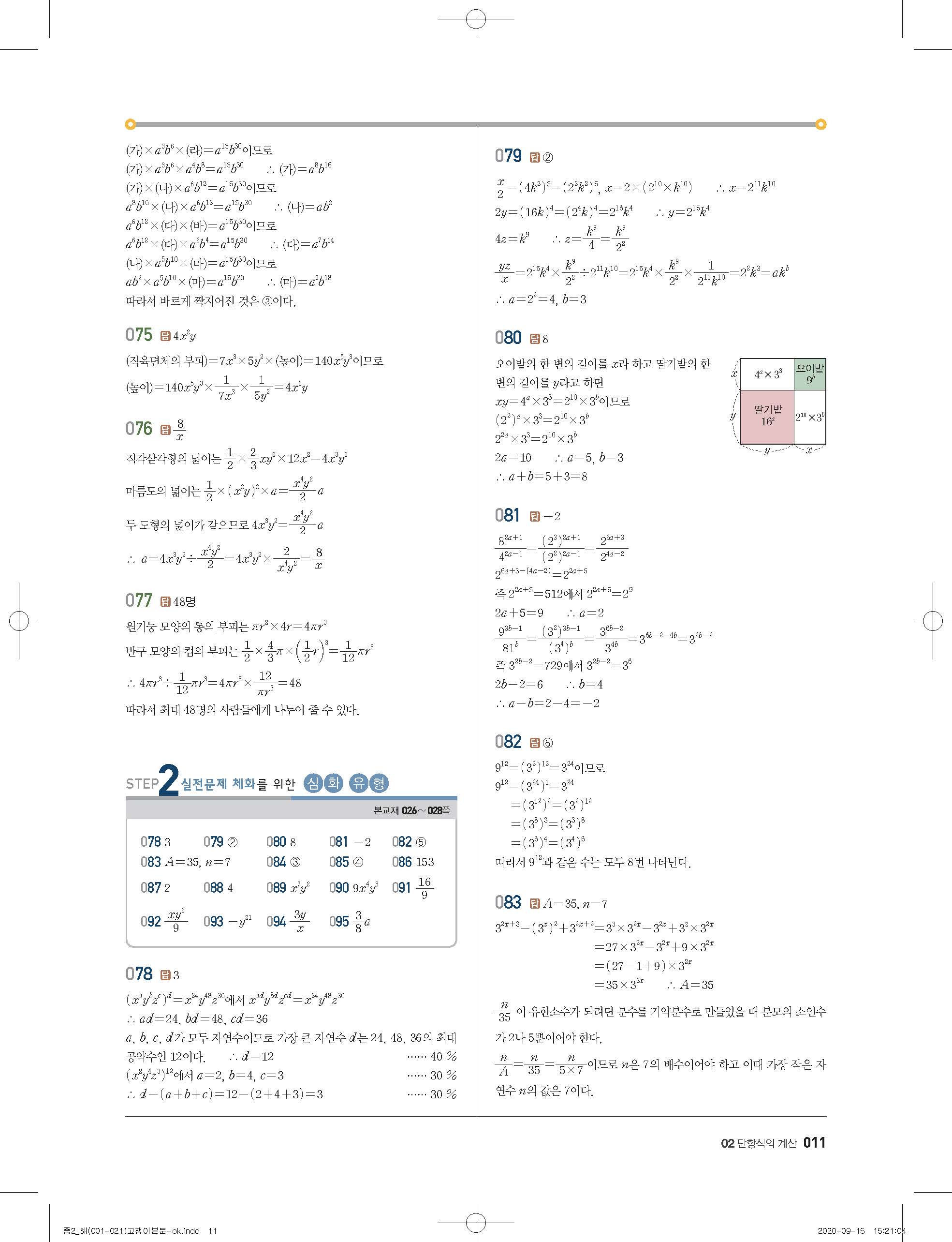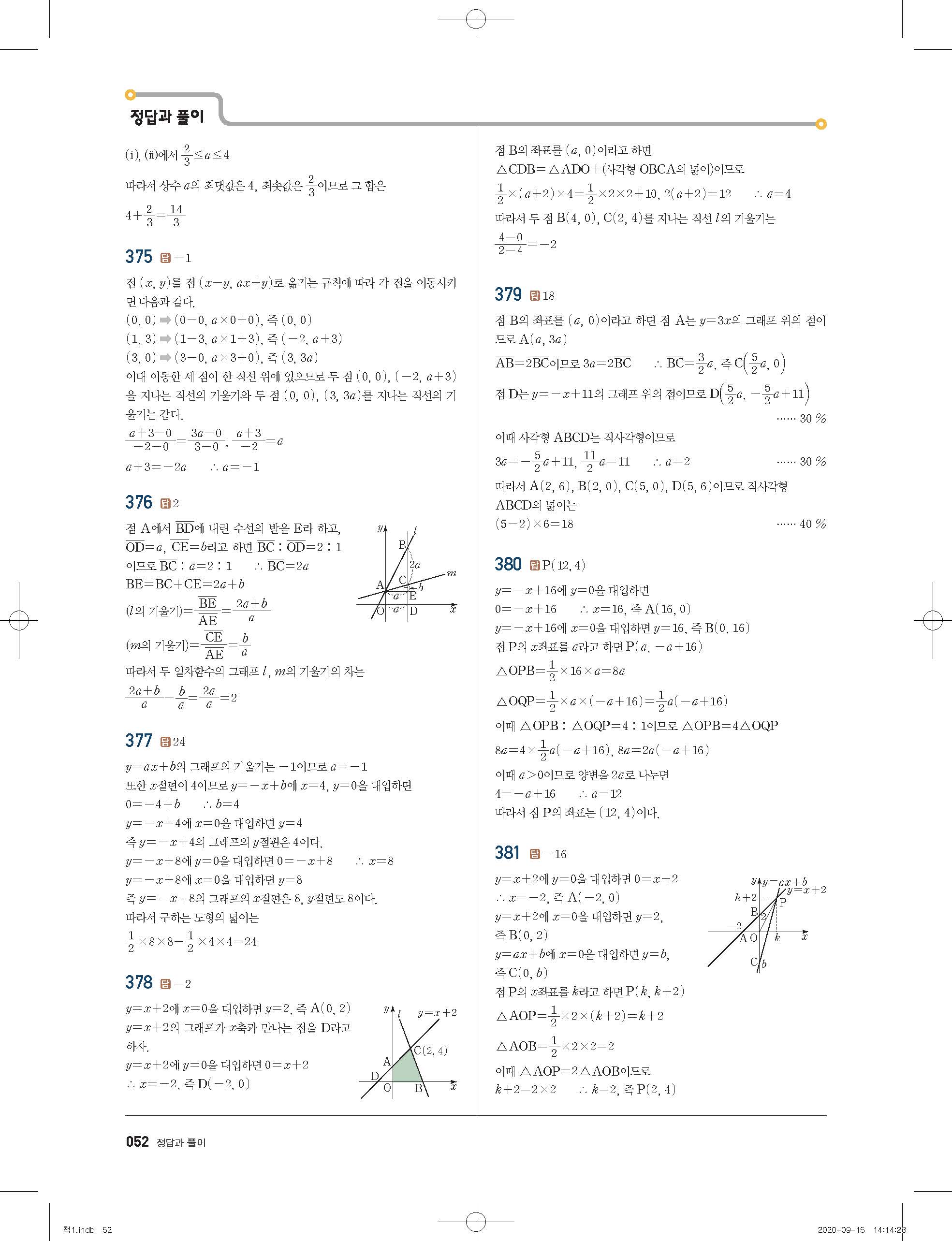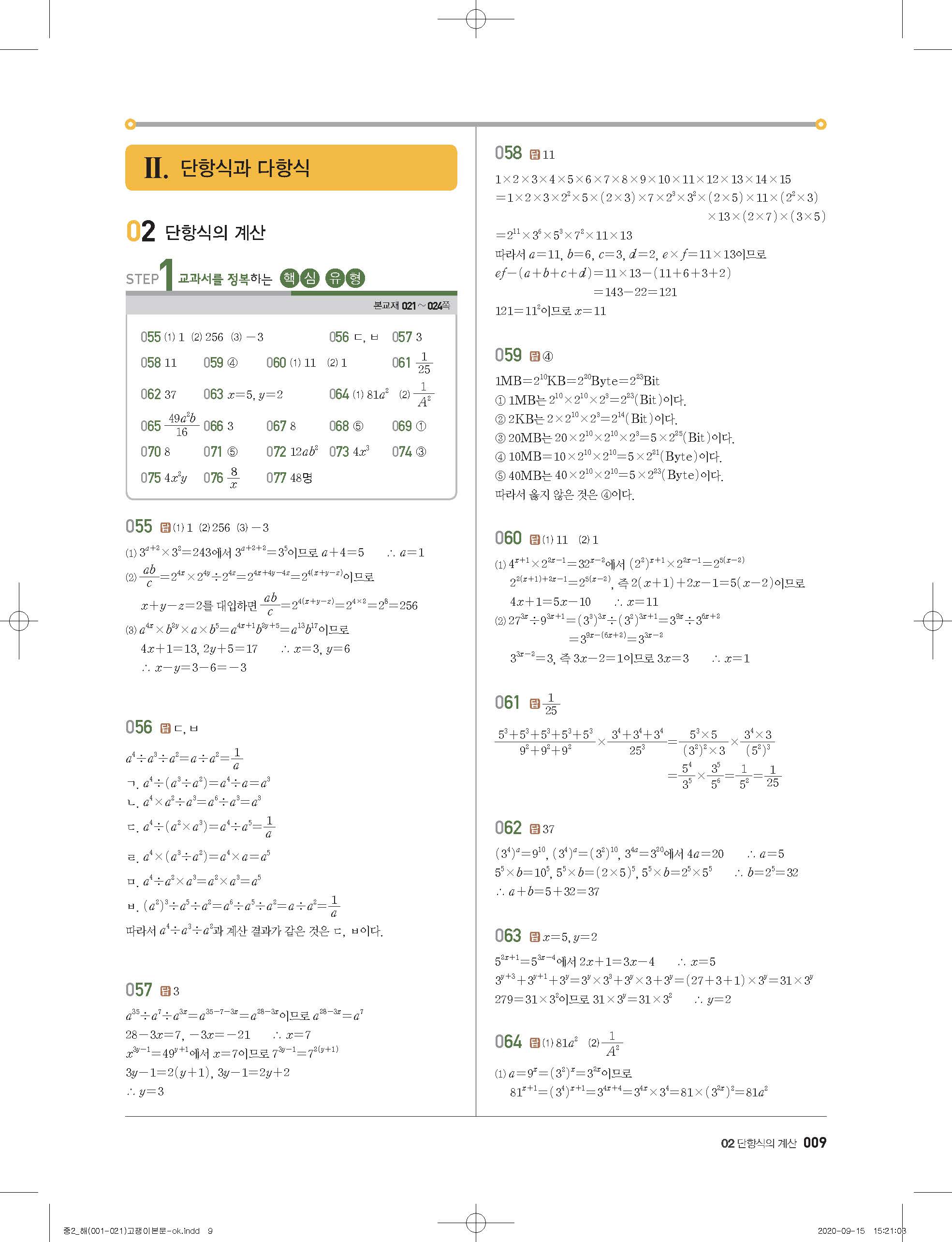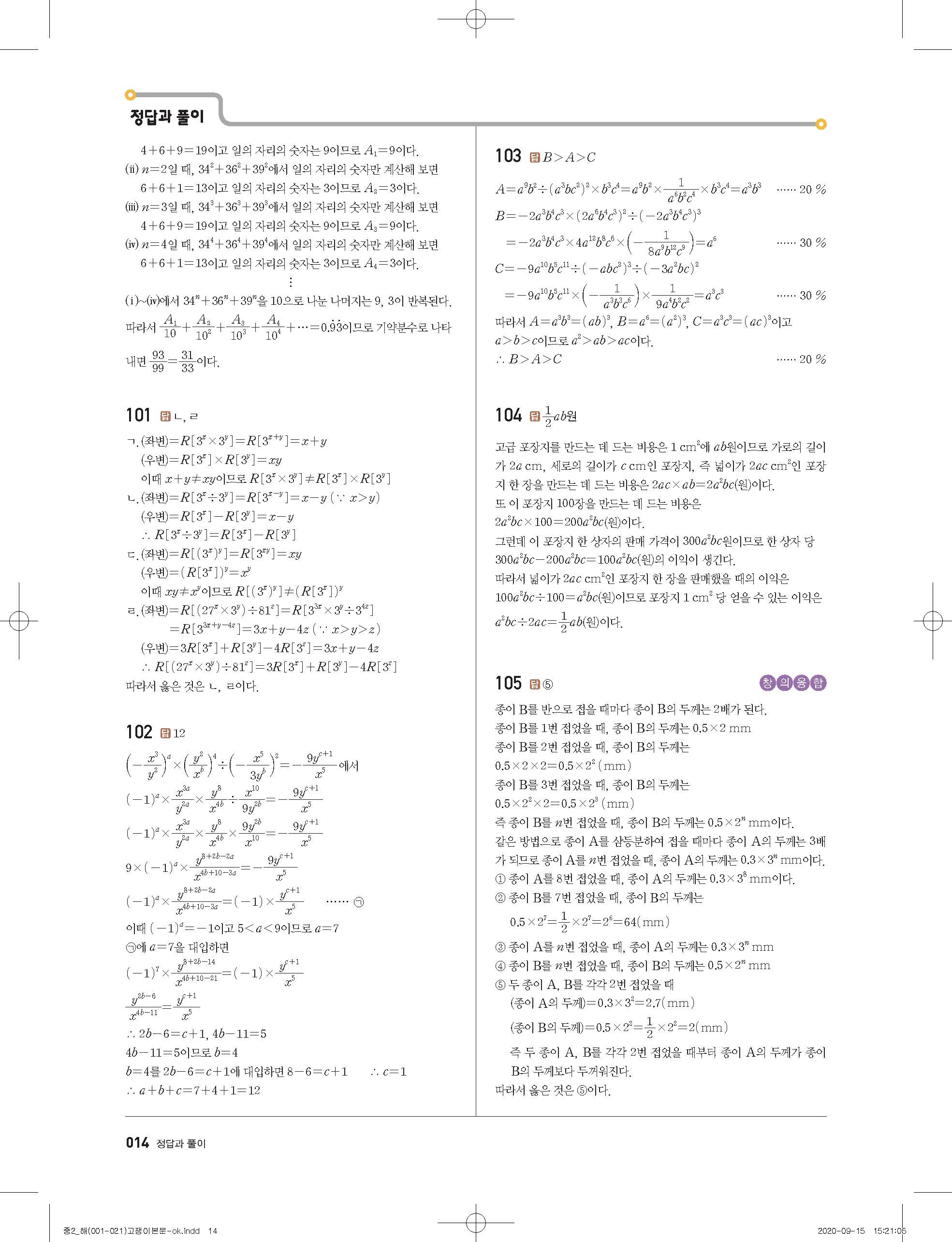 고쟁이 유형 심화 중등수학2상 2-1 사진답지 빠른답지 모바일최적화