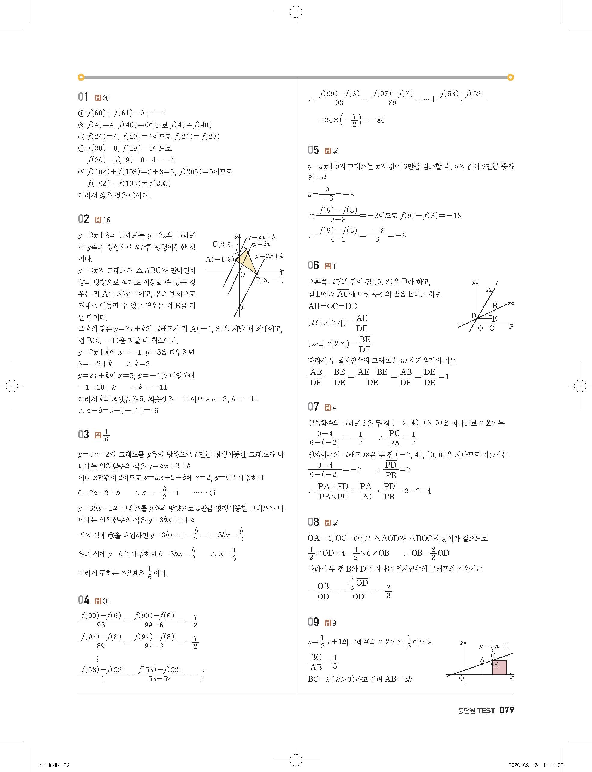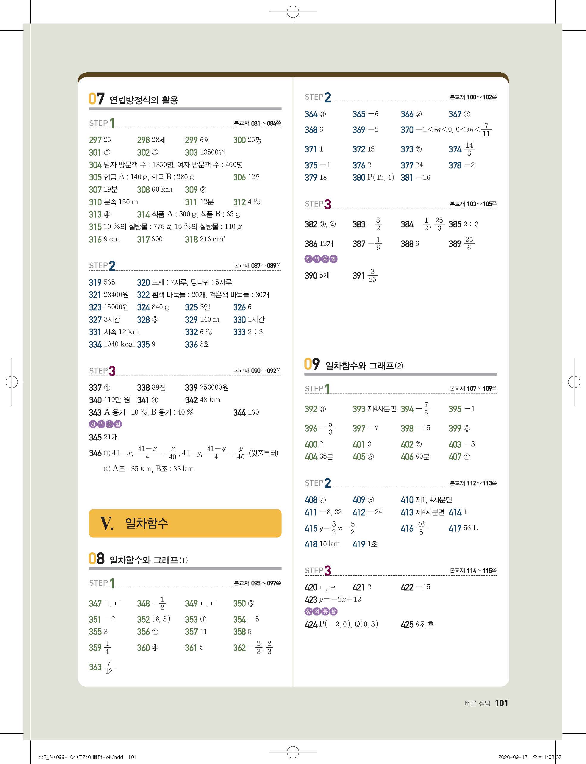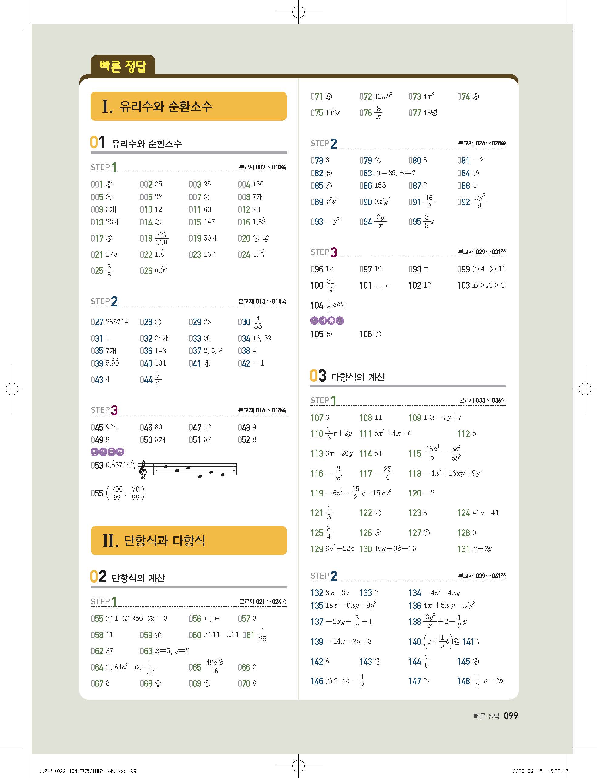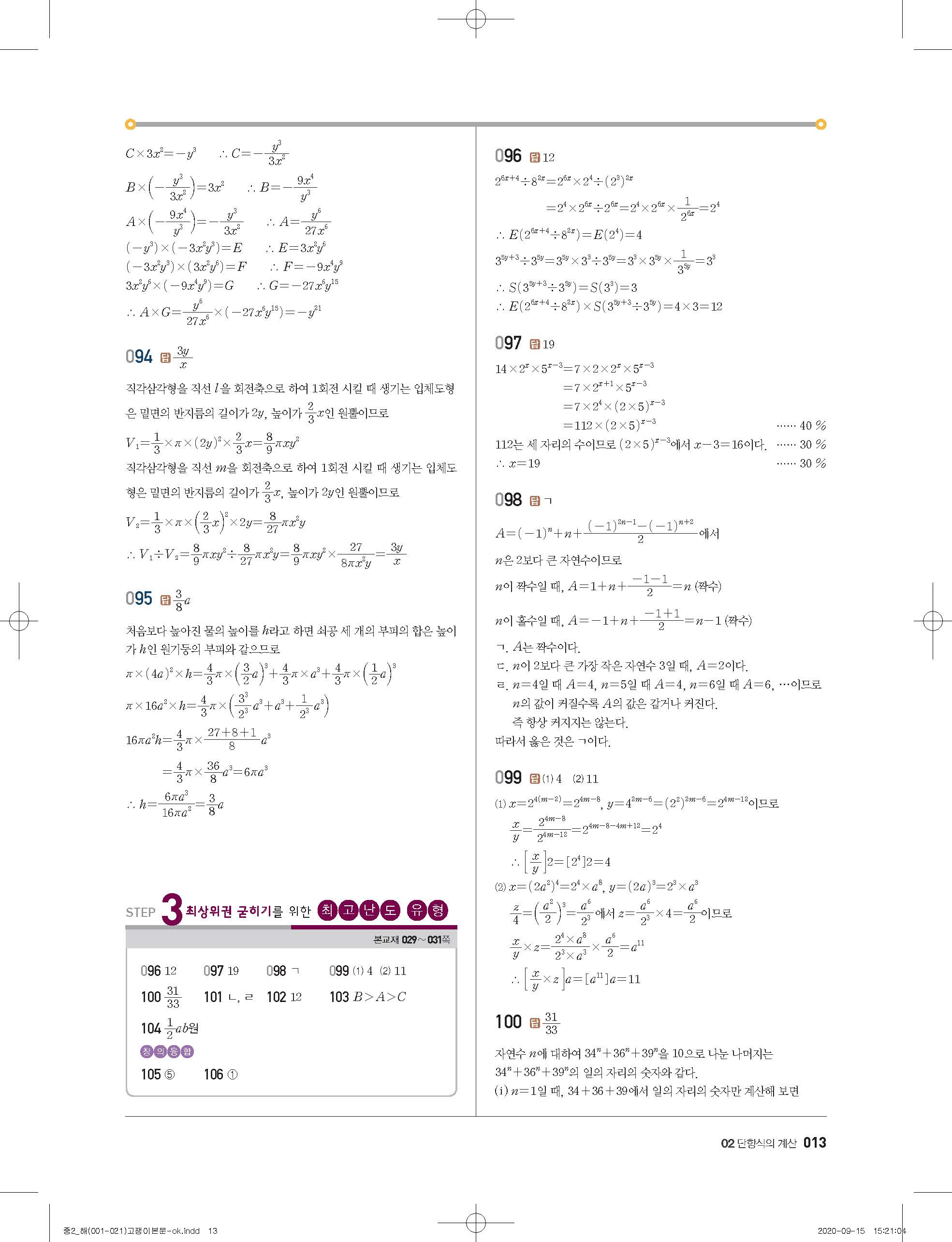 고쟁이 유형 심화 중등수학2상 2-1 사진답지 빠른답지 모바일최적화