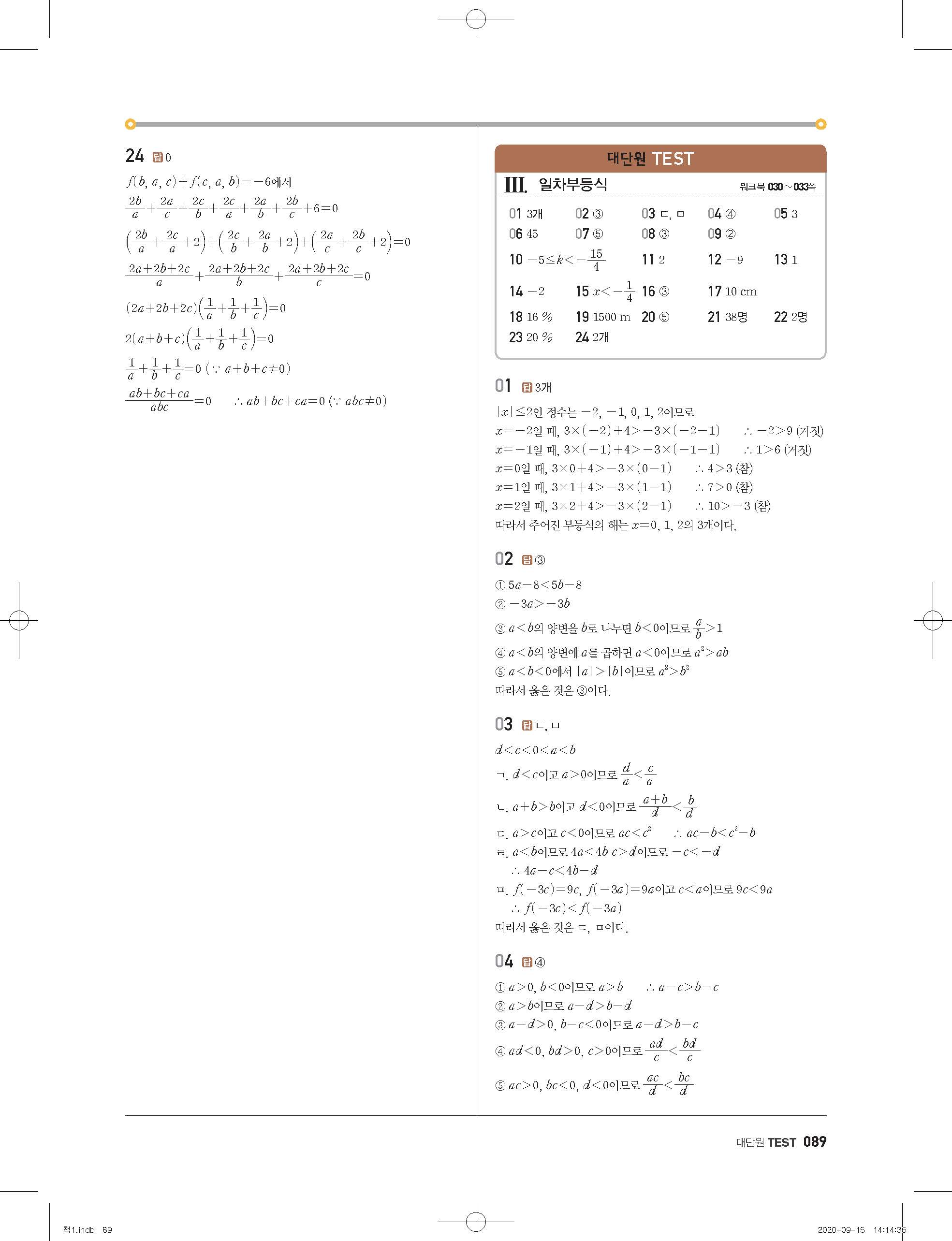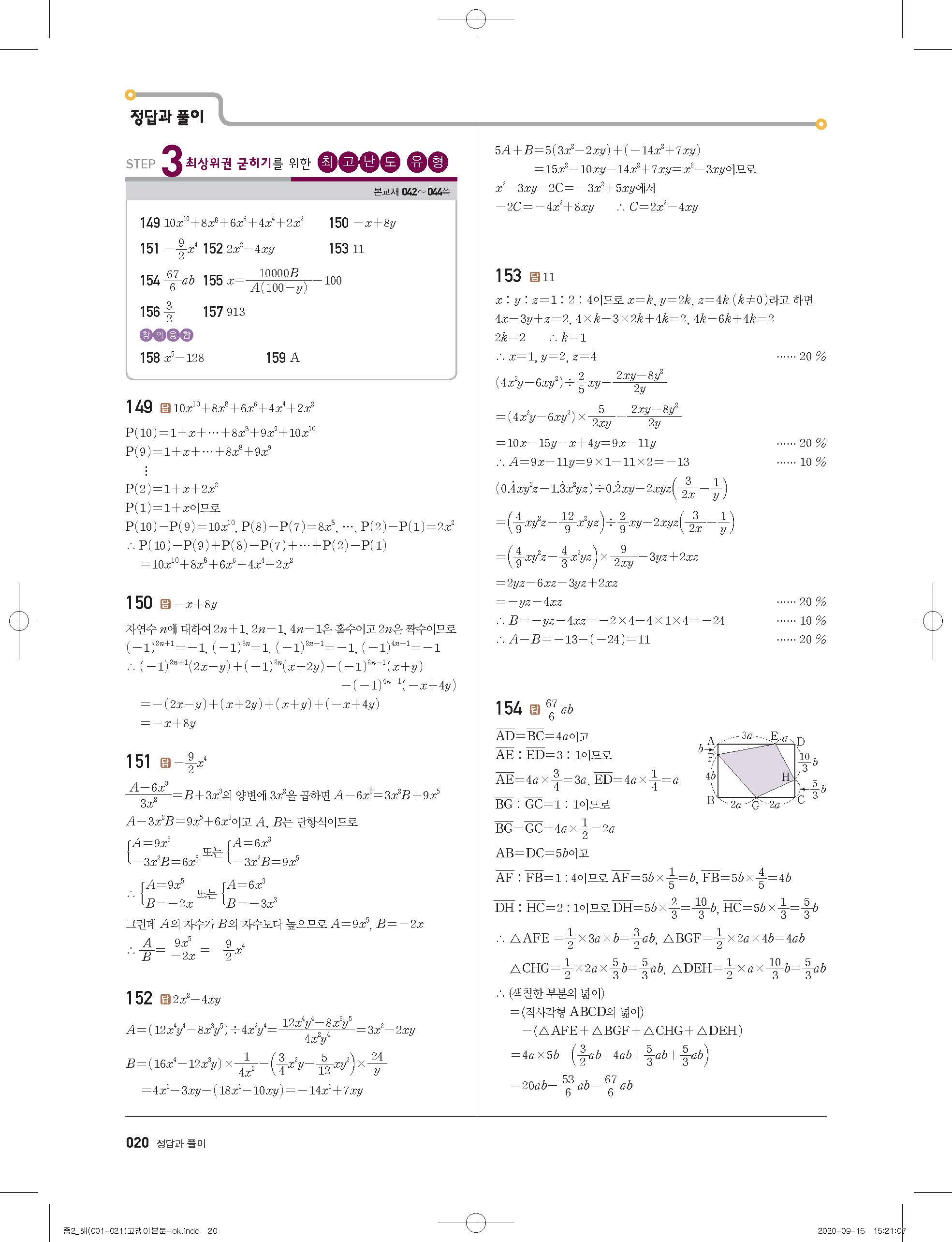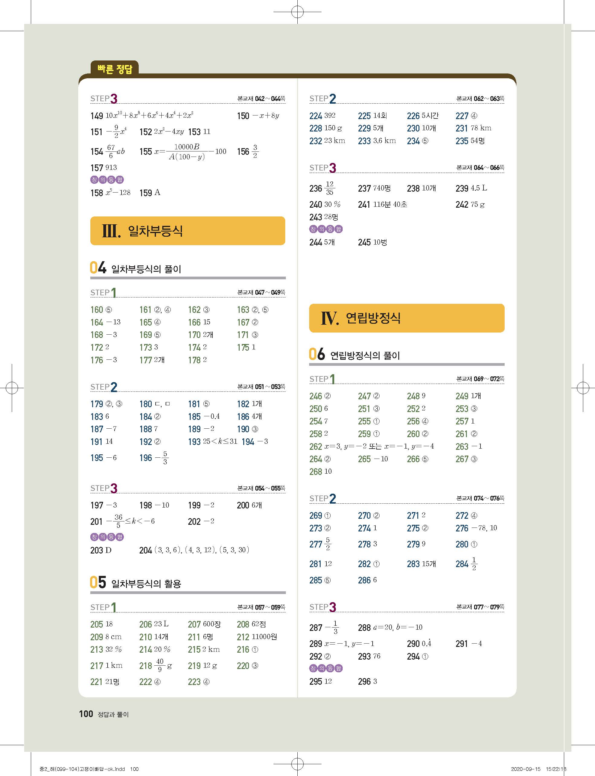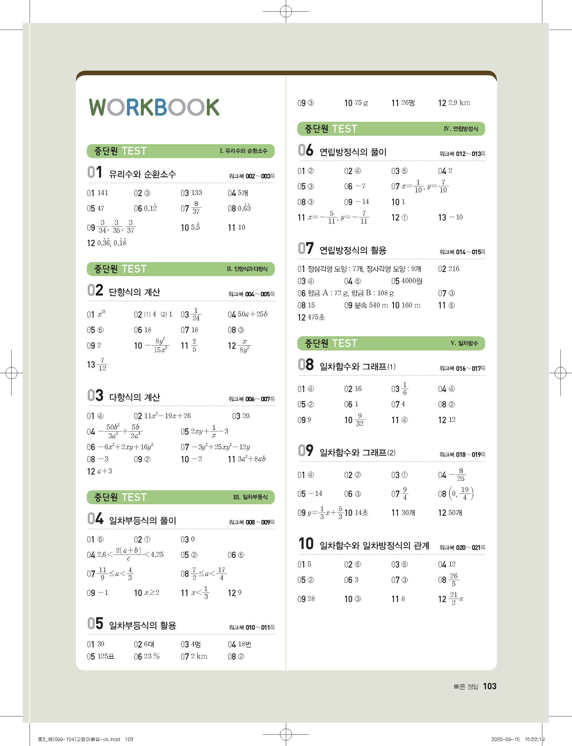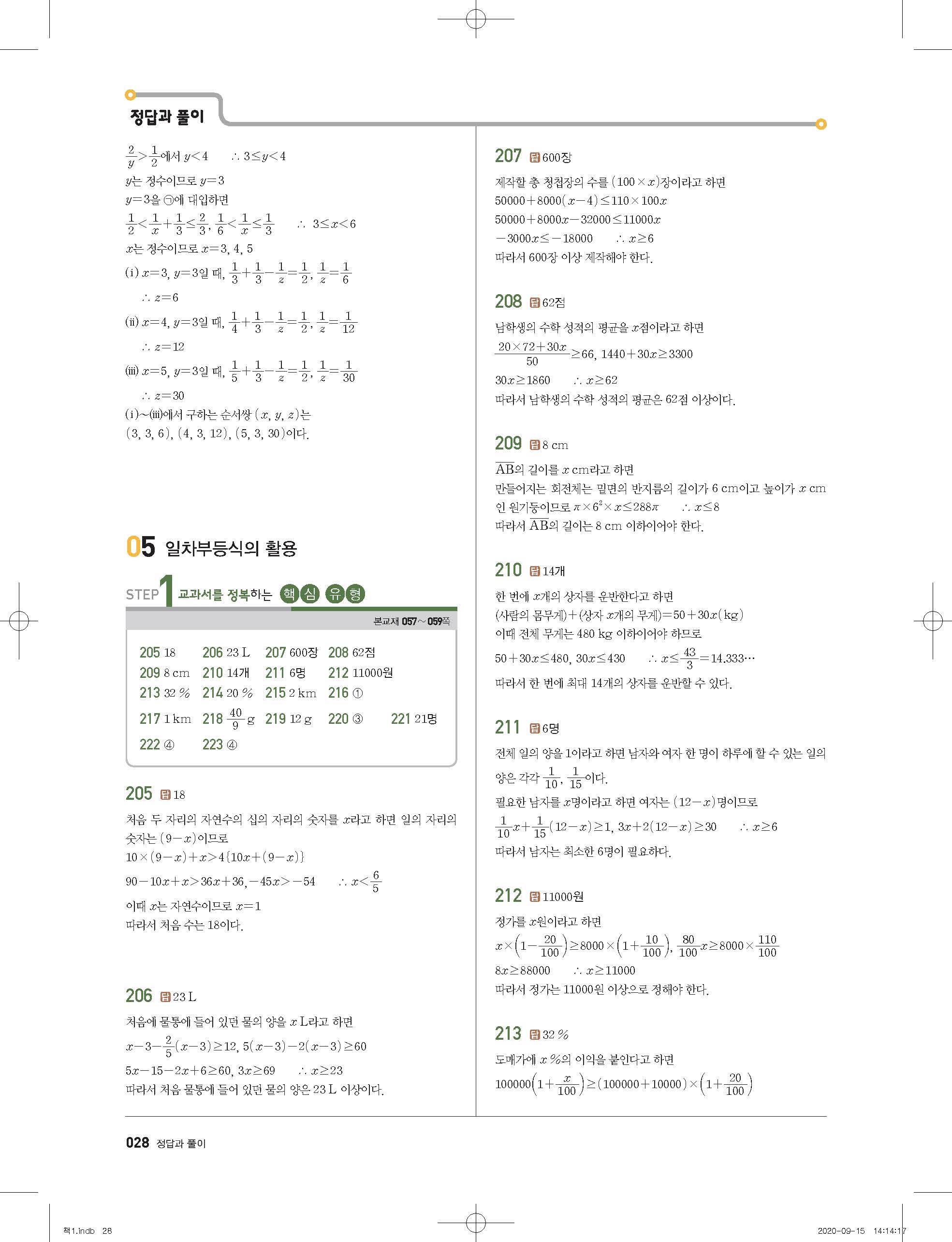 고쟁이 유형 심화 중등수학2상 2-1 사진답지 빠른답지 모바일최적화