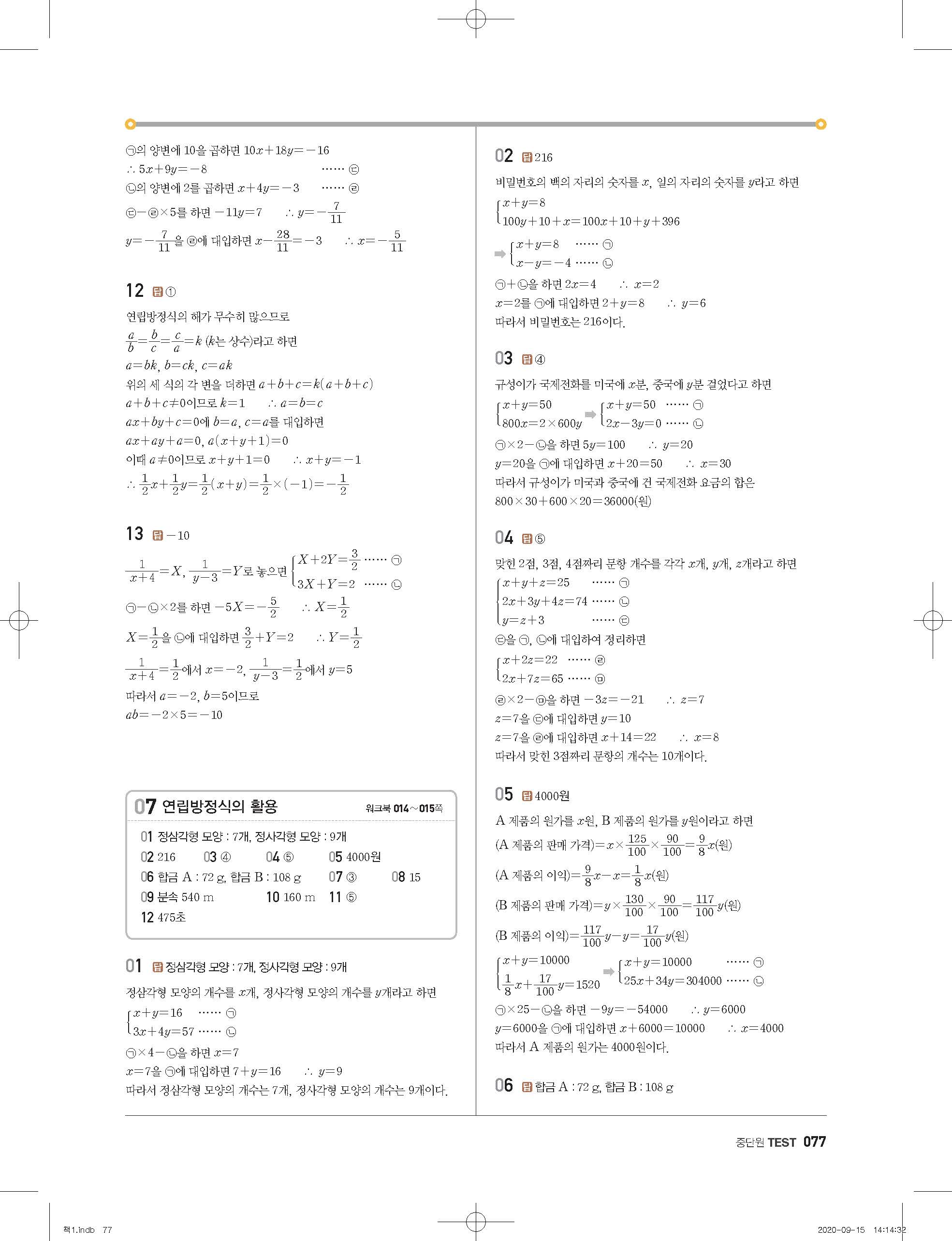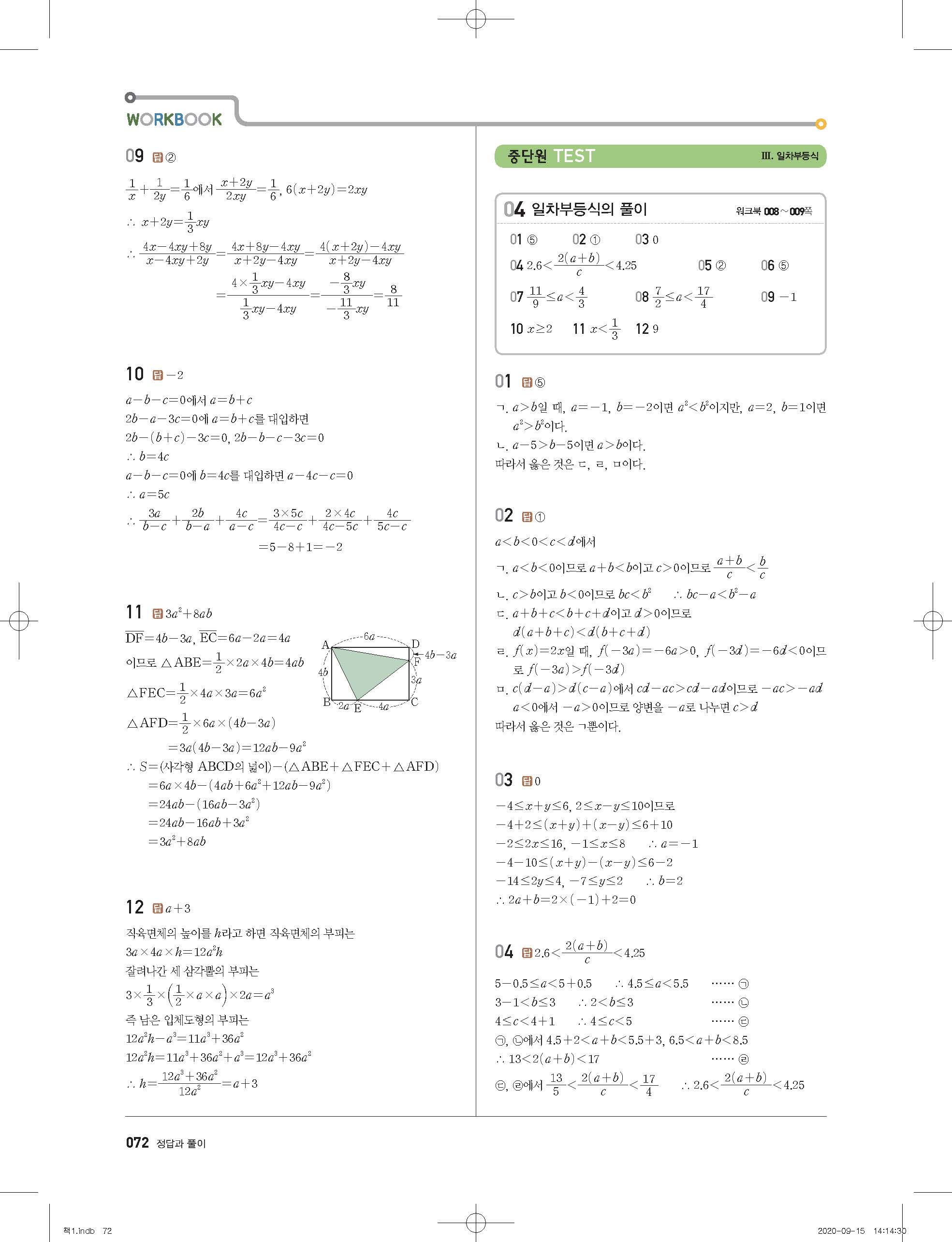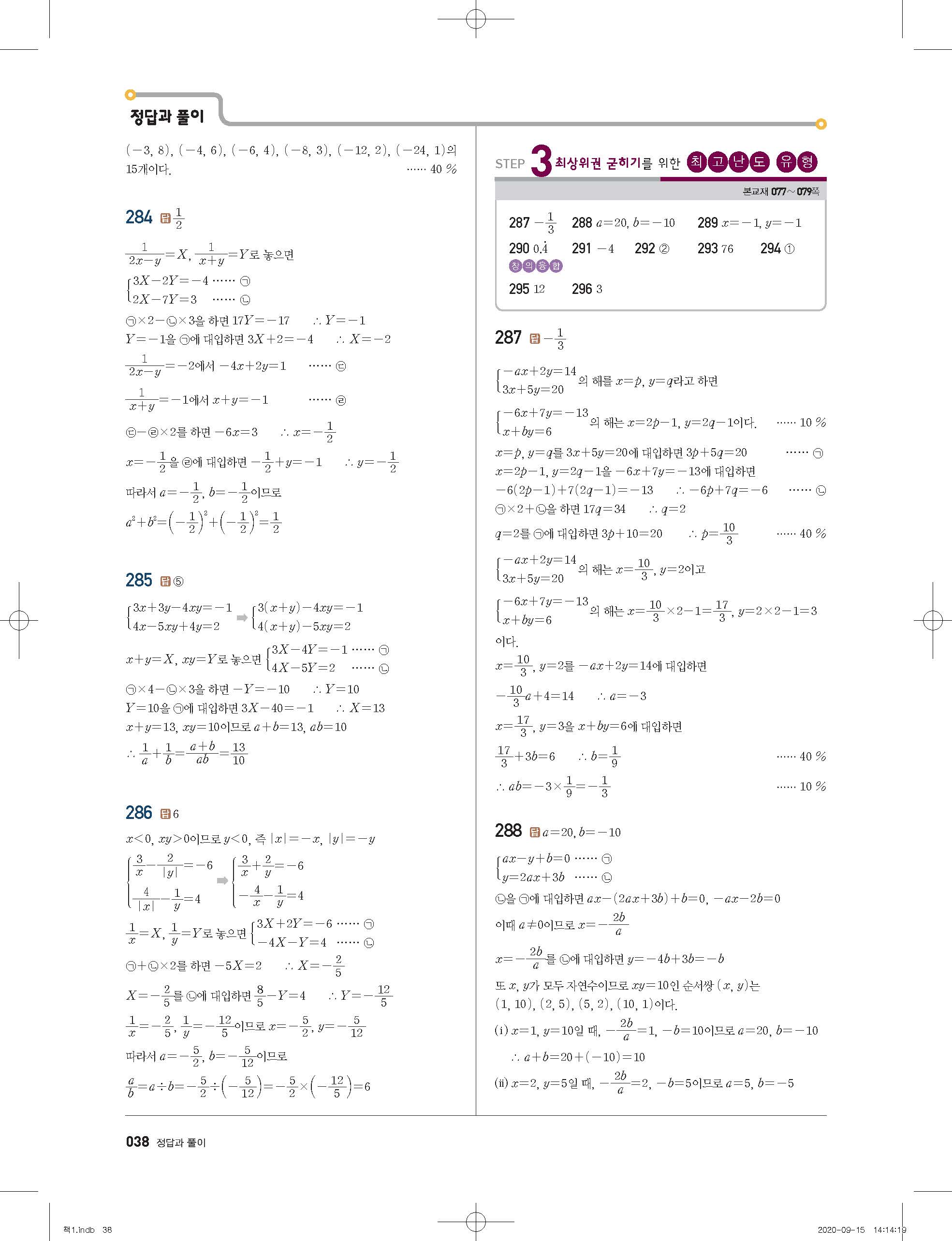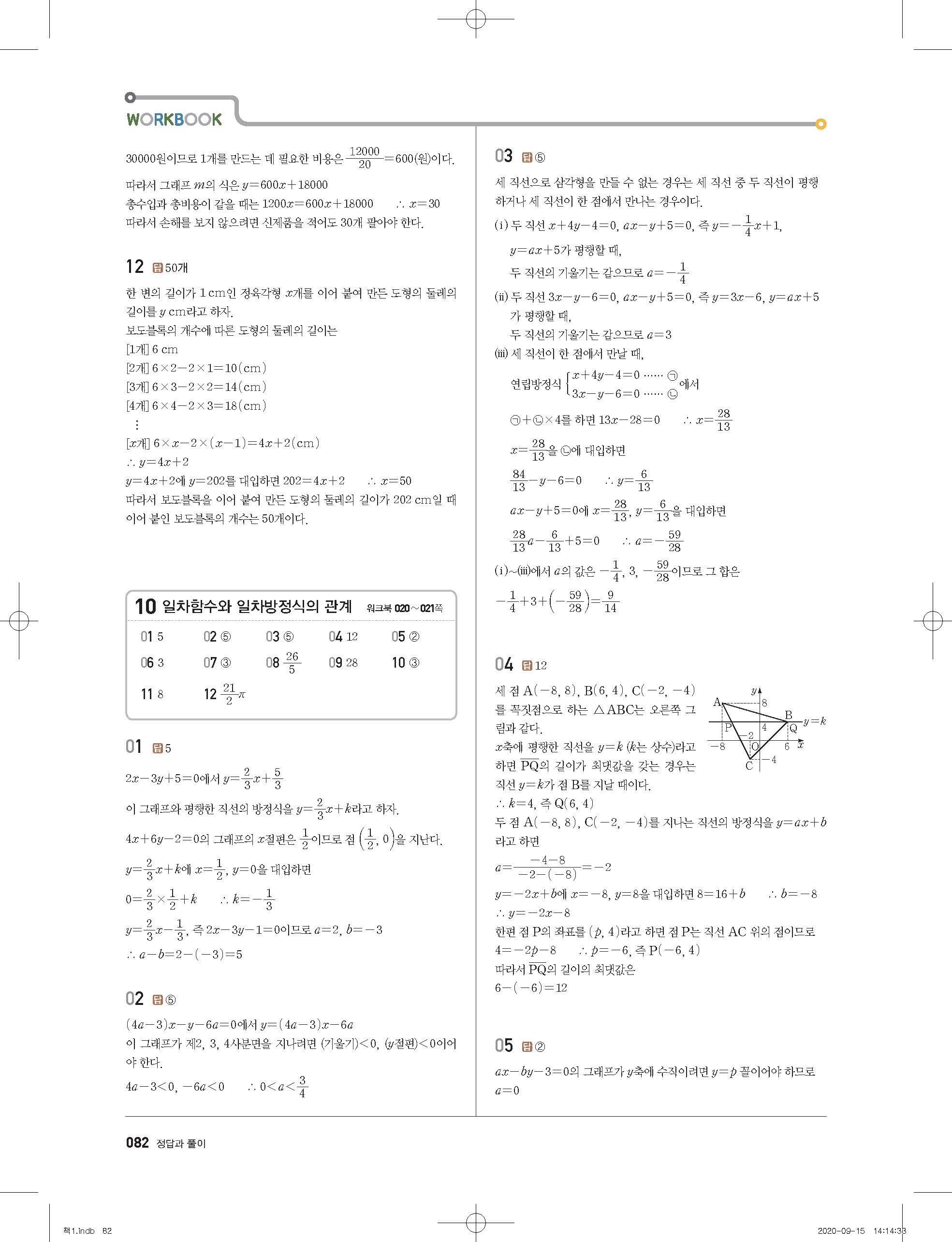 고쟁이 유형 심화 중등수학2상 2-1 사진답지 빠른답지 모바일최적화